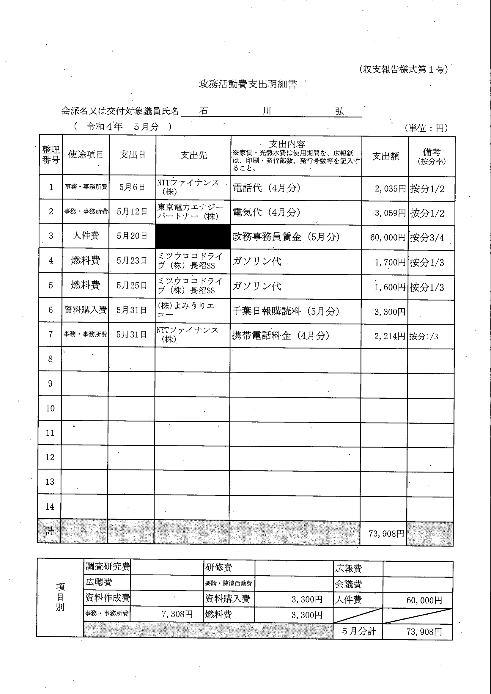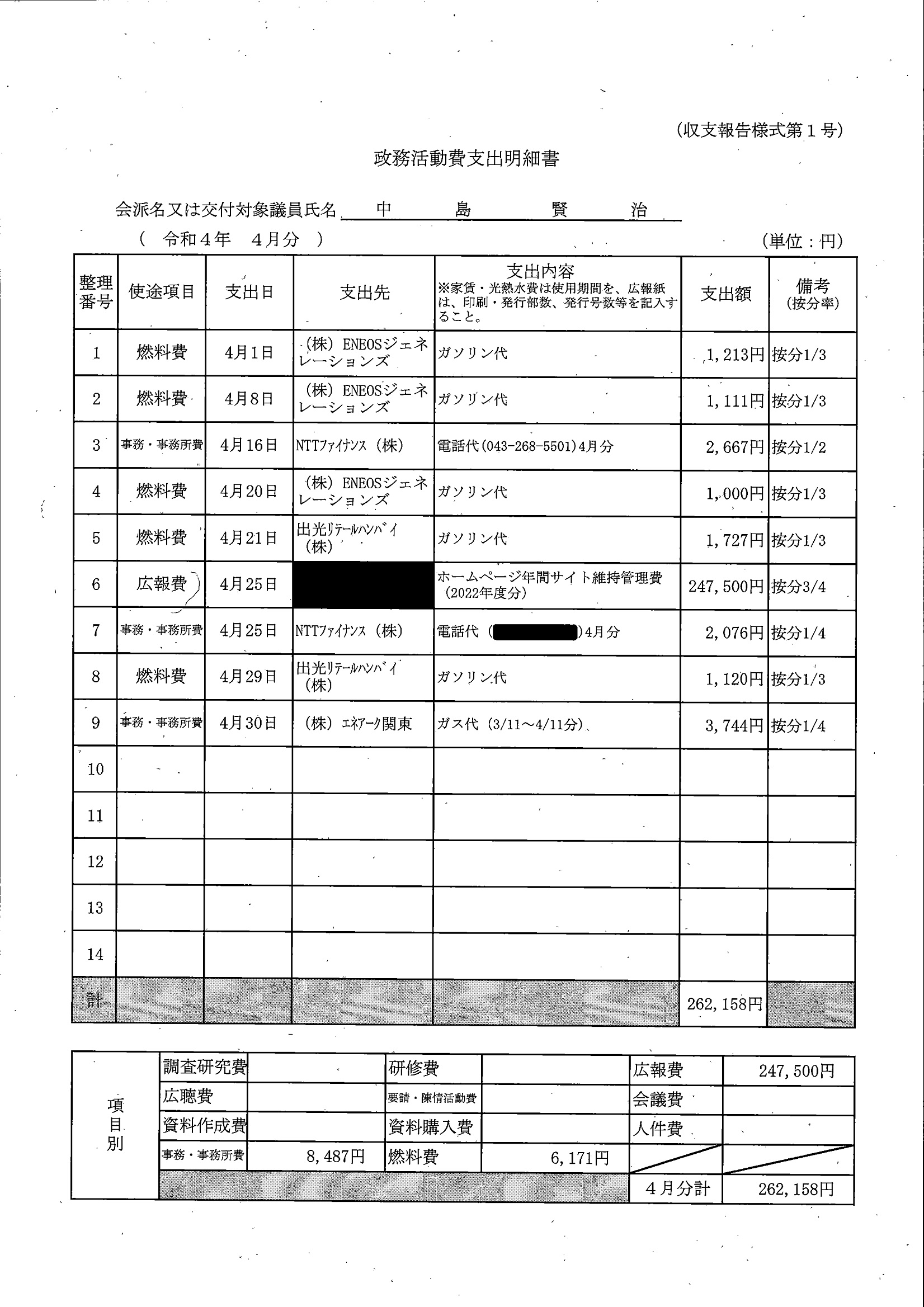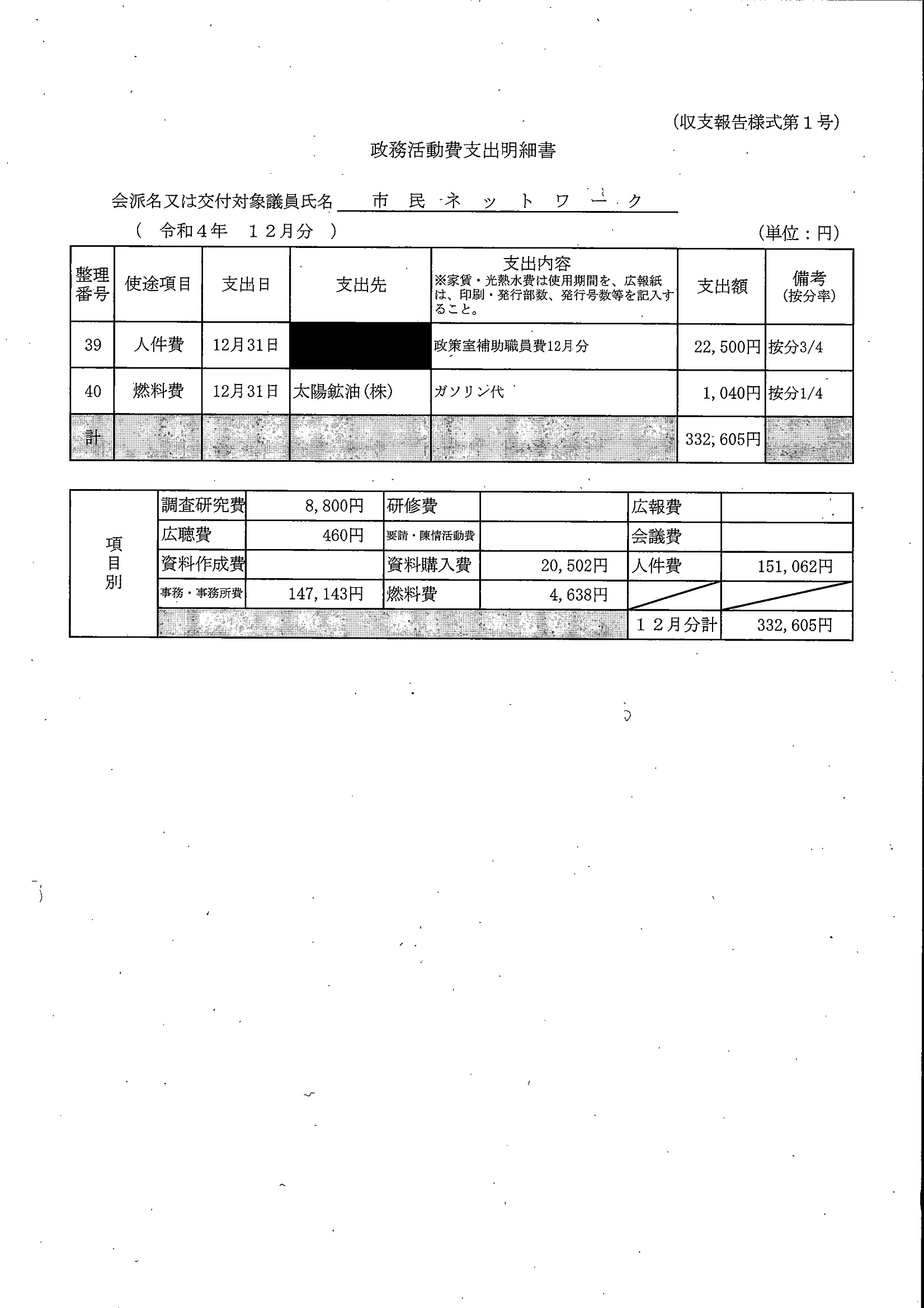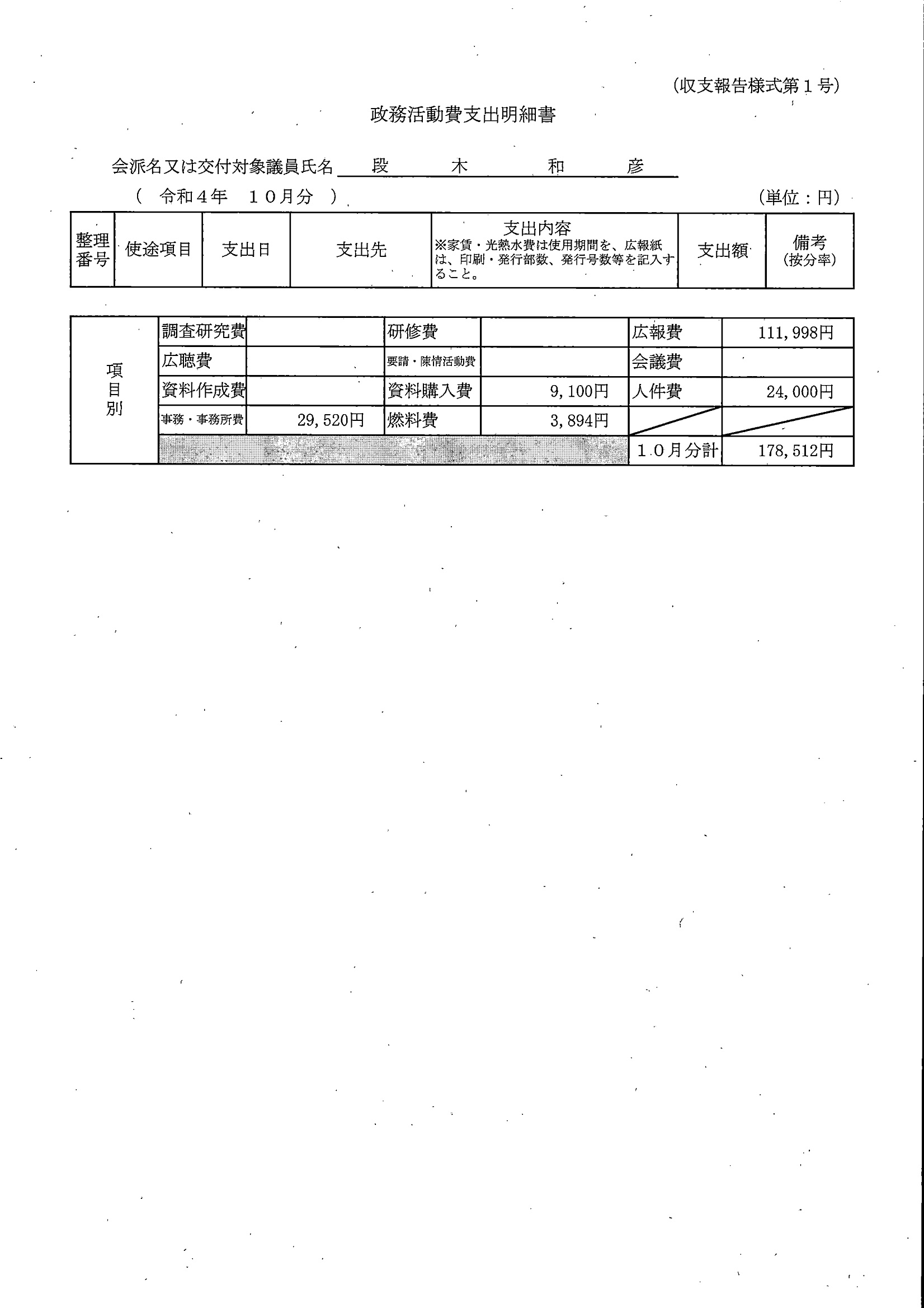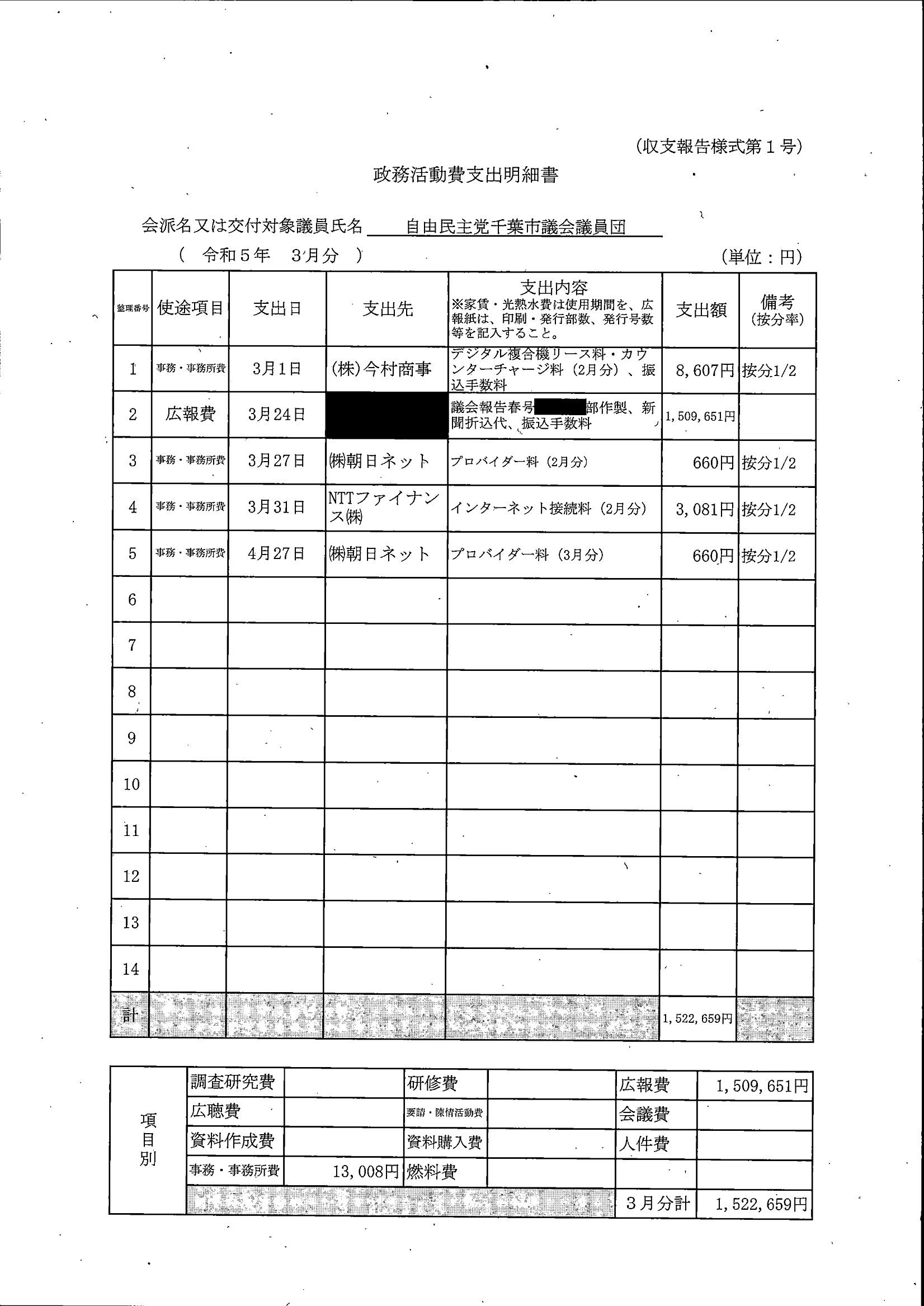 千葉市議会トップページ > 広報・情報公開 > 政務活動費 > 令和4年度交付分(政務活動費収支報告書)