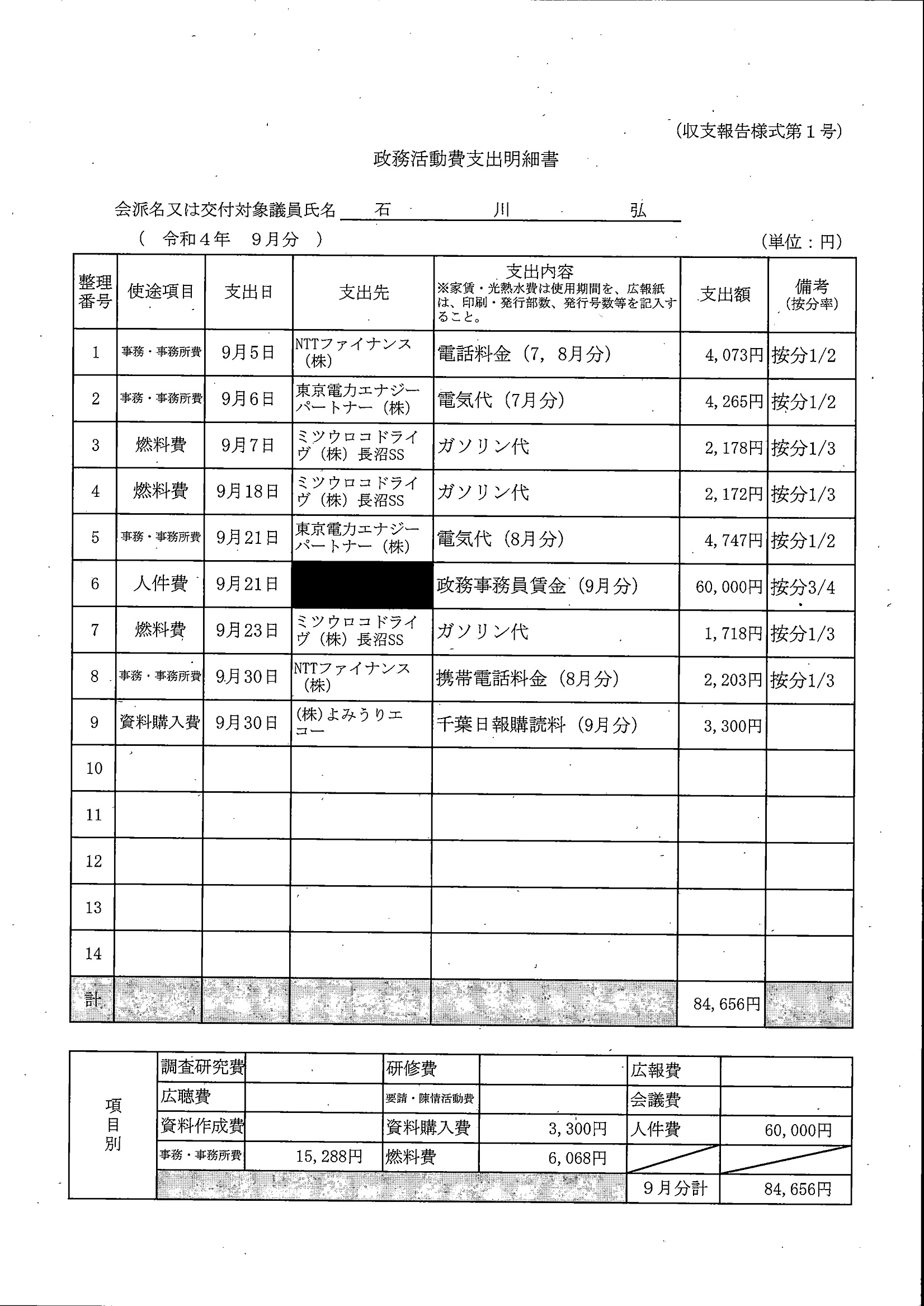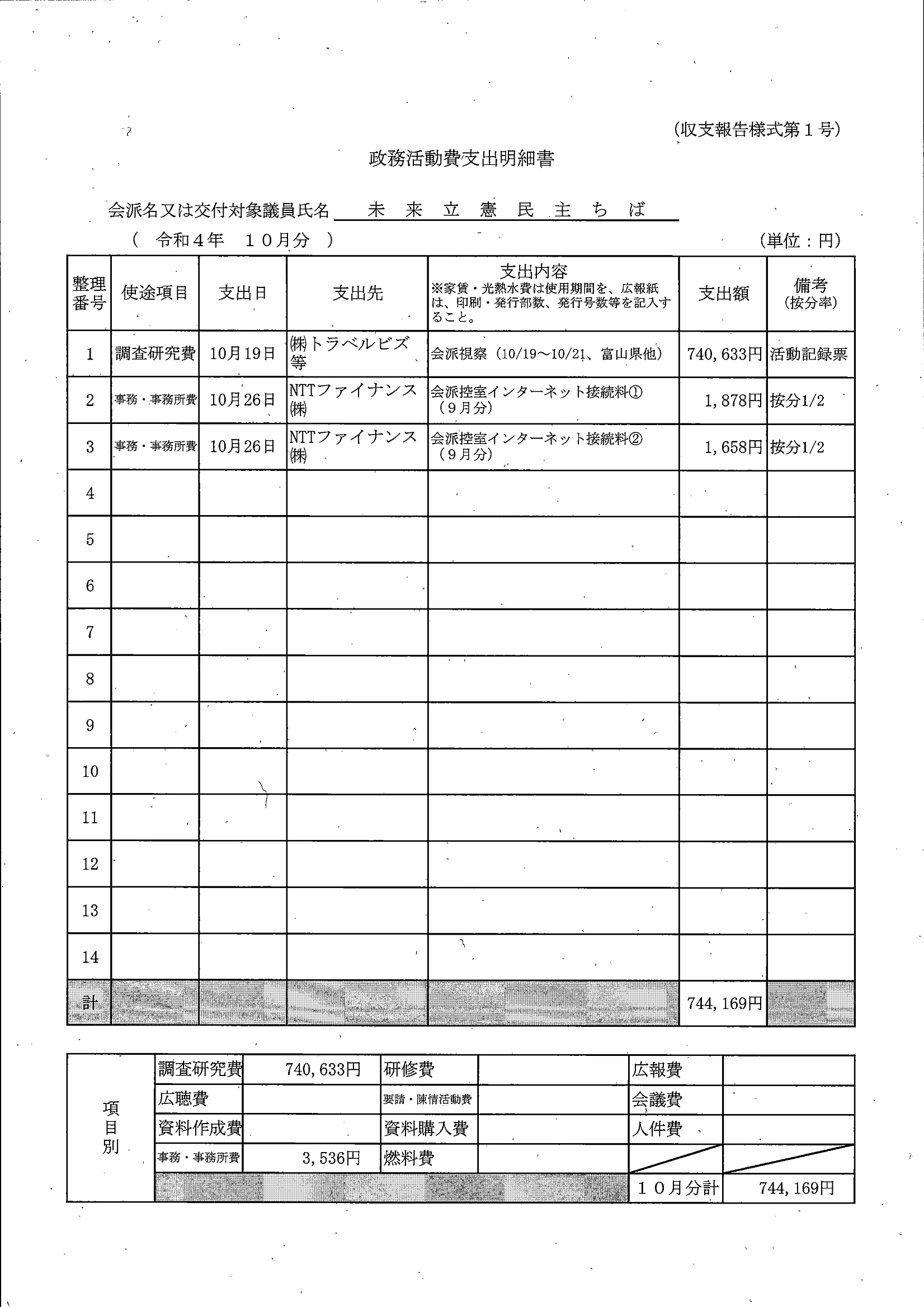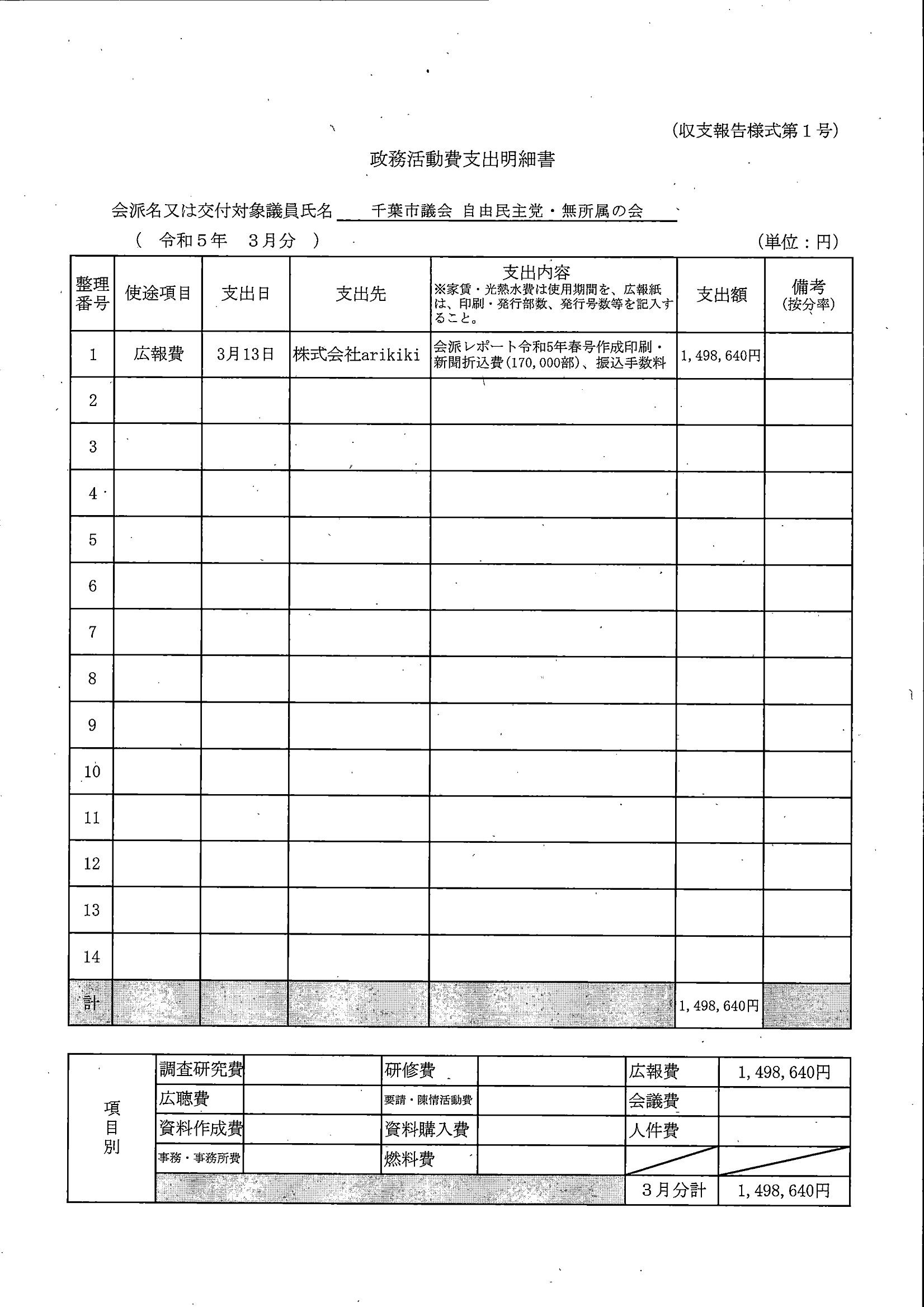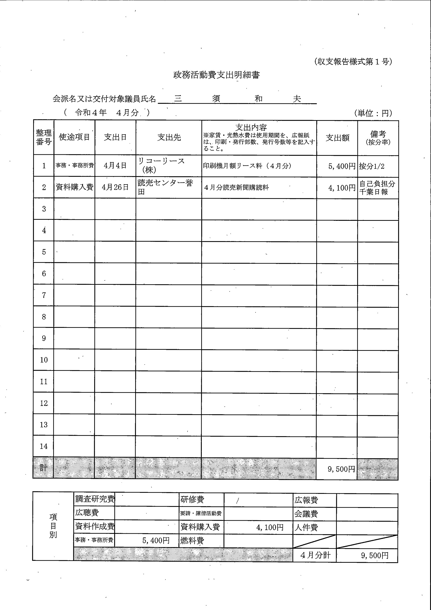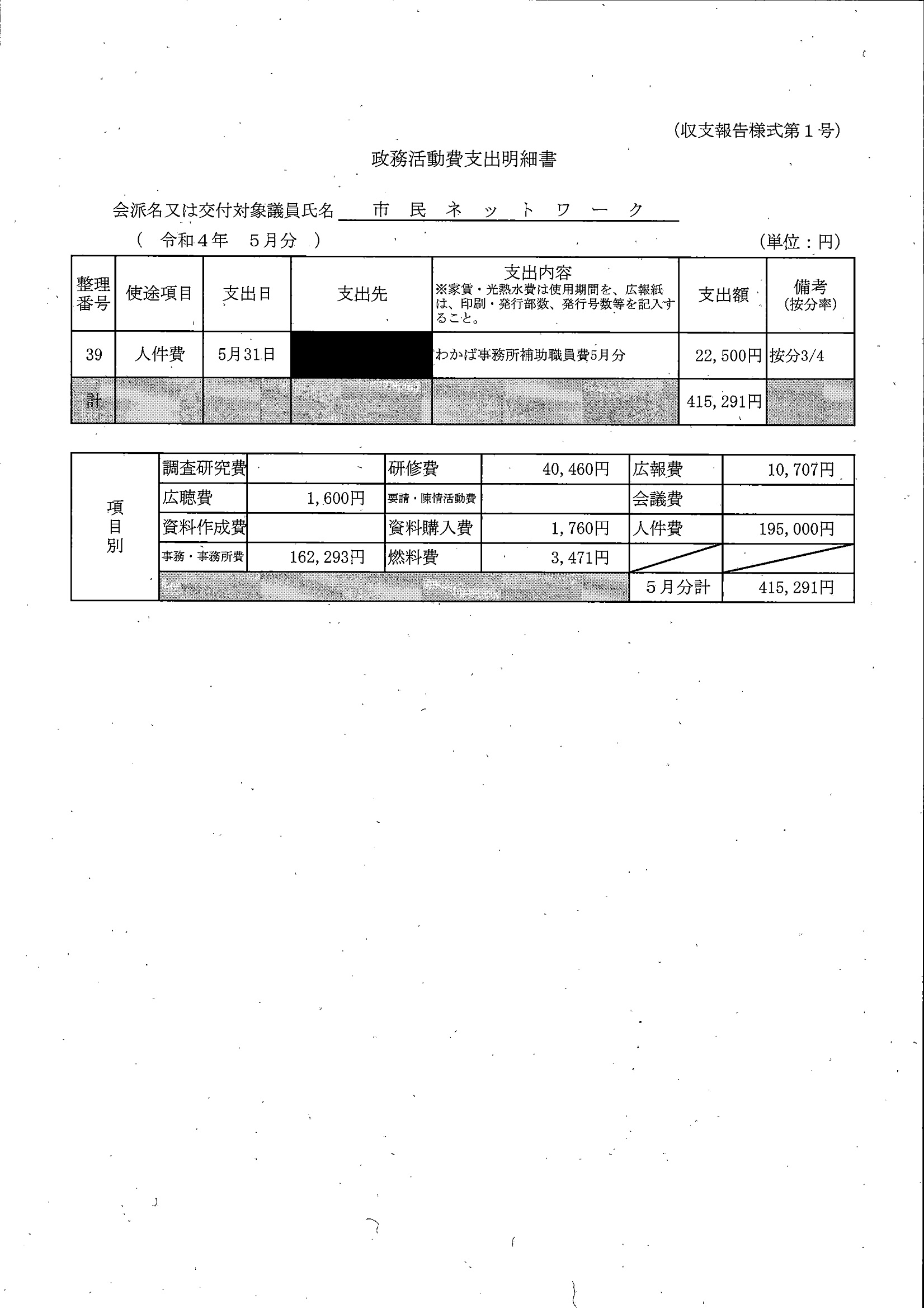千葉市議会トップページ > 広報・情報公開 > 政務活動費 > 令和4年度交付分(政務活動費収支報告書)