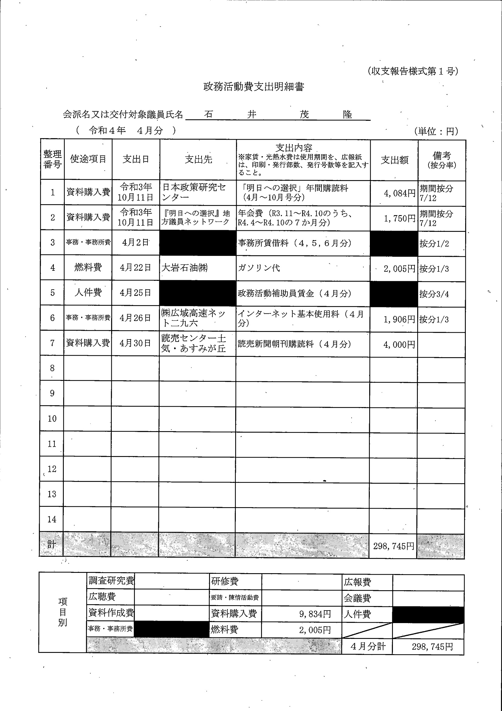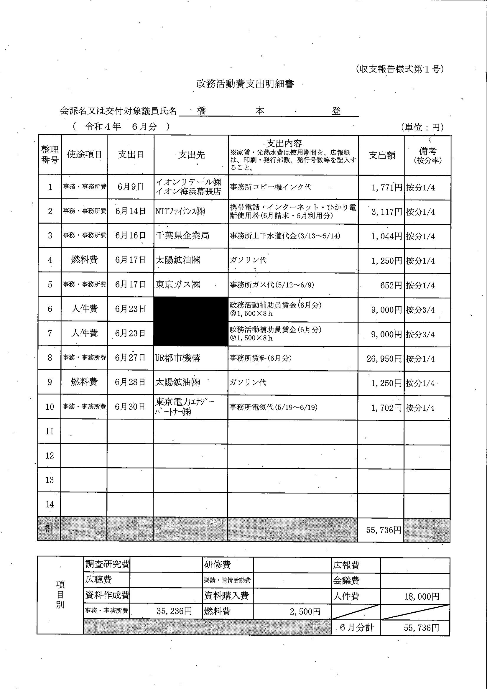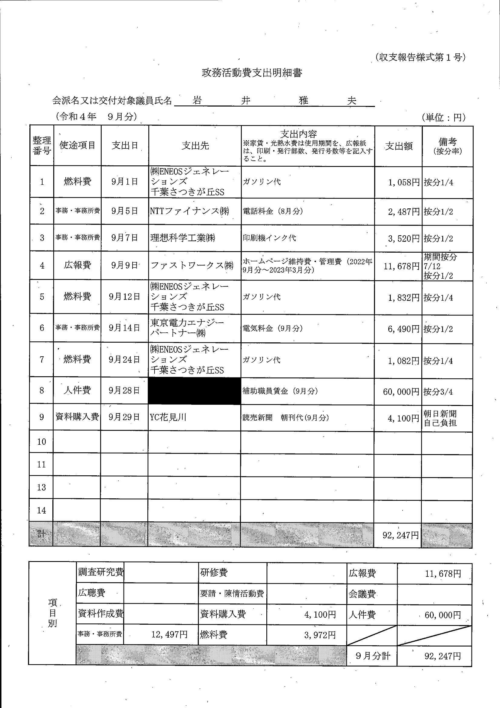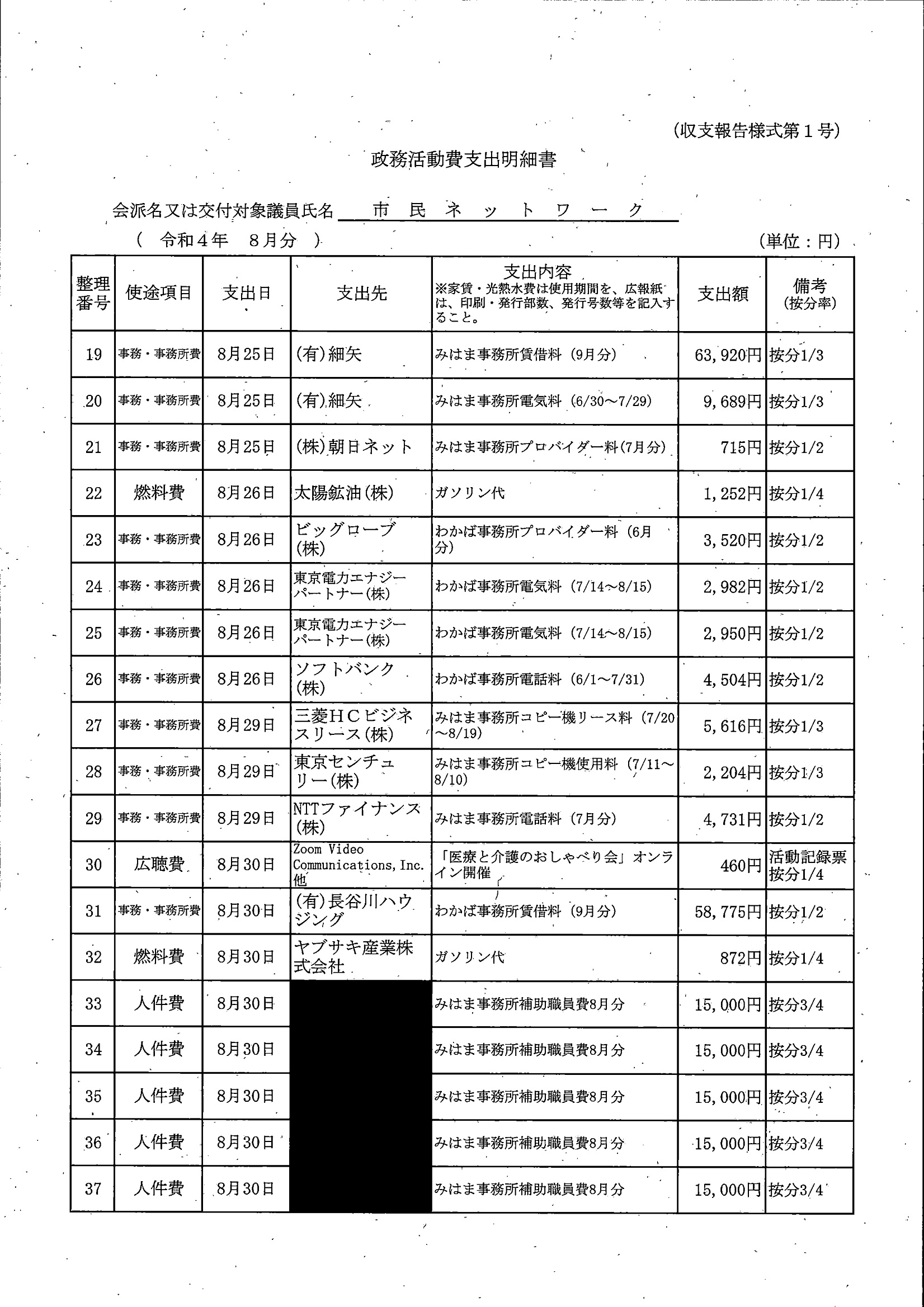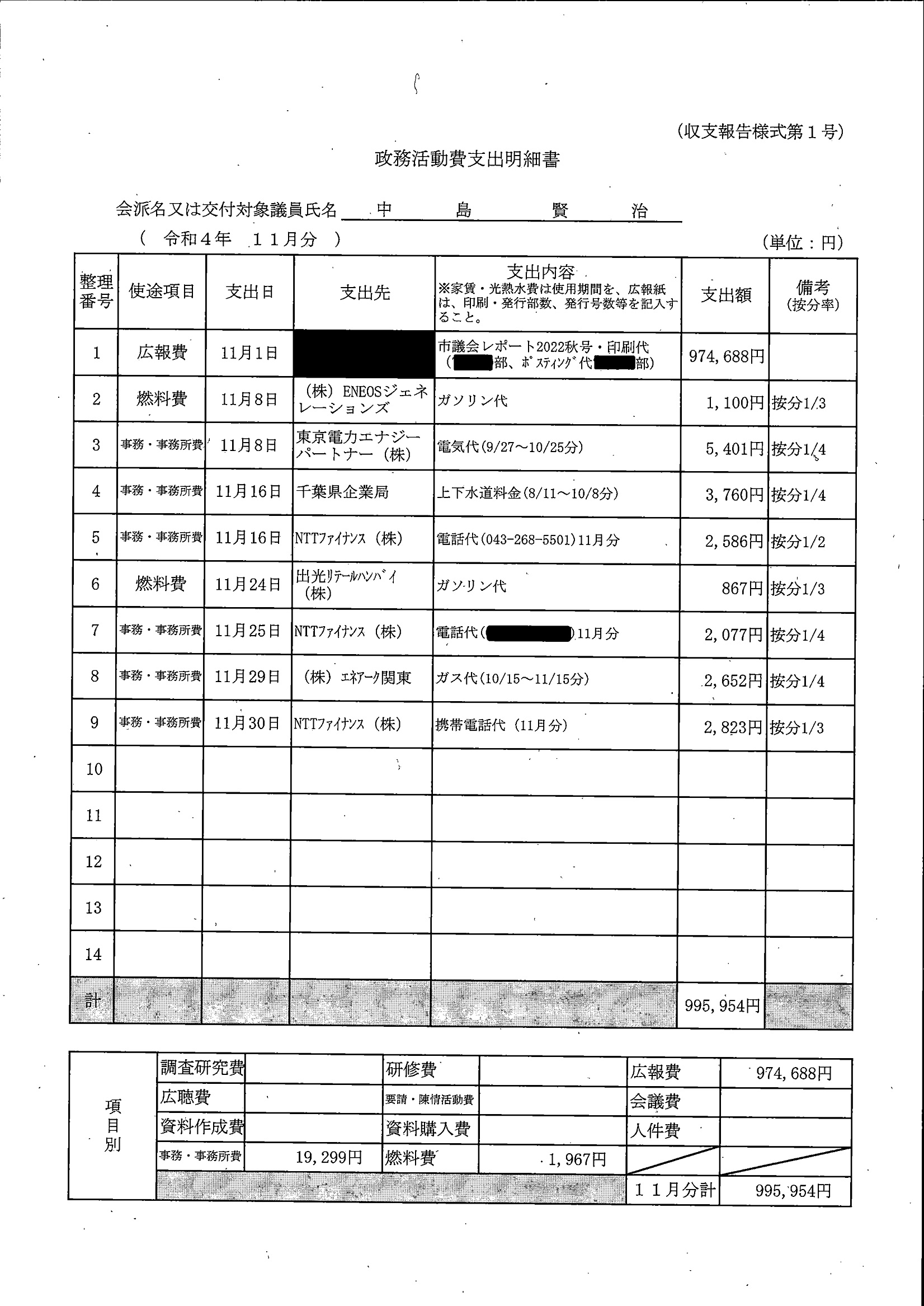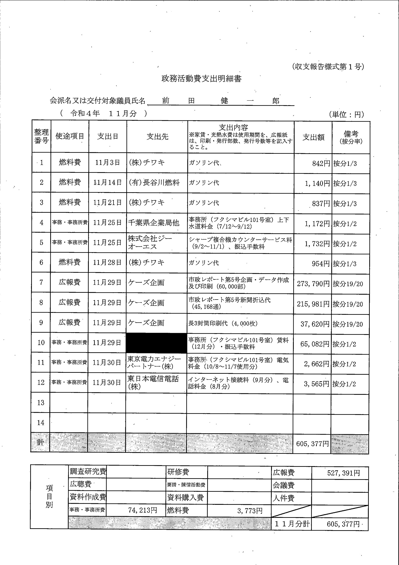 千葉市議会トップページ > 広報・情報公開 > 政務活動費 > 令和4年度交付分(政務活動費収支報告書)