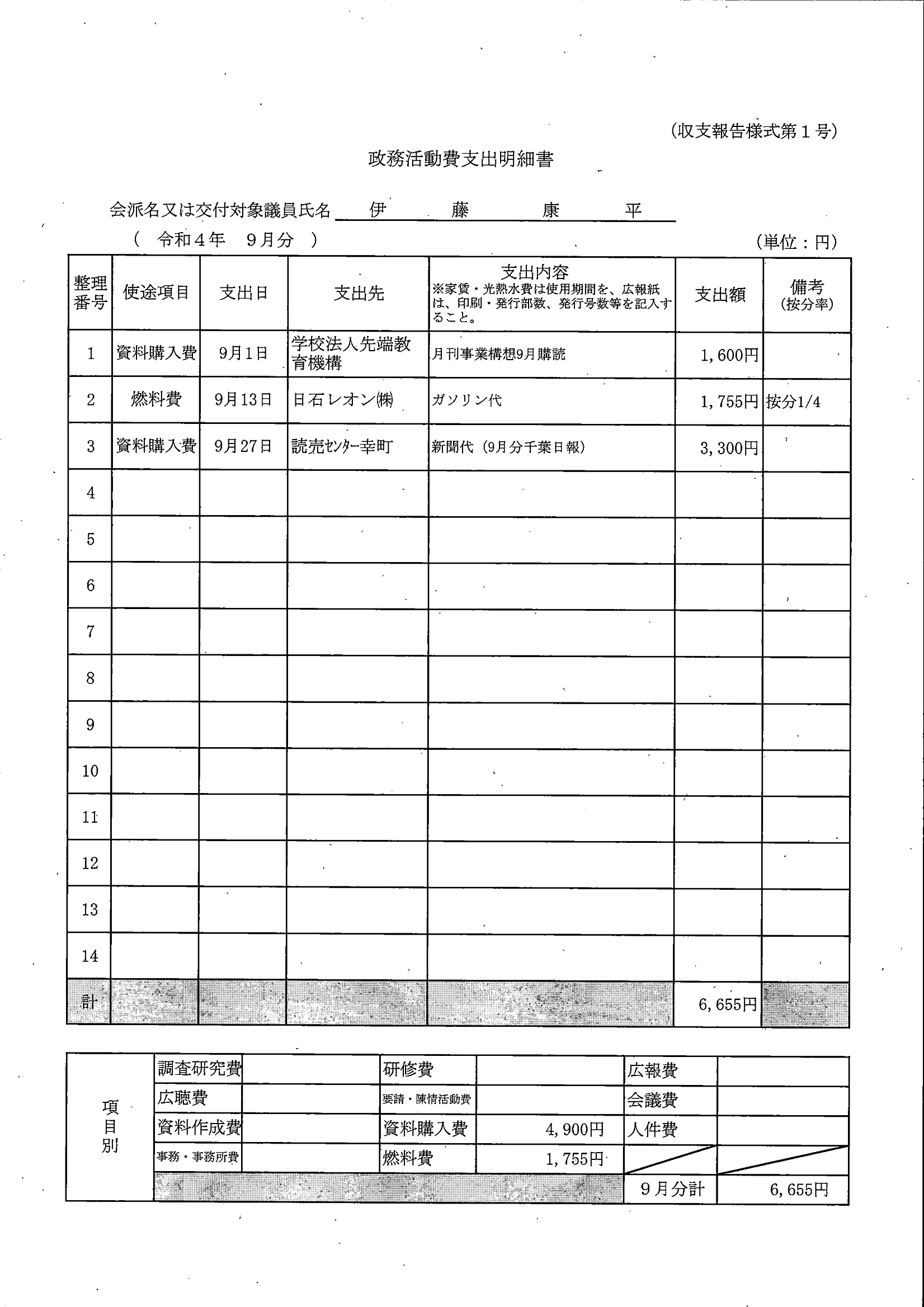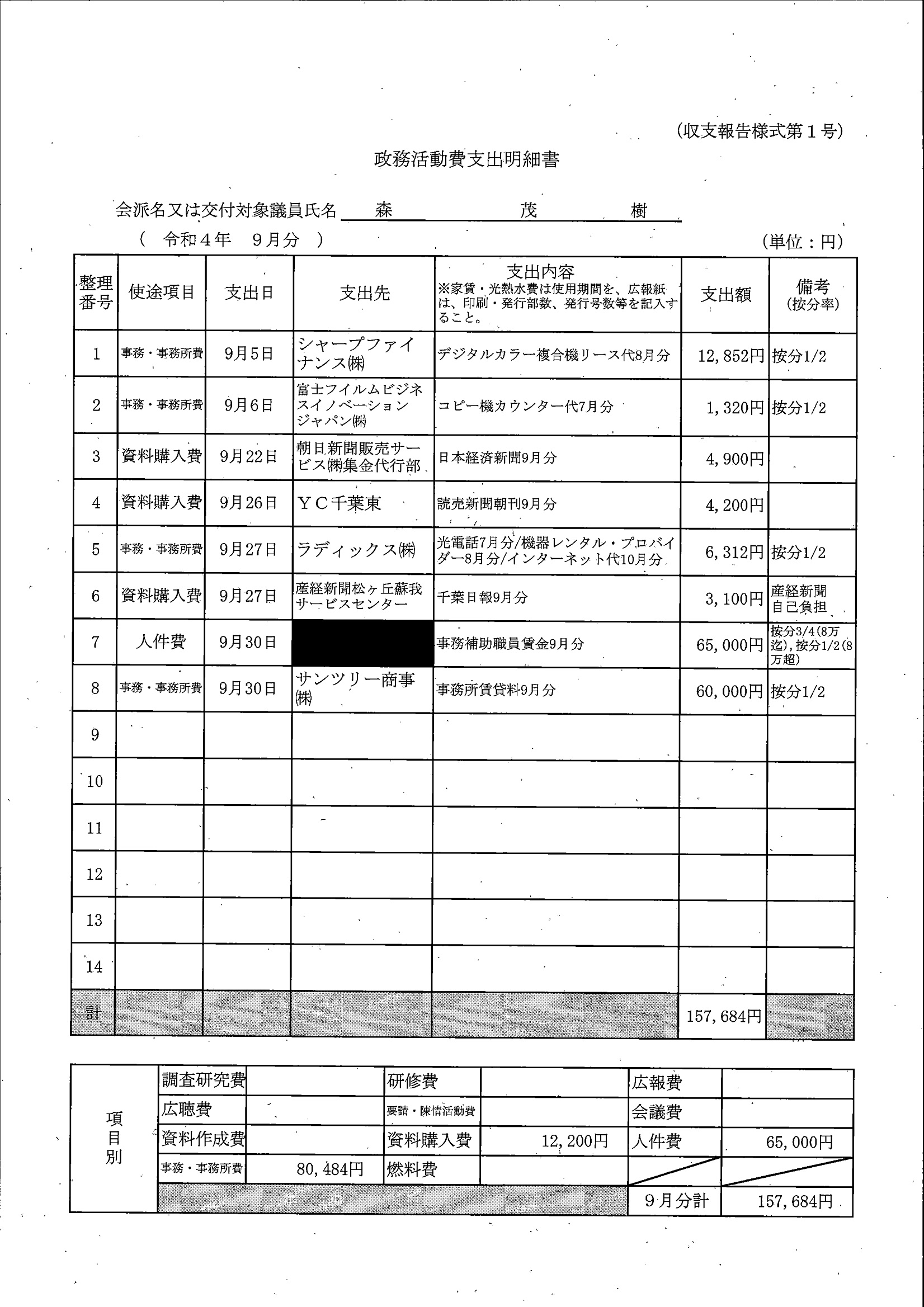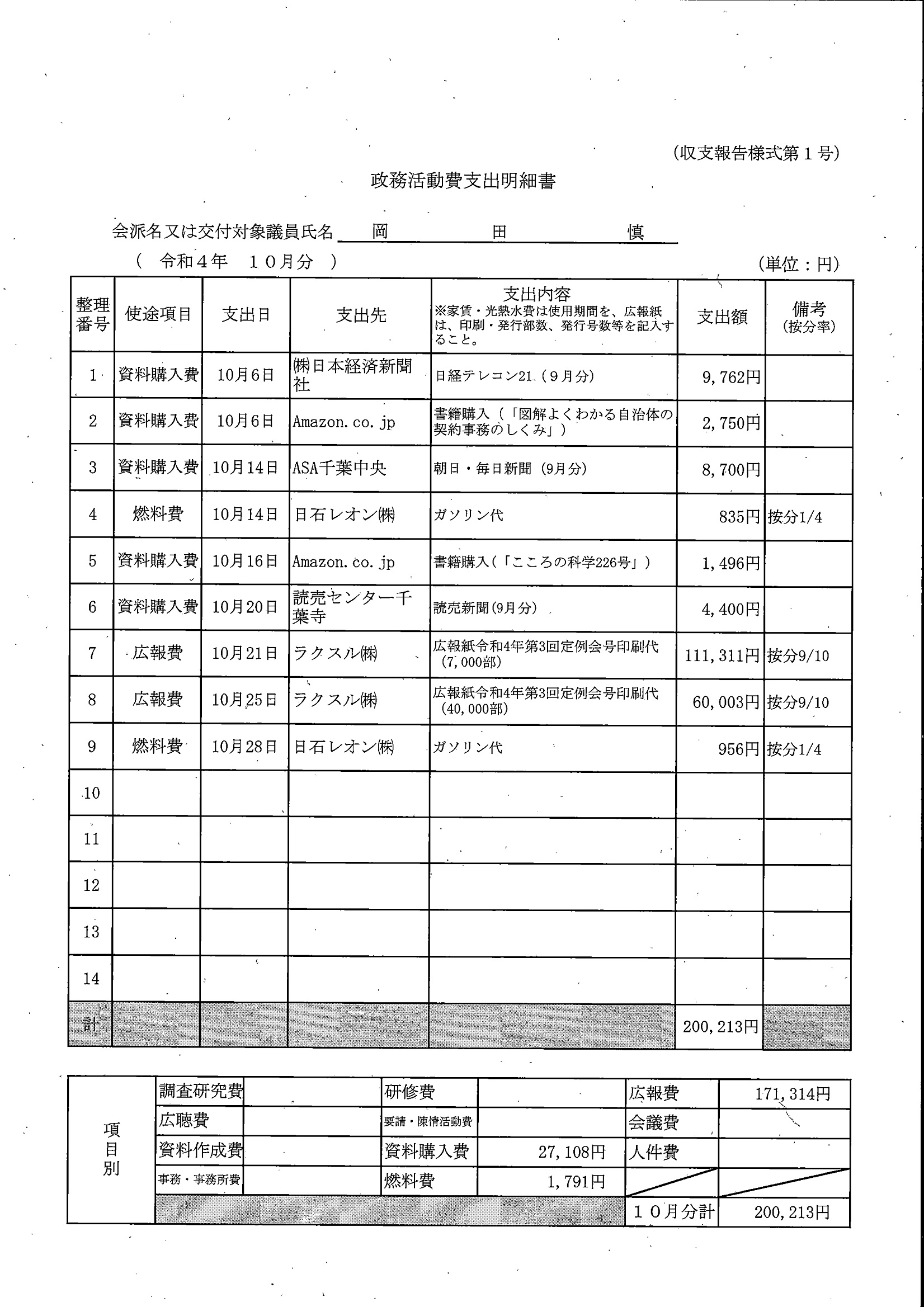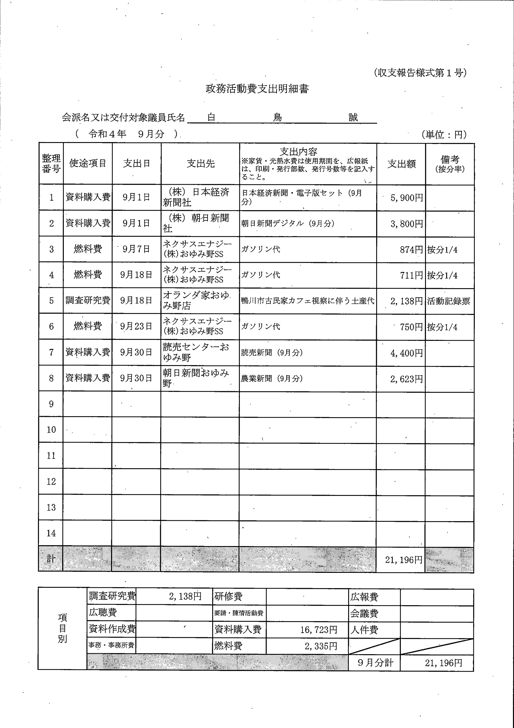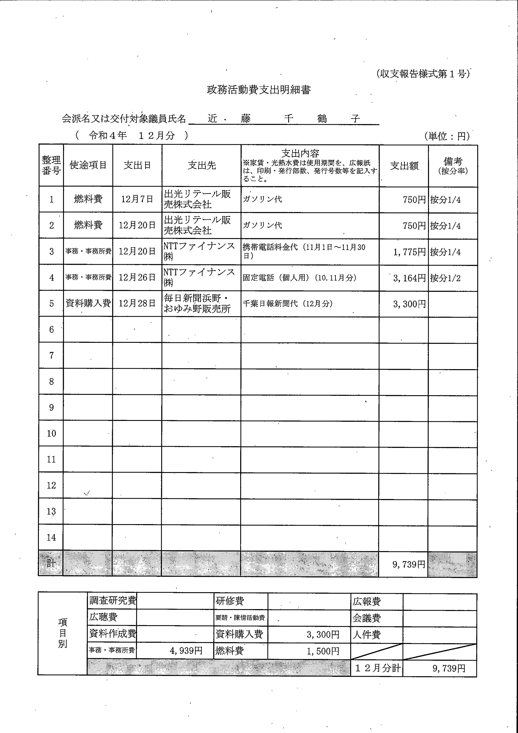 千葉市議会トップページ > 広報・情報公開 > 政務活動費 > 令和4年度交付分(政務活動費収支報告書)