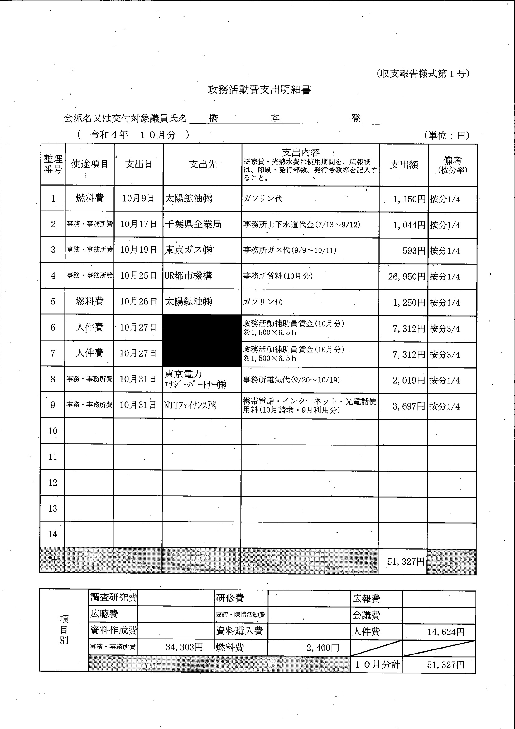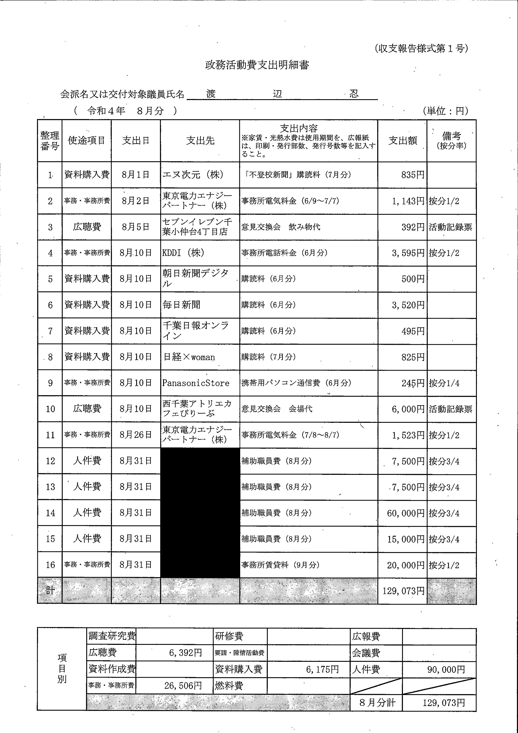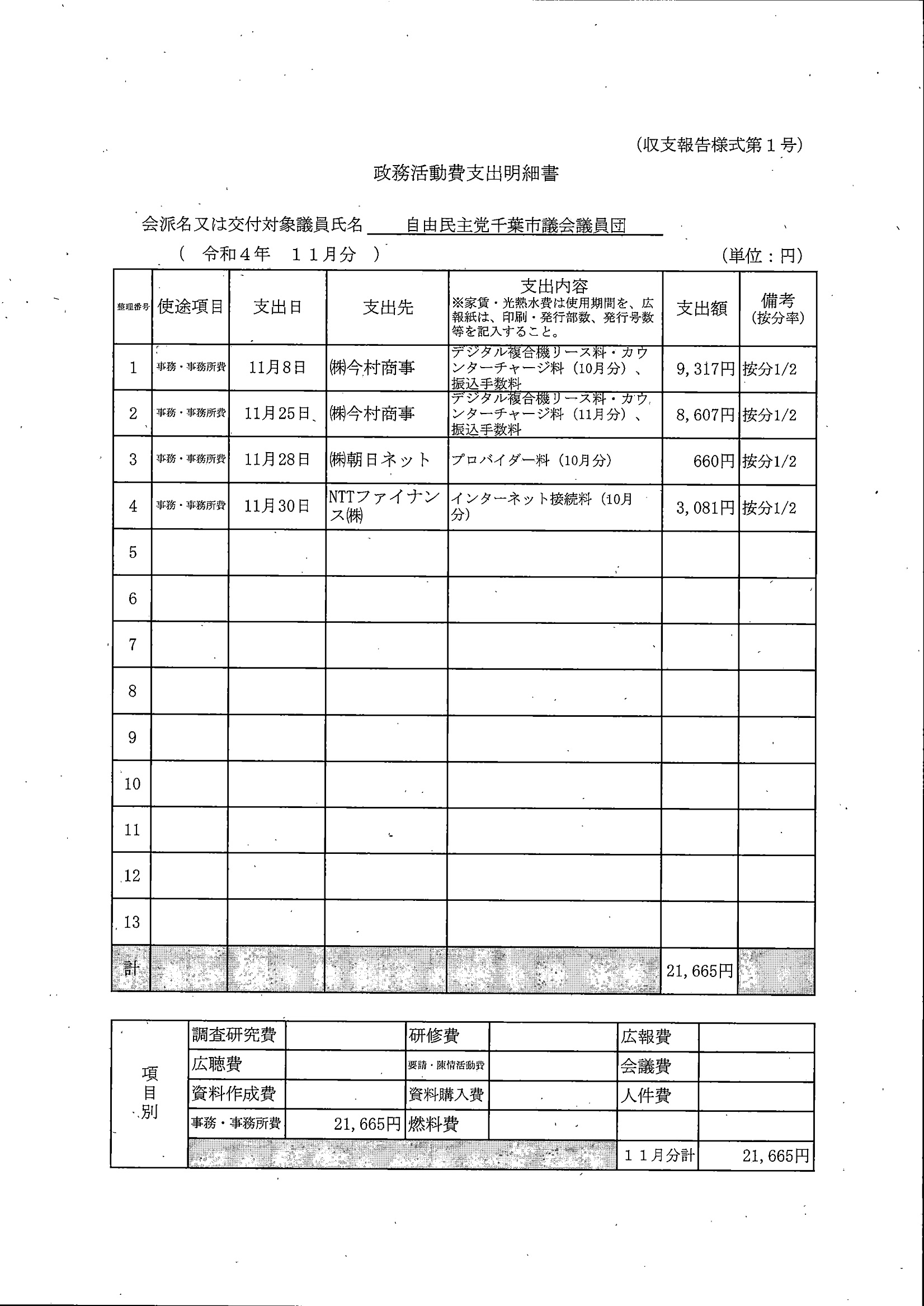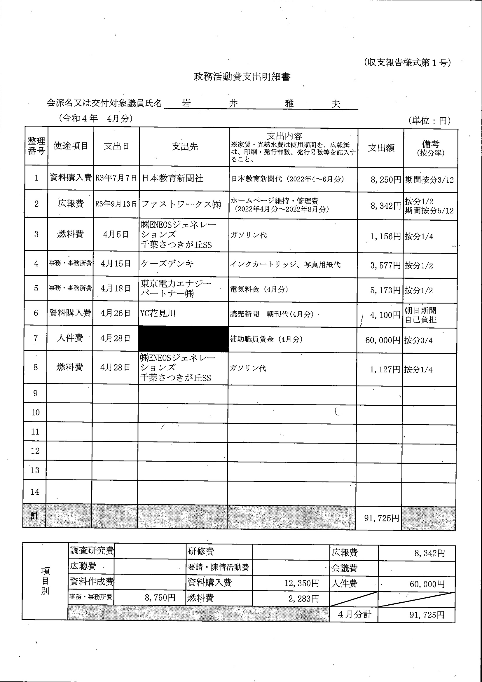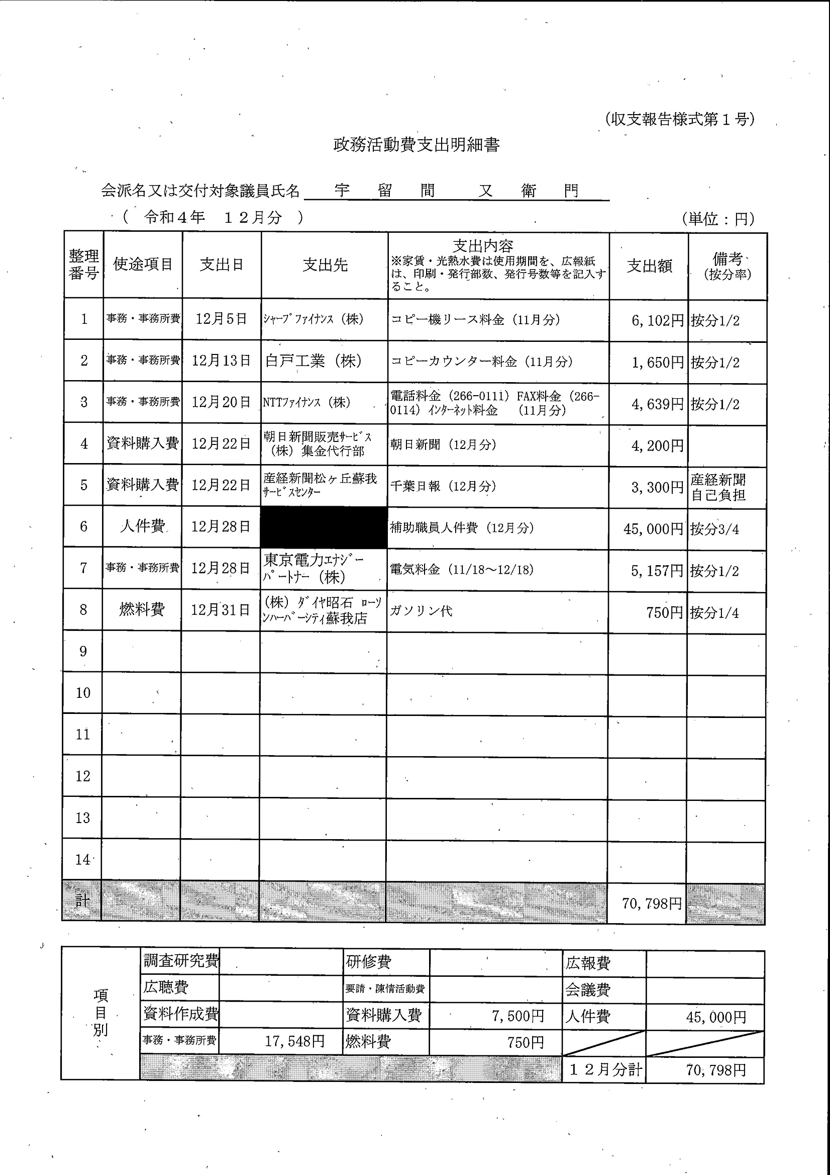 千葉市議会トップページ > 広報・情報公開 > 政務活動費 > 令和4年度交付分(政務活動費収支報告書)