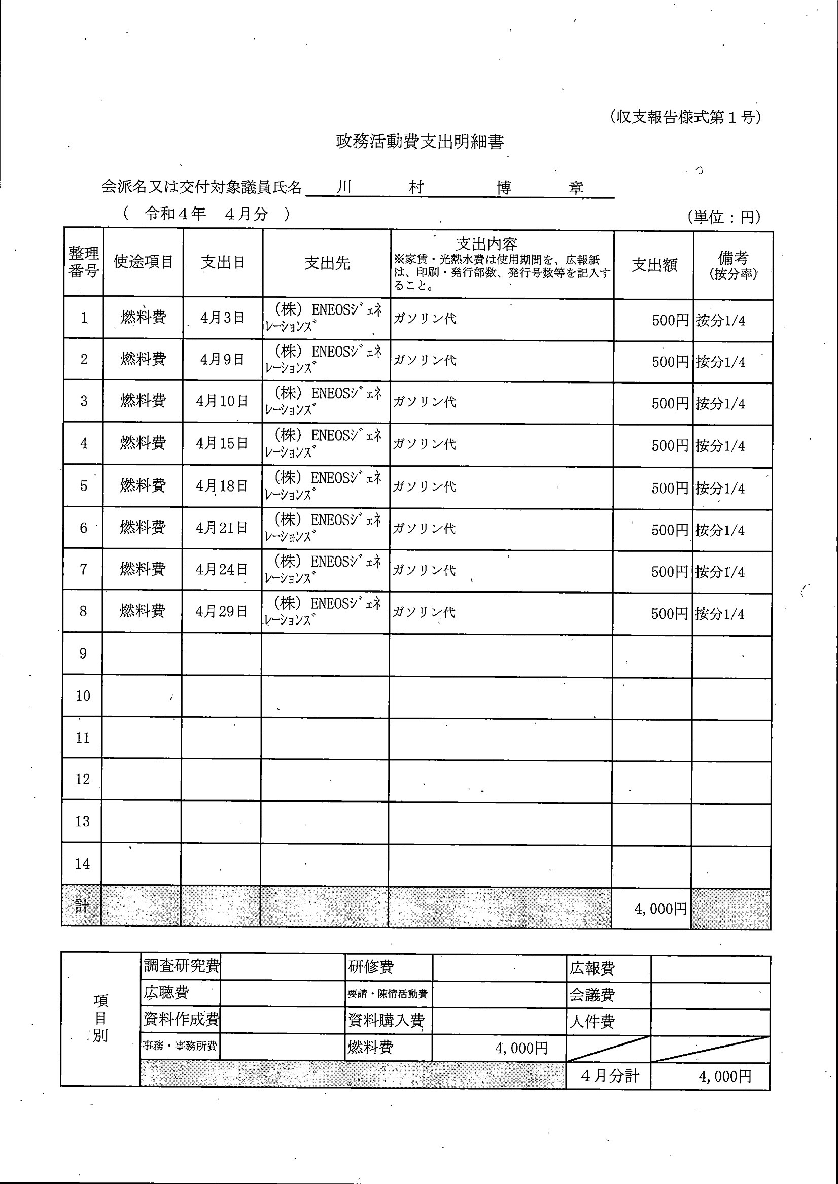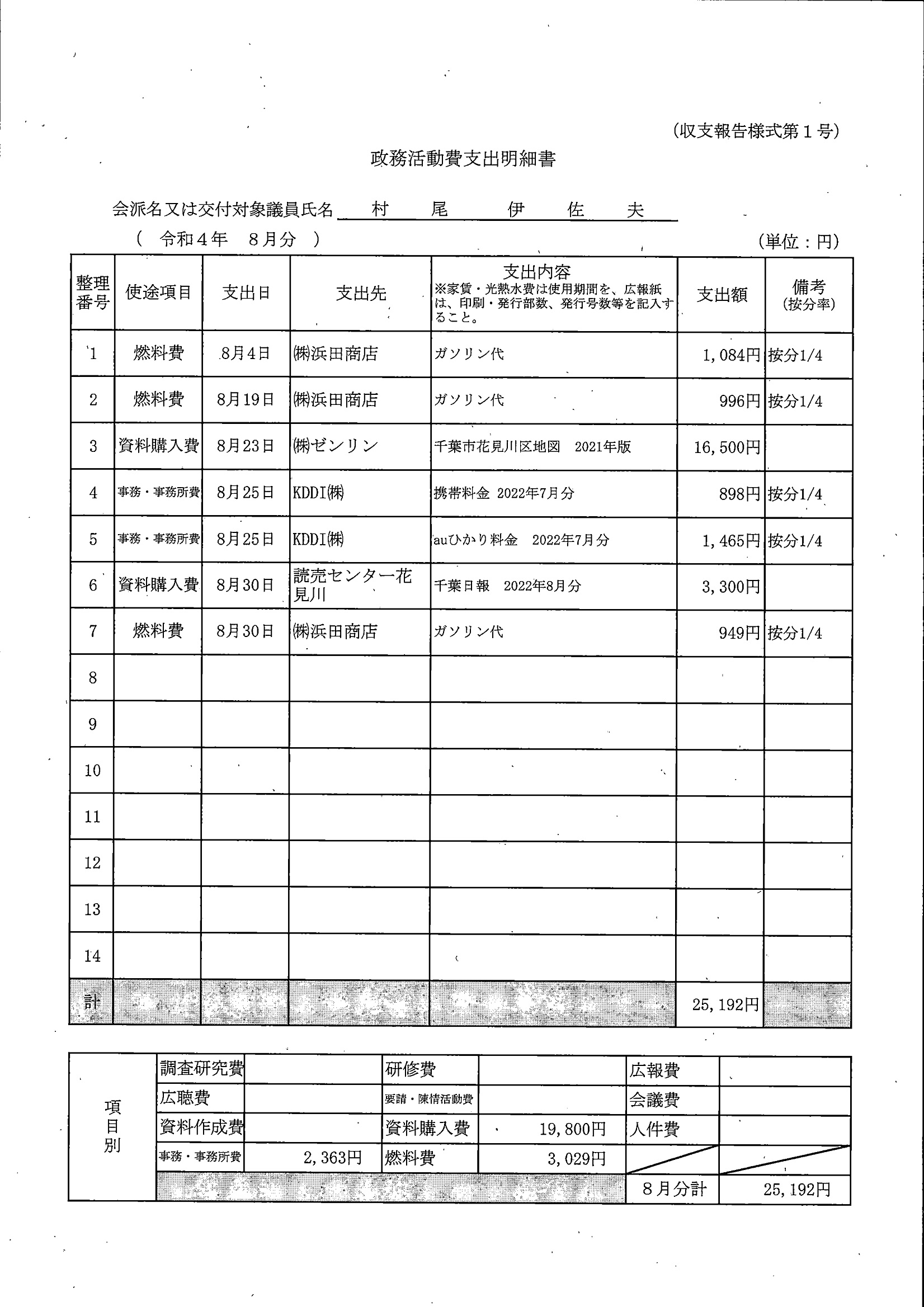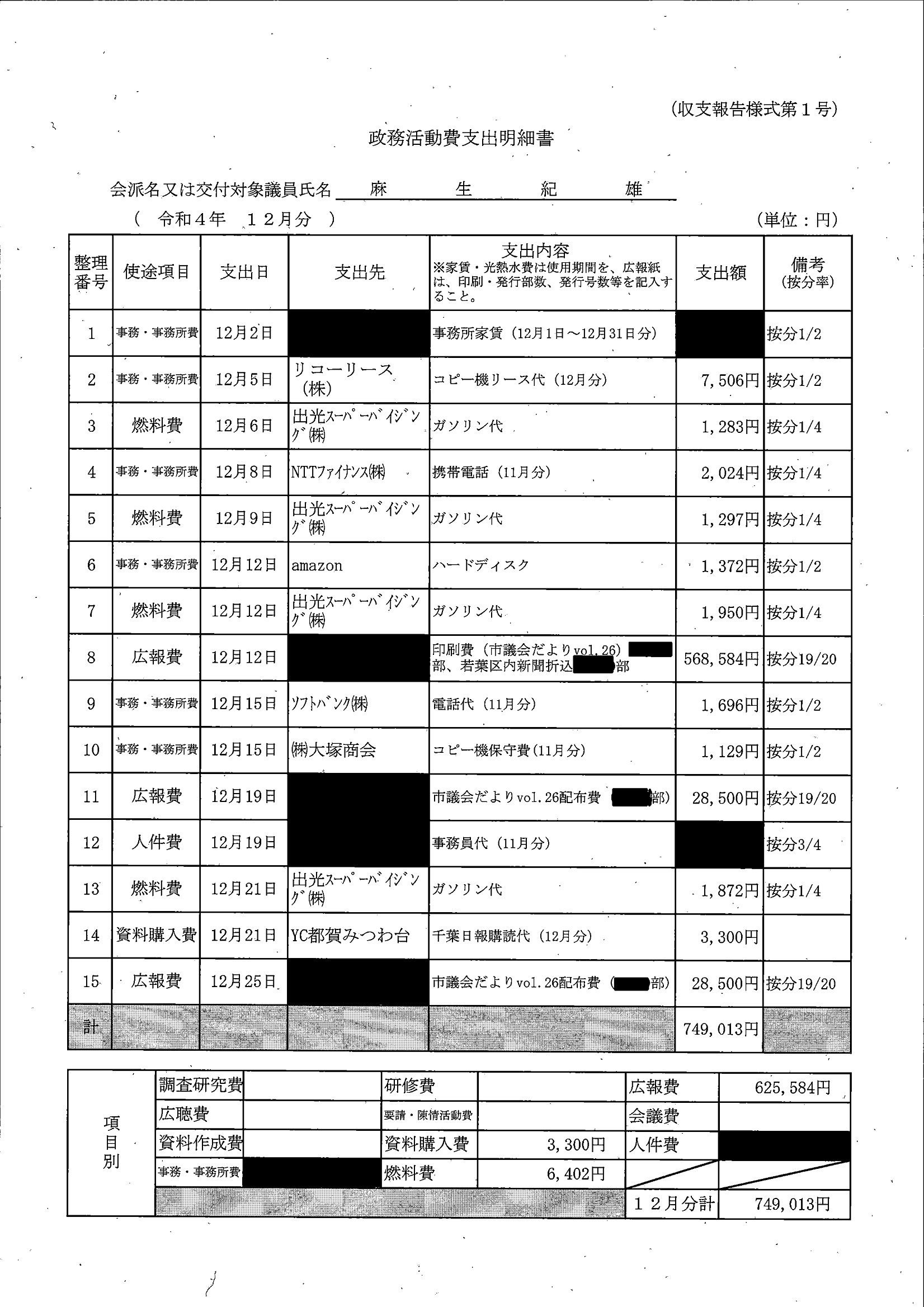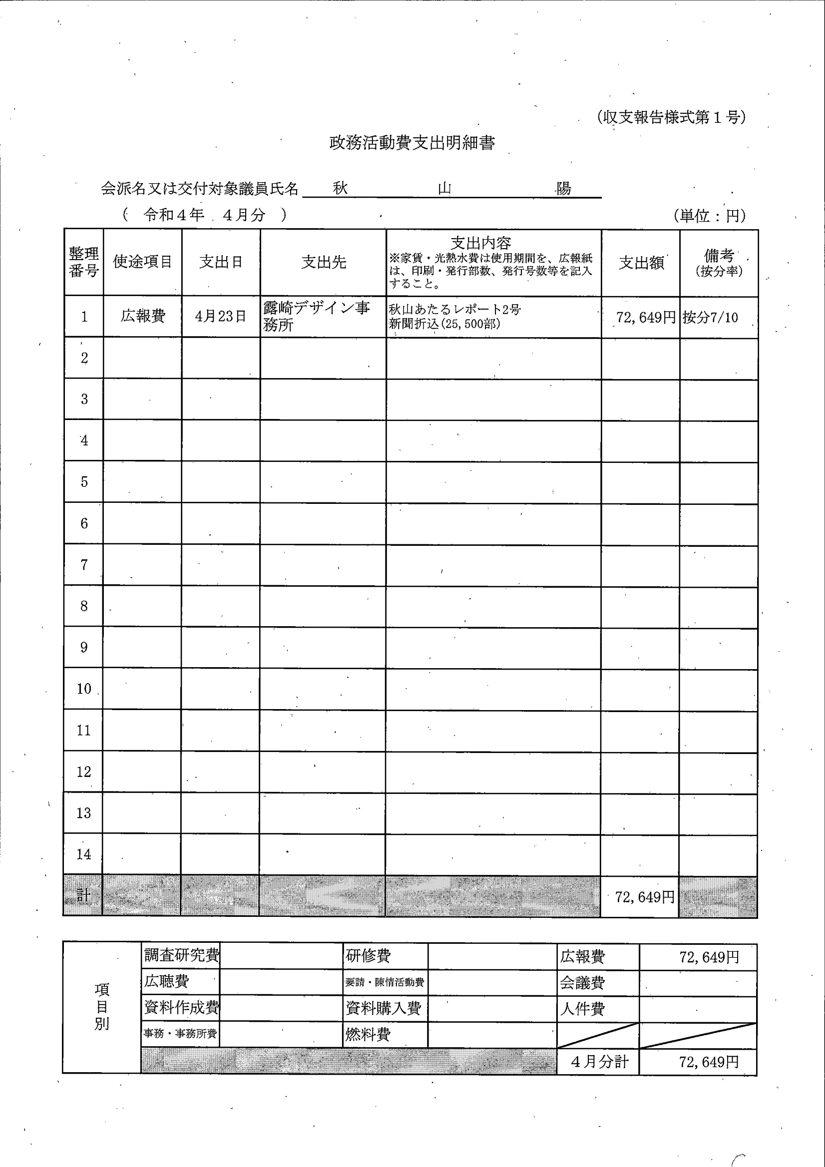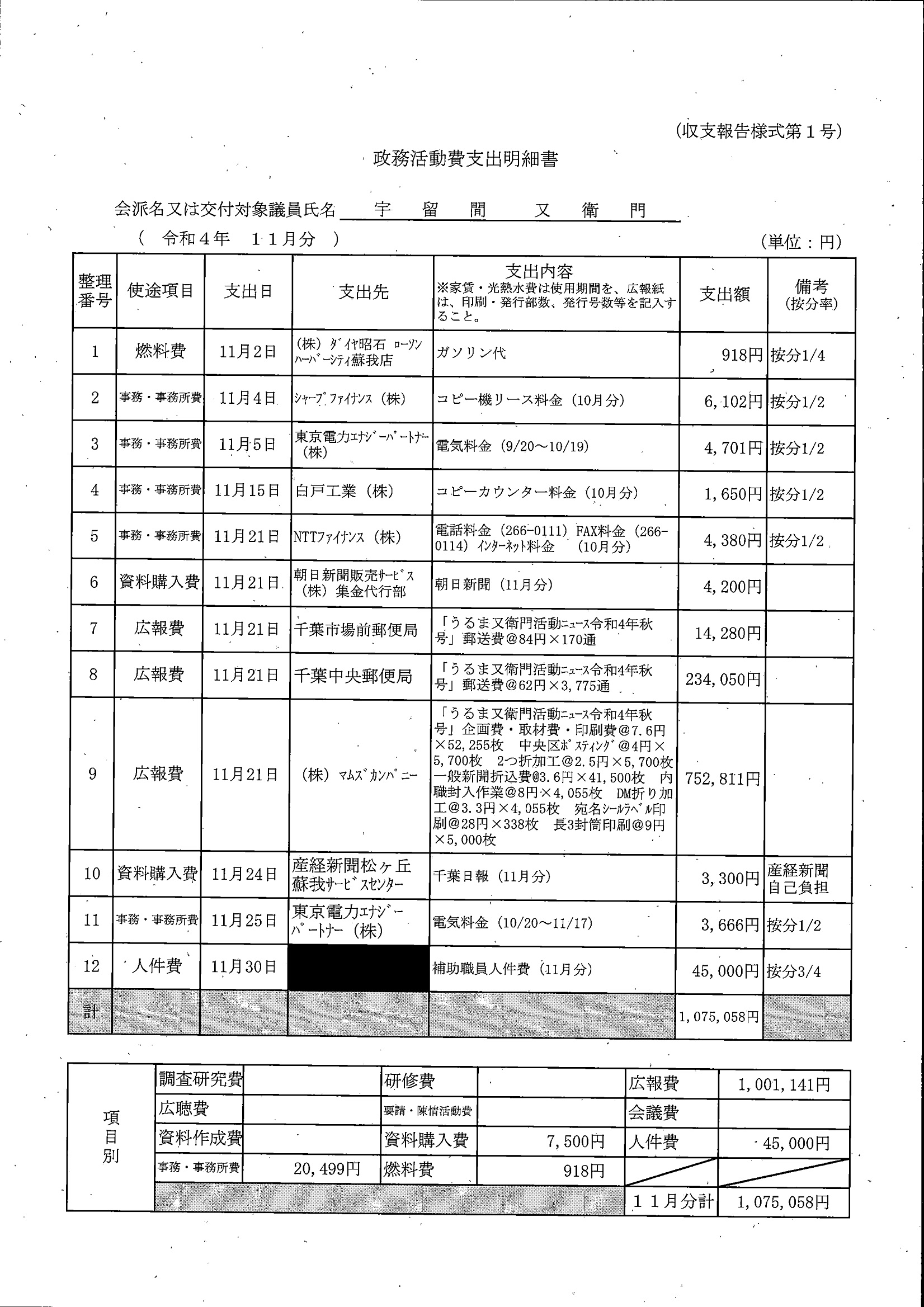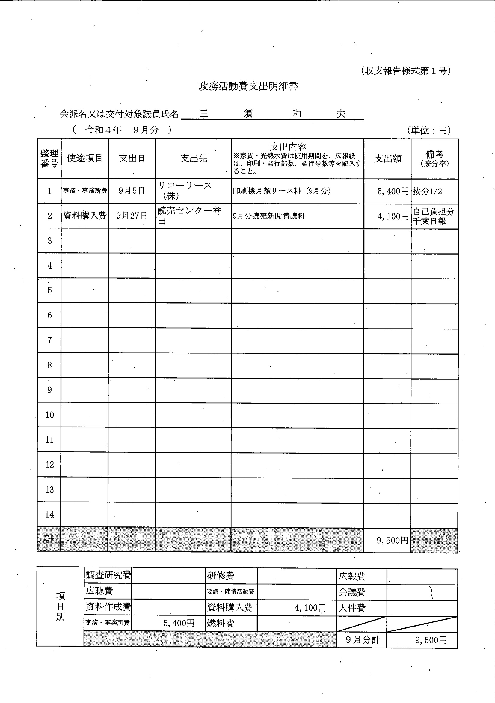 千葉市議会トップページ > 広報・情報公開 > 政務活動費 > 令和4年度交付分(政務活動費収支報告書)