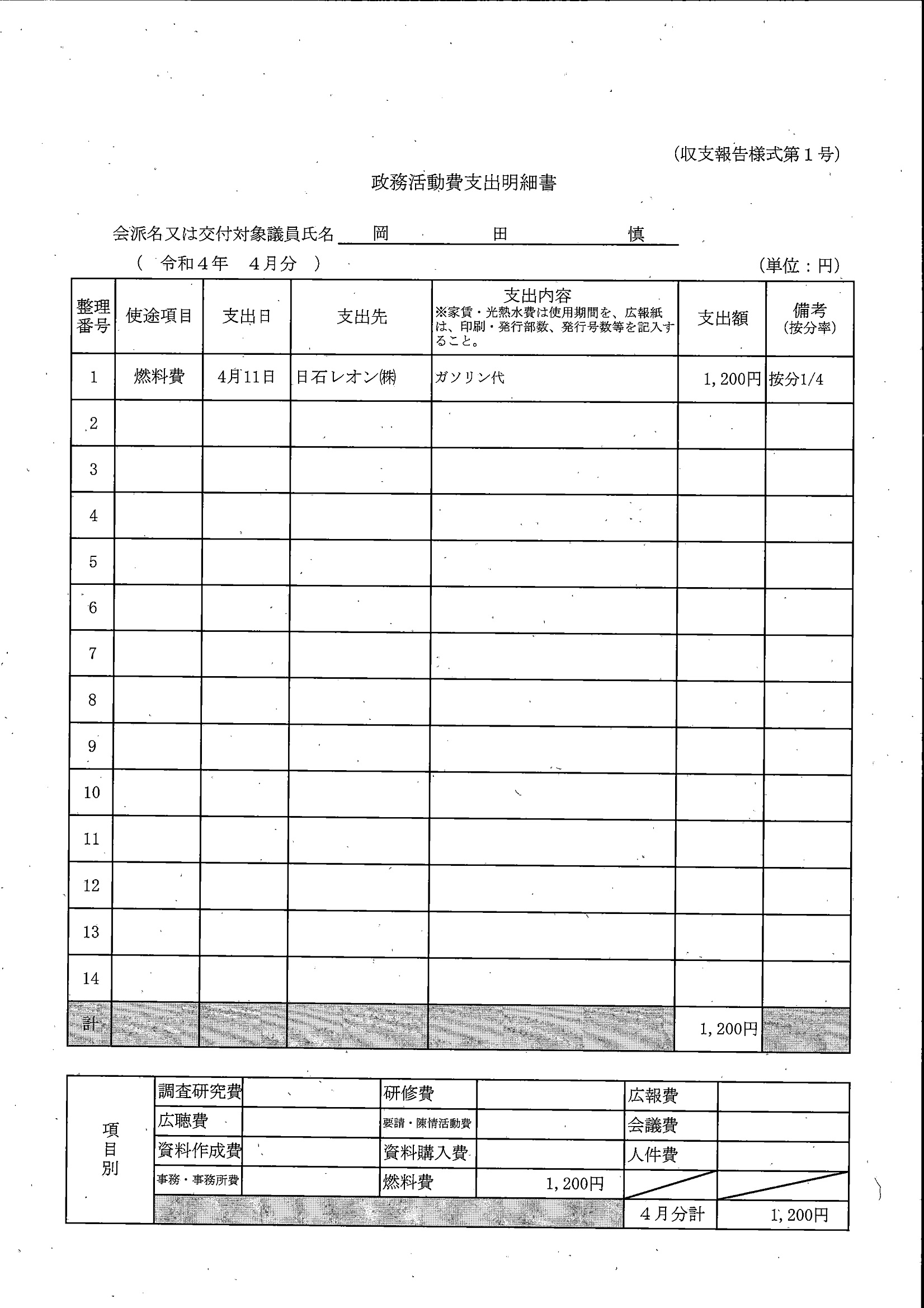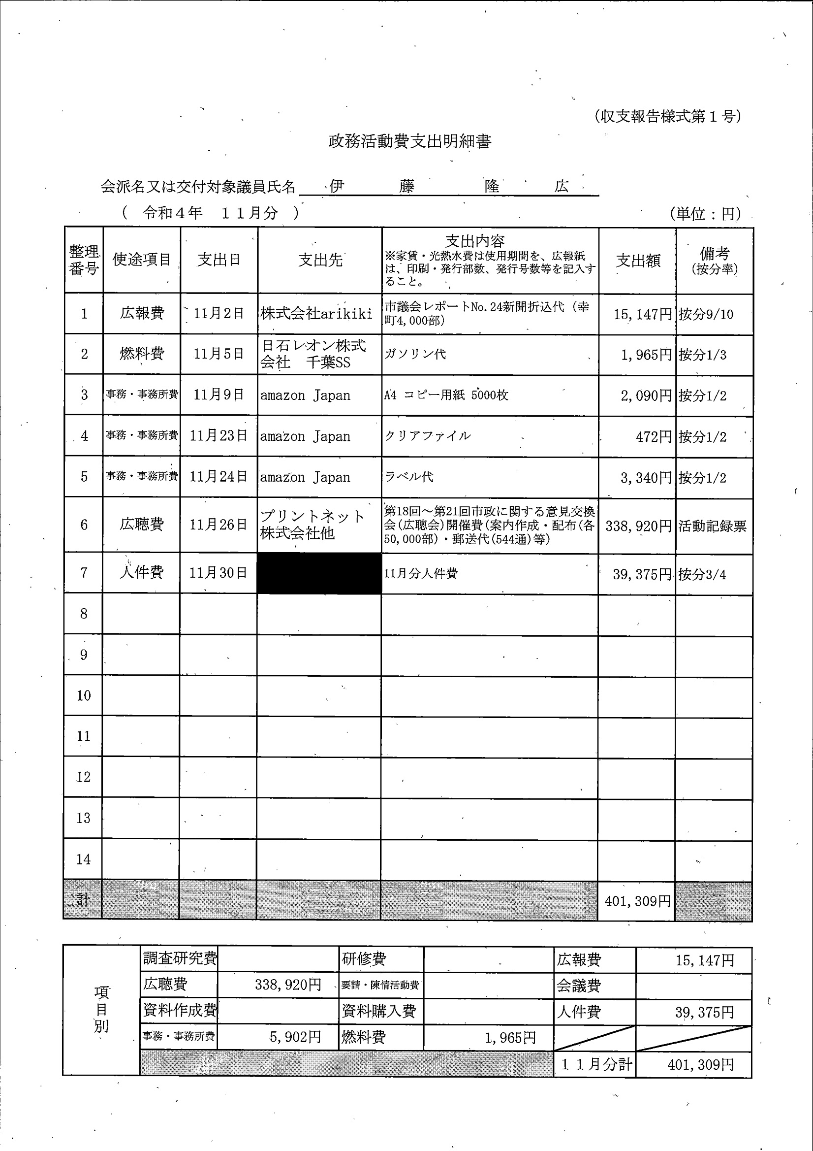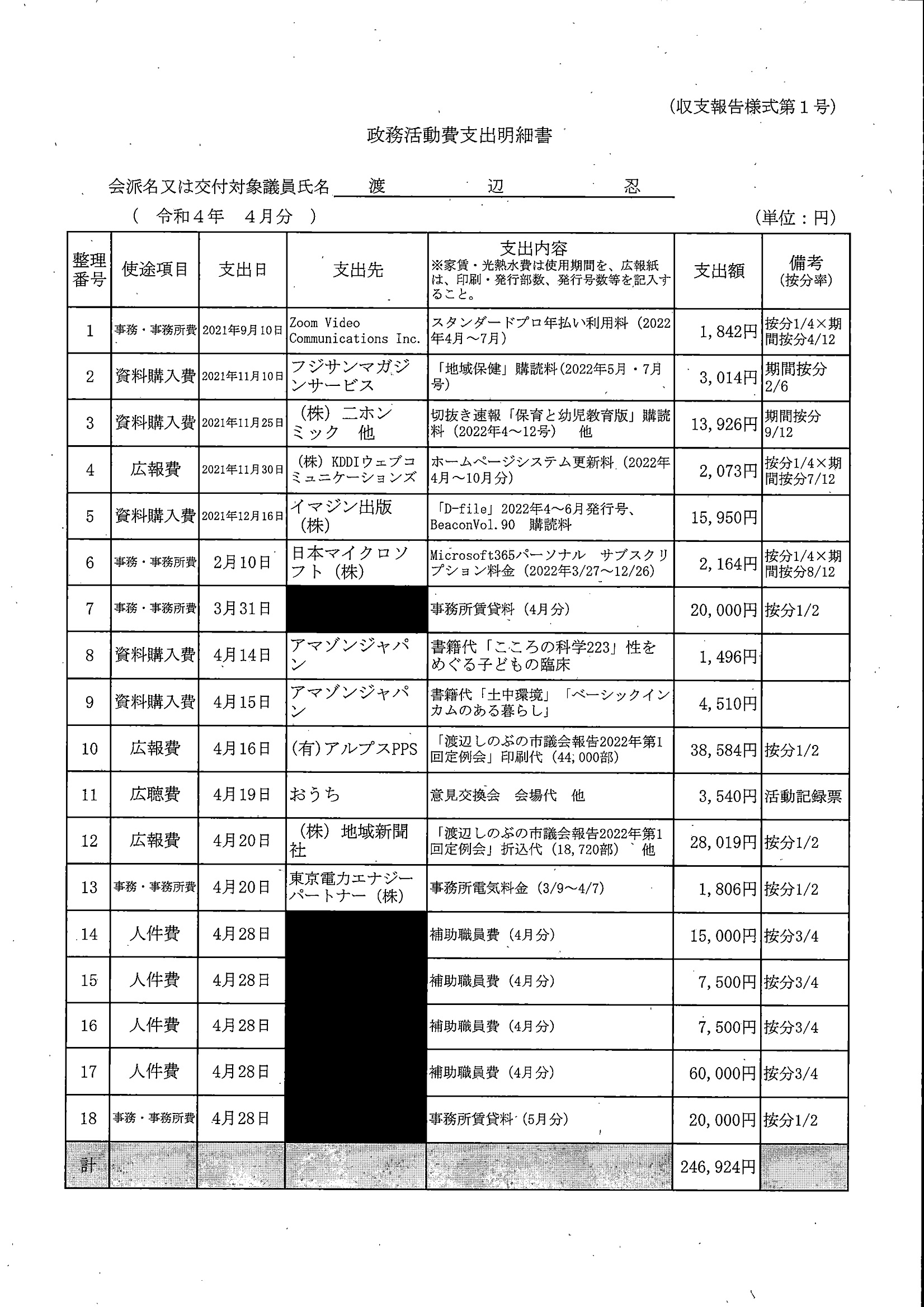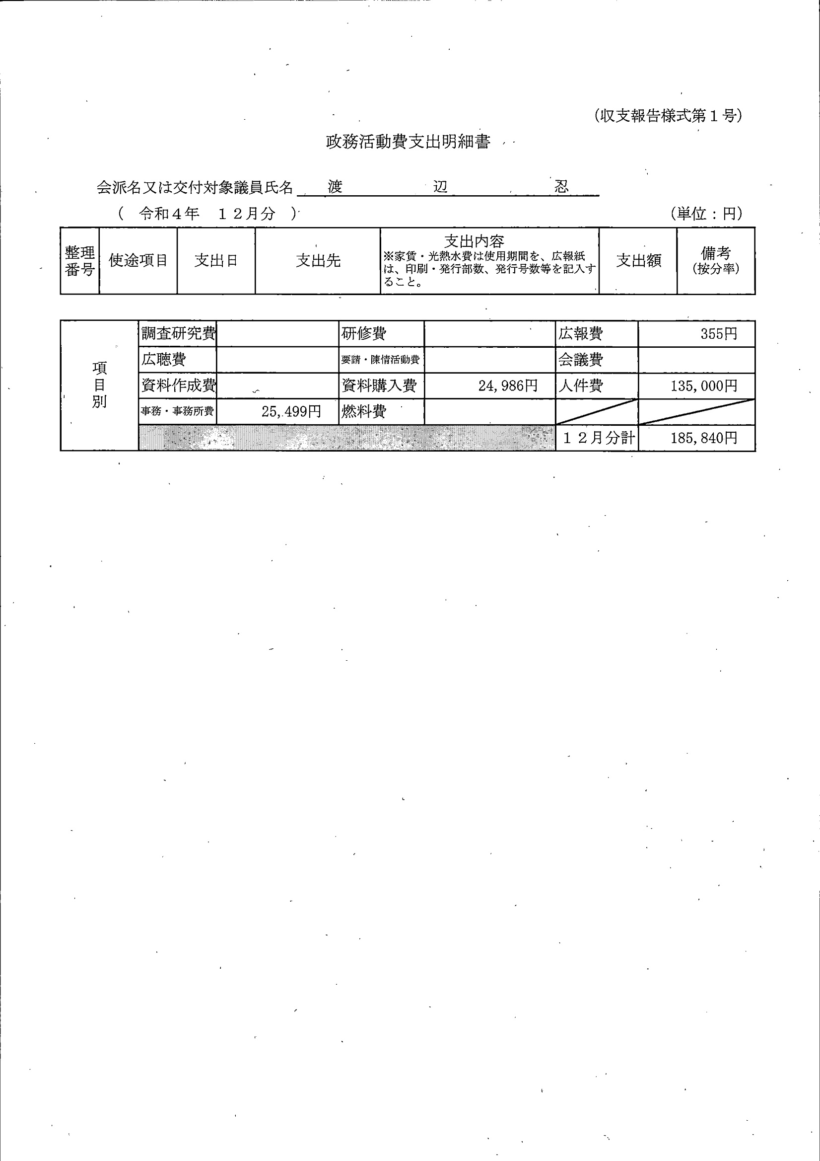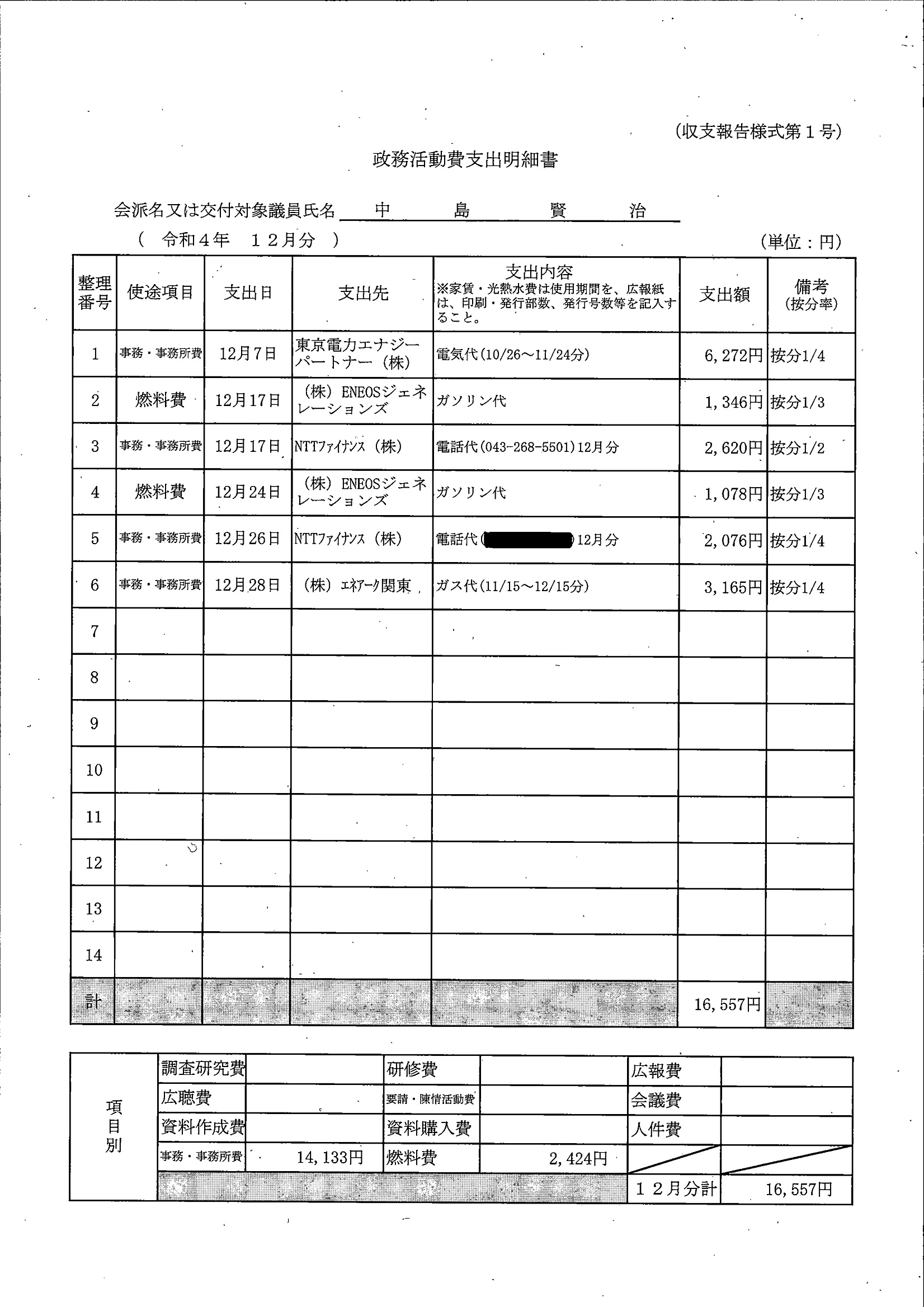 千葉市議会トップページ > 広報・情報公開 > 政務活動費 > 令和4年度交付分(政務活動費収支報告書)