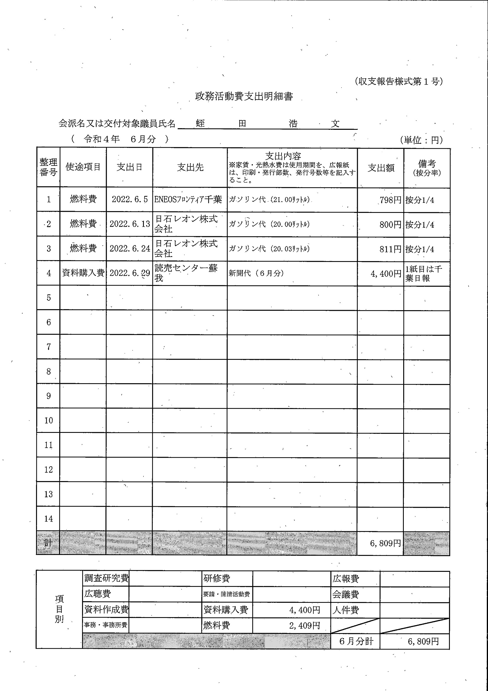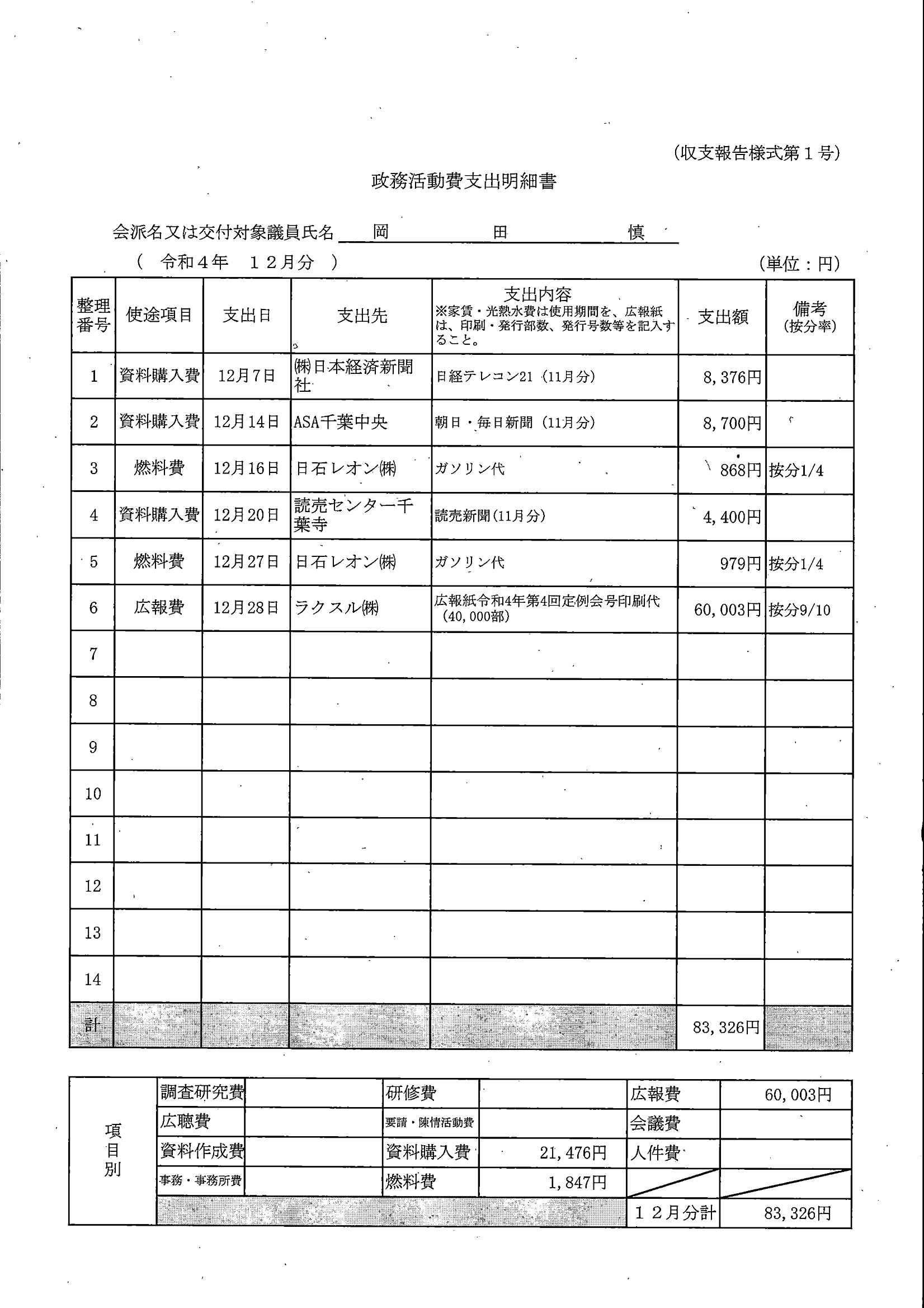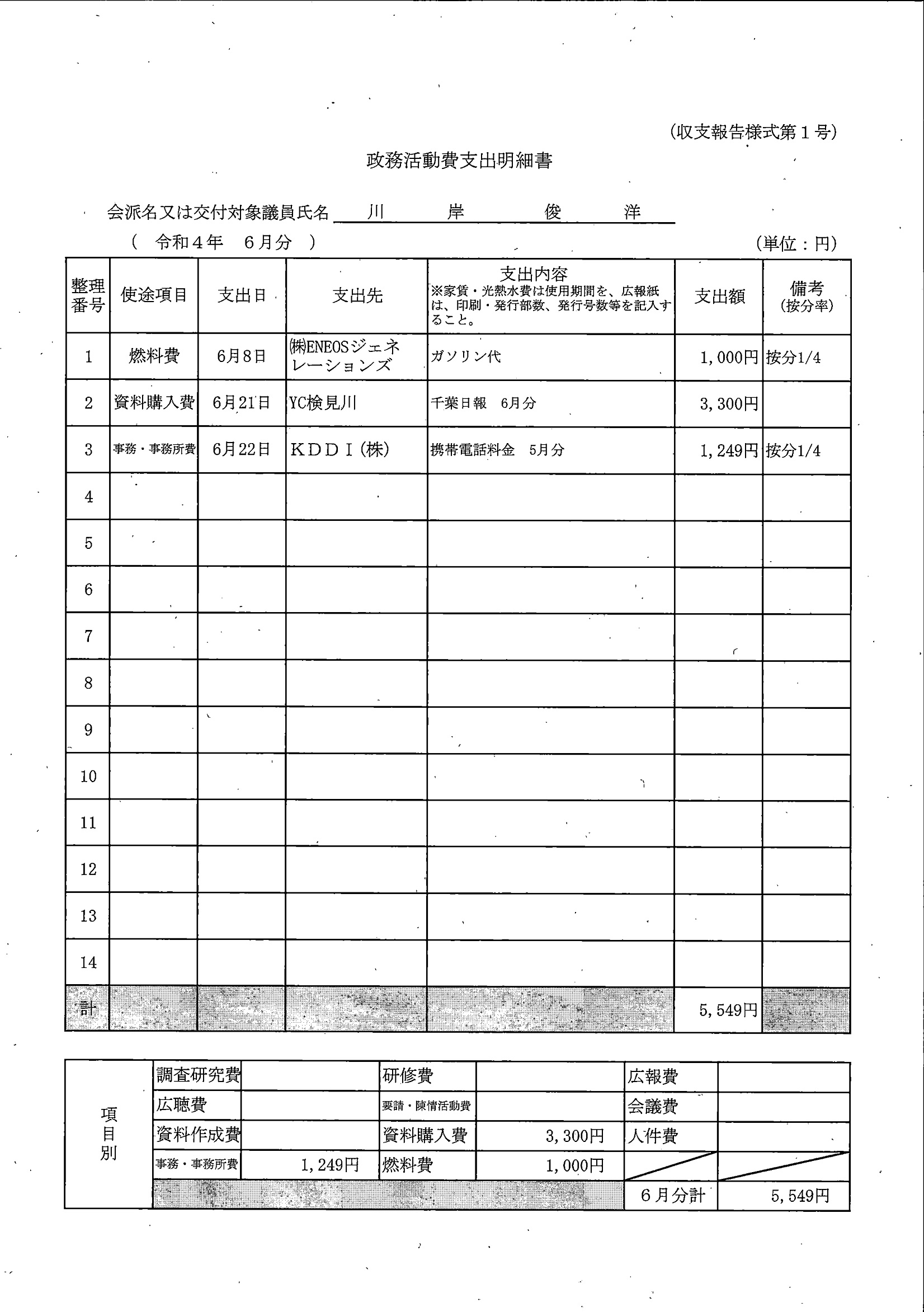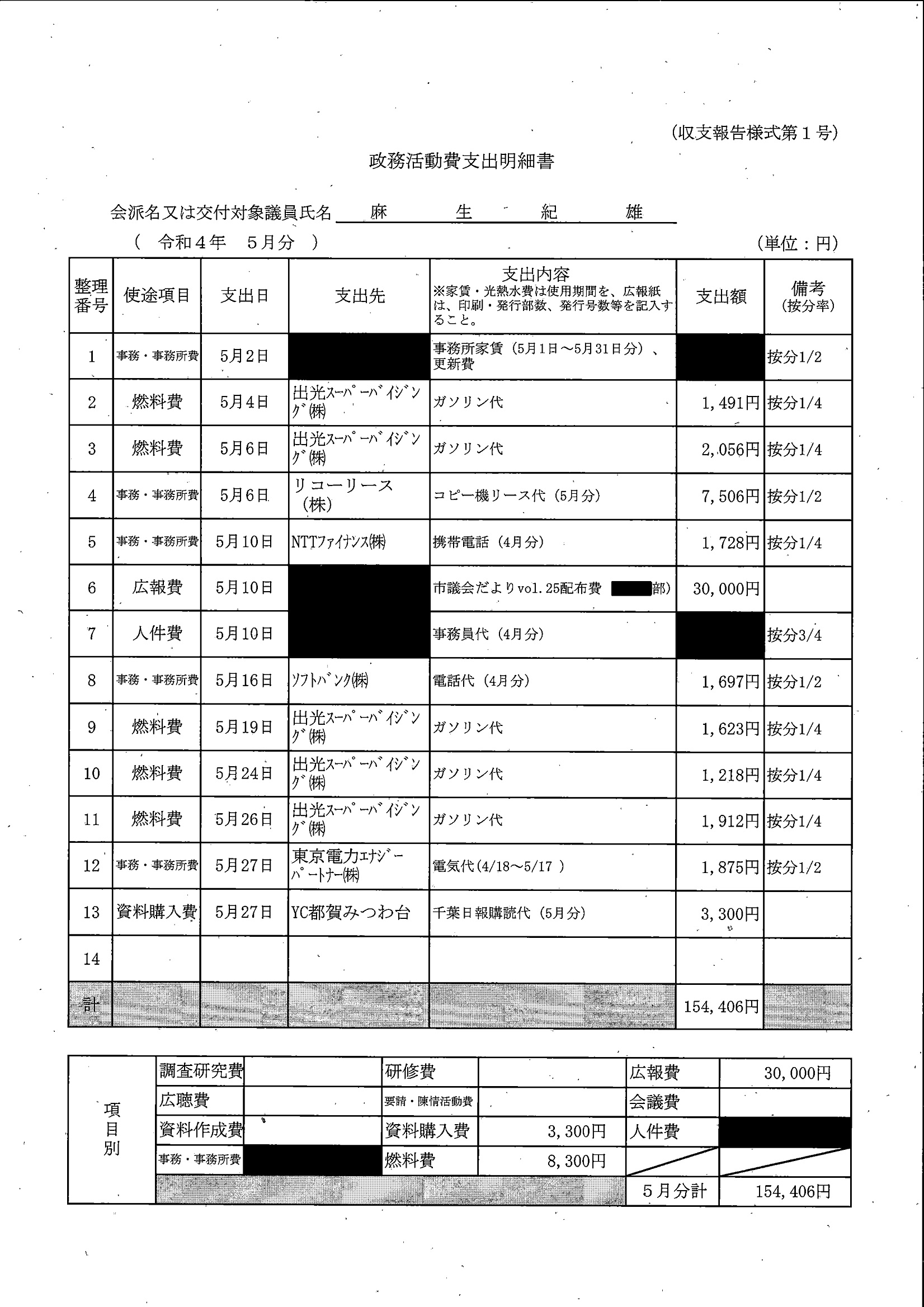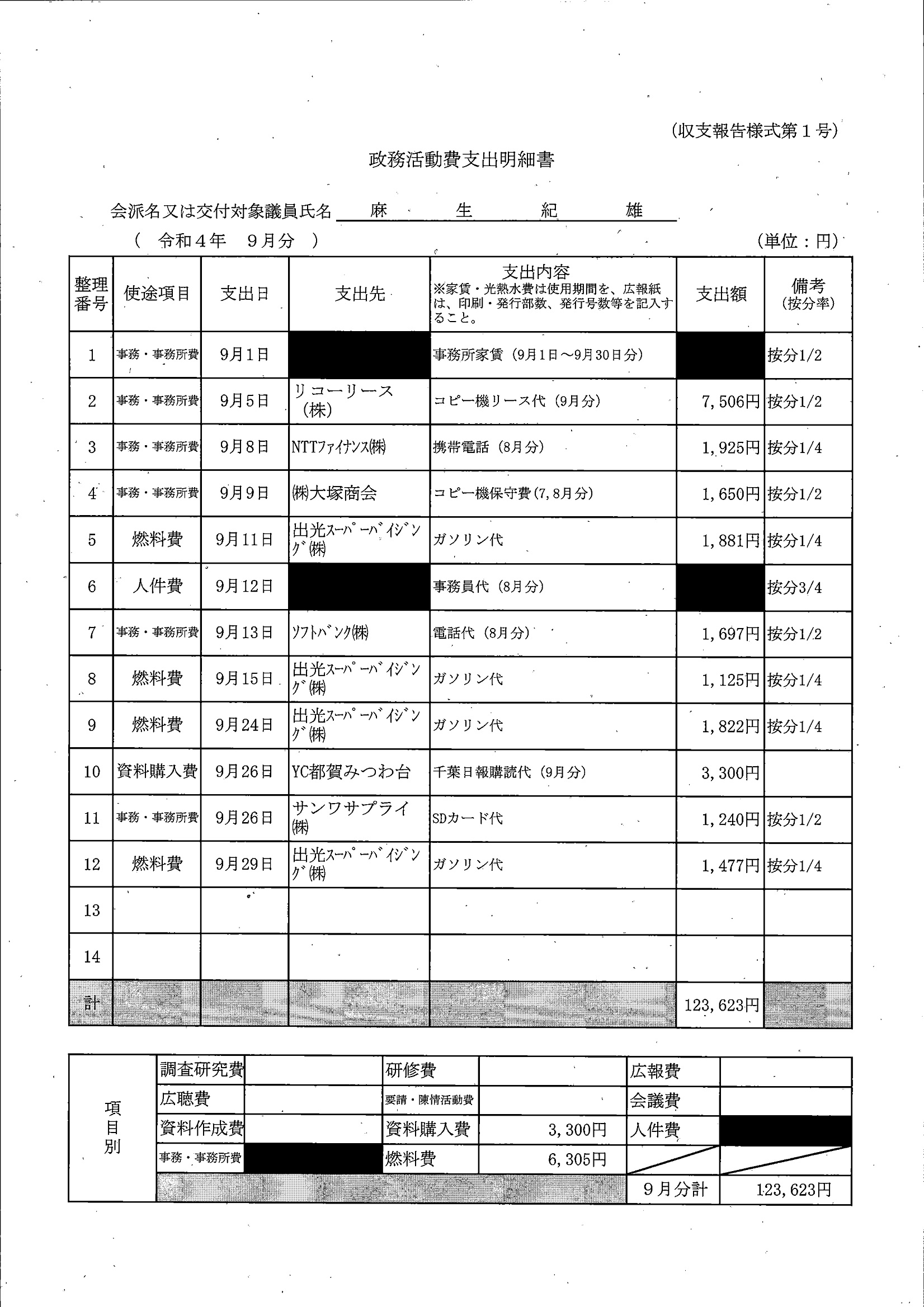 千葉市議会トップページ > 広報・情報公開 > 政務活動費 > 令和4年度交付分(政務活動費収支報告書)