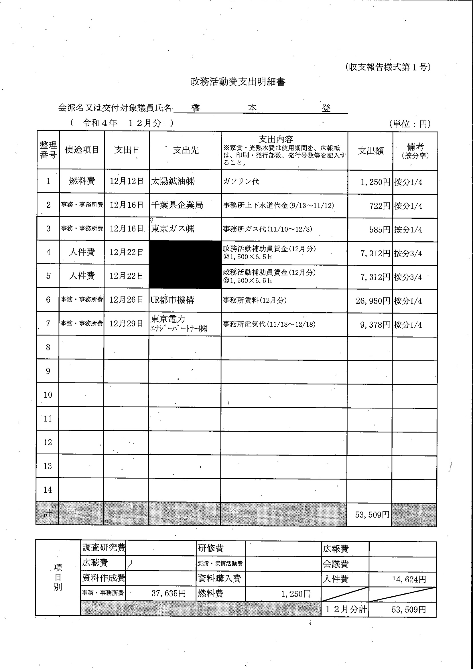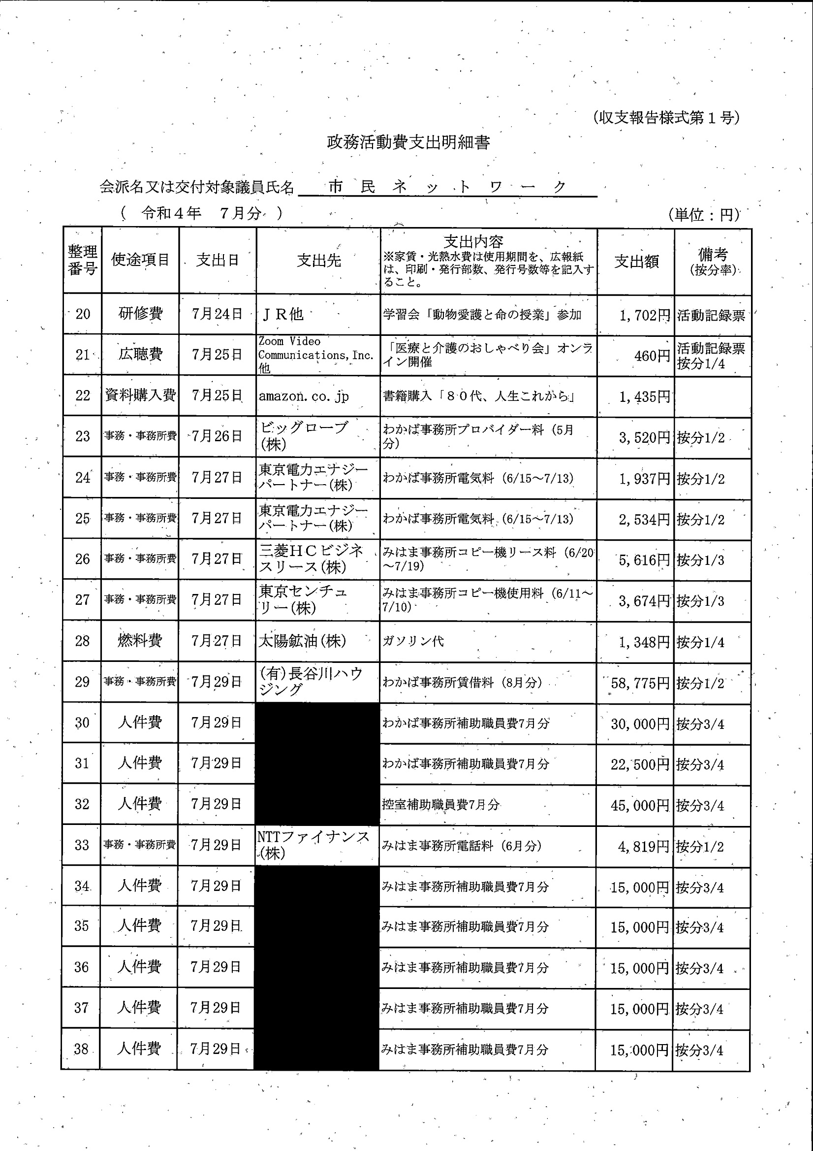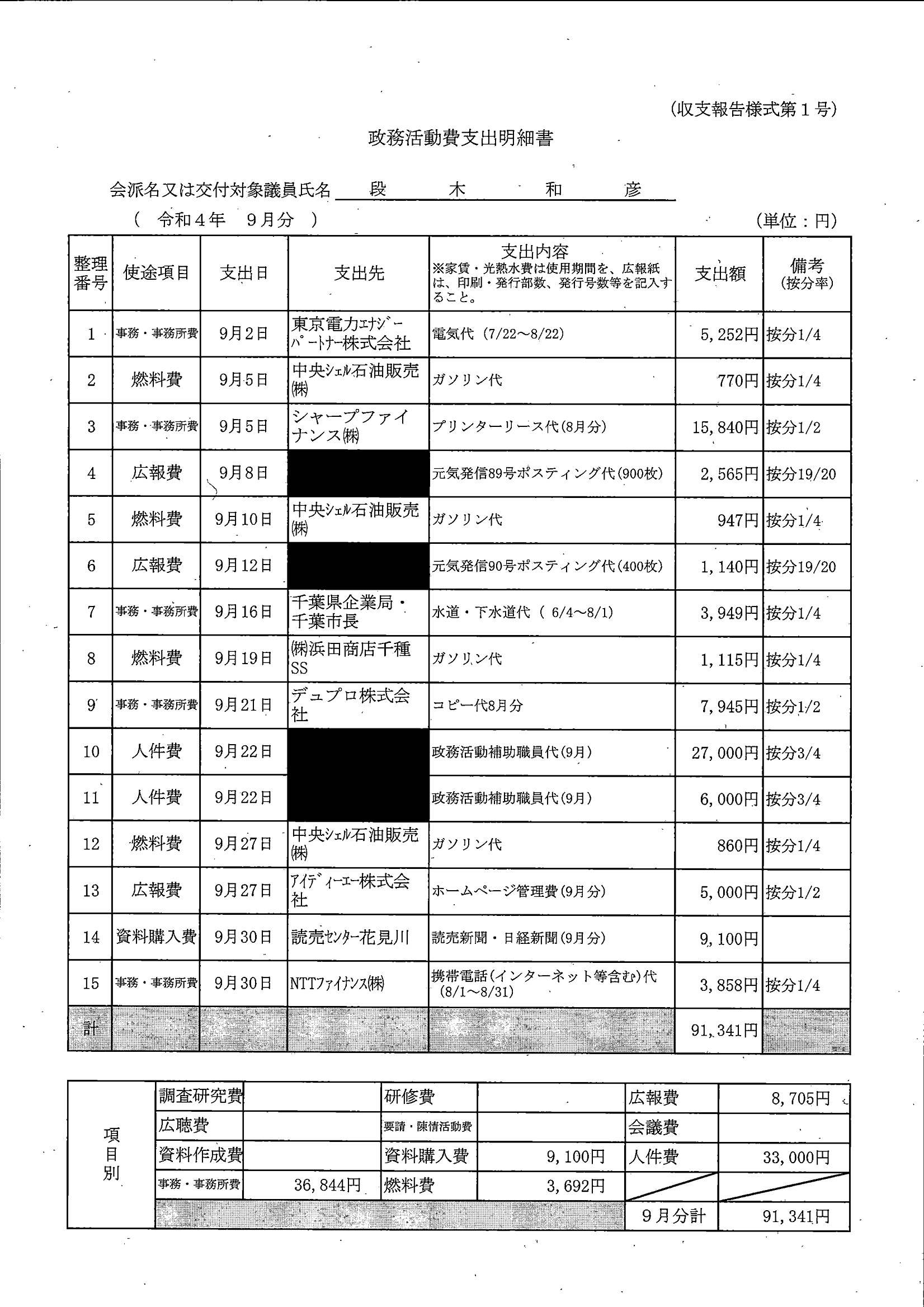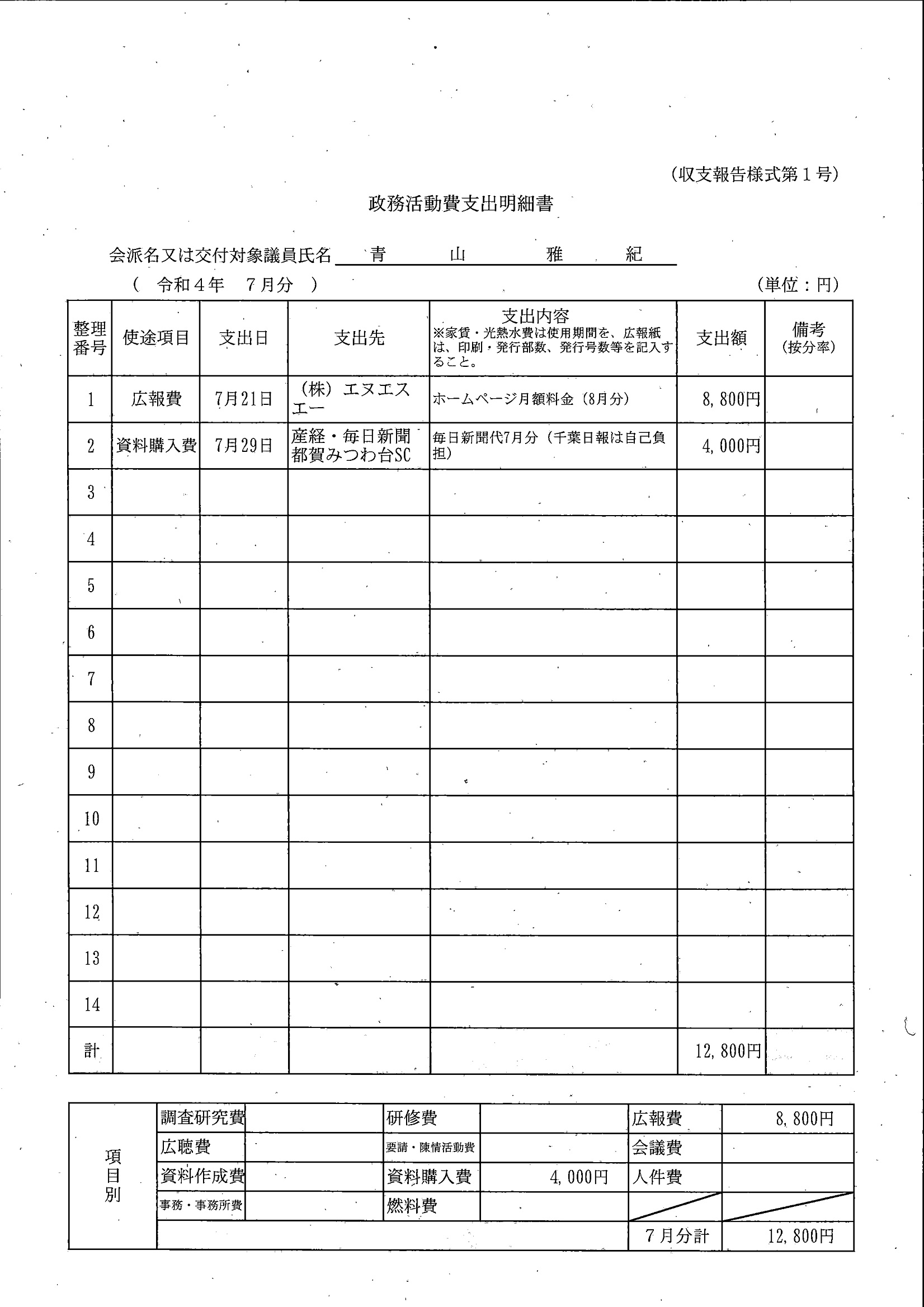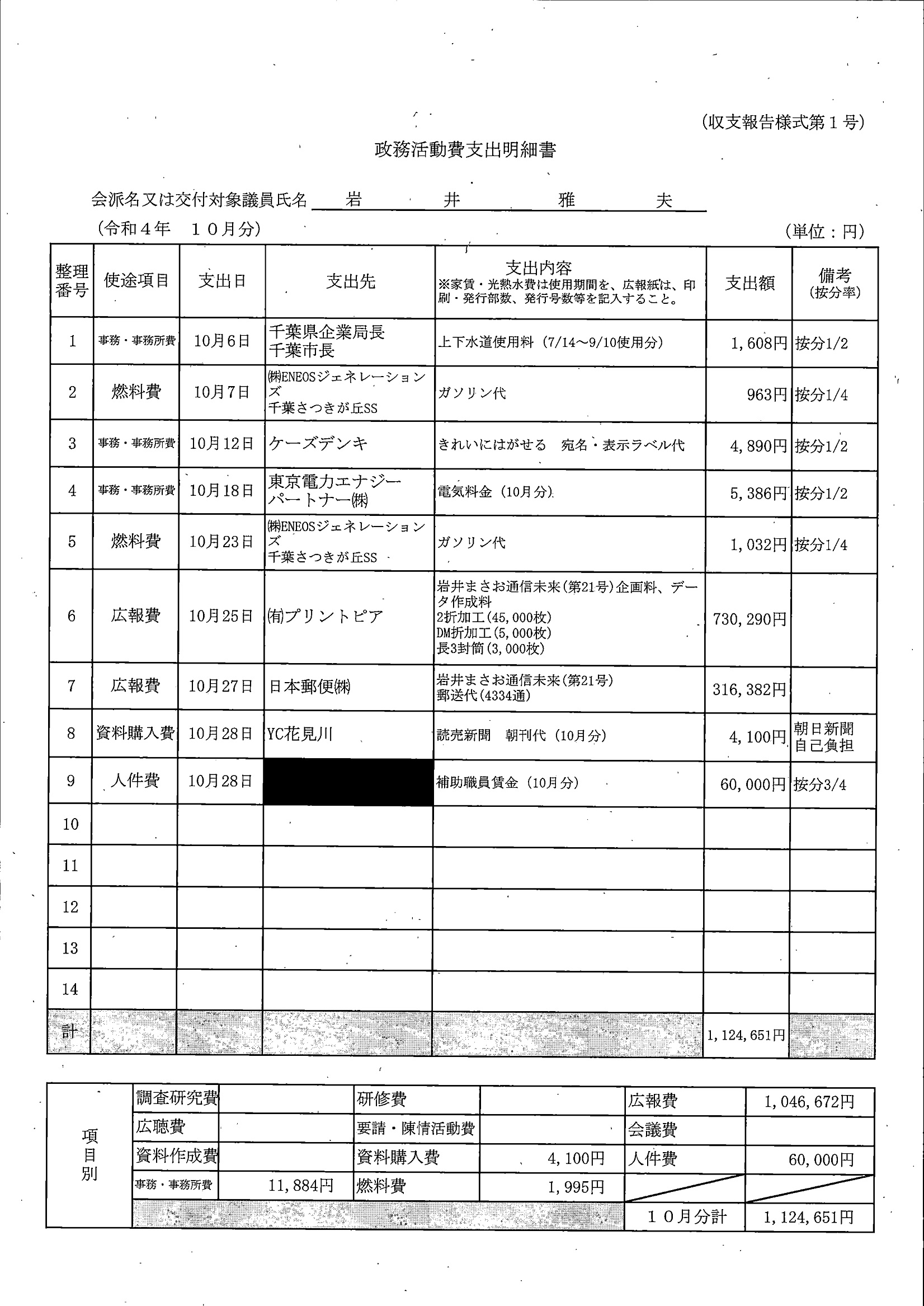 千葉市議会トップページ > 広報・情報公開 > 政務活動費 > 令和4年度交付分(政務活動費収支報告書)
