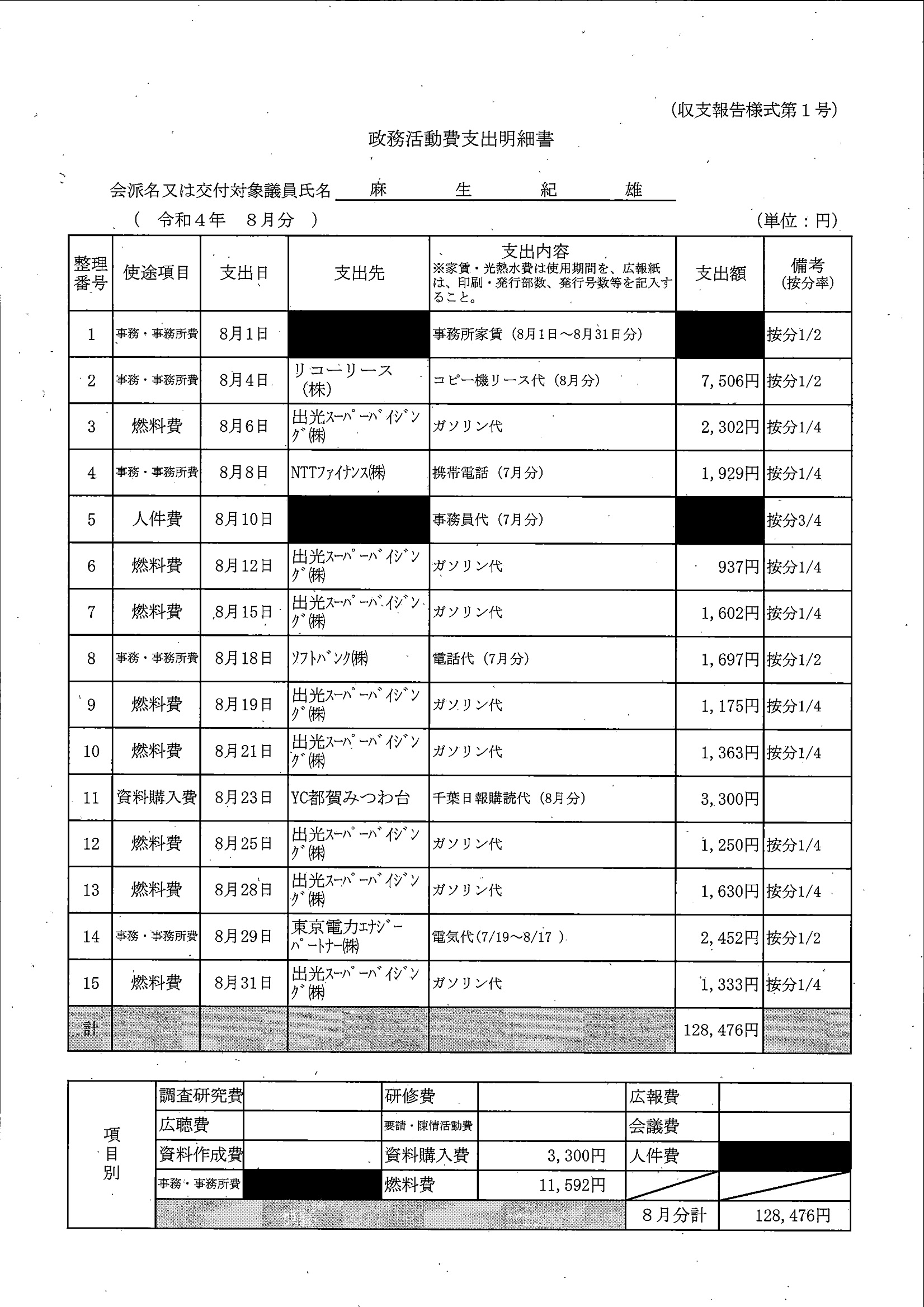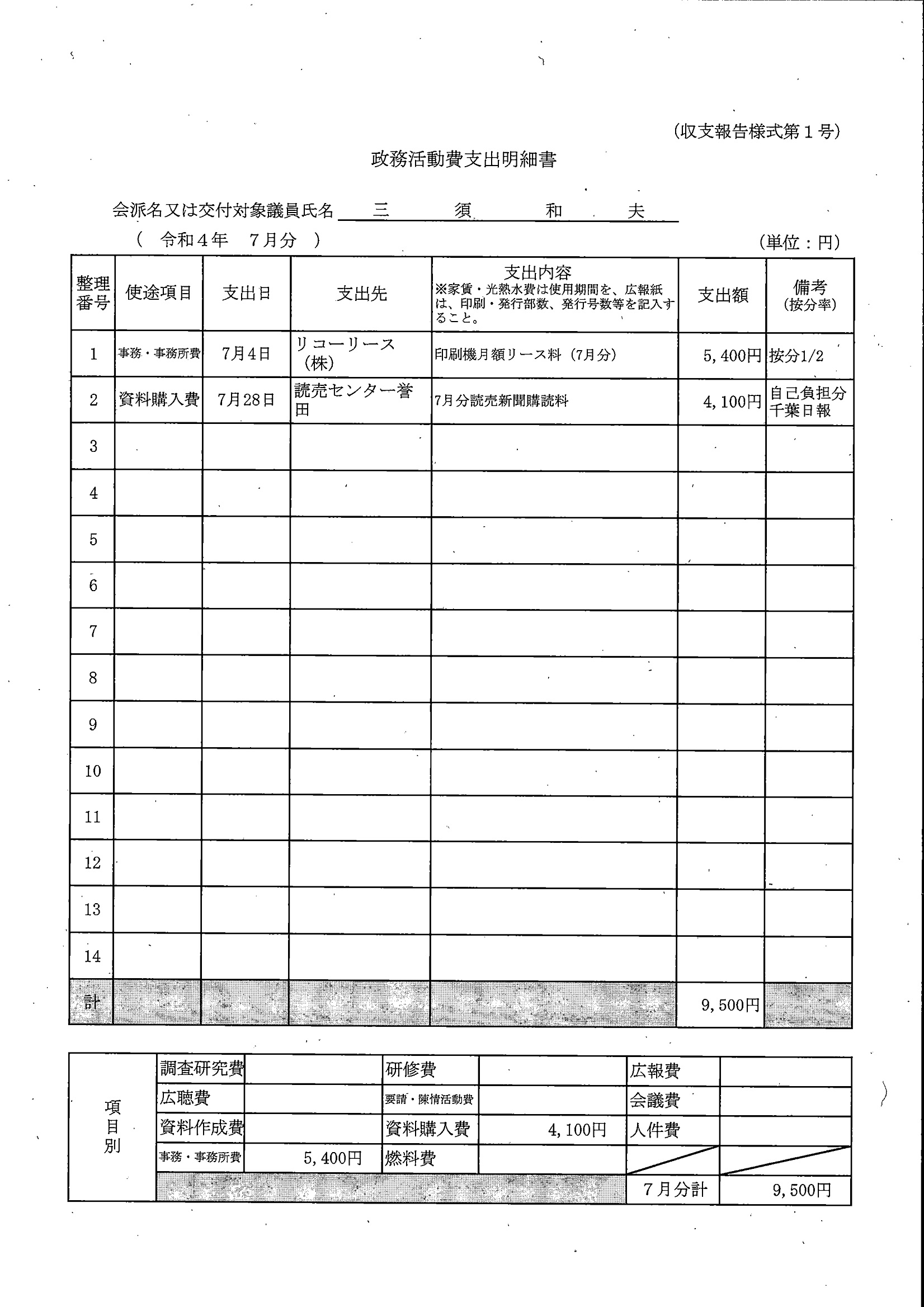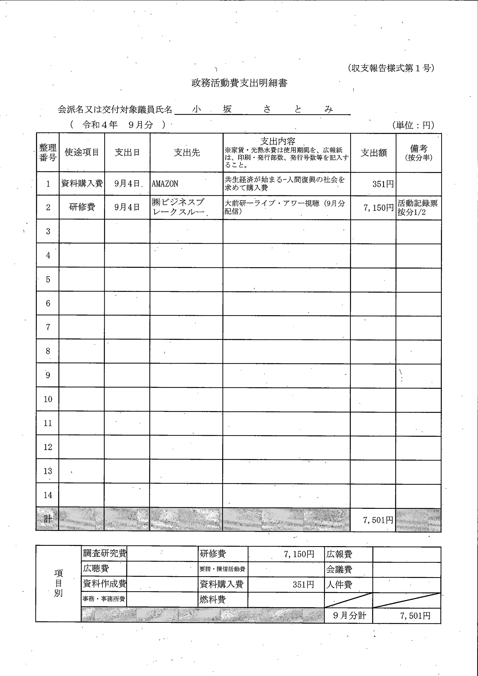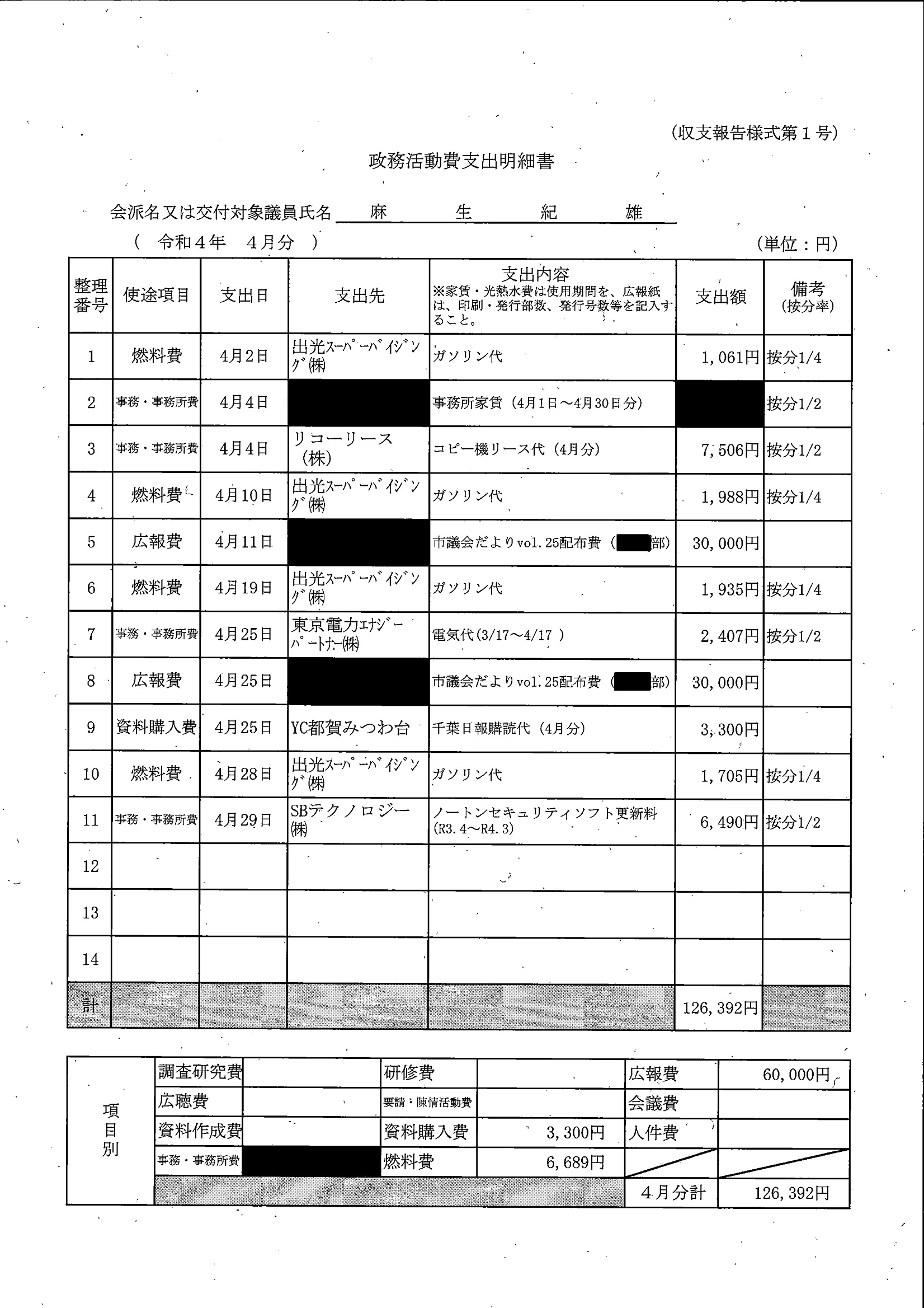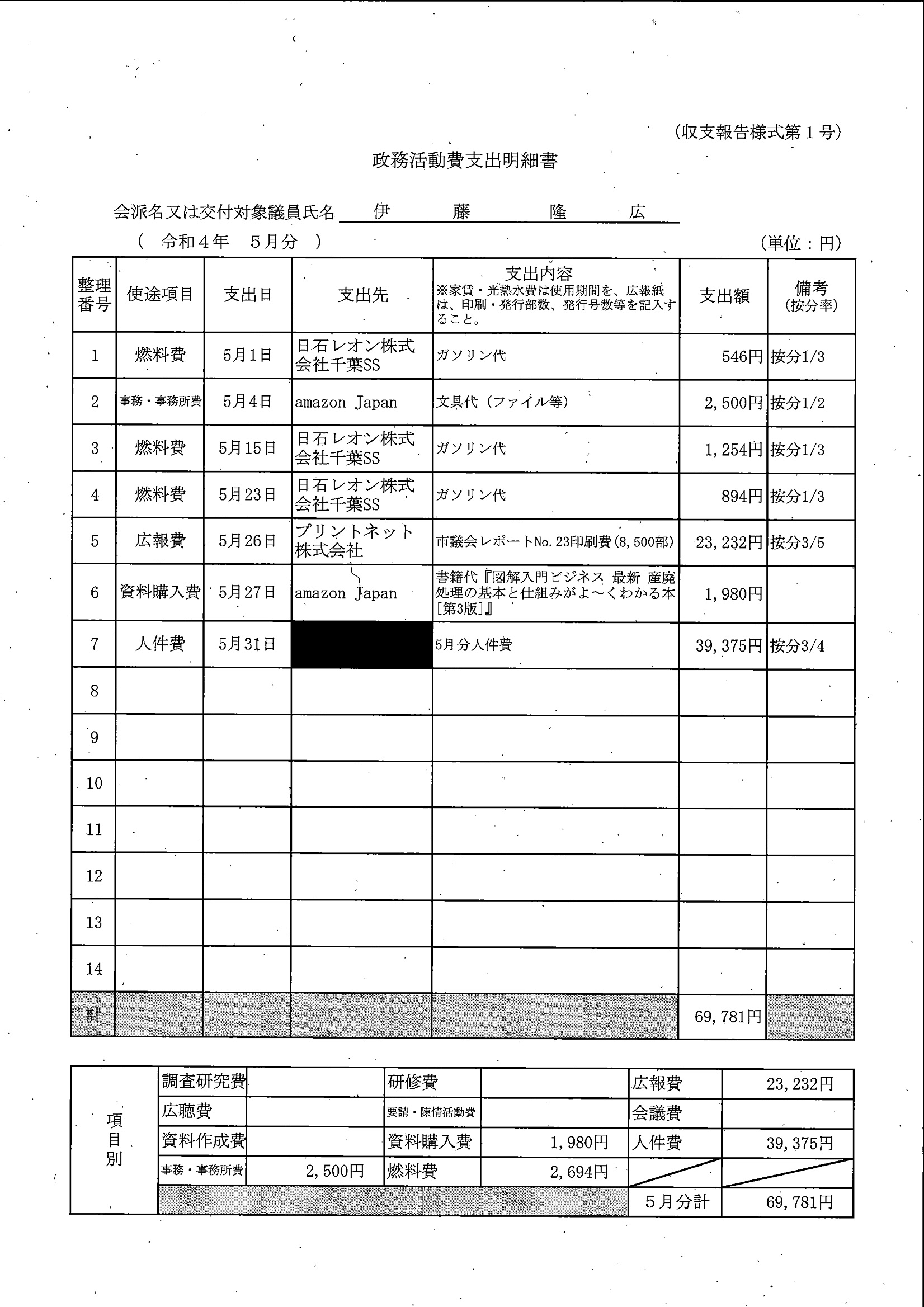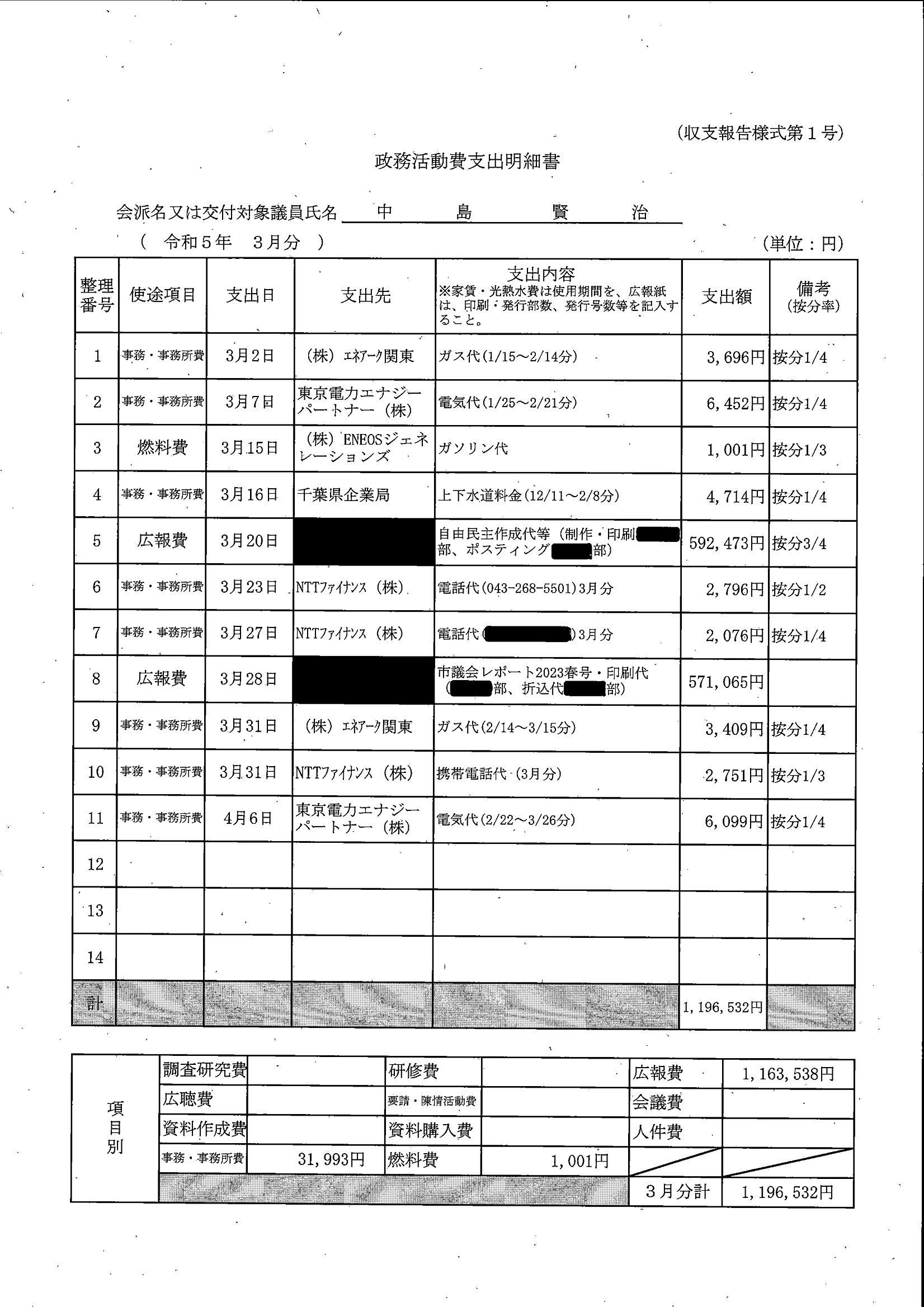 千葉市議会トップページ > 広報・情報公開 > 政務活動費 > 令和4年度交付分(政務活動費収支報告書)