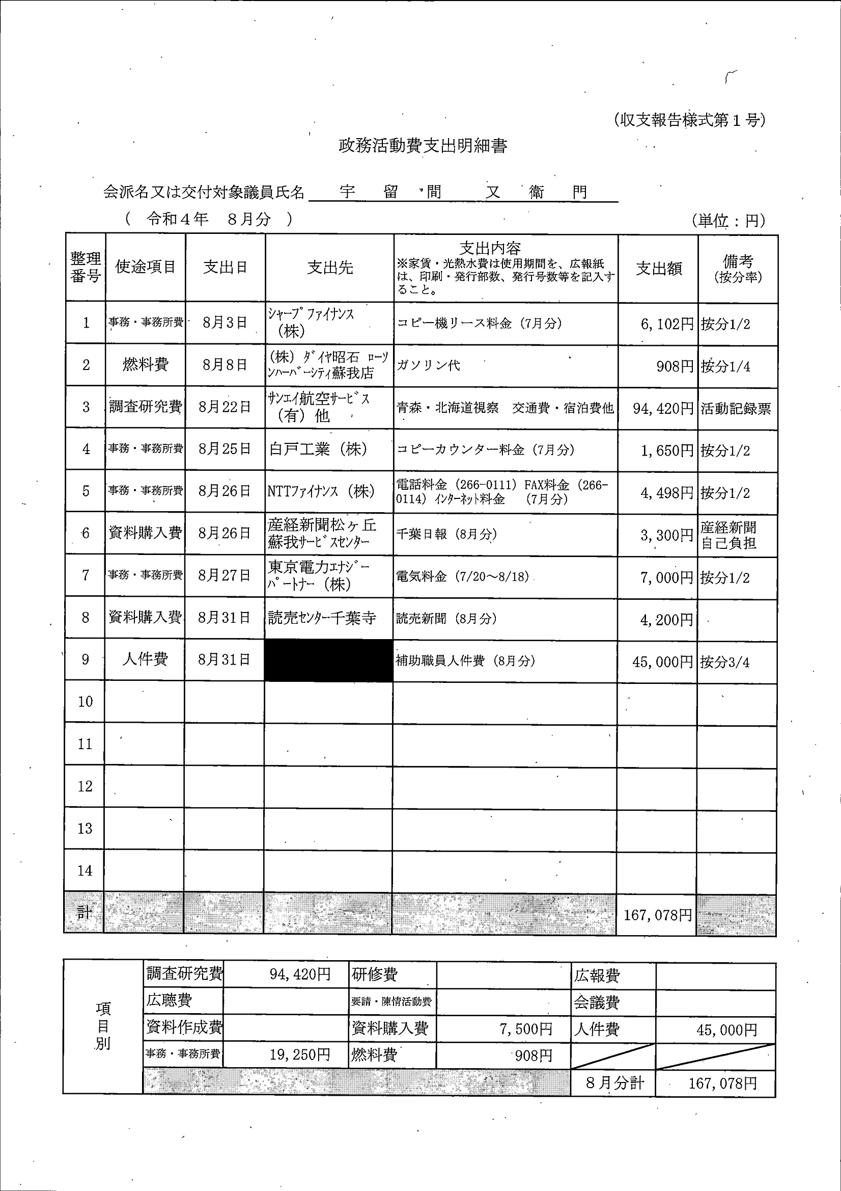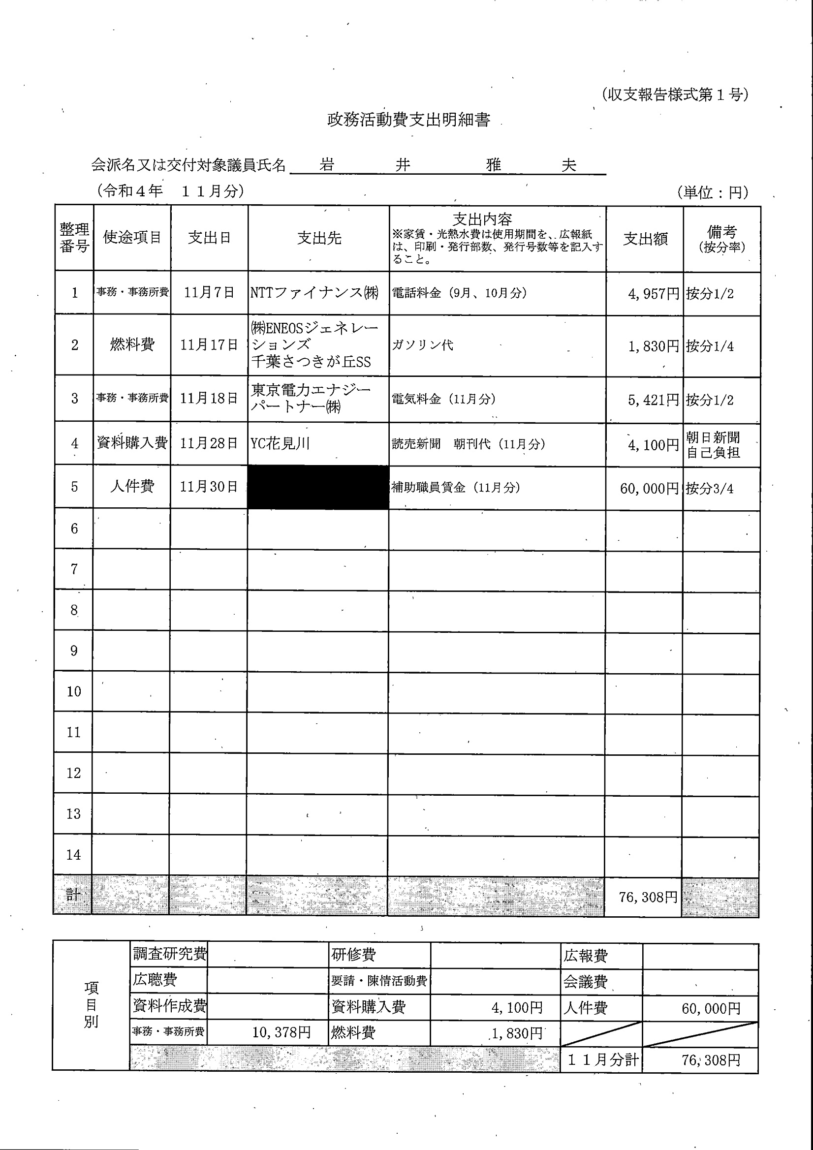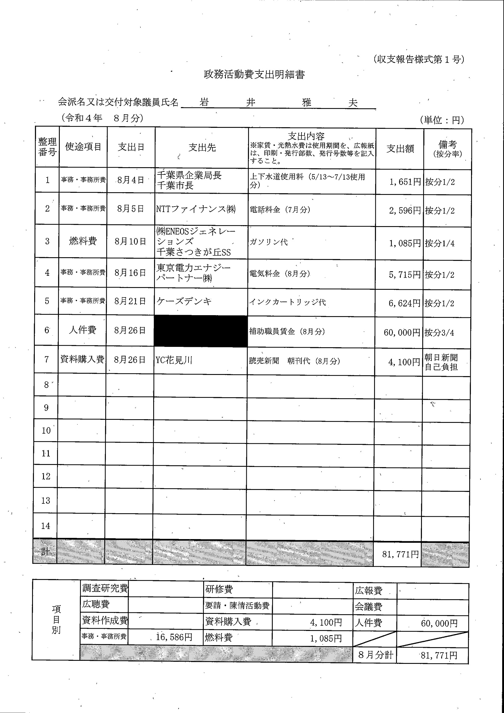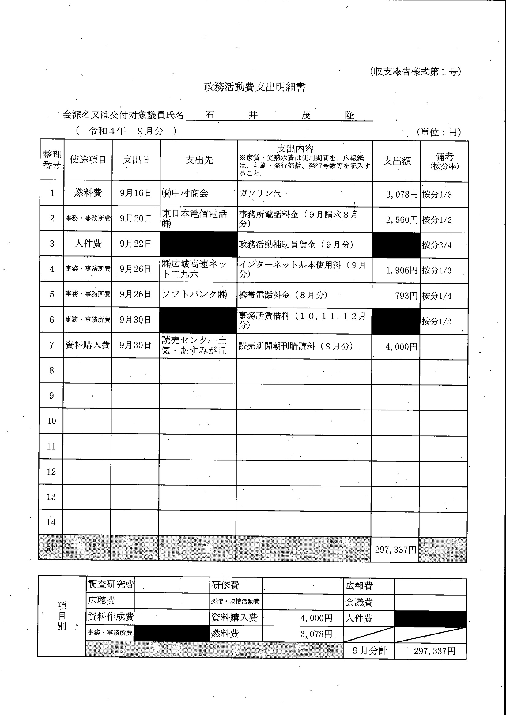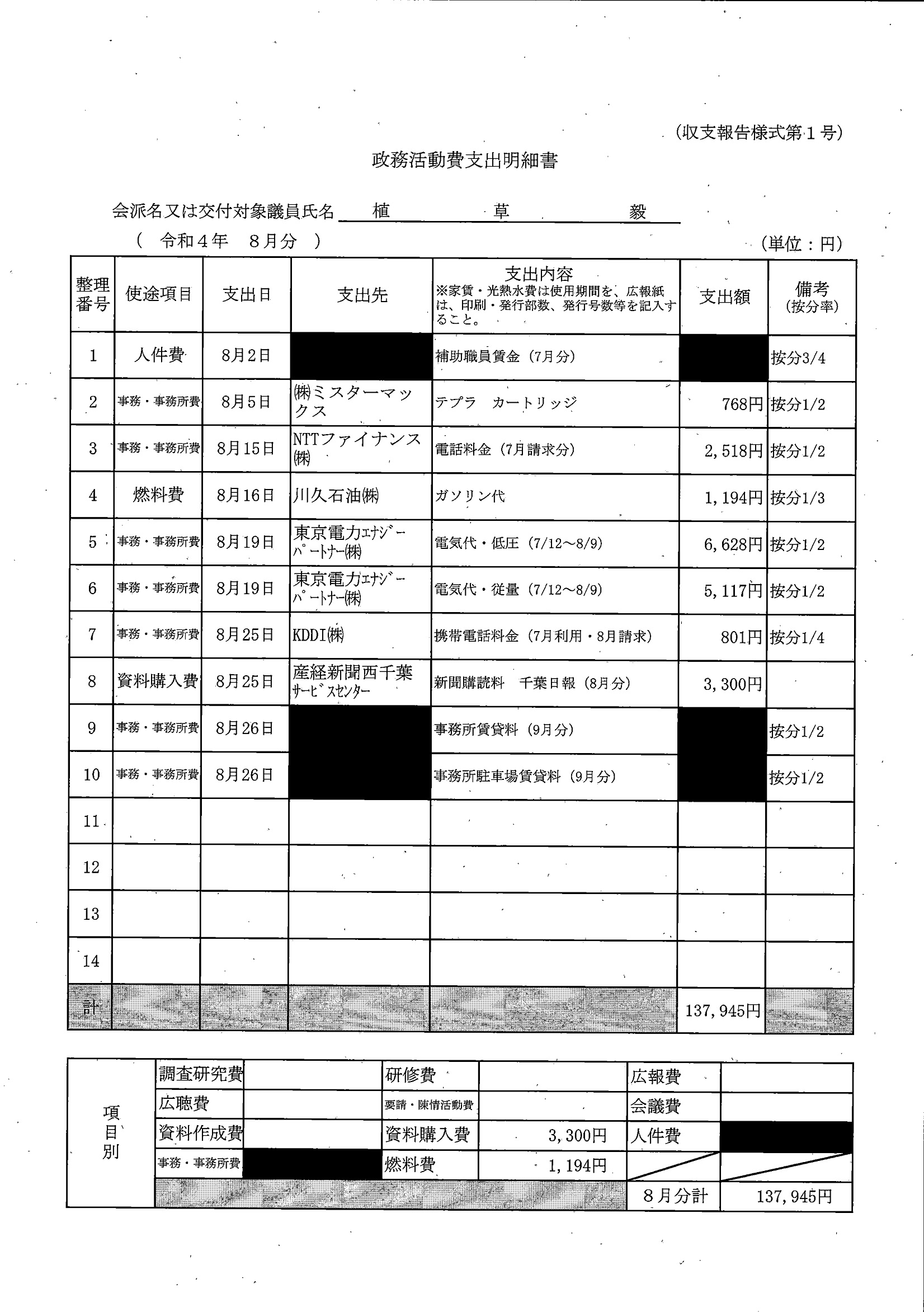 千葉市議会トップページ > 広報・情報公開 > 政務活動費 > 令和4年度交付分(政務活動費収支報告書)