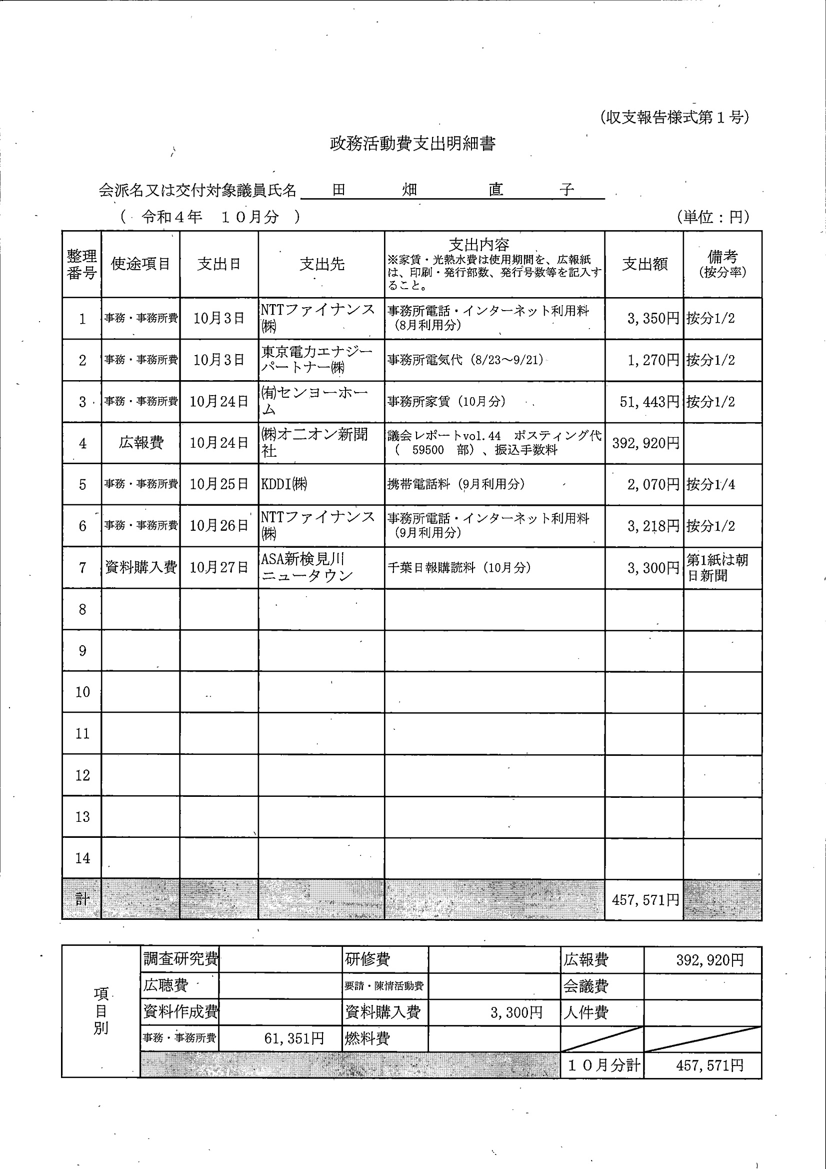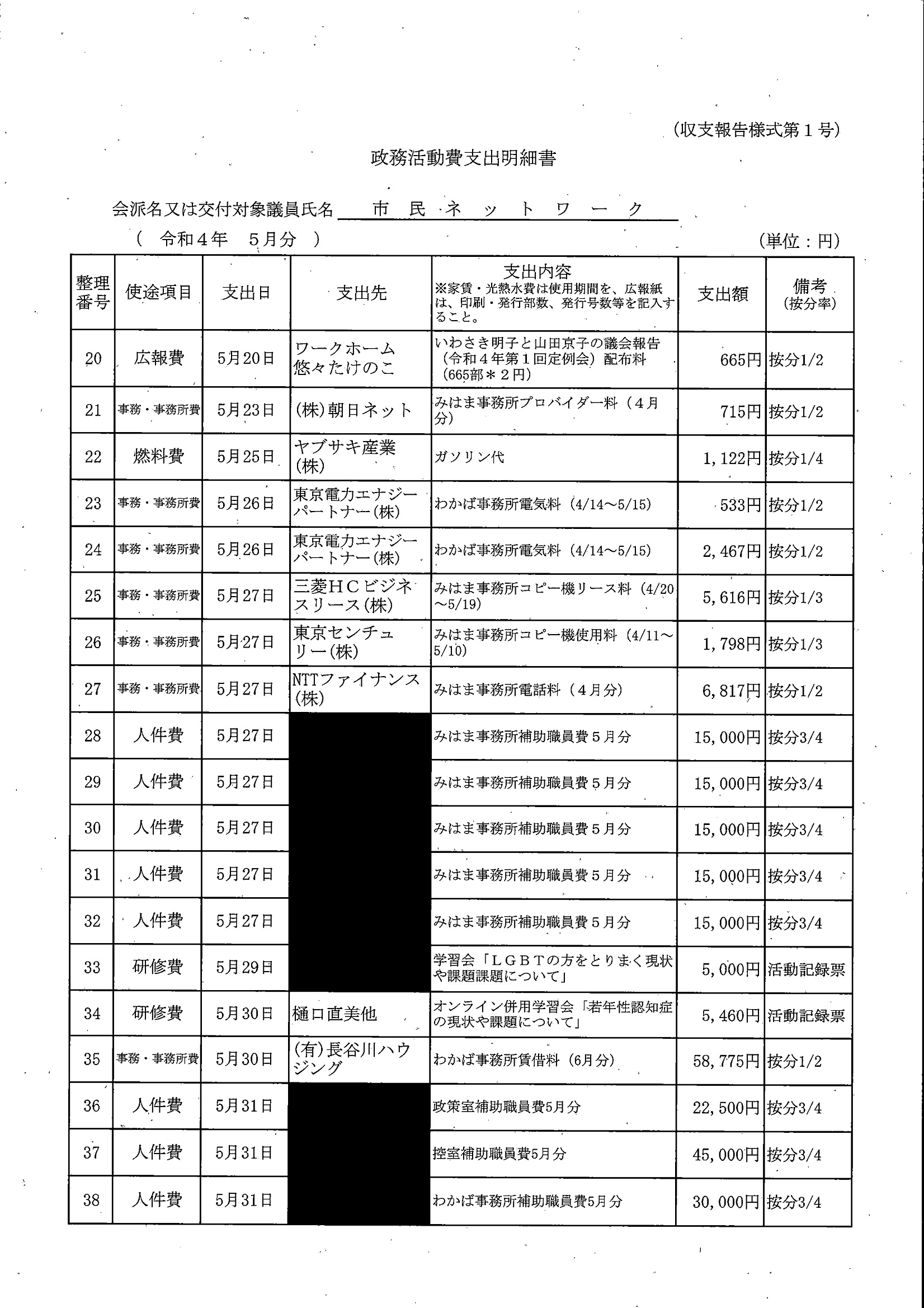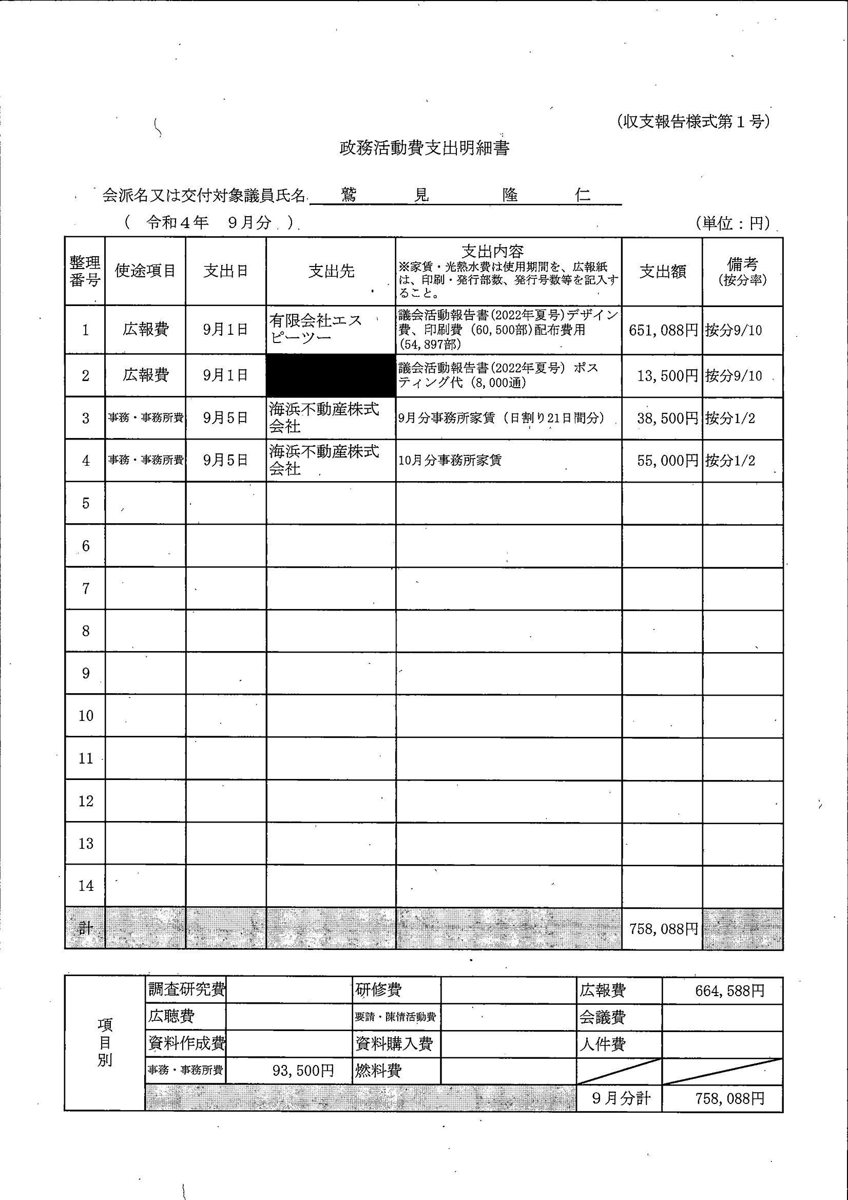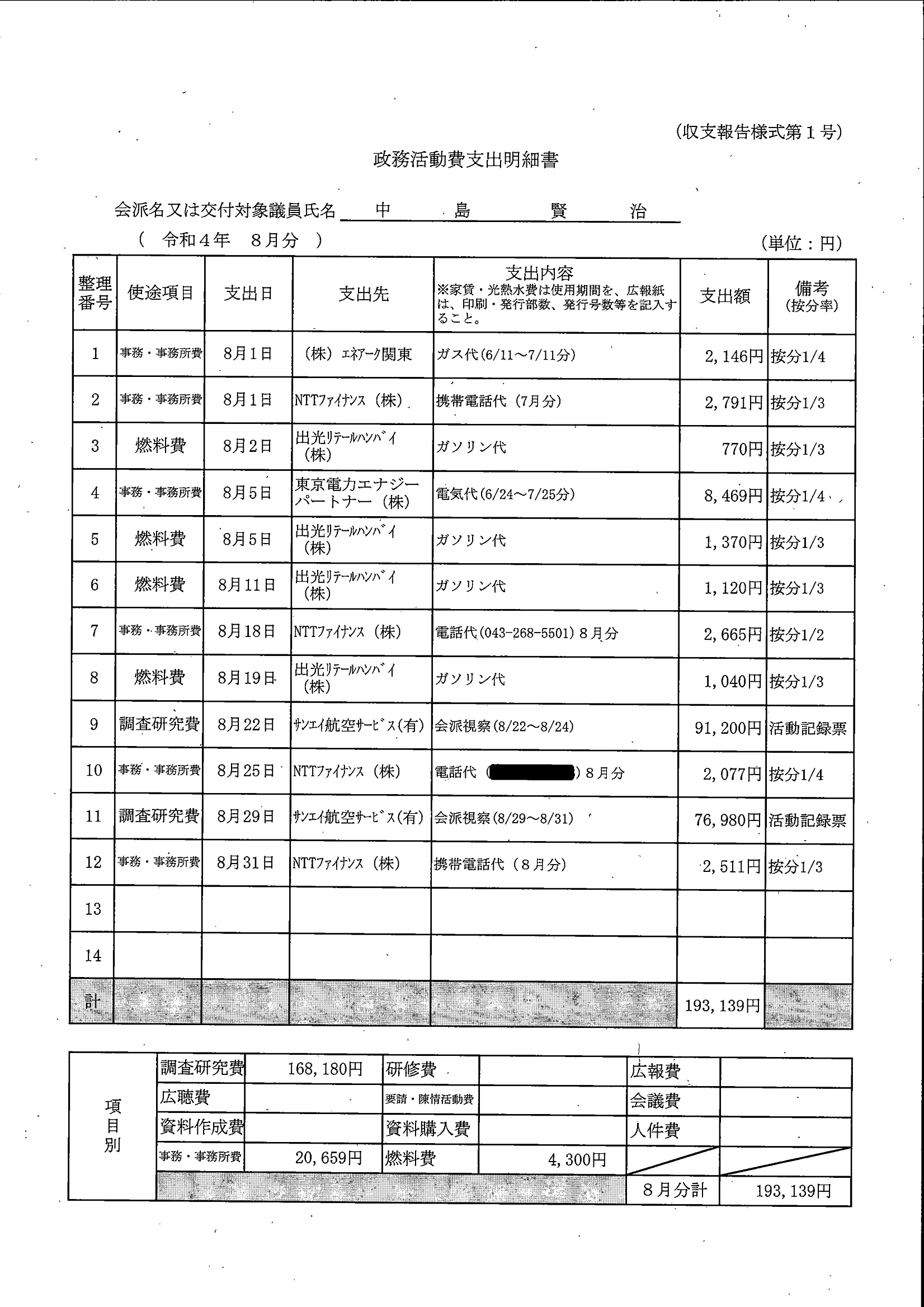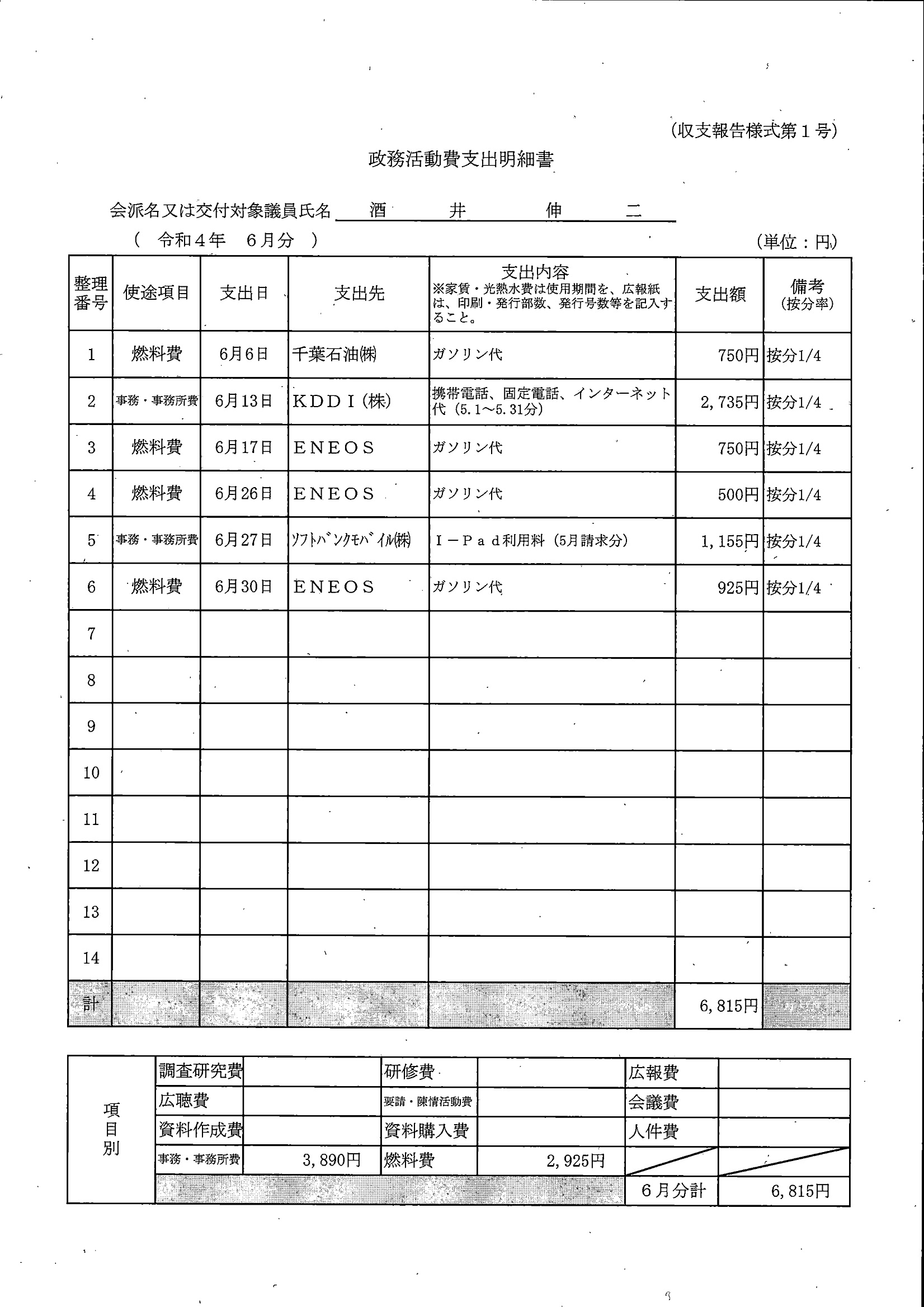 千葉市議会トップページ > 広報・情報公開 > 政務活動費 > 令和4年度交付分(政務活動費収支報告書)