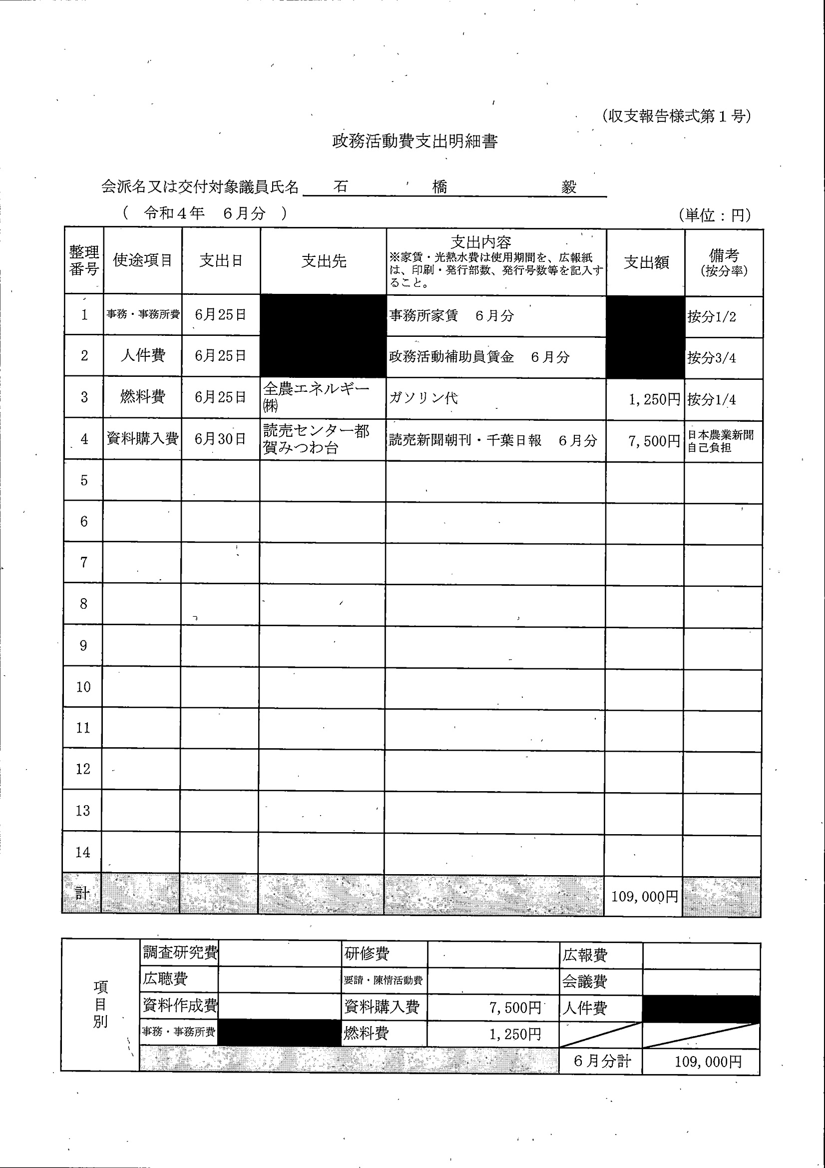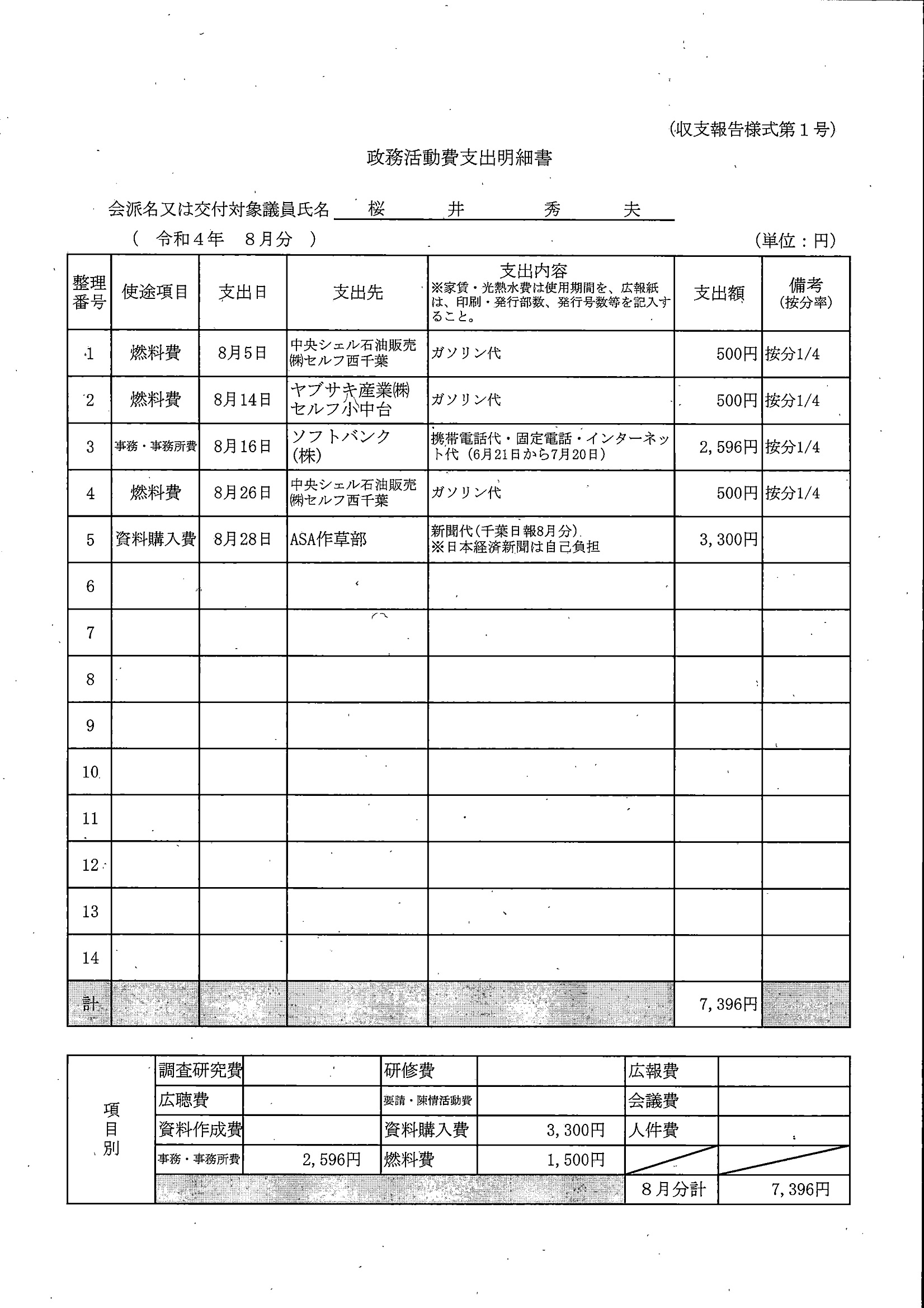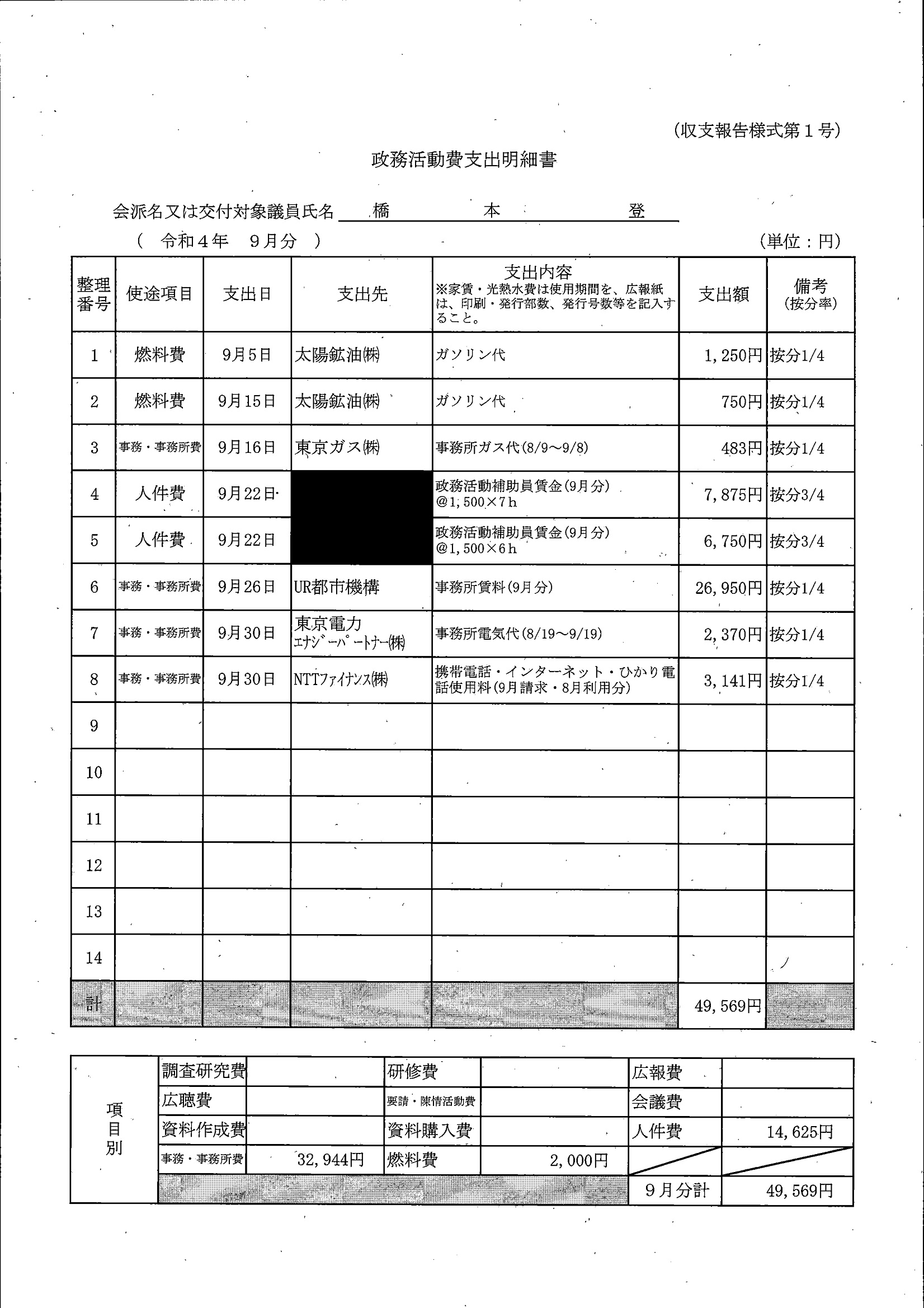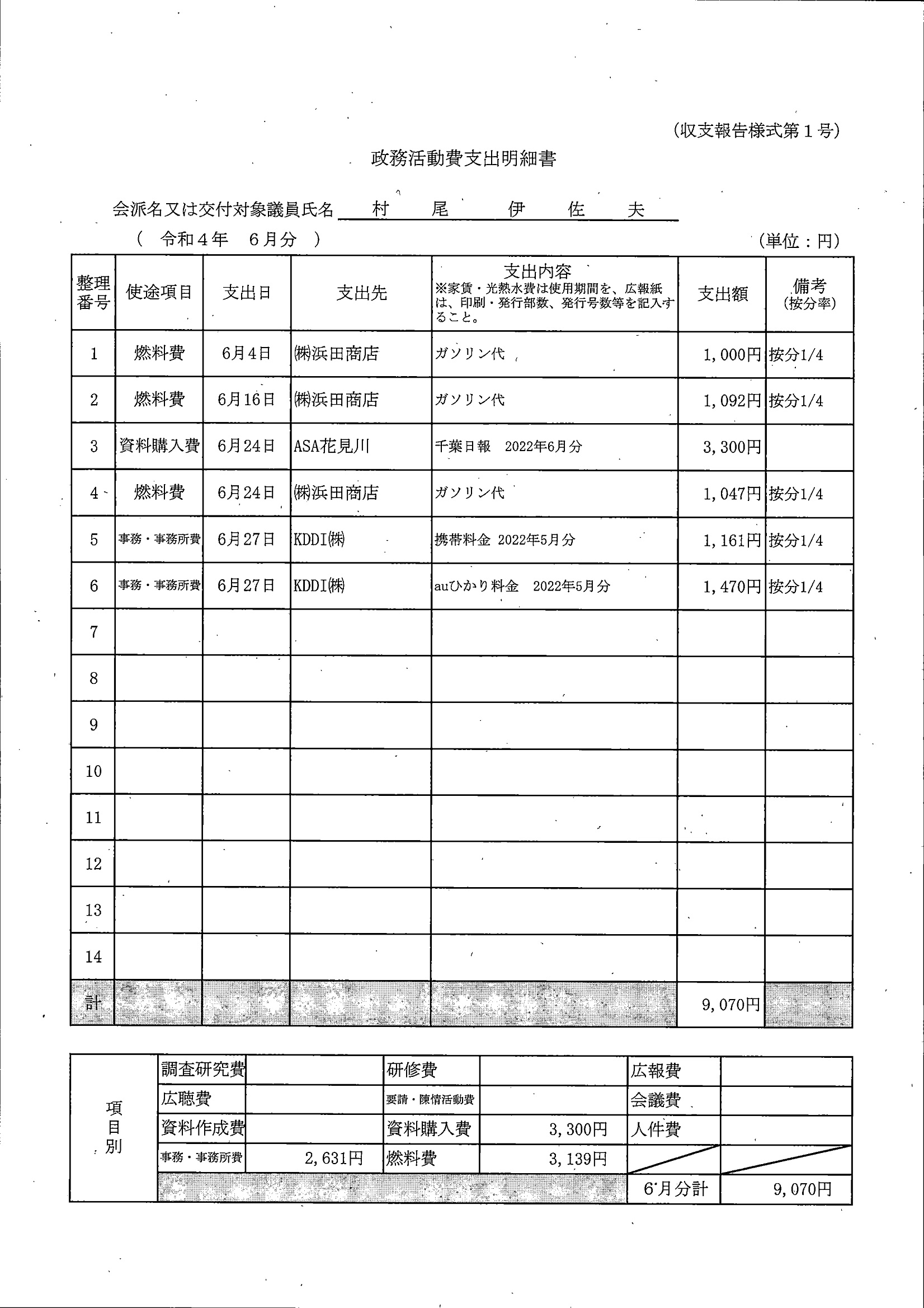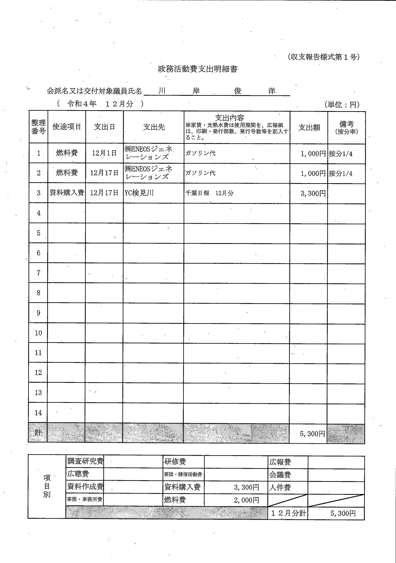 千葉市議会トップページ > 広報・情報公開 > 政務活動費 > 令和4年度交付分(政務活動費収支報告書)