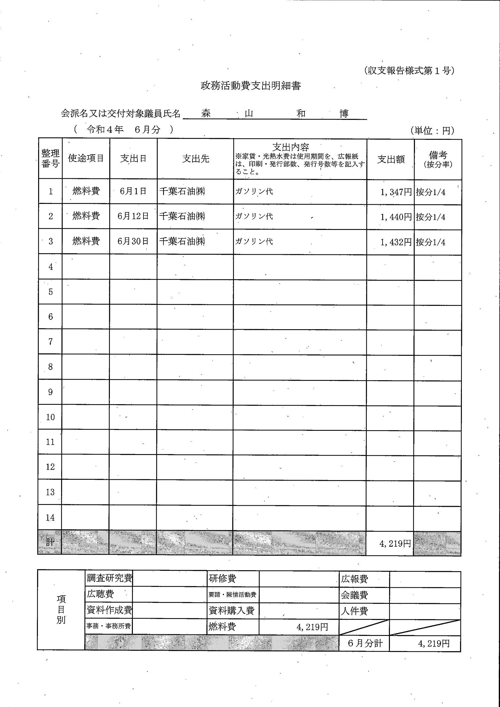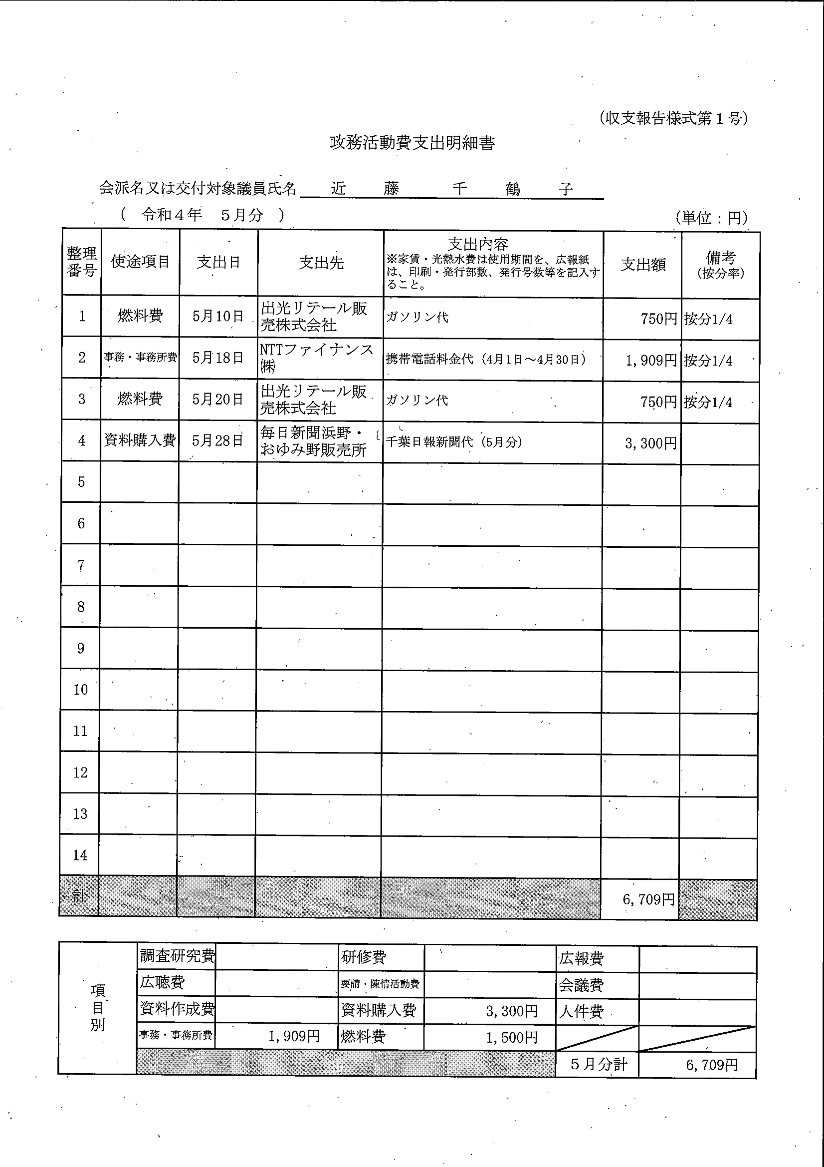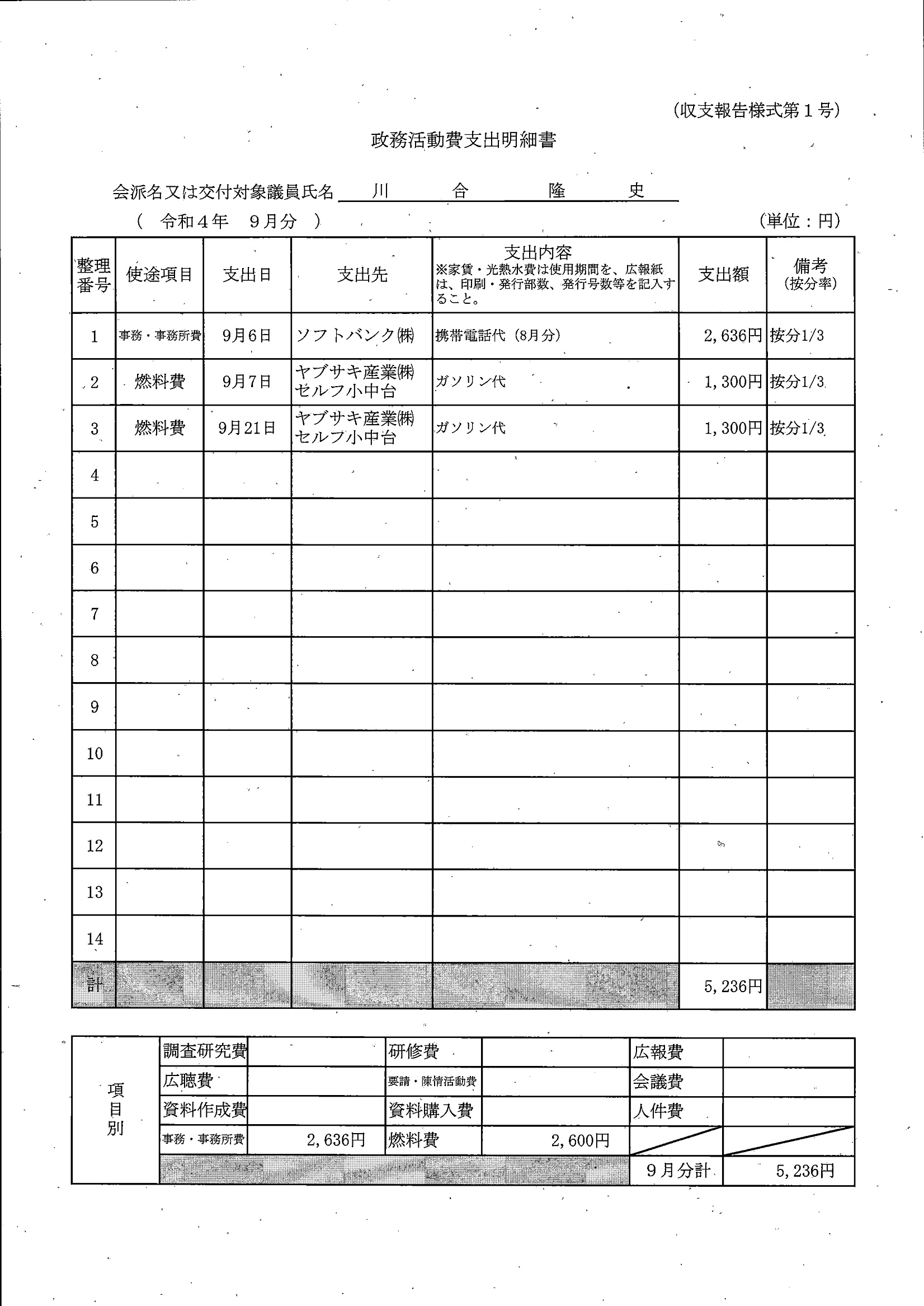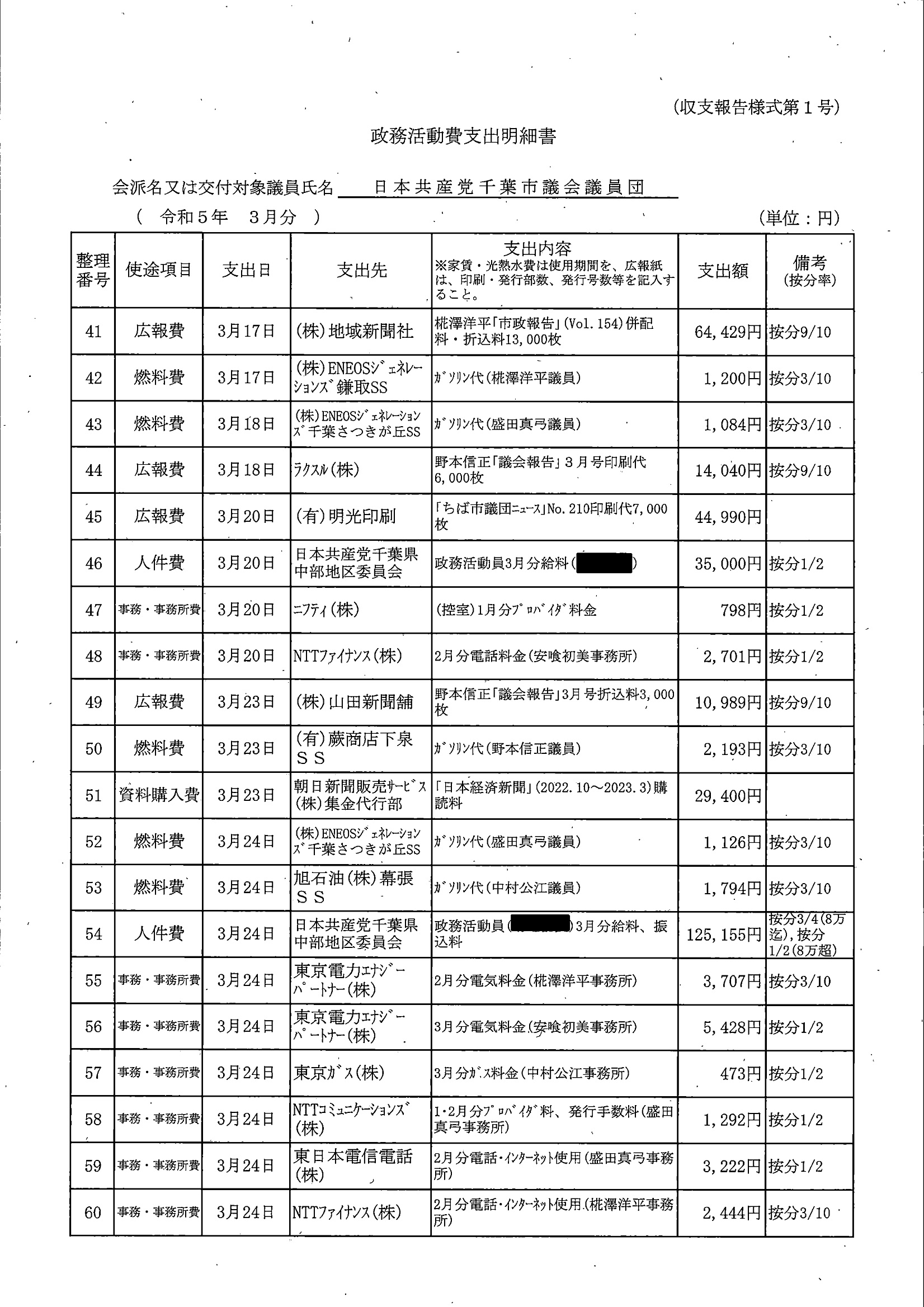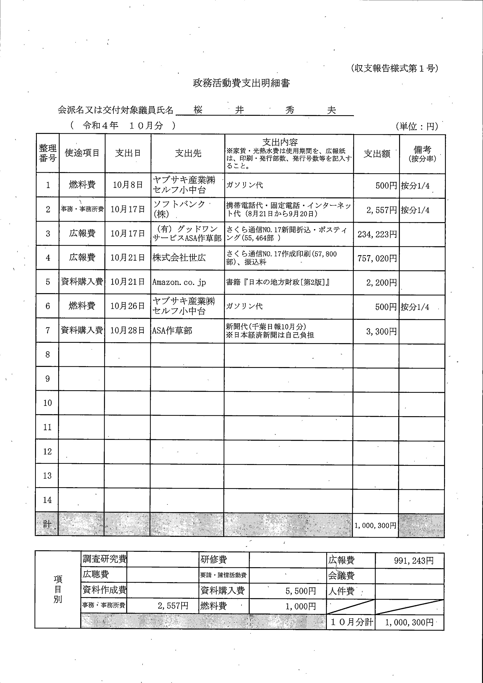 千葉市議会トップページ > 広報・情報公開 > 政務活動費 > 令和4年度交付分(政務活動費収支報告書)