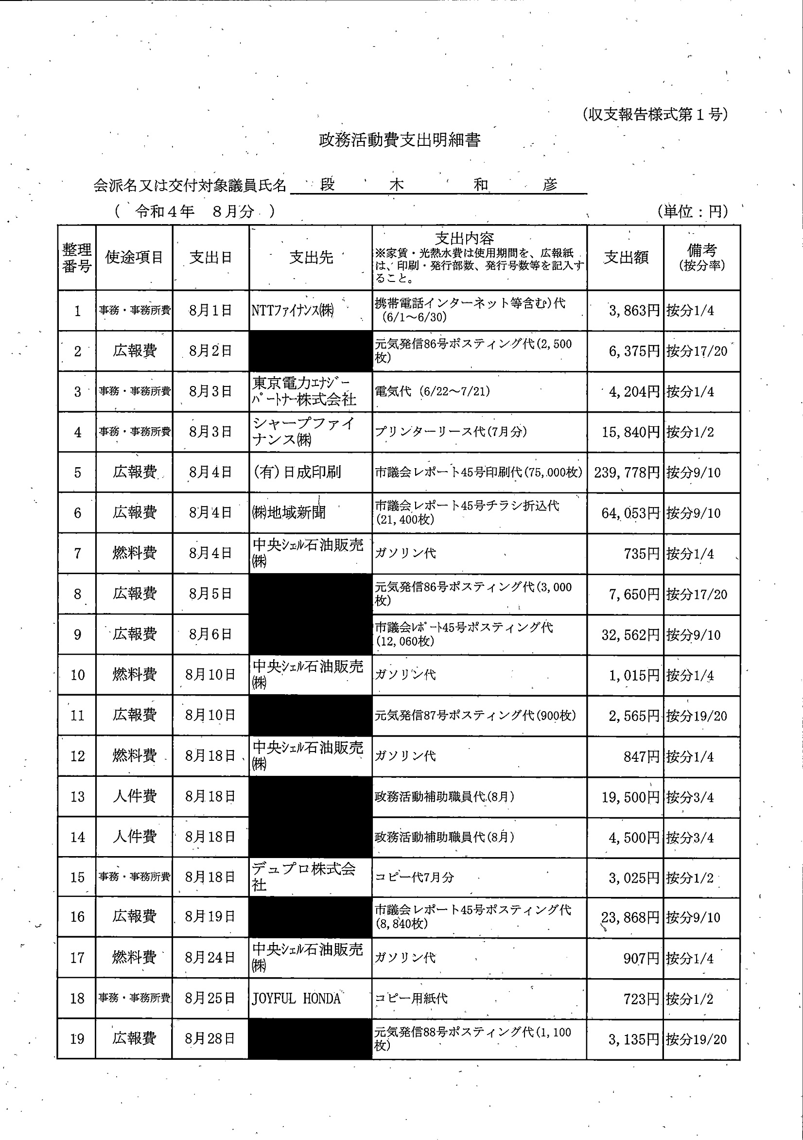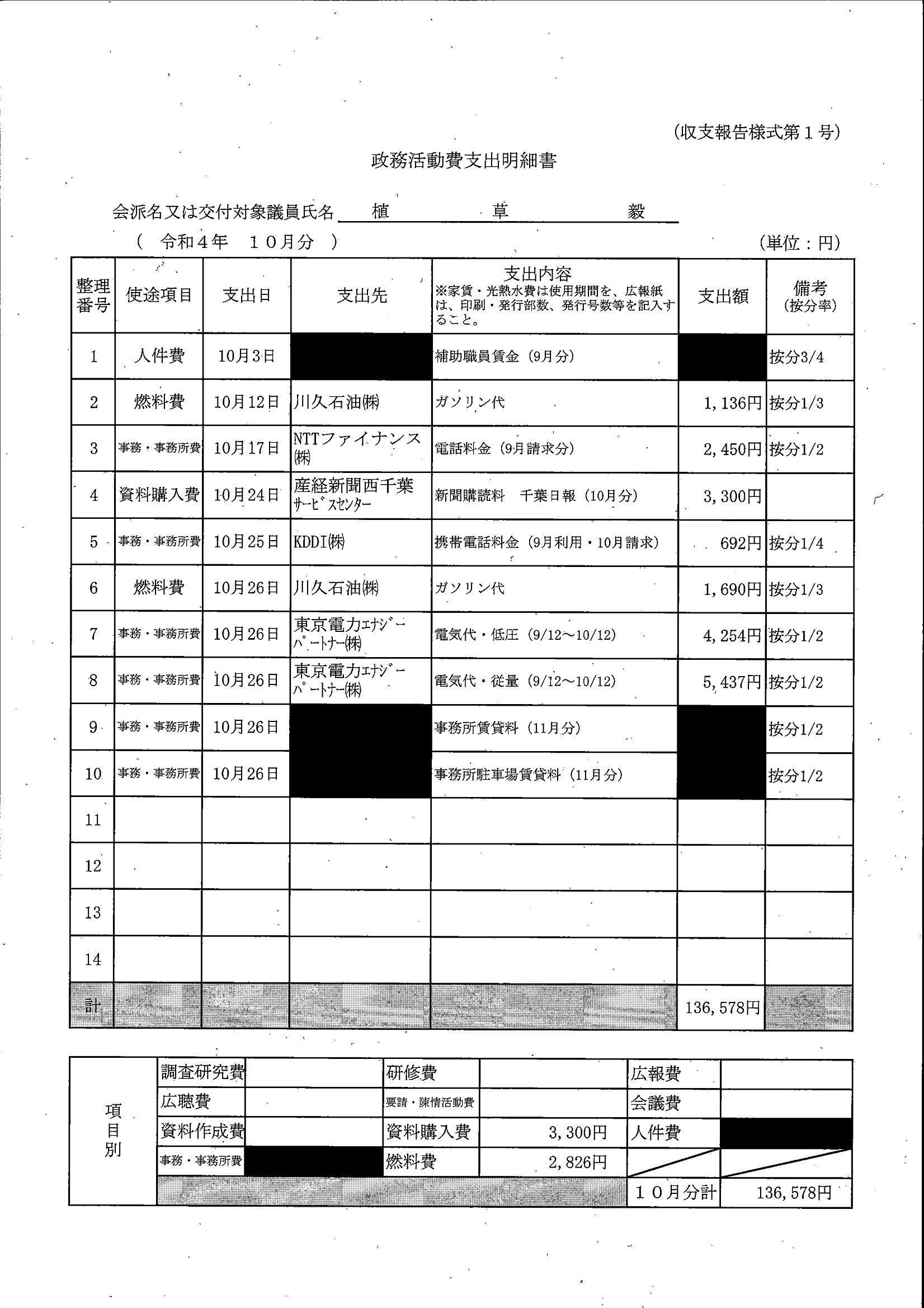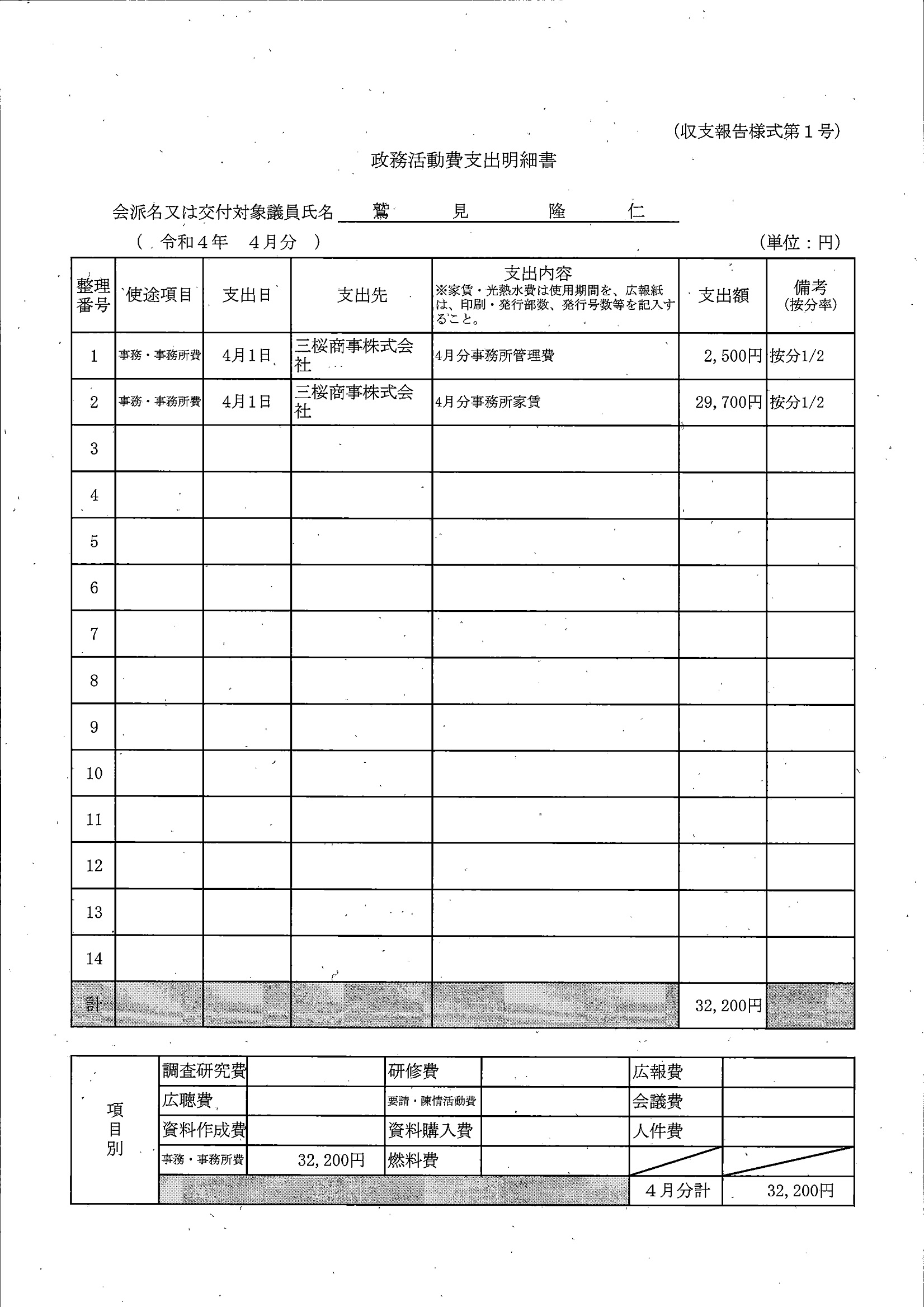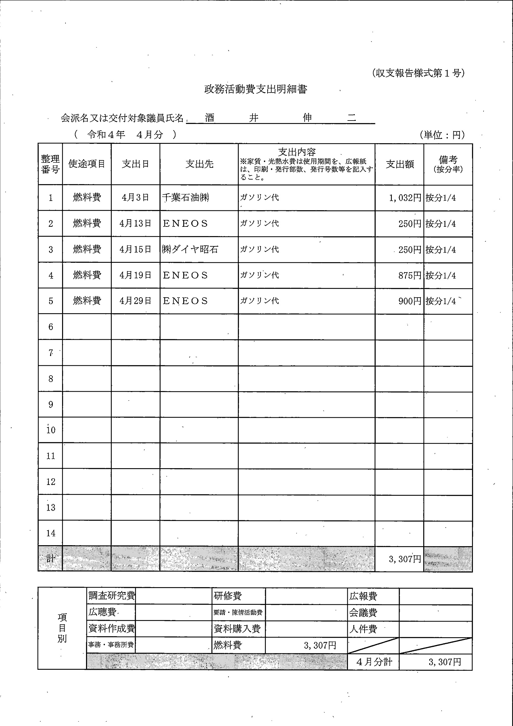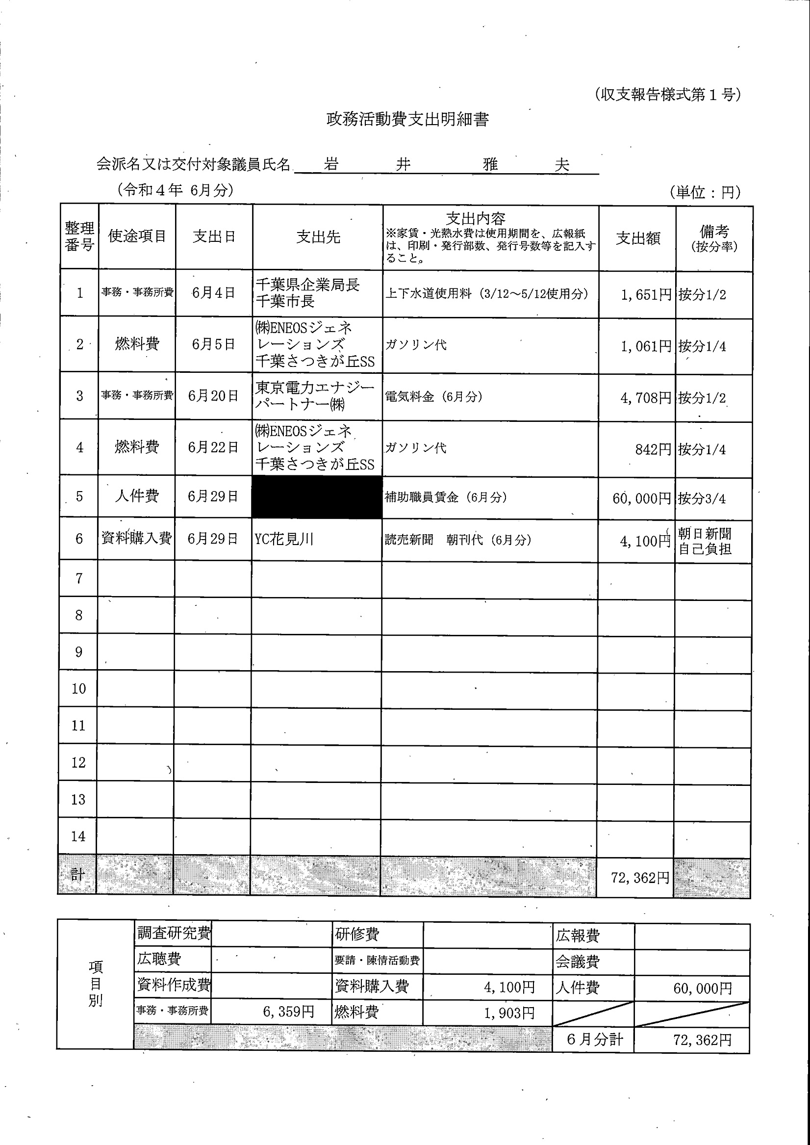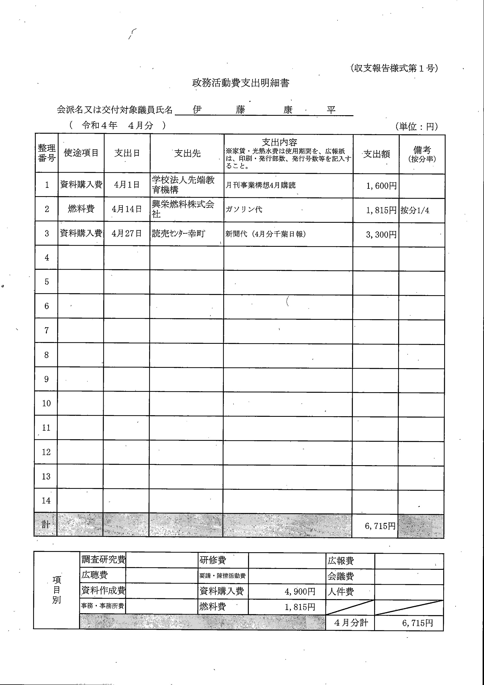 千葉市議会トップページ > 広報・情報公開 > 政務活動費 > 令和4年度交付分(政務活動費収支報告書)