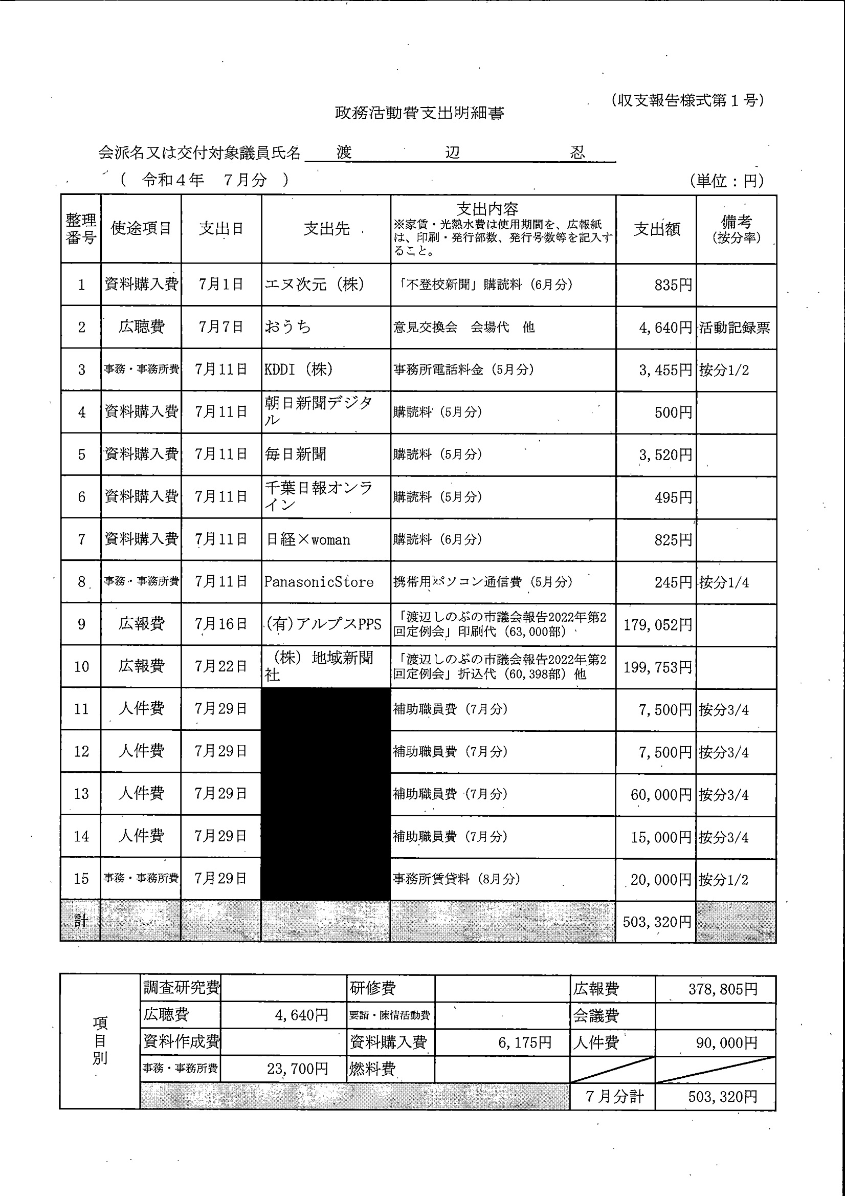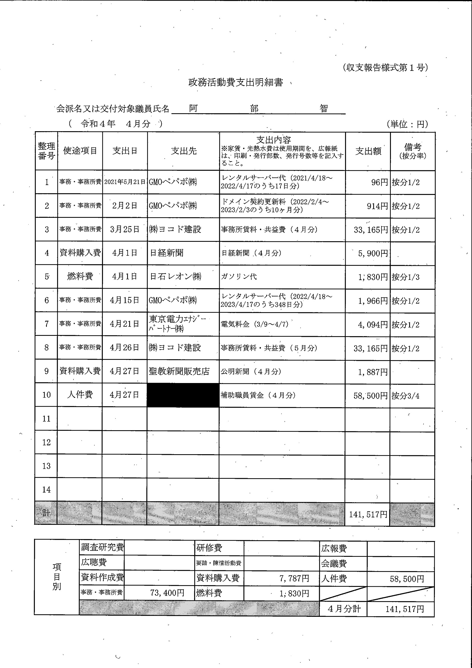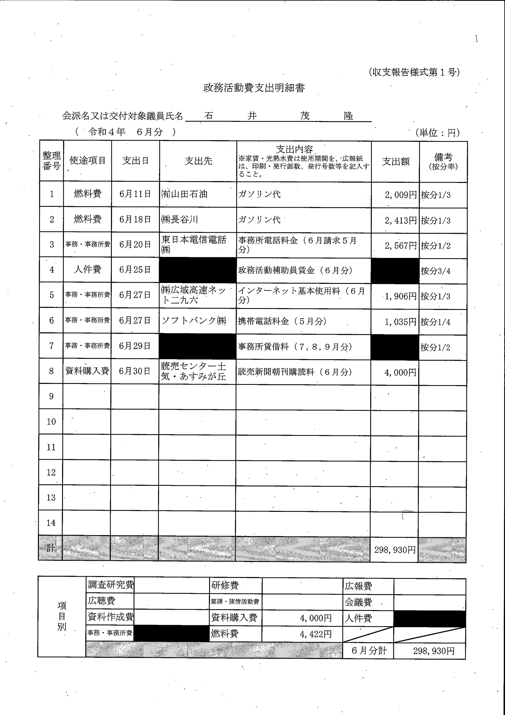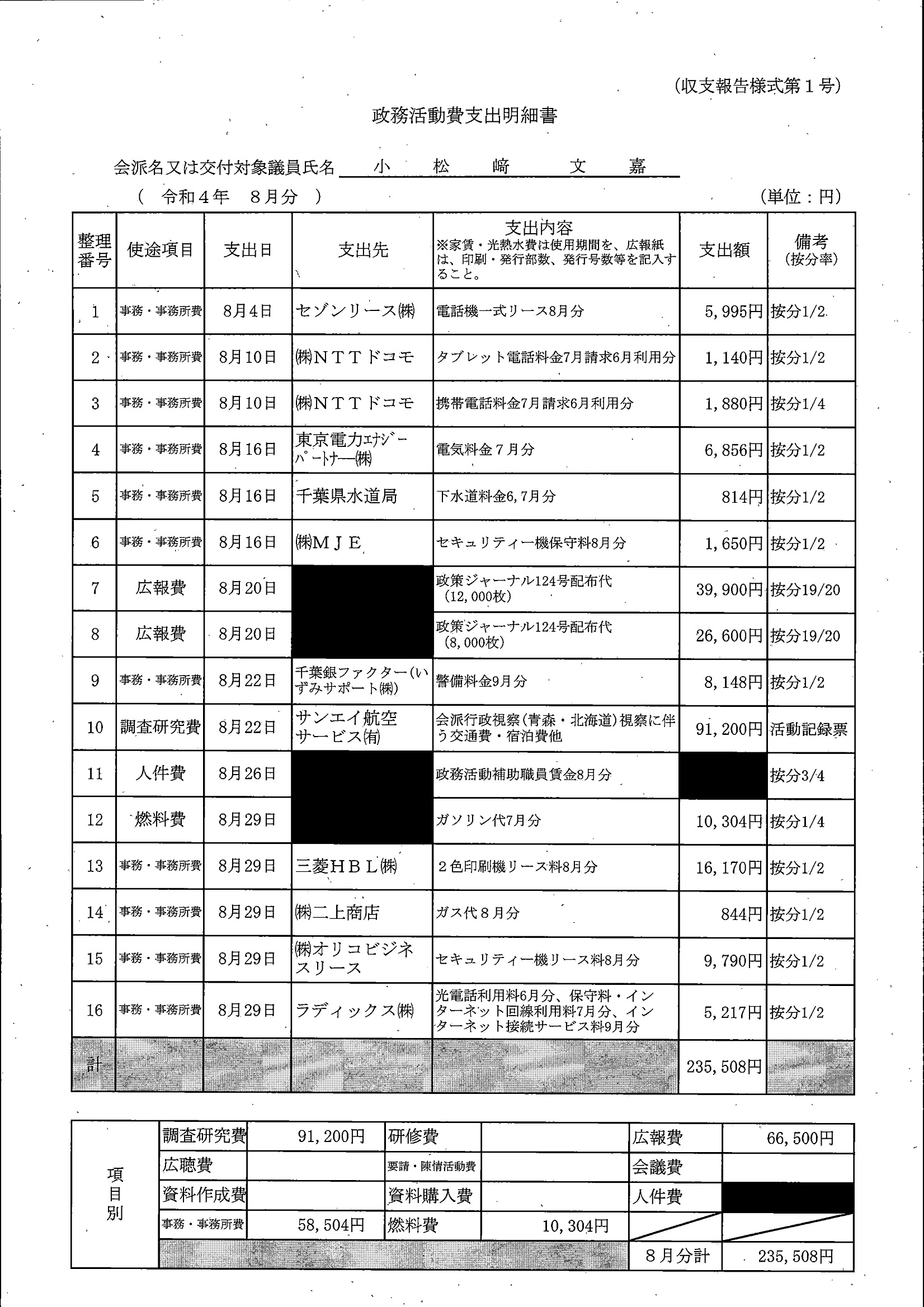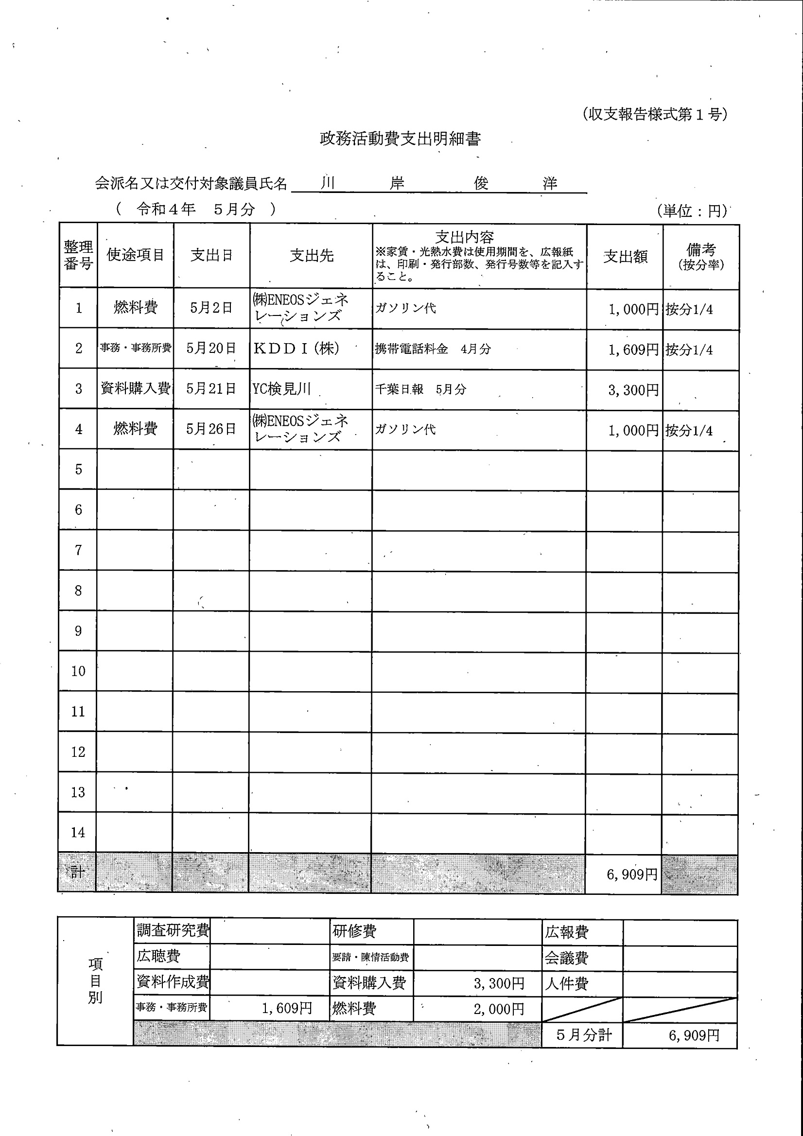 千葉市議会トップページ > 広報・情報公開 > 政務活動費 > 令和4年度交付分(政務活動費収支報告書)