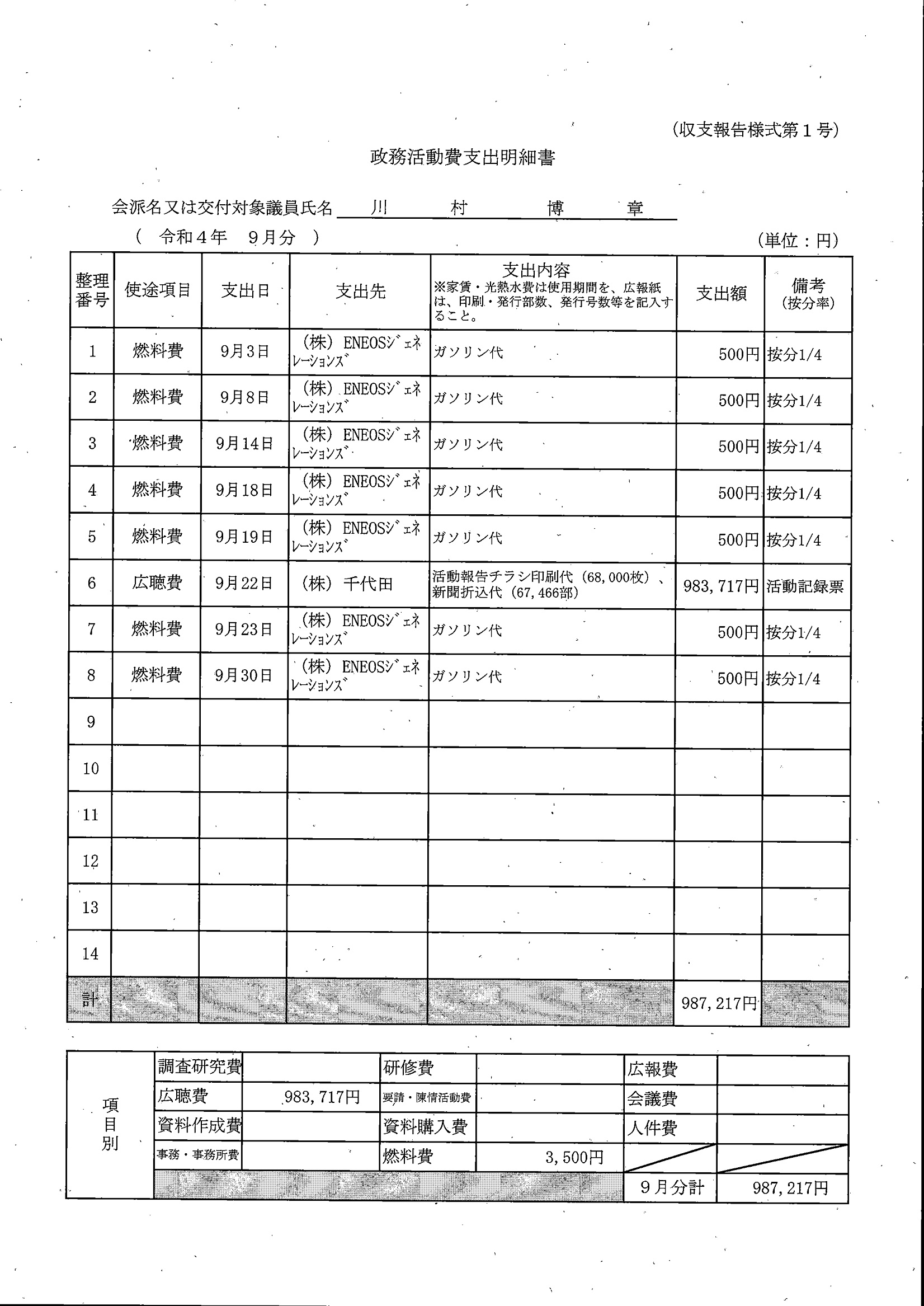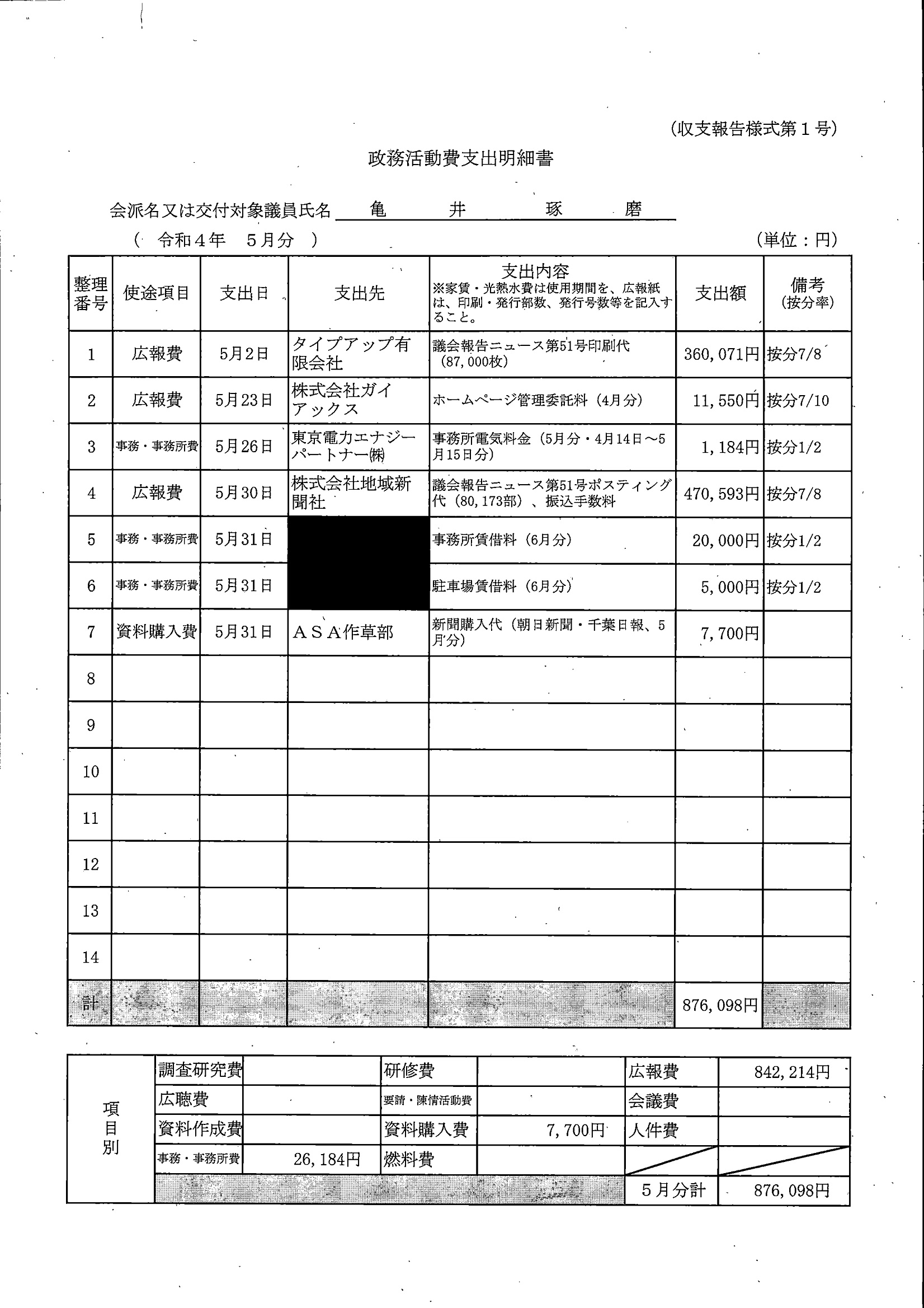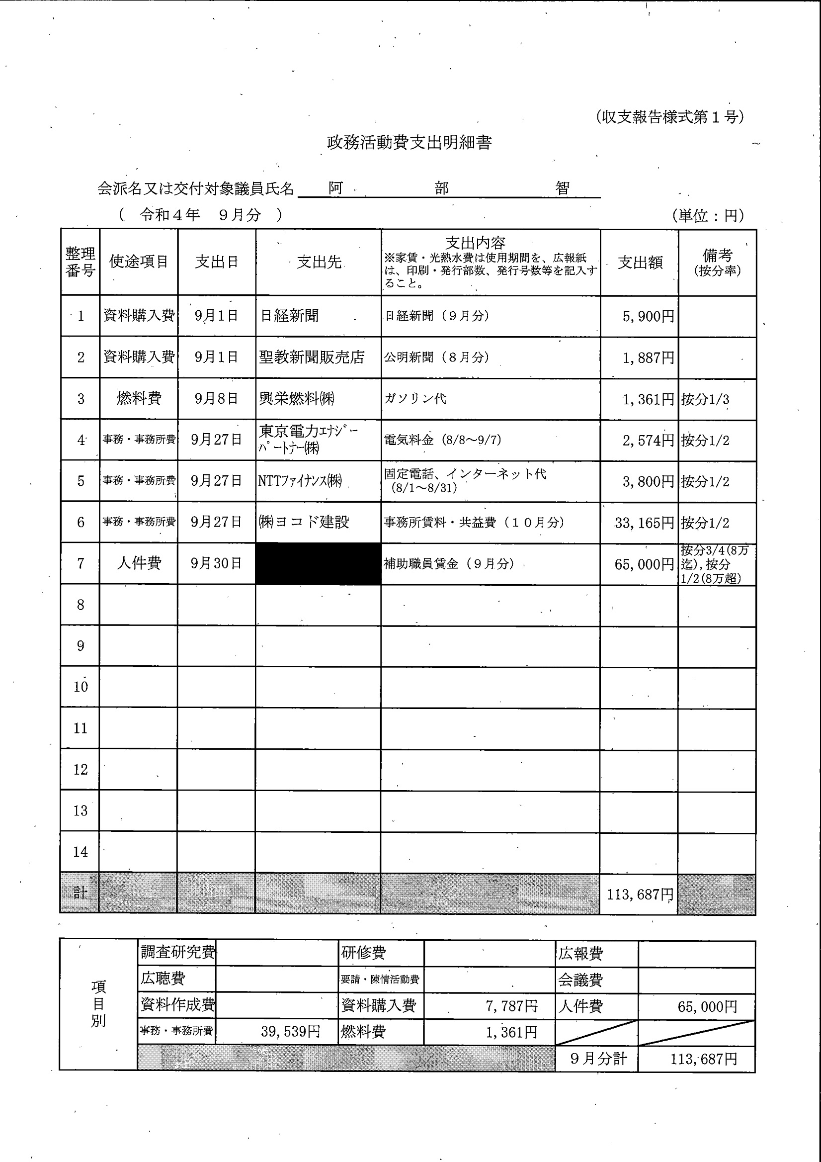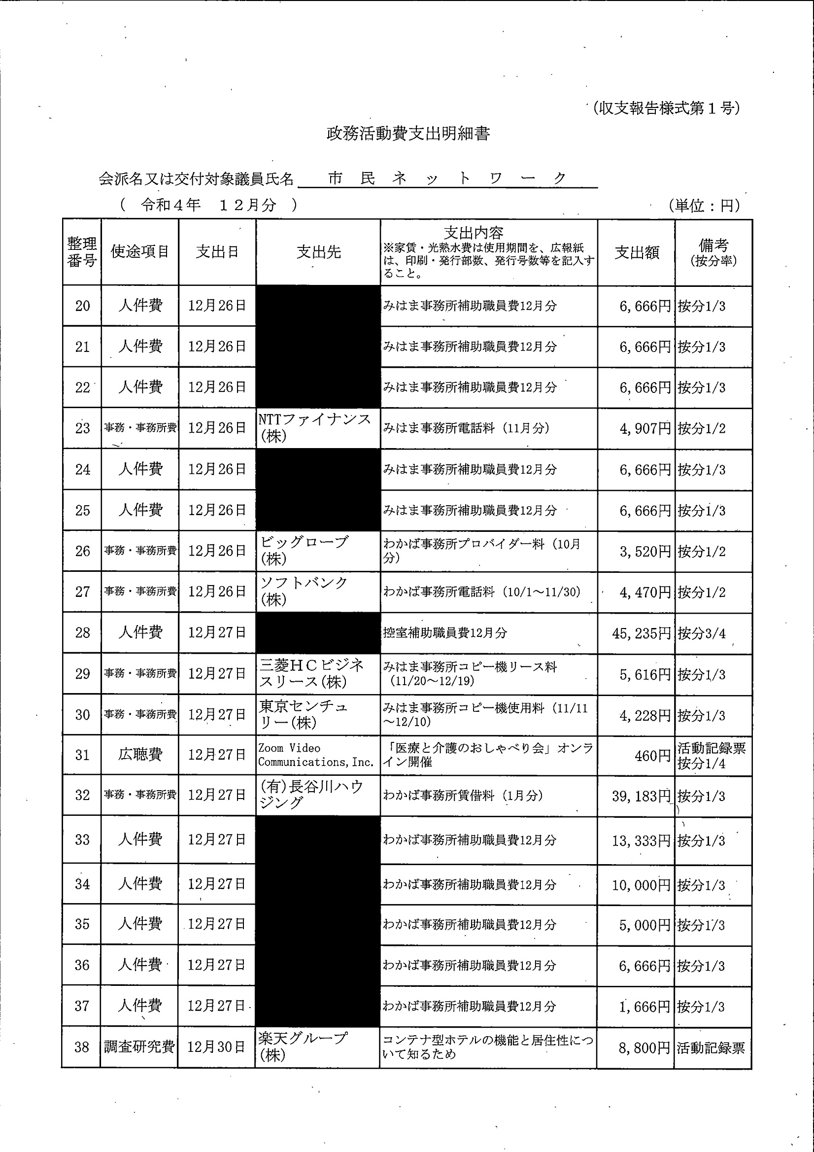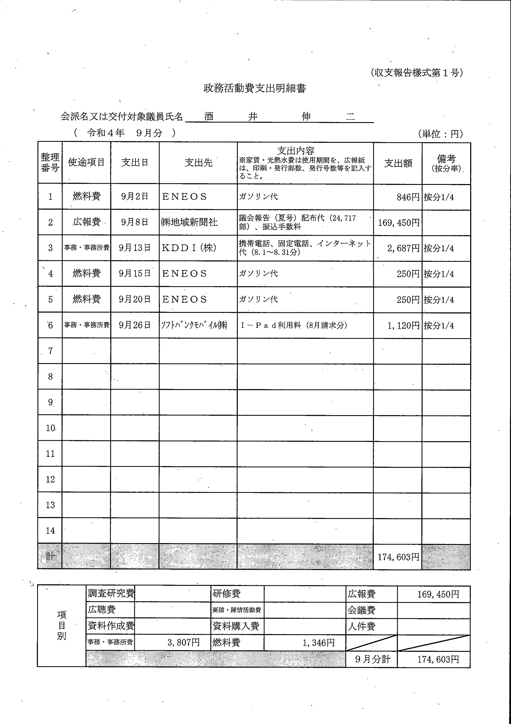 千葉市議会トップページ > 広報・情報公開 > 政務活動費 > 令和4年度交付分(政務活動費収支報告書)