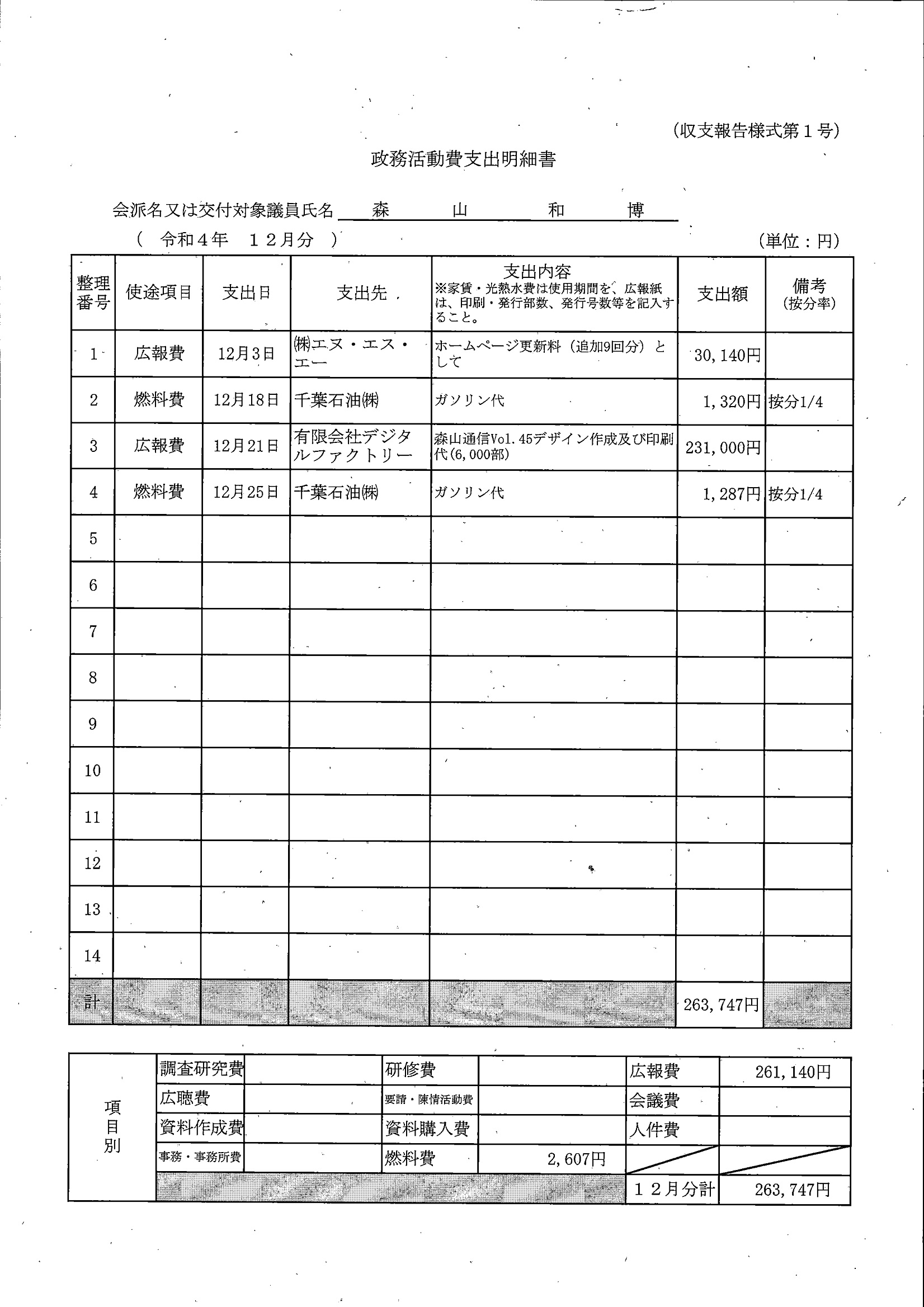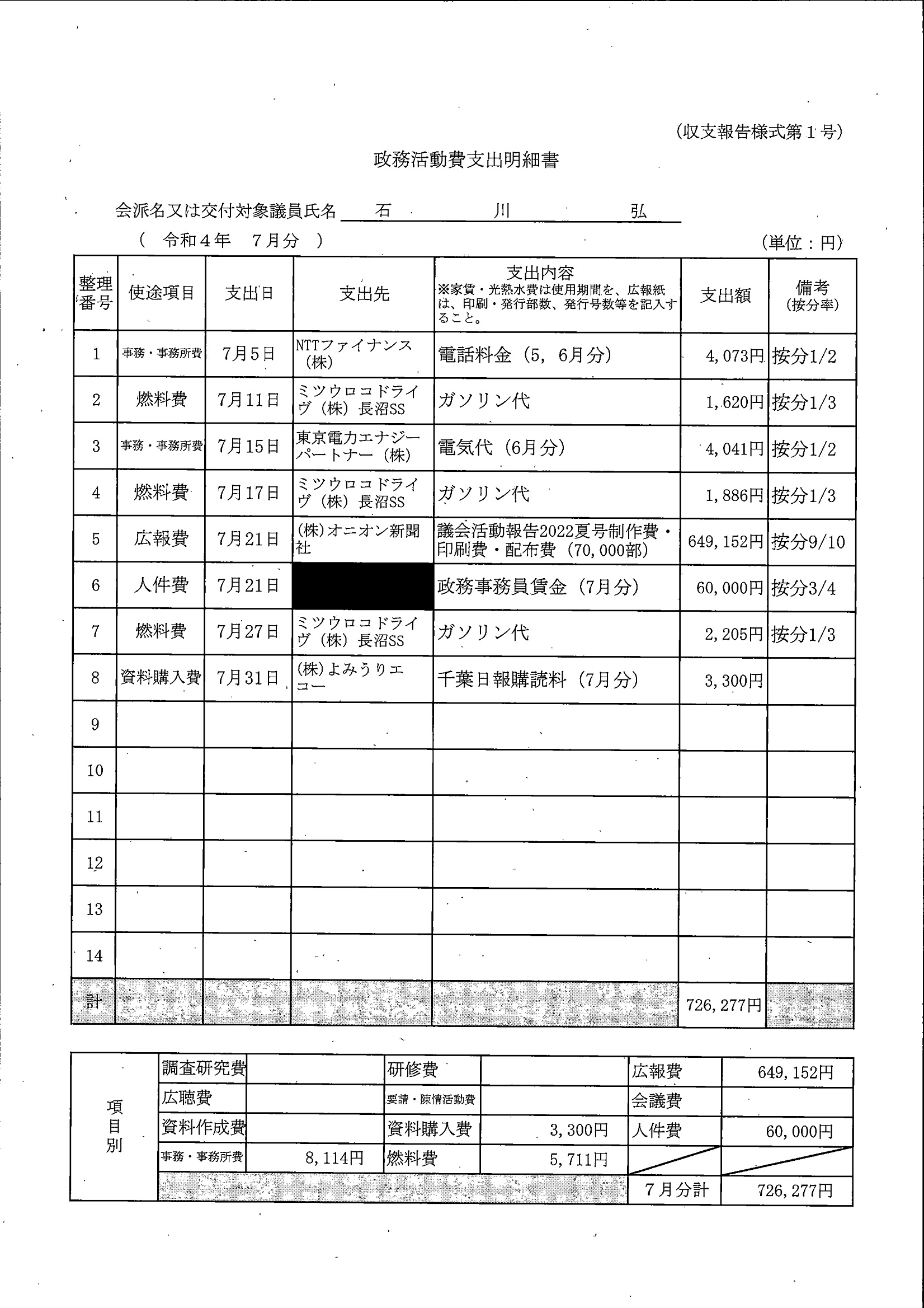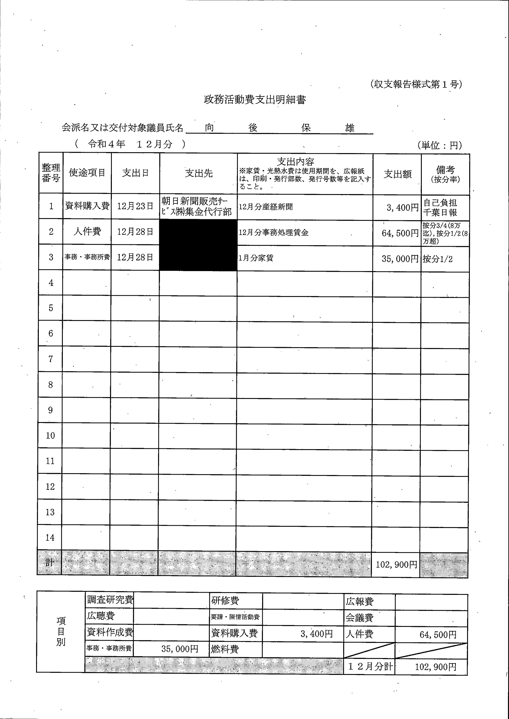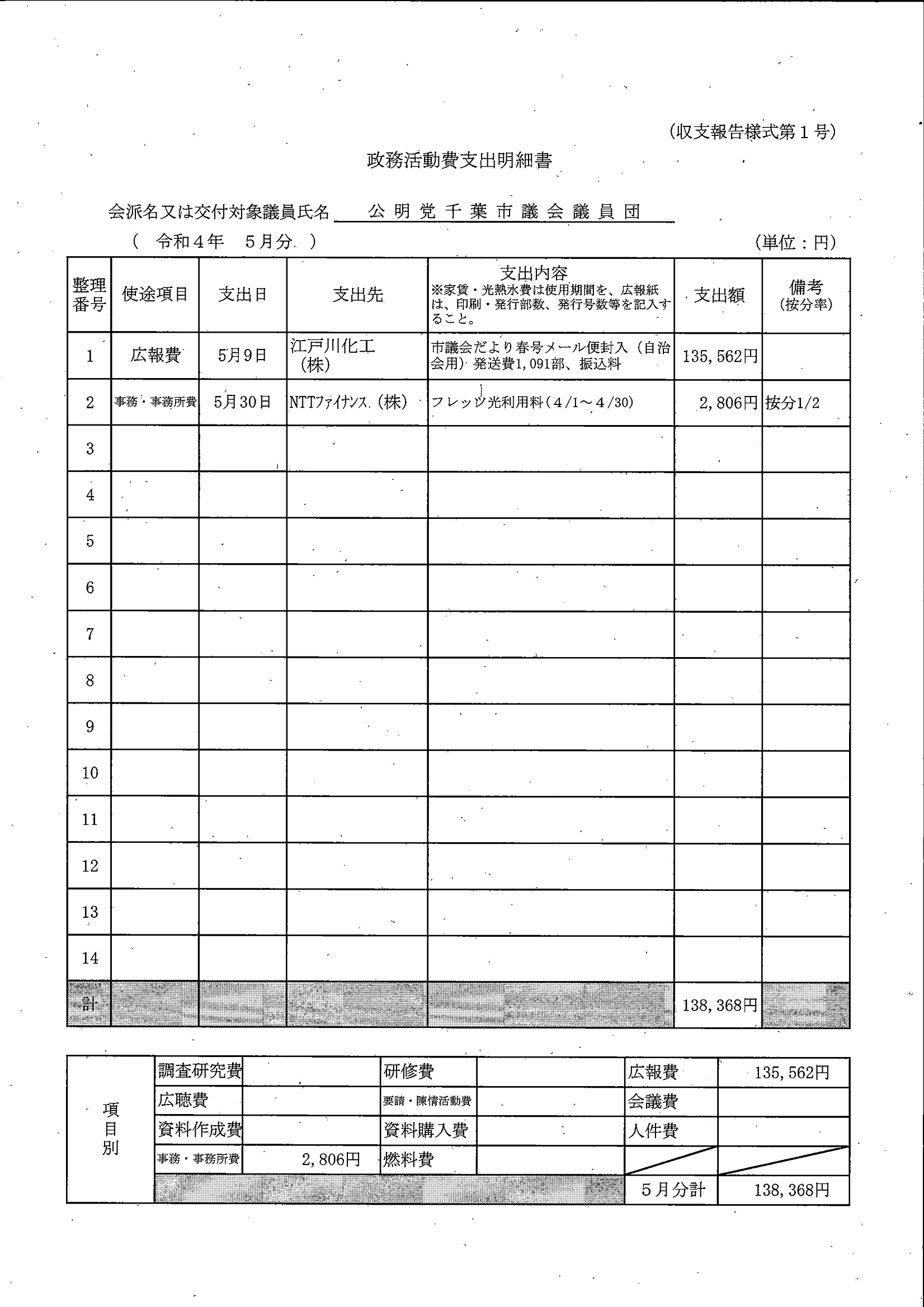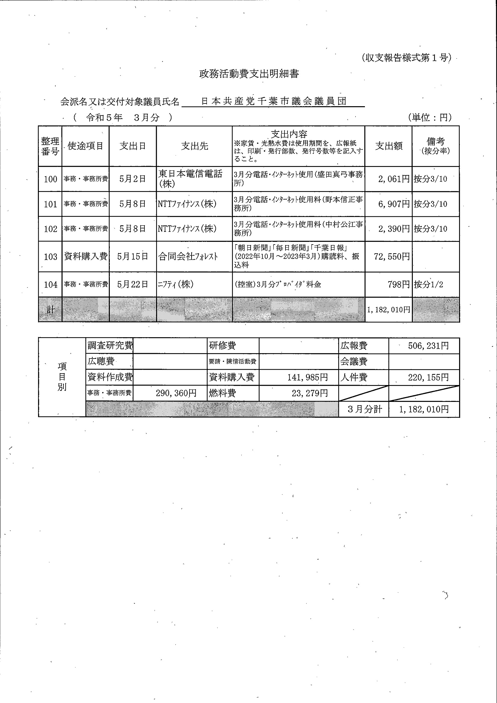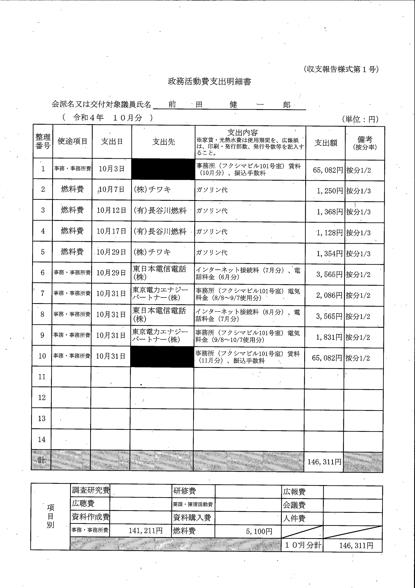 千葉市議会トップページ > 広報・情報公開 > 政務活動費 > 令和4年度交付分(政務活動費収支報告書)