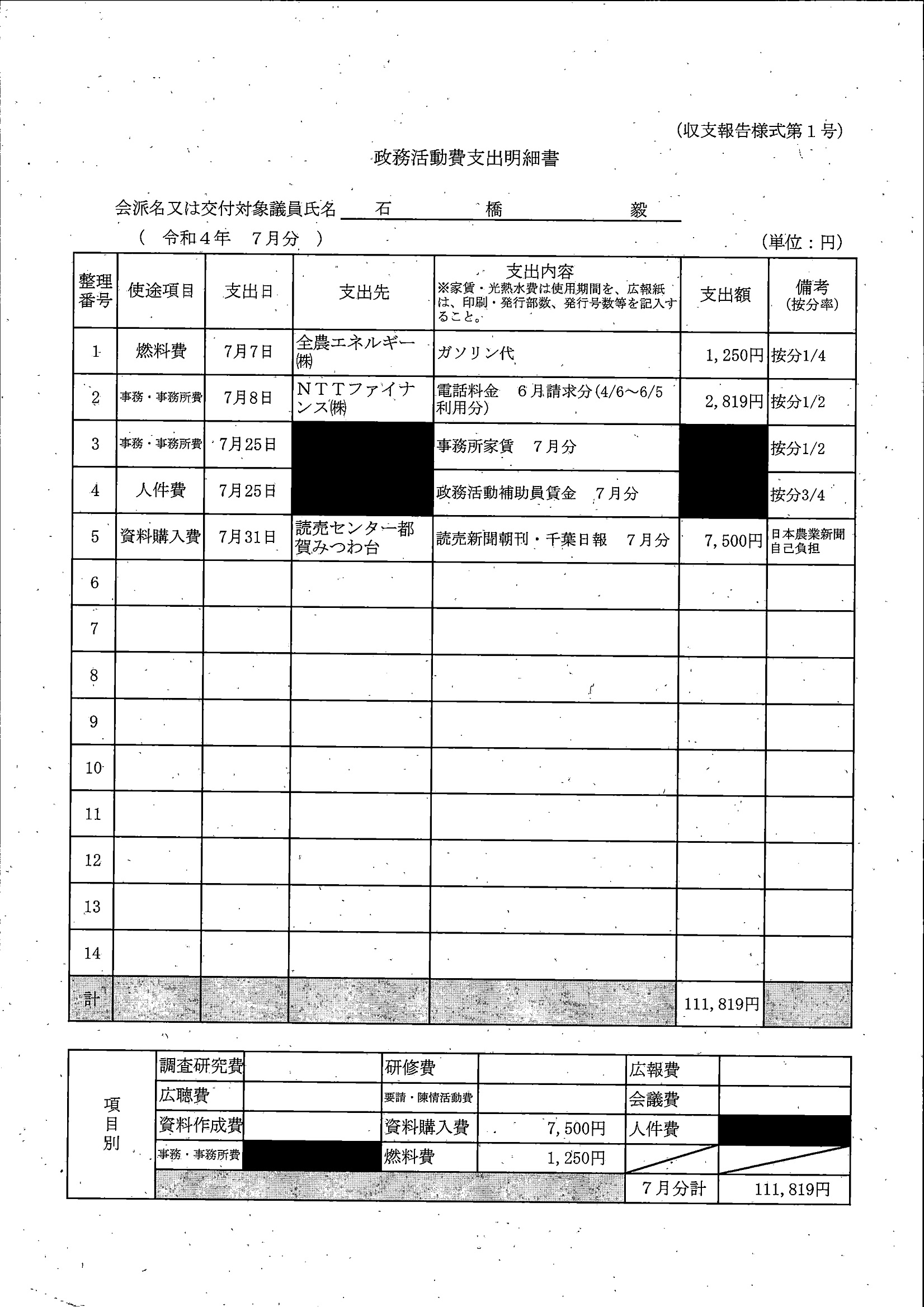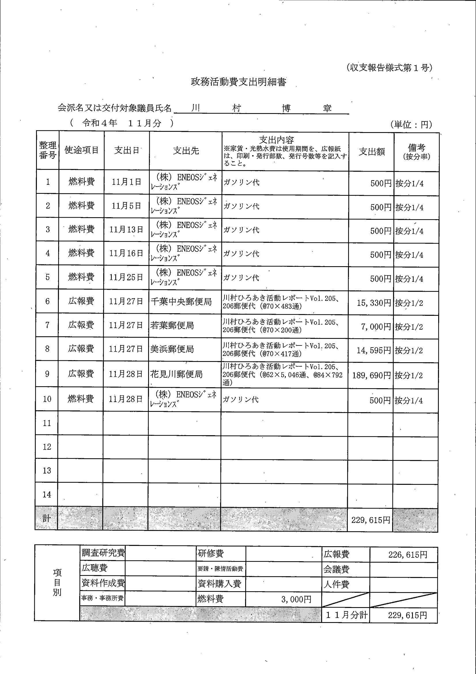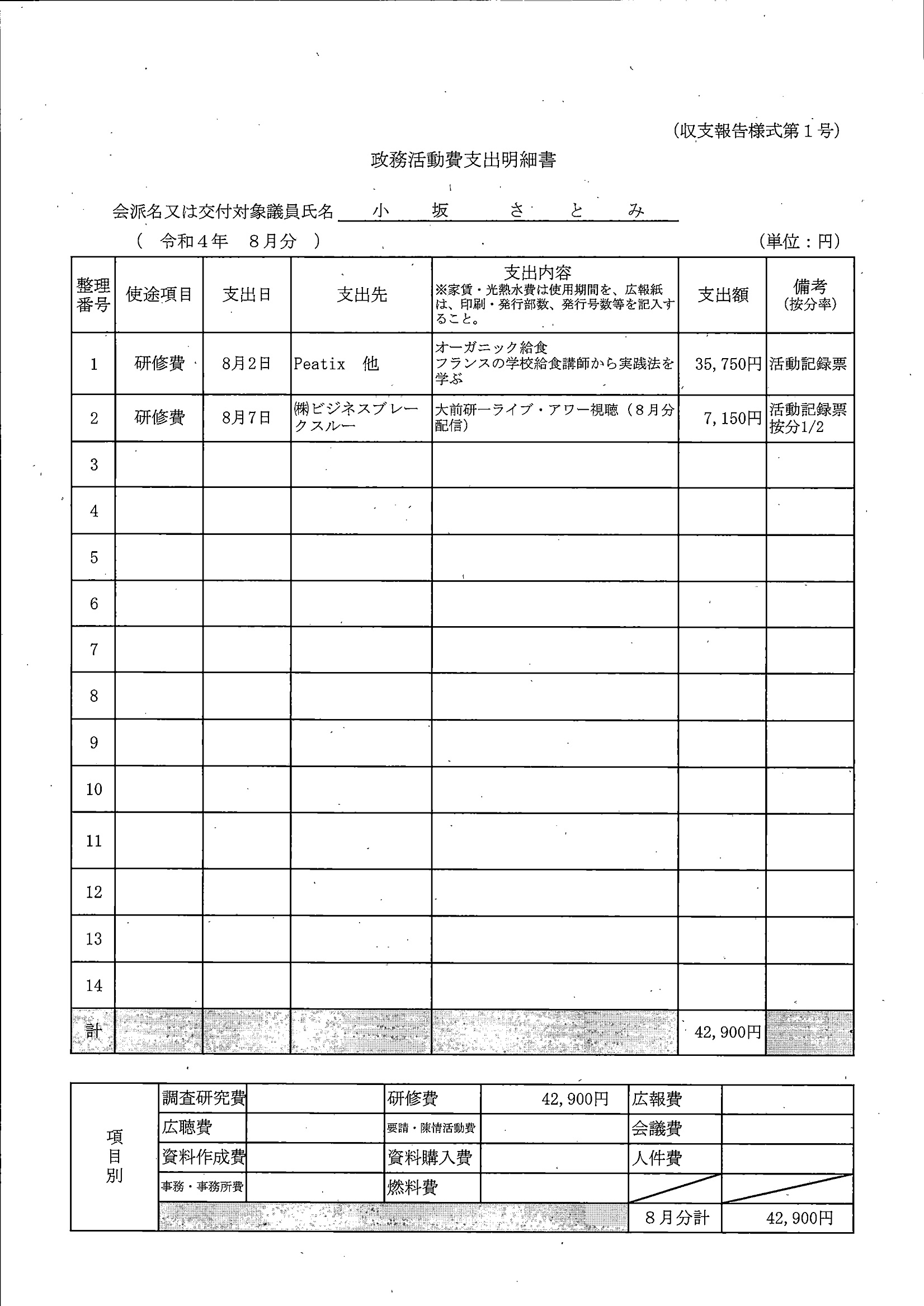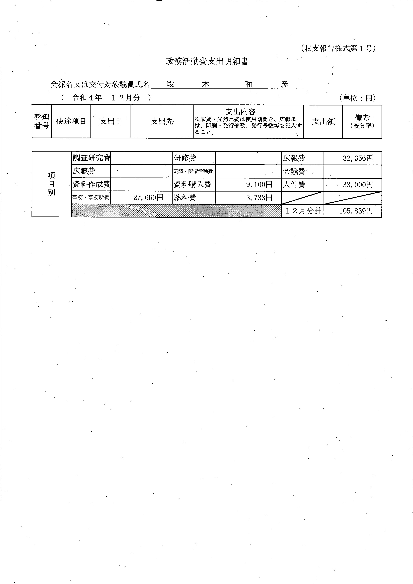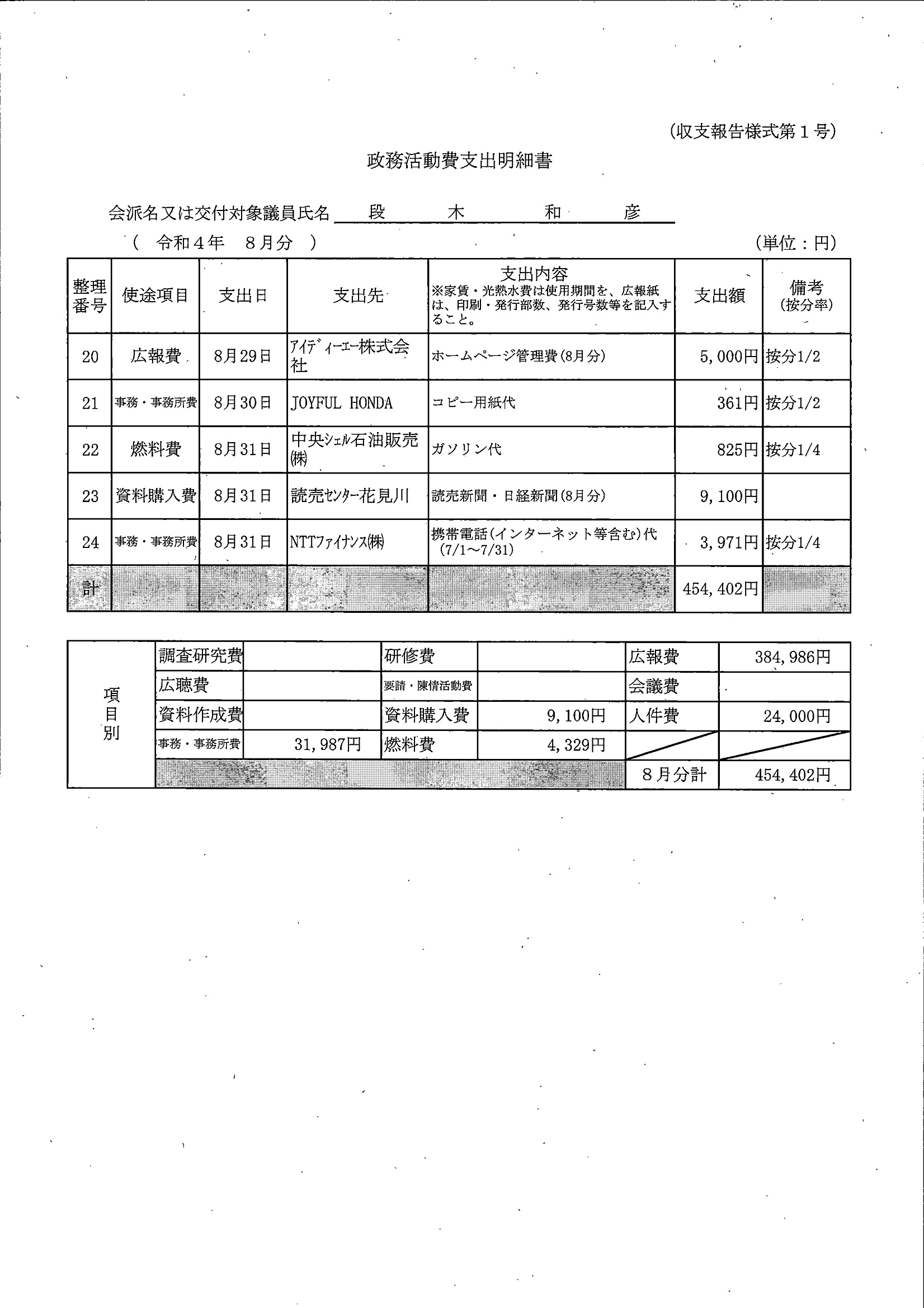 千葉市議会トップページ > 広報・情報公開 > 政務活動費 > 令和4年度交付分(政務活動費収支報告書)