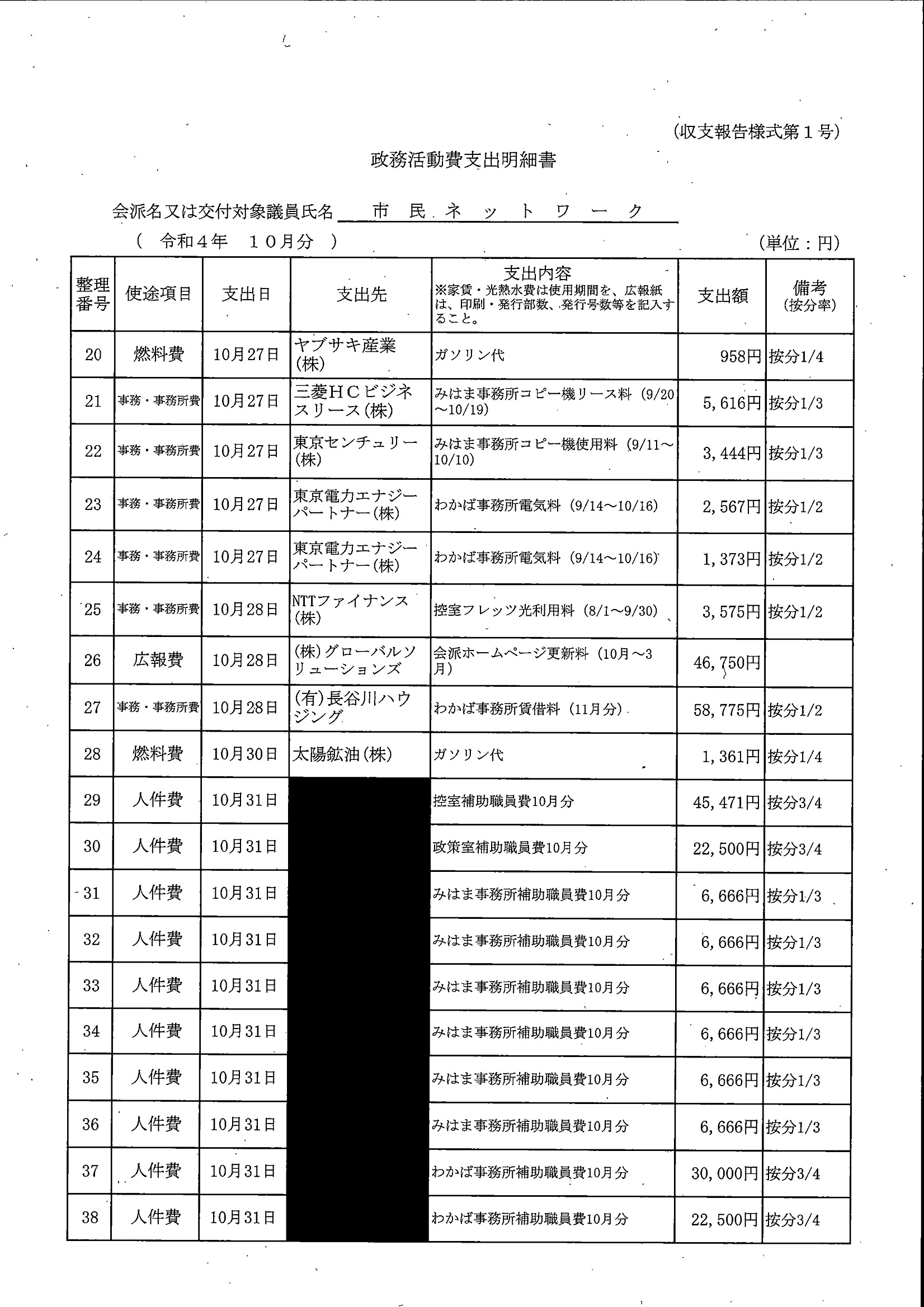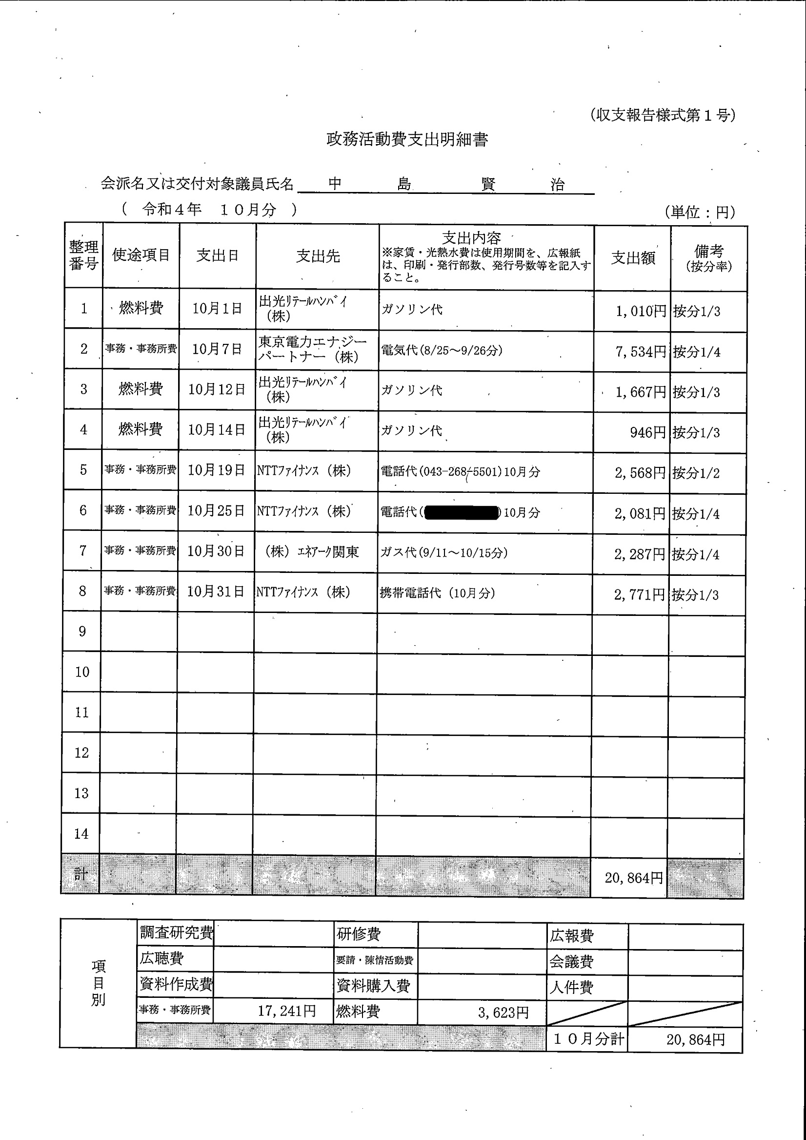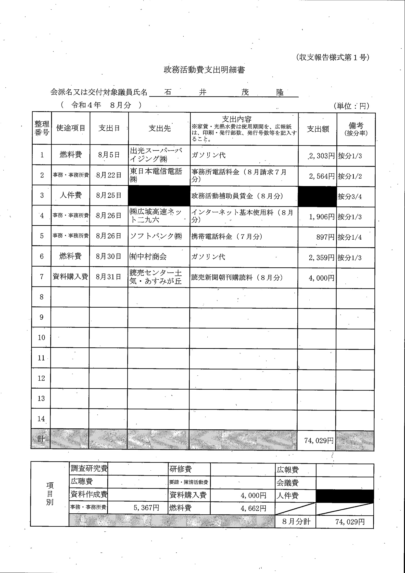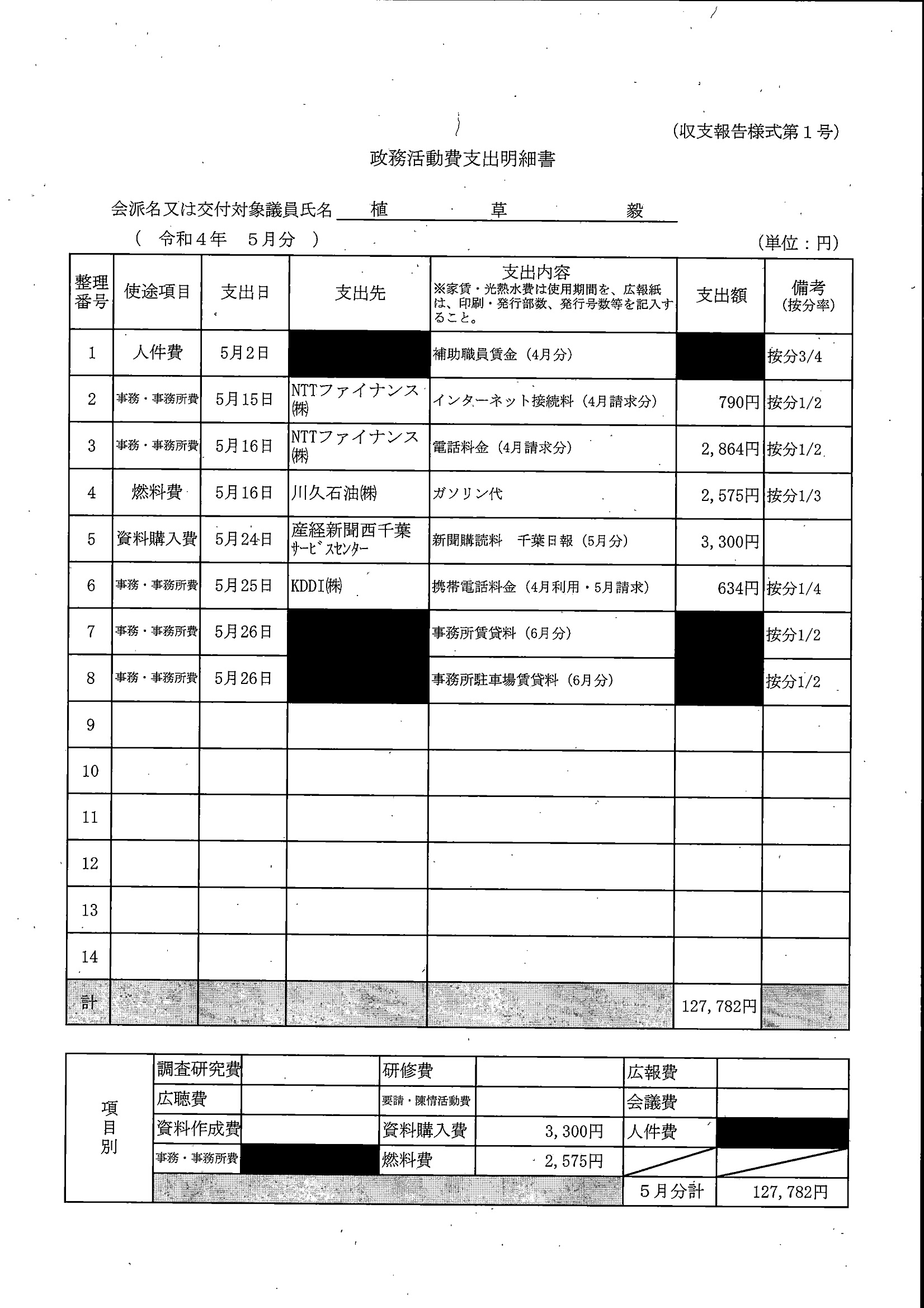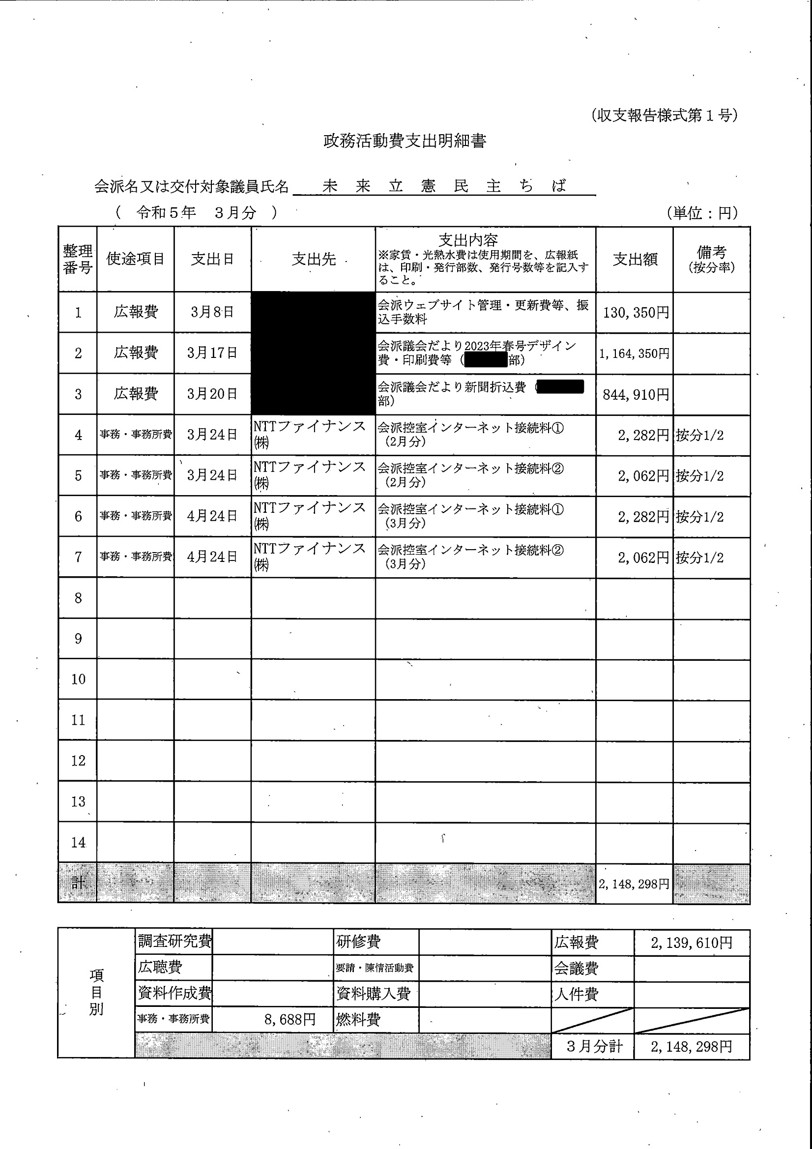 千葉市議会トップページ > 広報・情報公開 > 政務活動費 > 令和4年度交付分(政務活動費収支報告書)