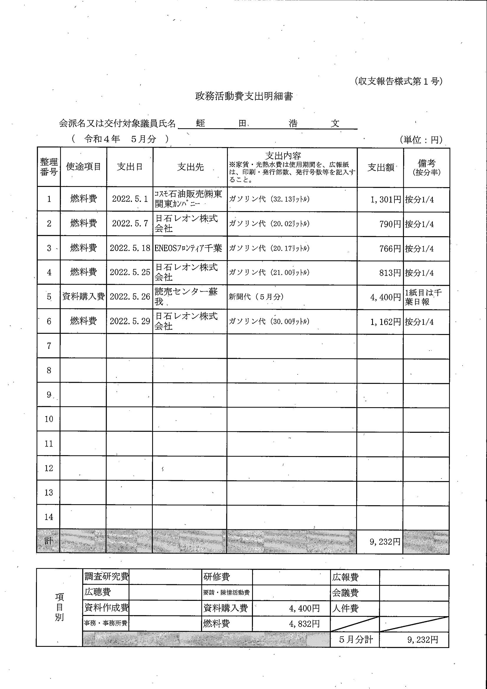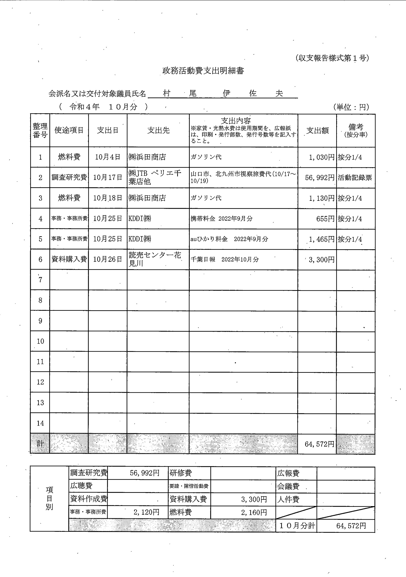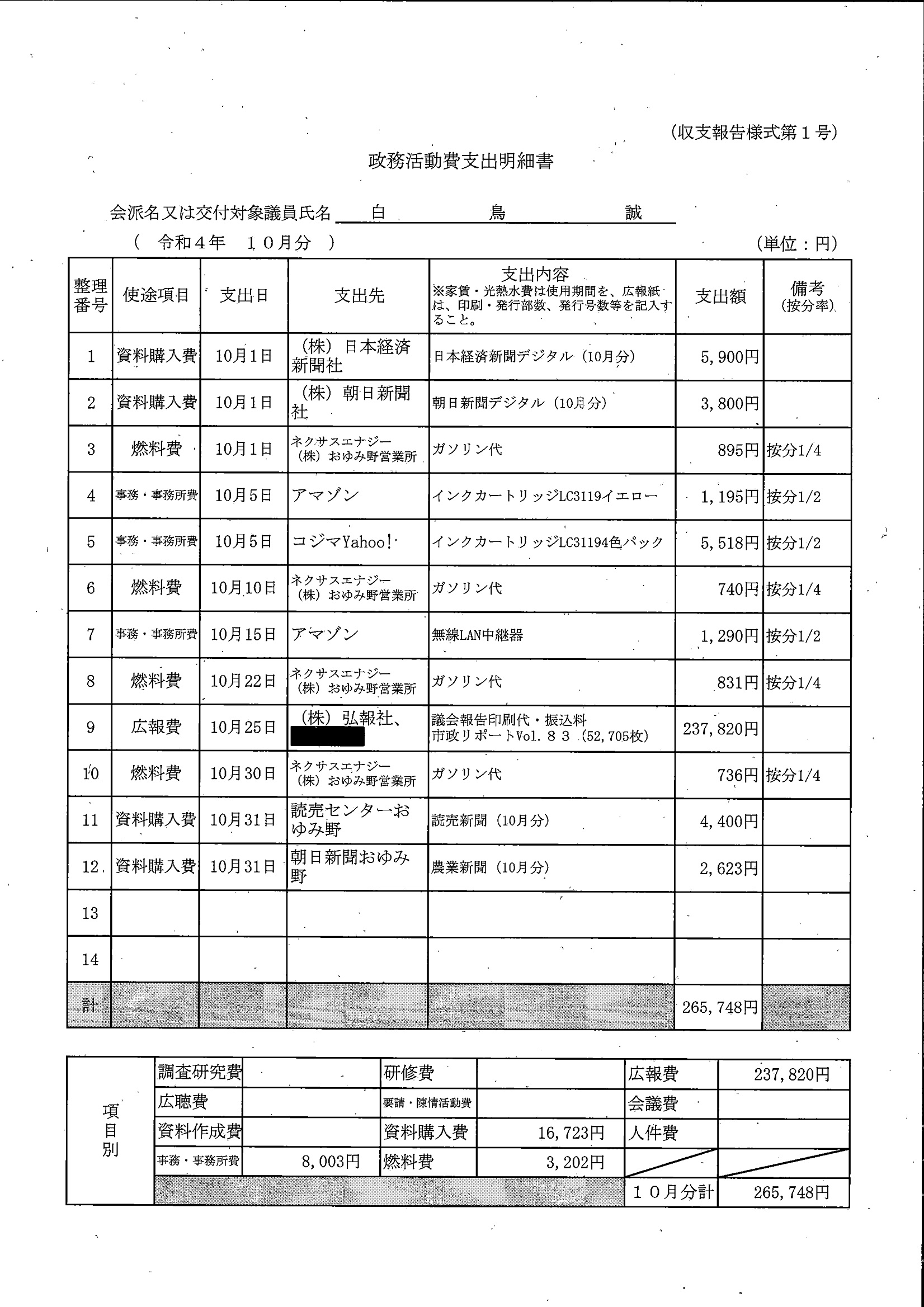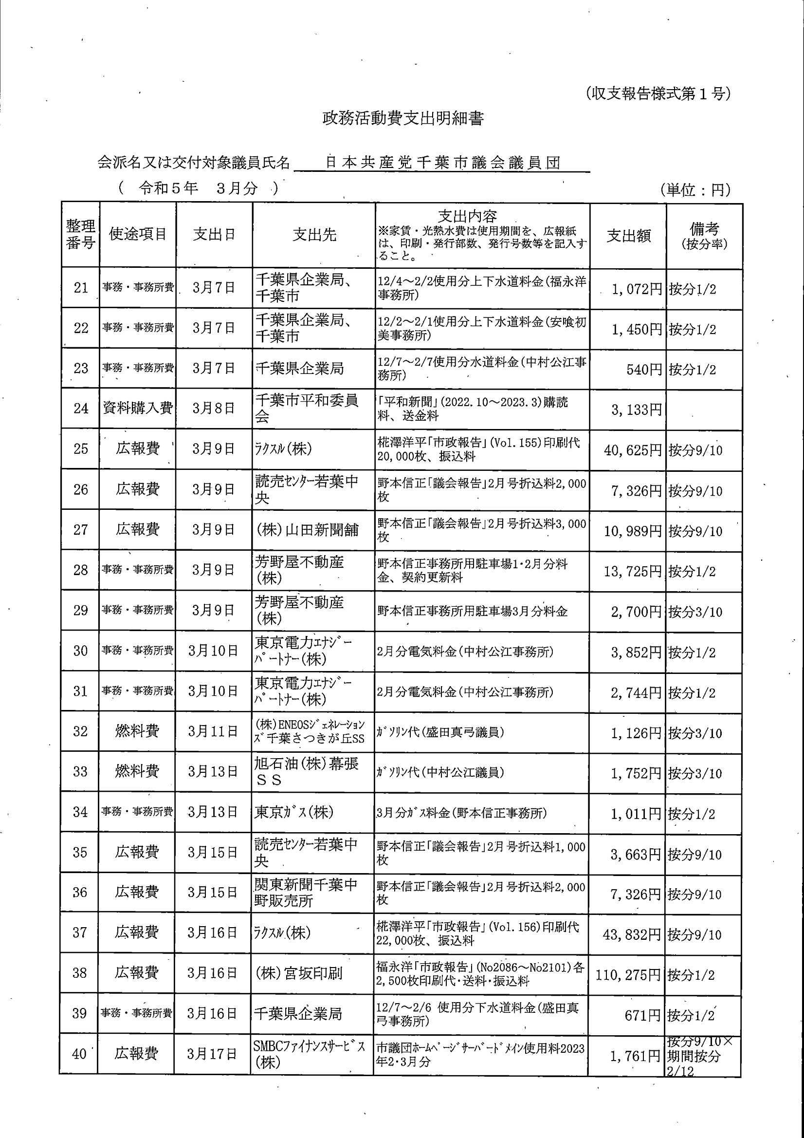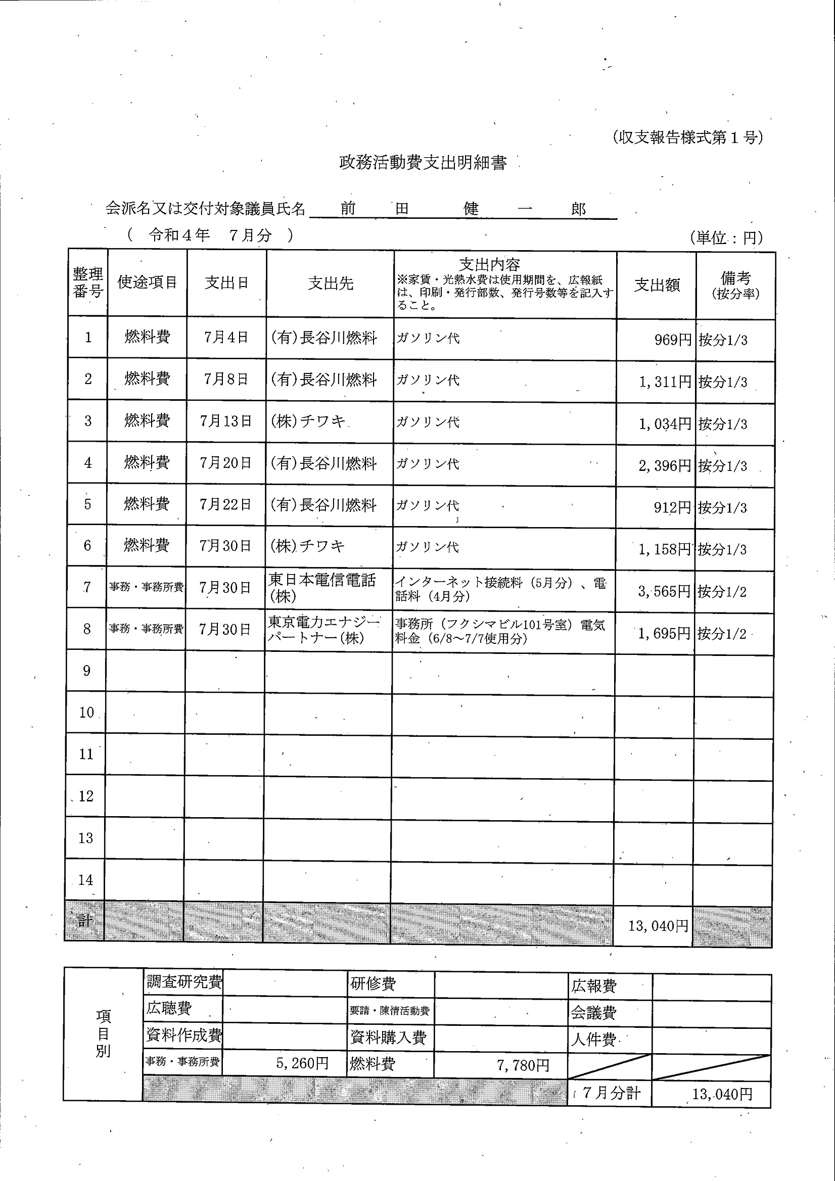 千葉市議会トップページ > 広報・情報公開 > 政務活動費 > 令和4年度交付分(政務活動費収支報告書)