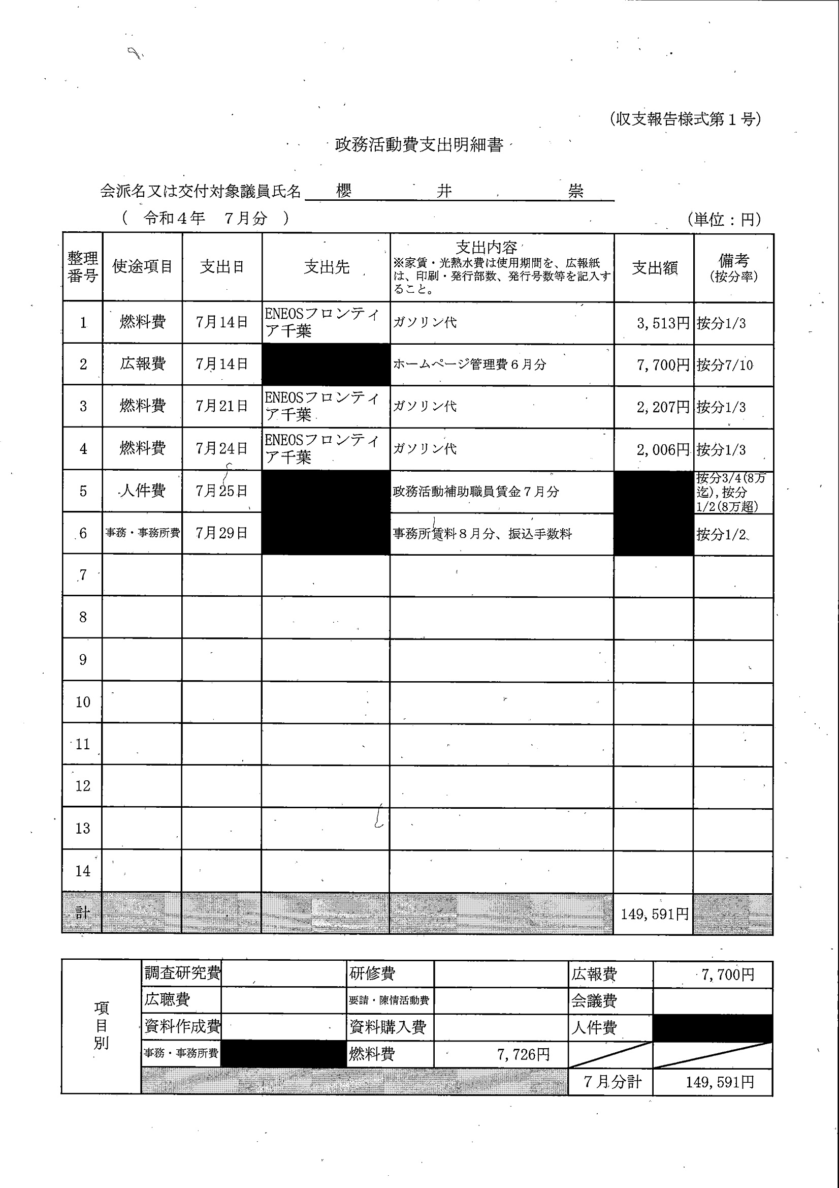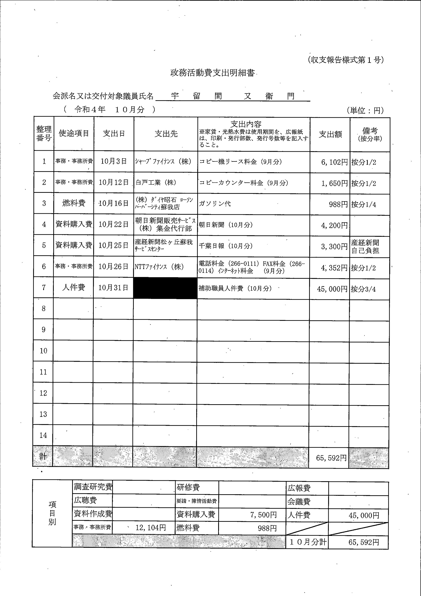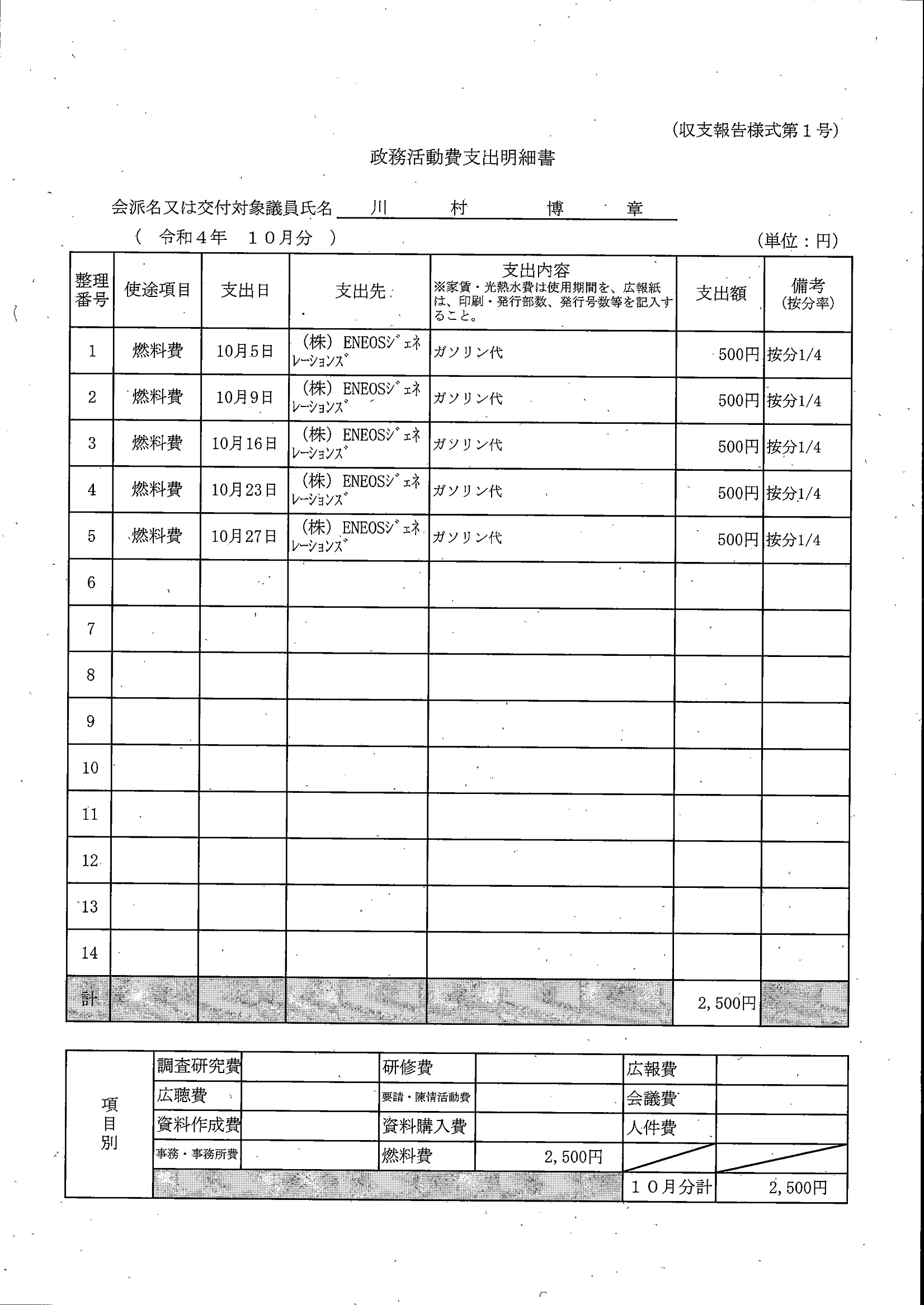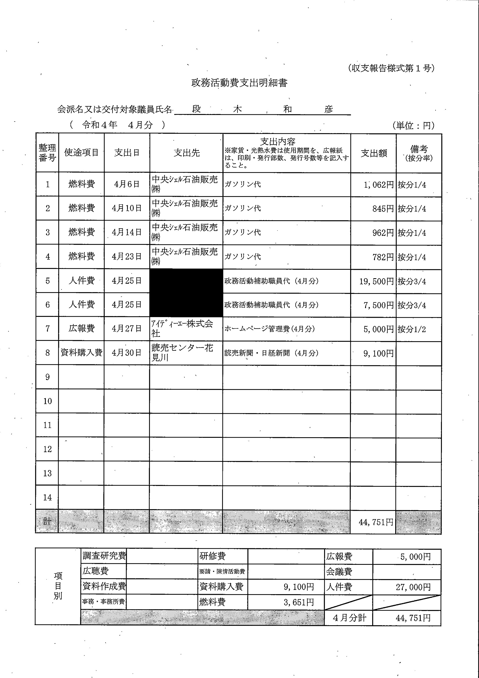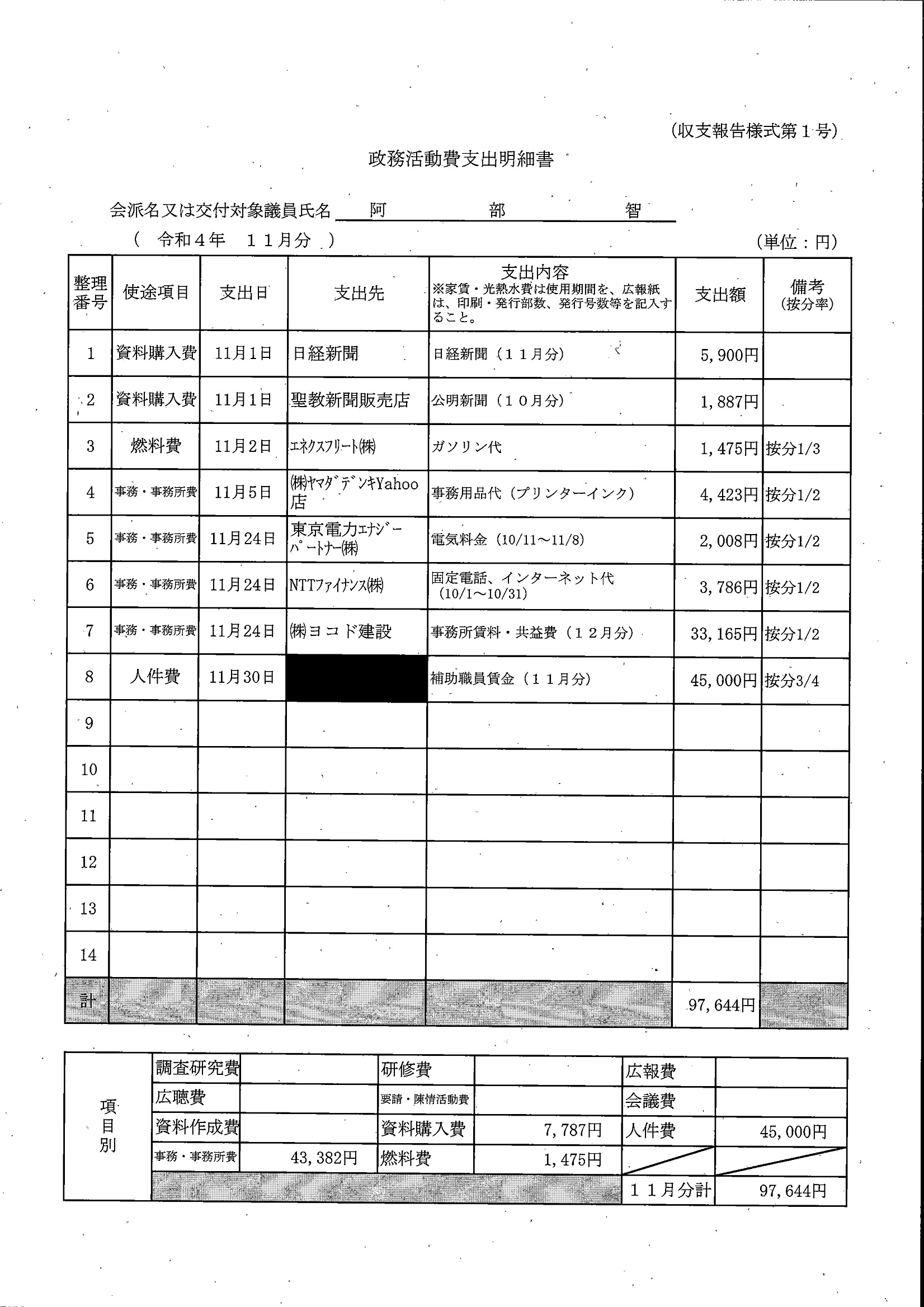 千葉市議会トップページ > 広報・情報公開 > 政務活動費 > 令和4年度交付分(政務活動費収支報告書)