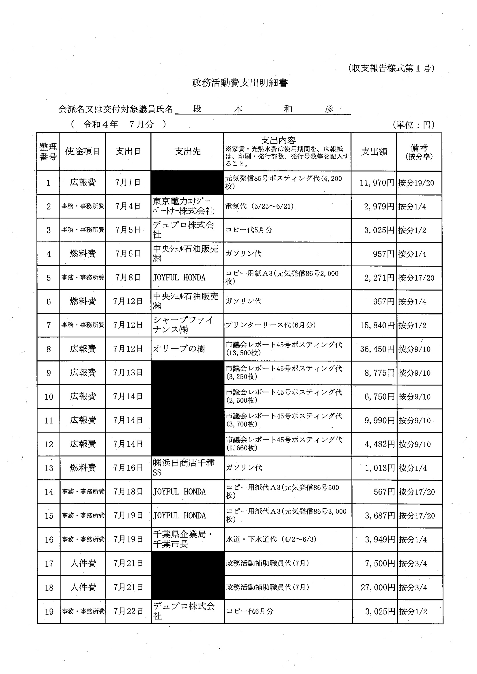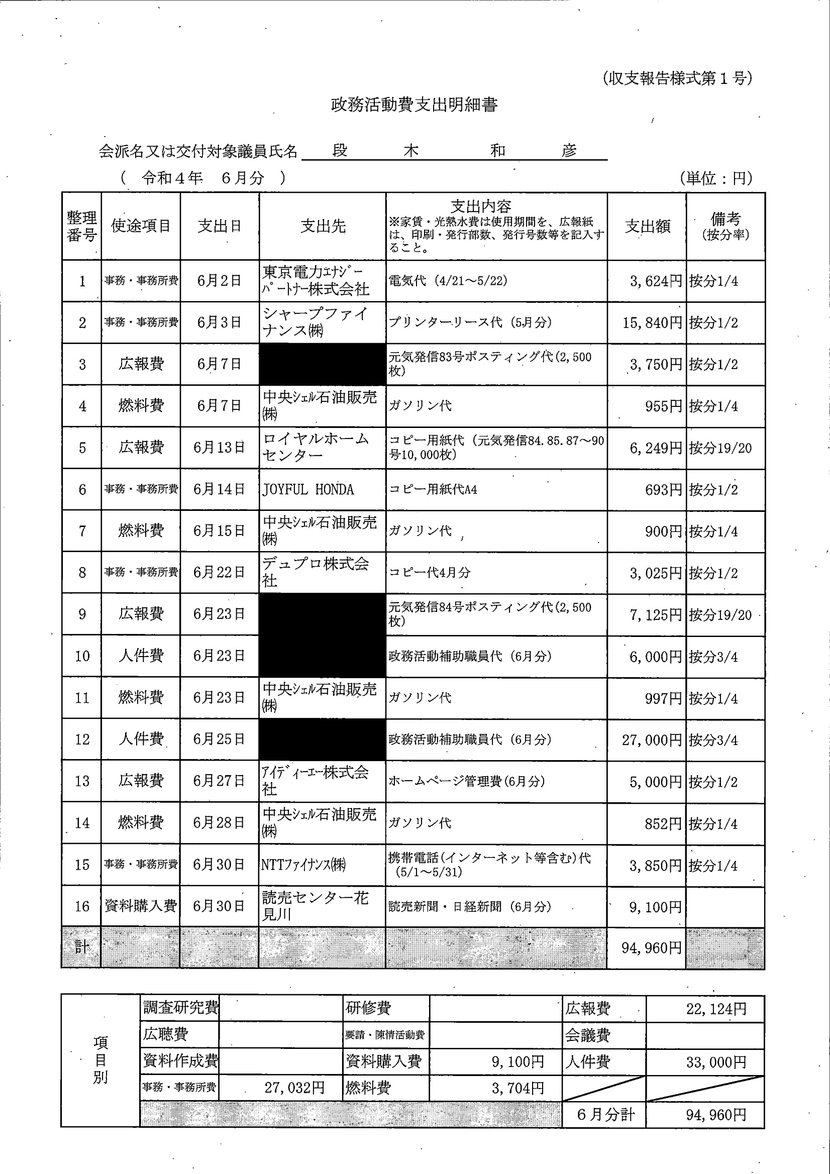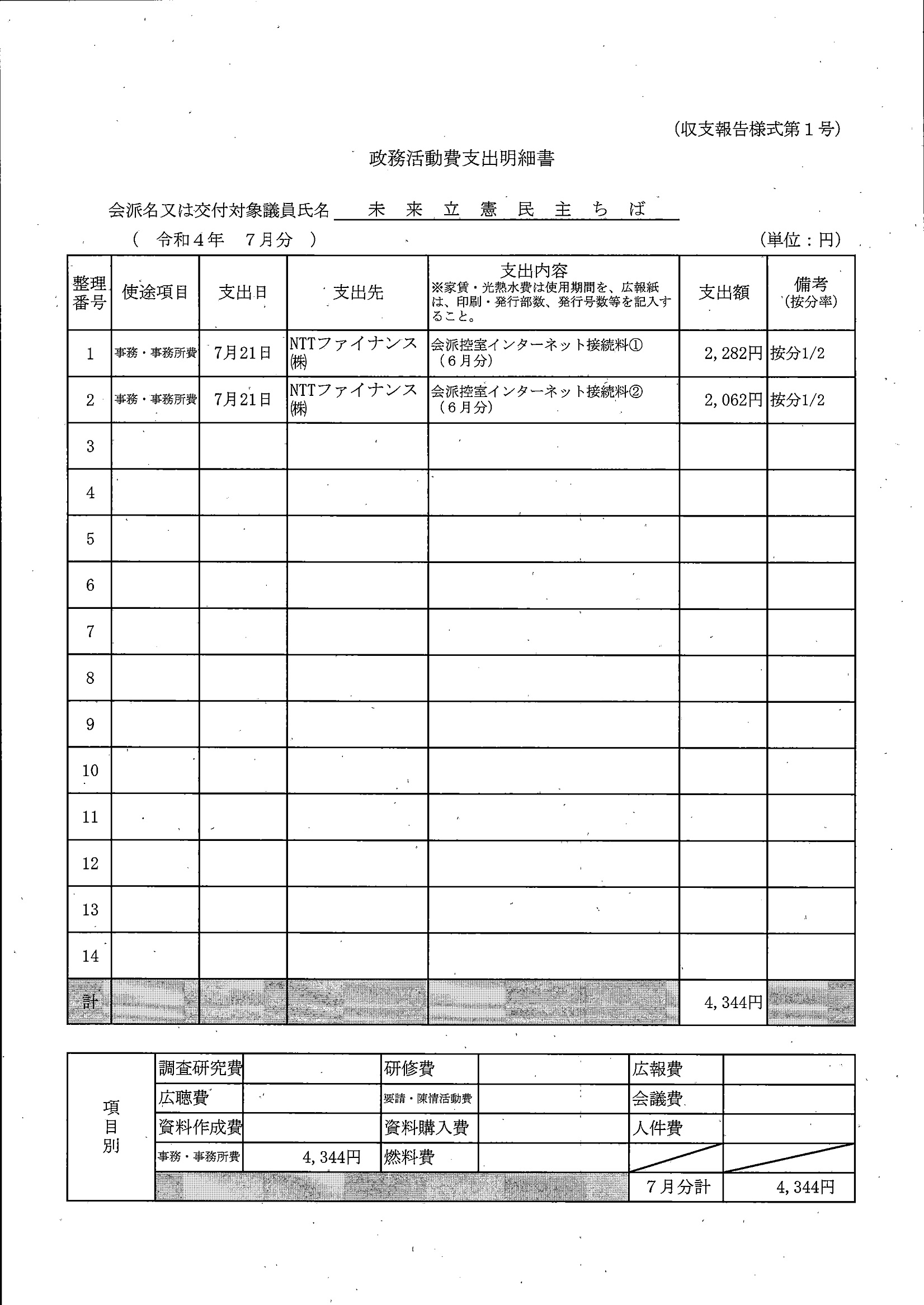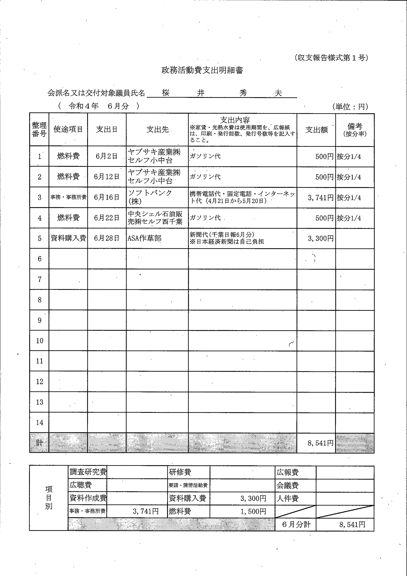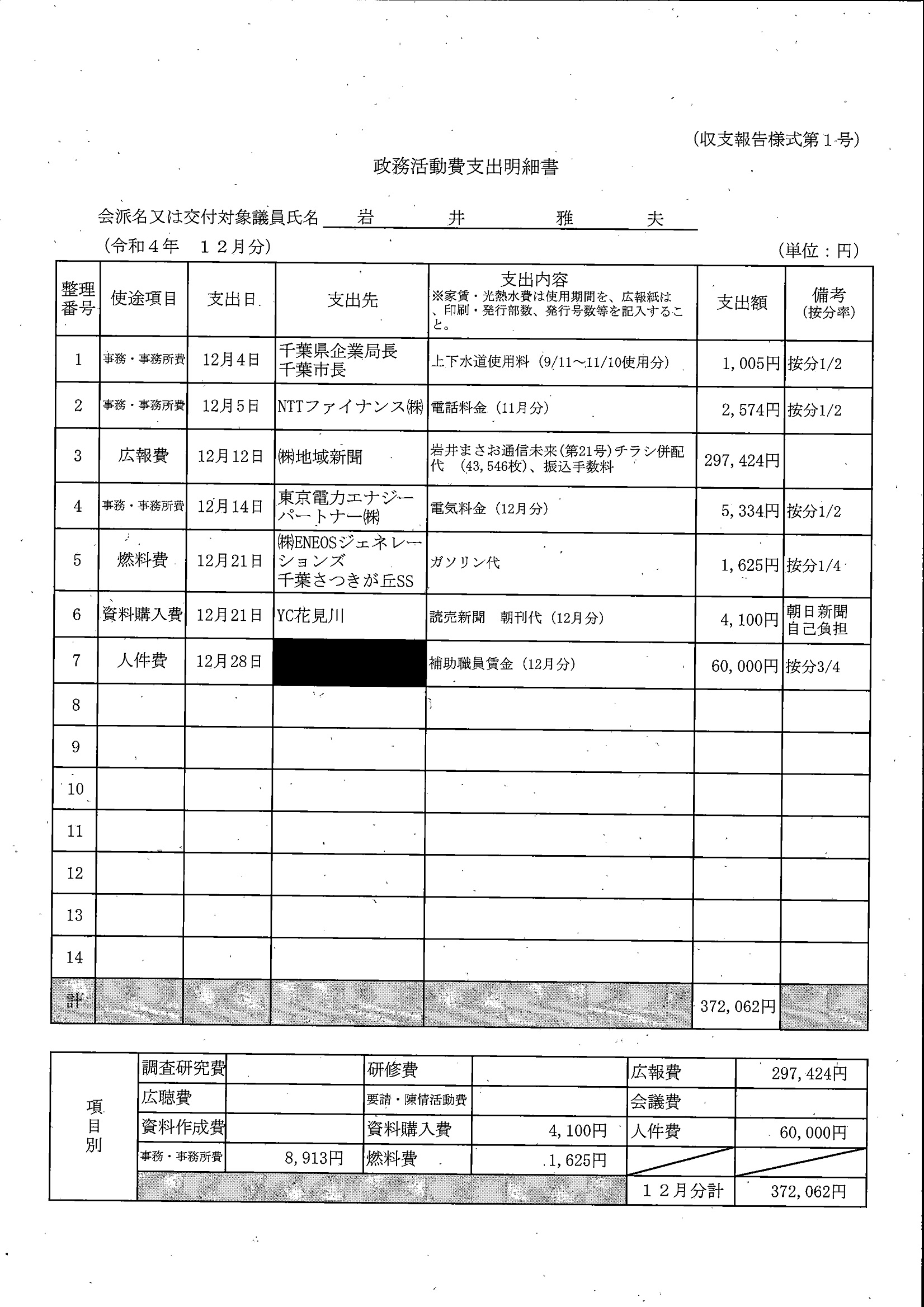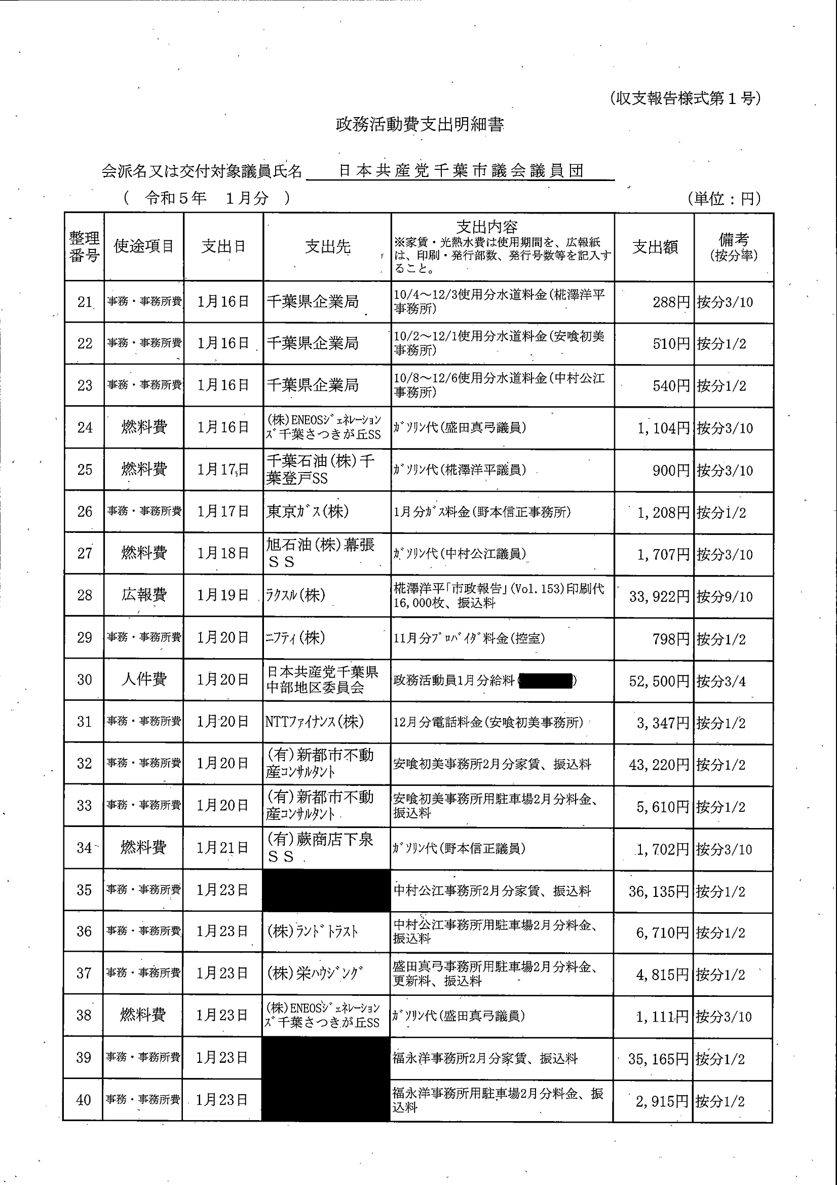 千葉市議会トップページ > 広報・情報公開 > 政務活動費 > 令和4年度交付分(政務活動費収支報告書)