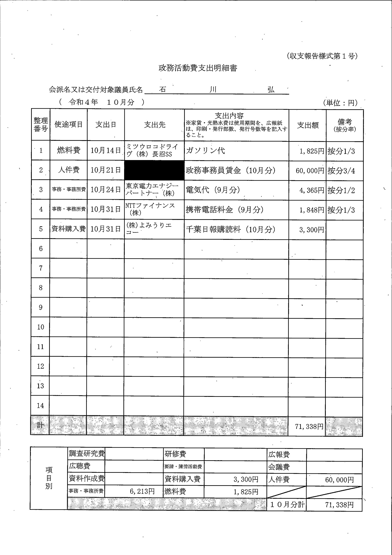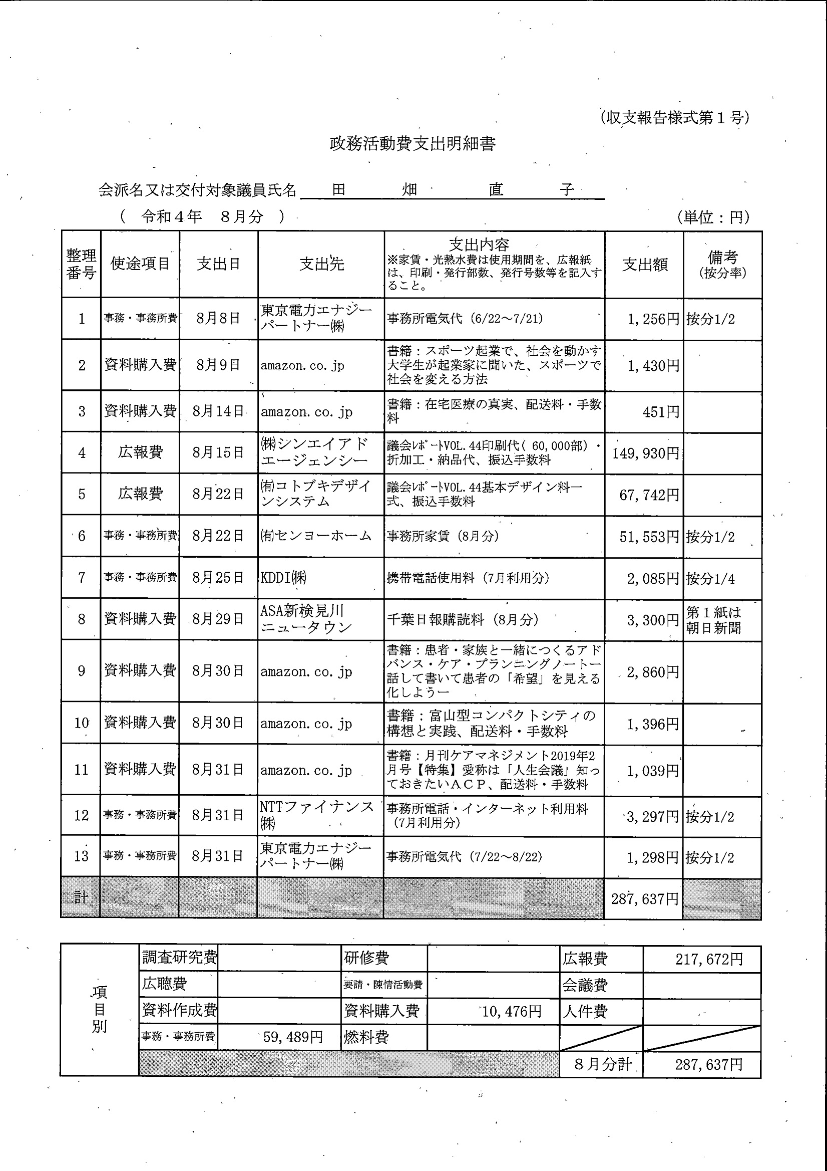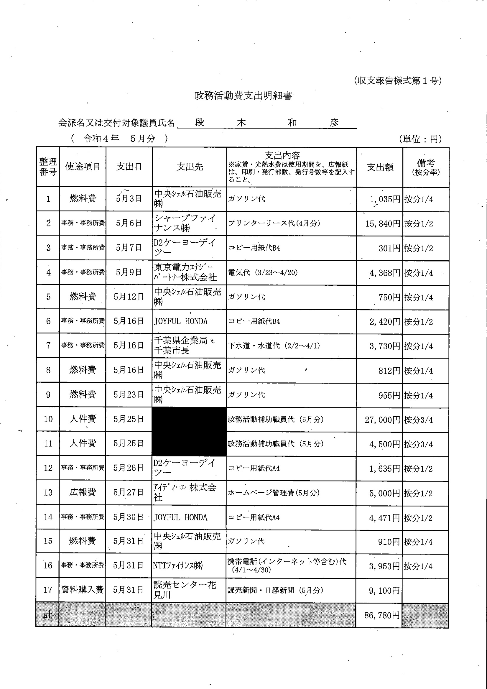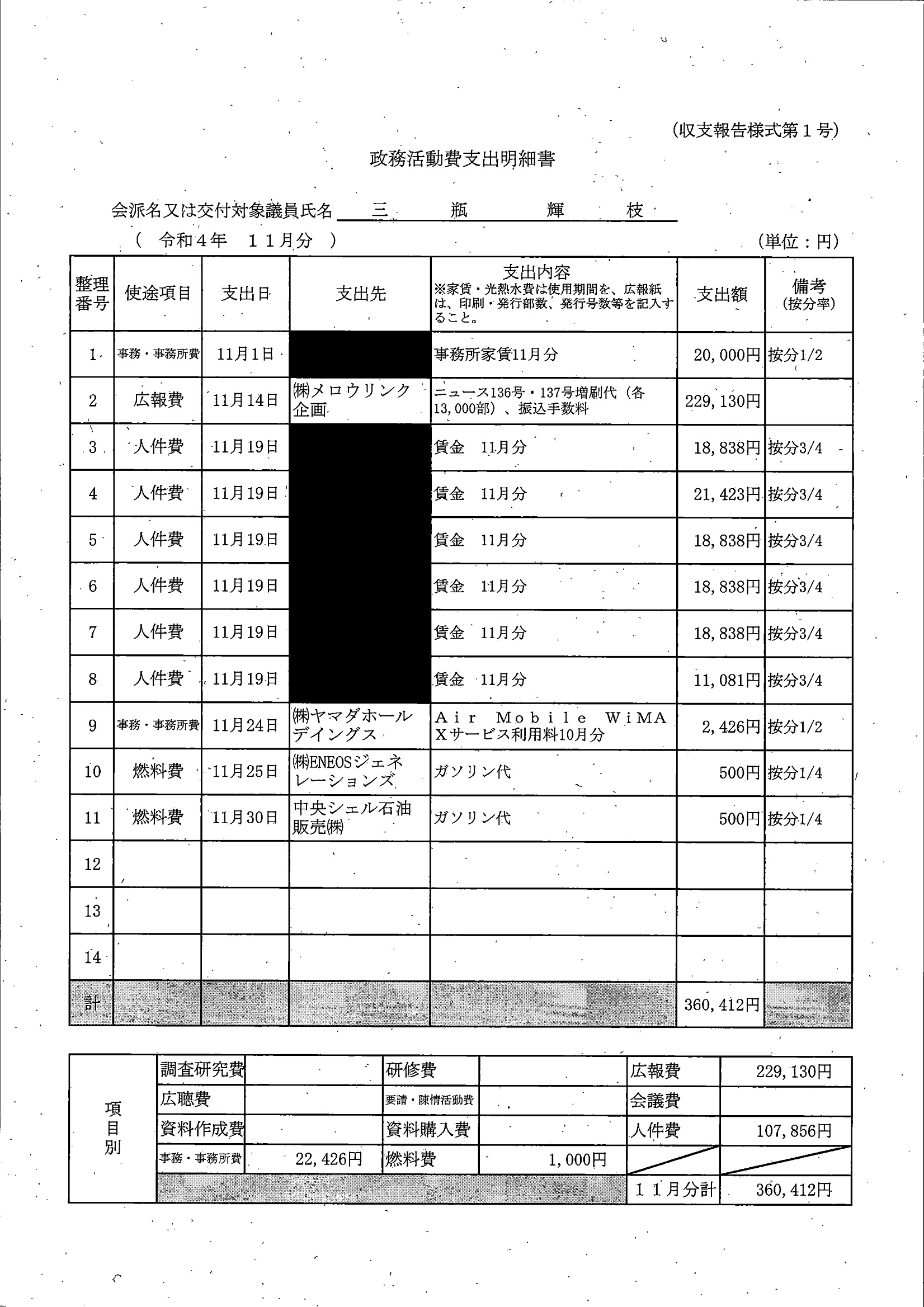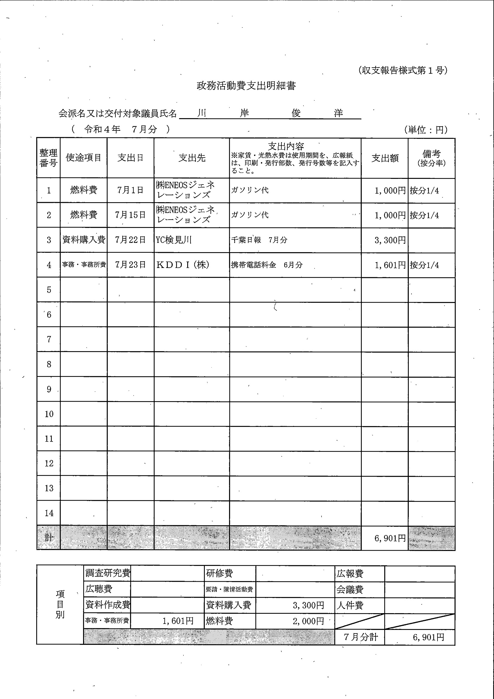 千葉市議会トップページ > 広報・情報公開 > 政務活動費 > 令和4年度交付分(政務活動費収支報告書)