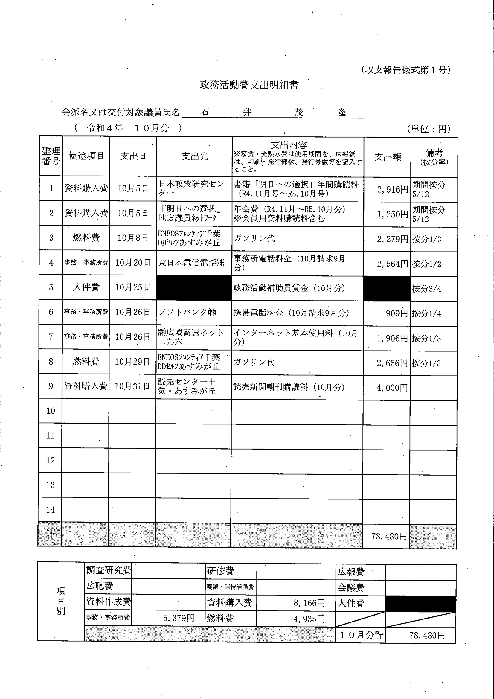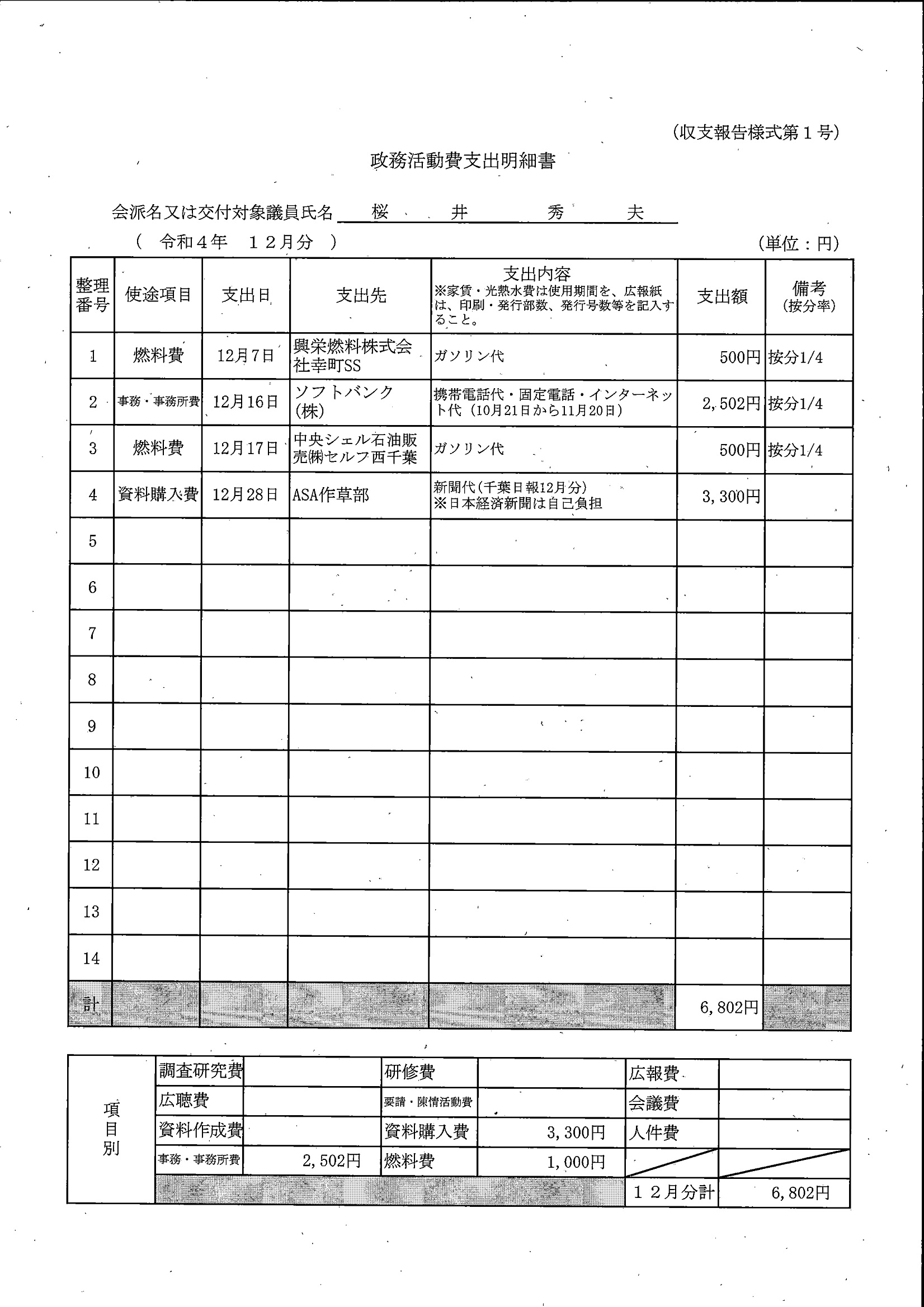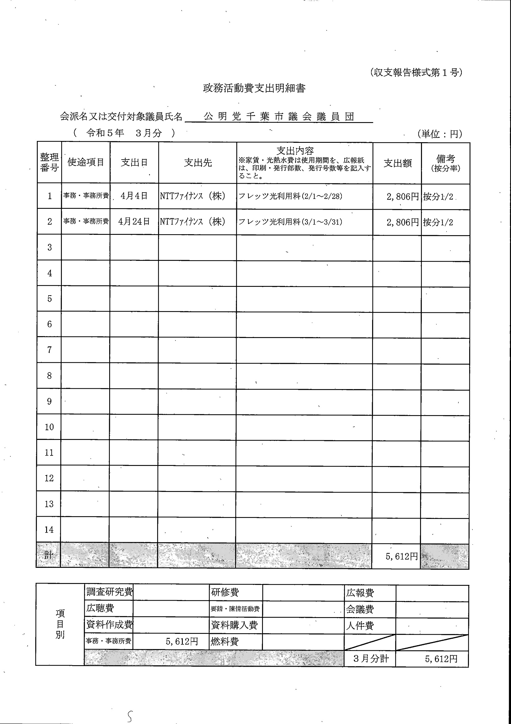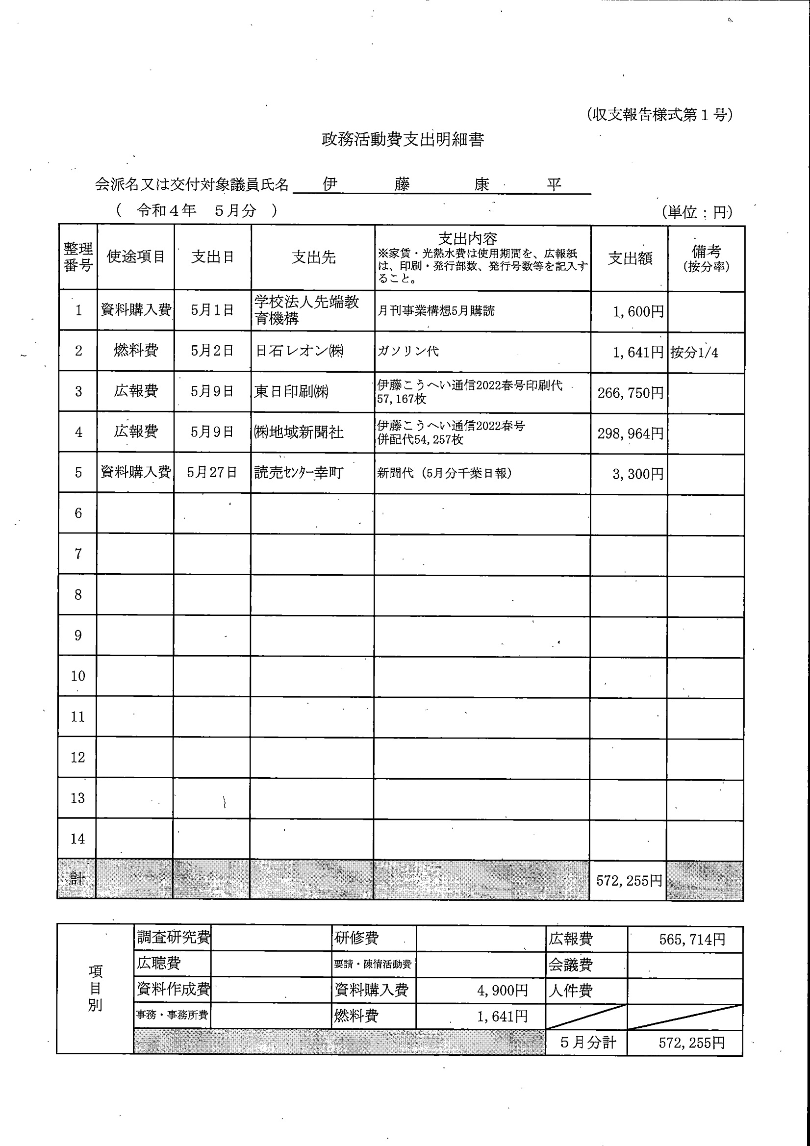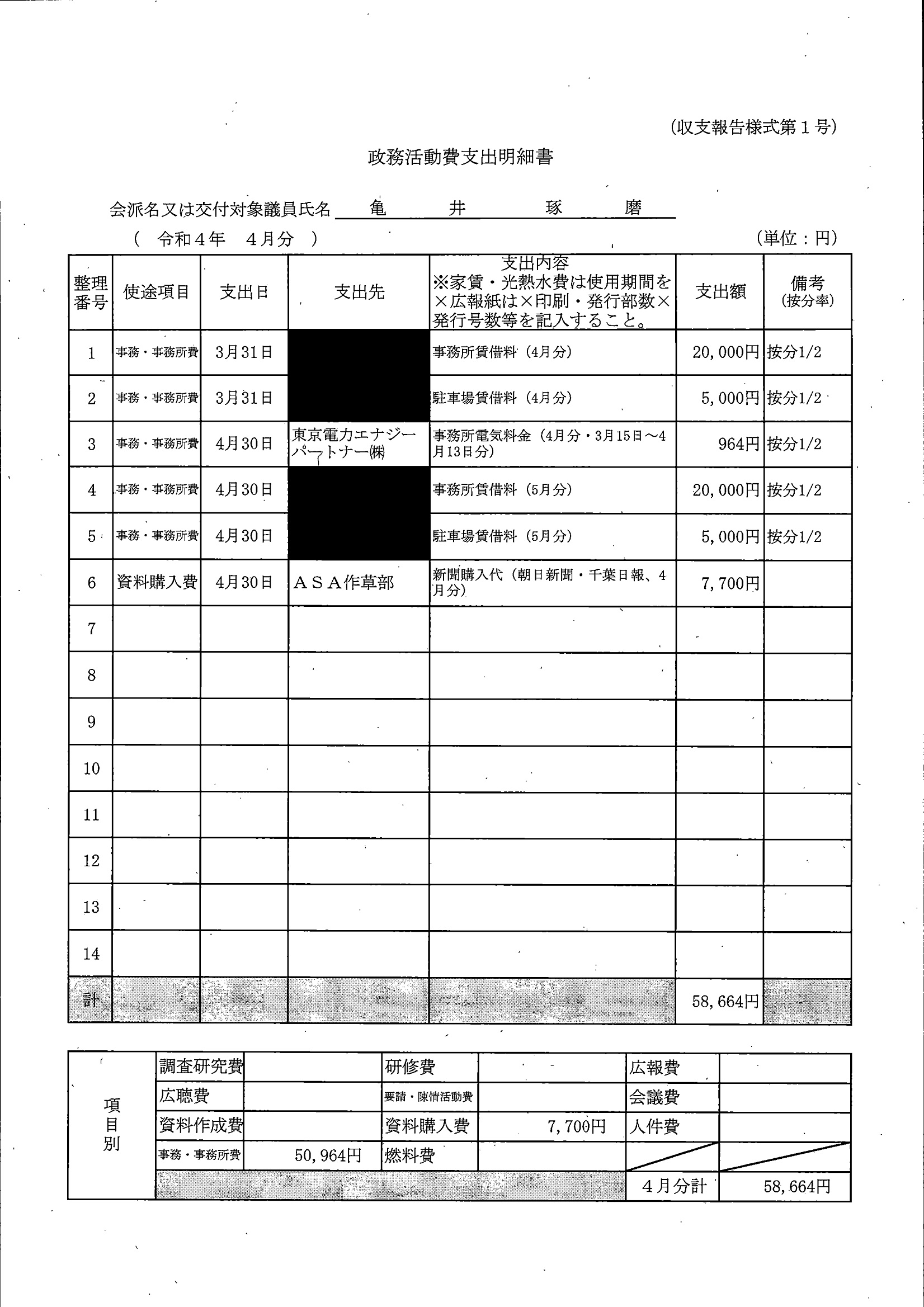 千葉市議会トップページ > 広報・情報公開 > 政務活動費 > 令和4年度交付分(政務活動費収支報告書)