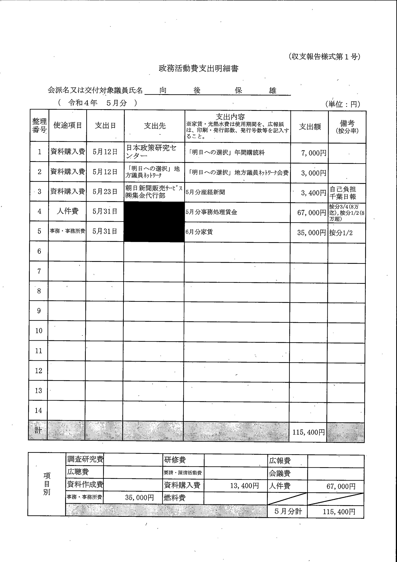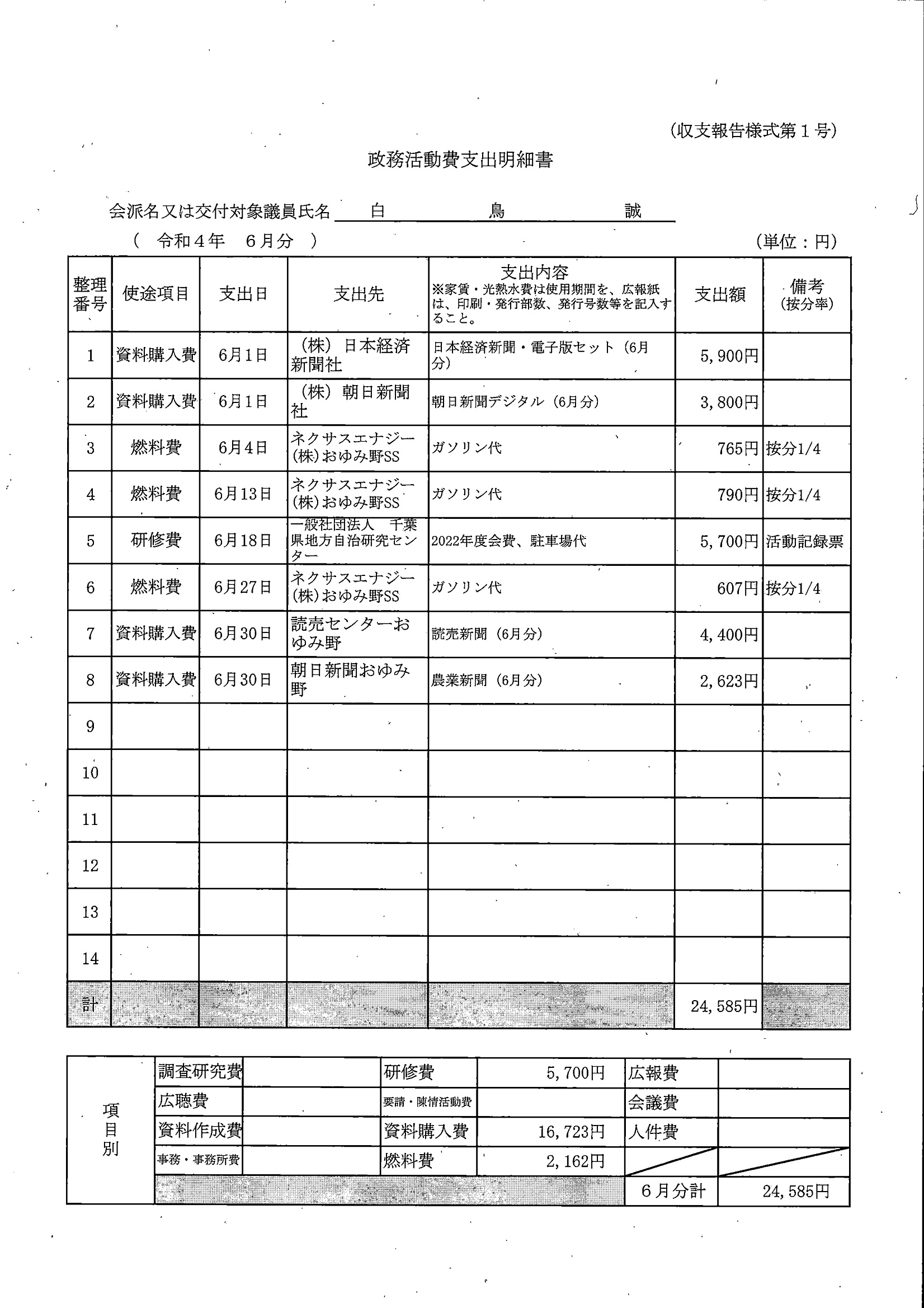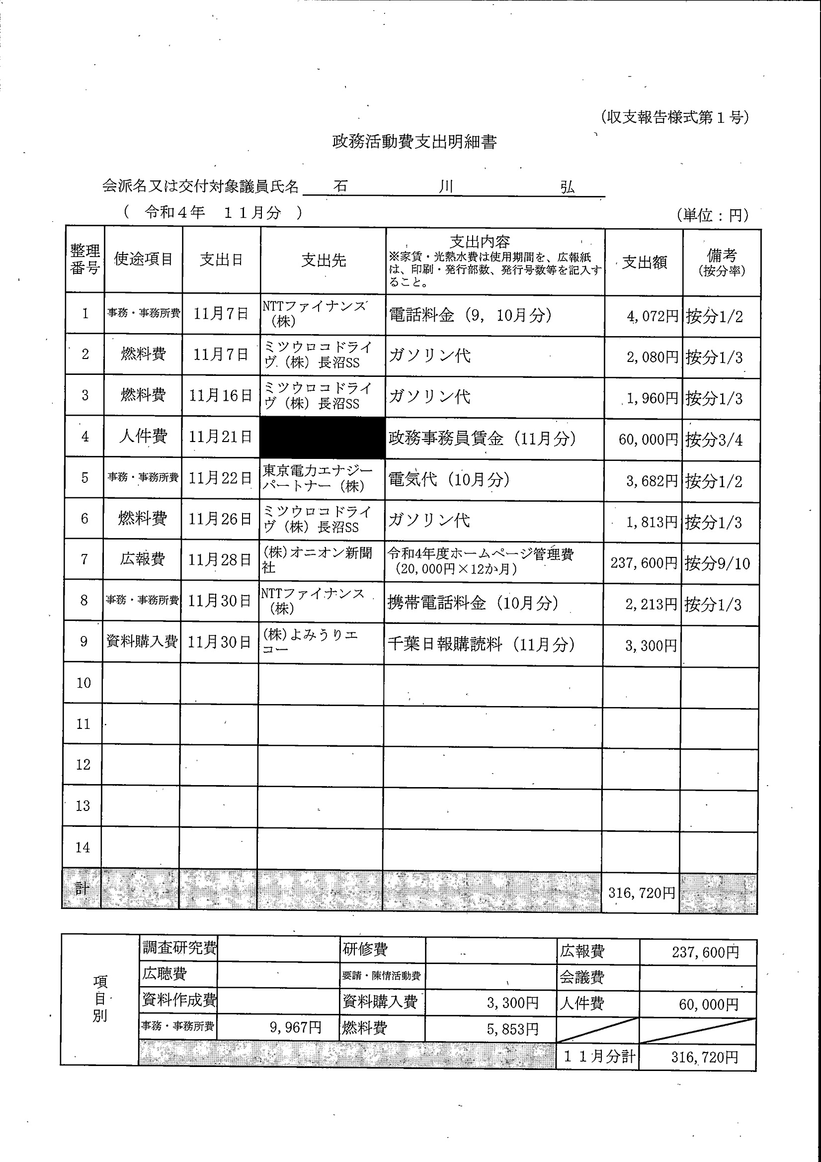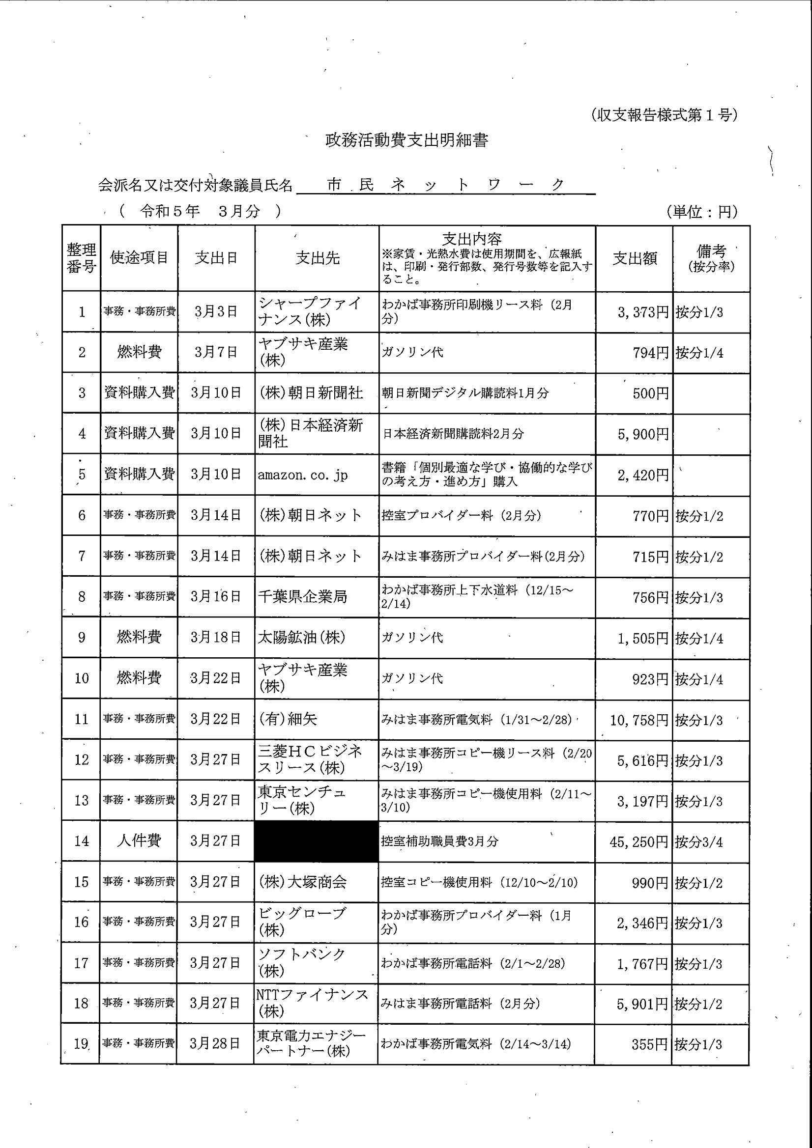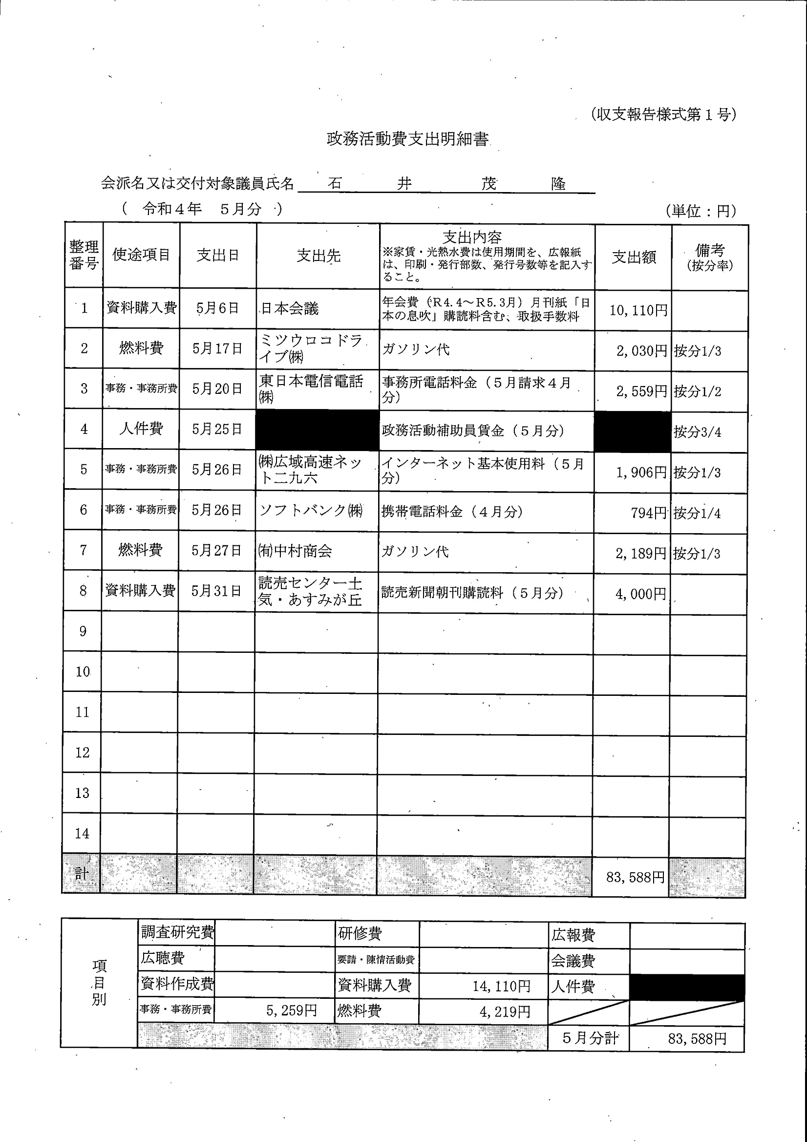千葉市議会トップページ > 広報・情報公開 > 政務活動費 > 令和4年度交付分(政務活動費収支報告書)
