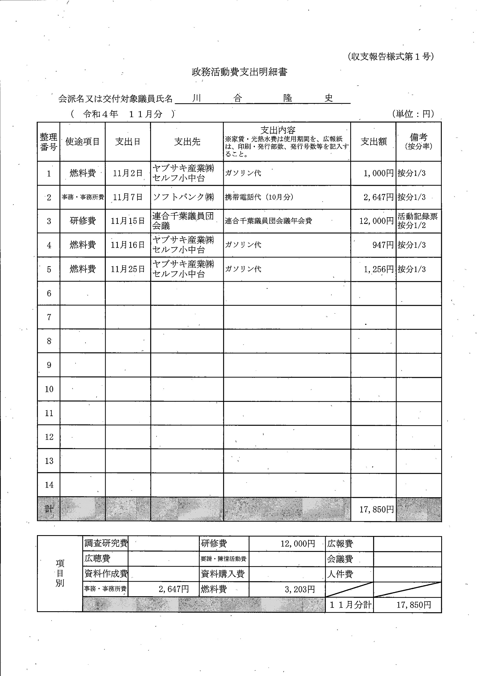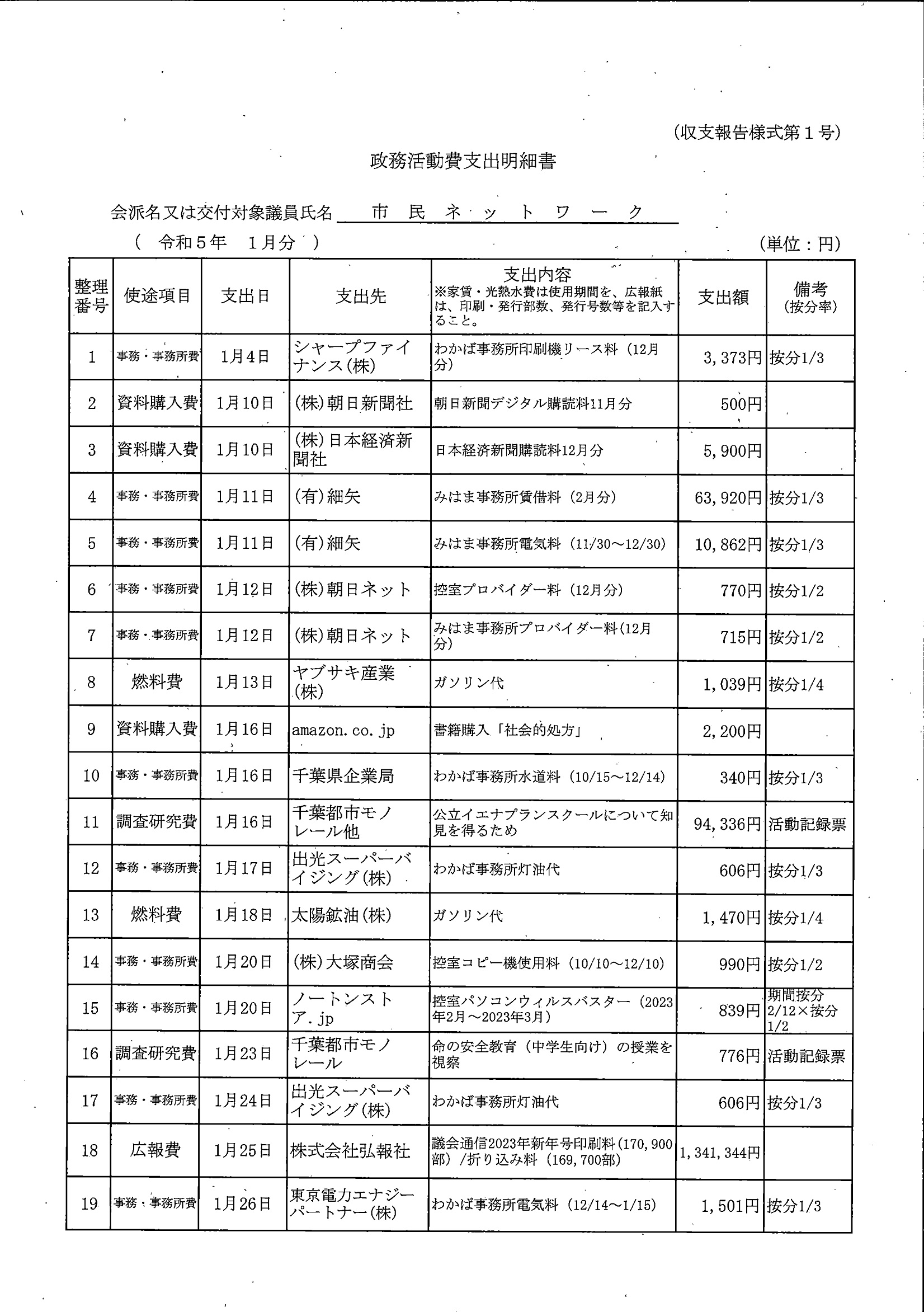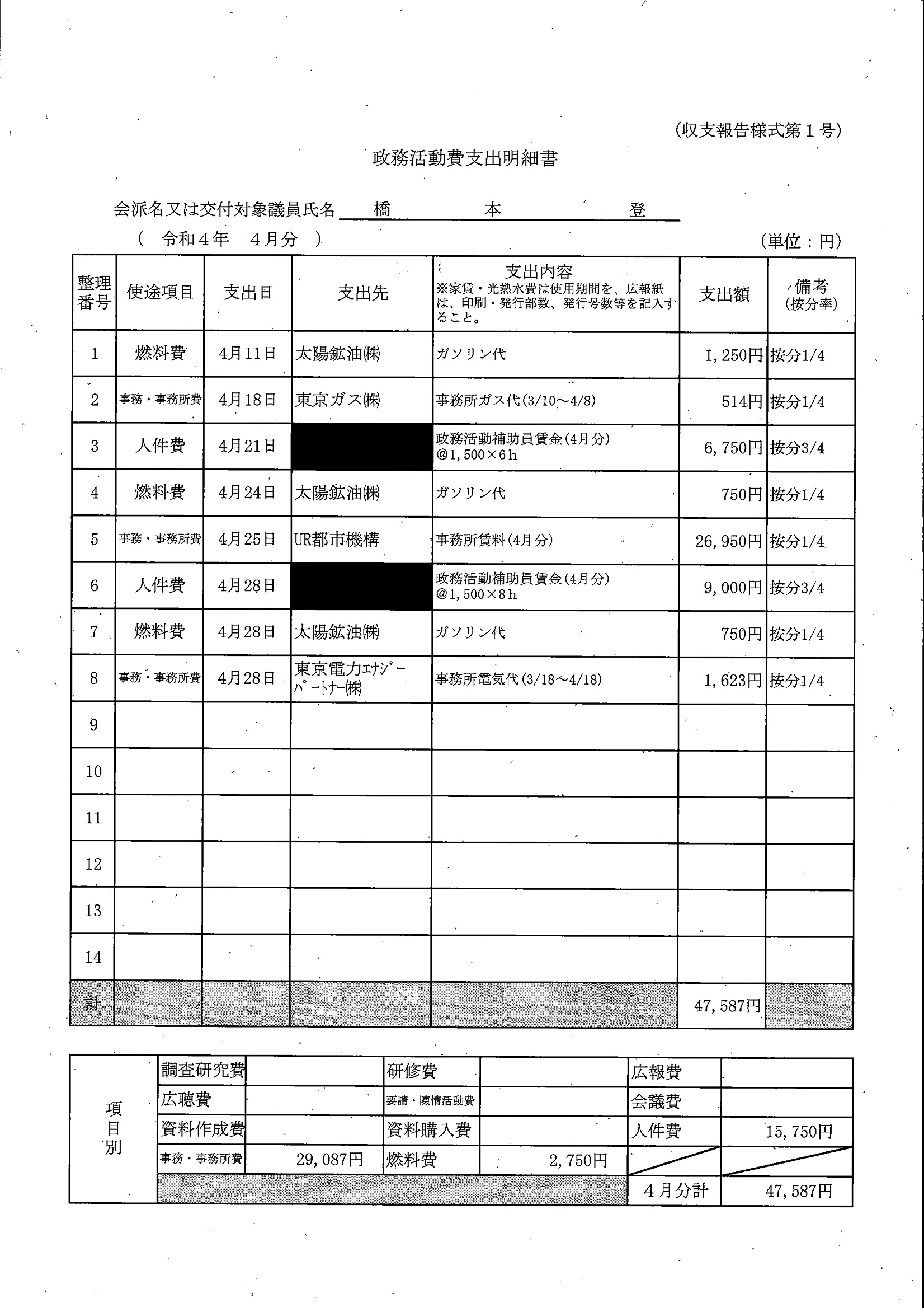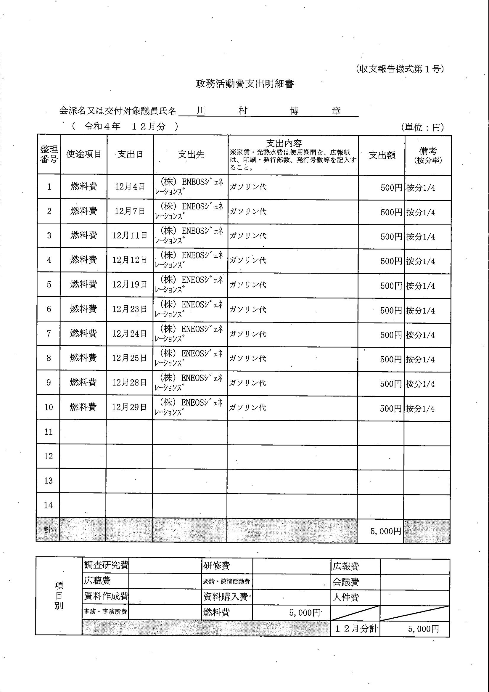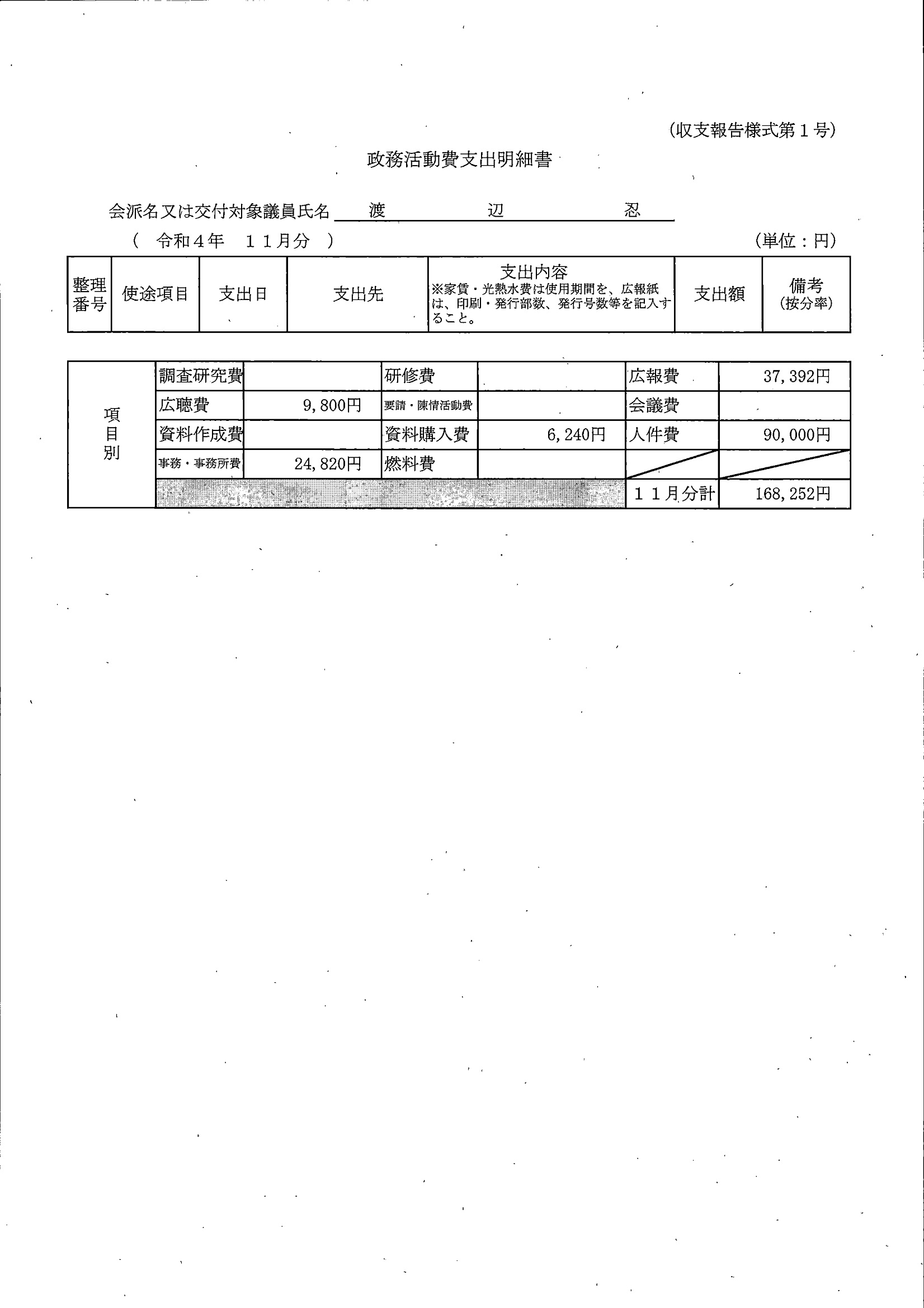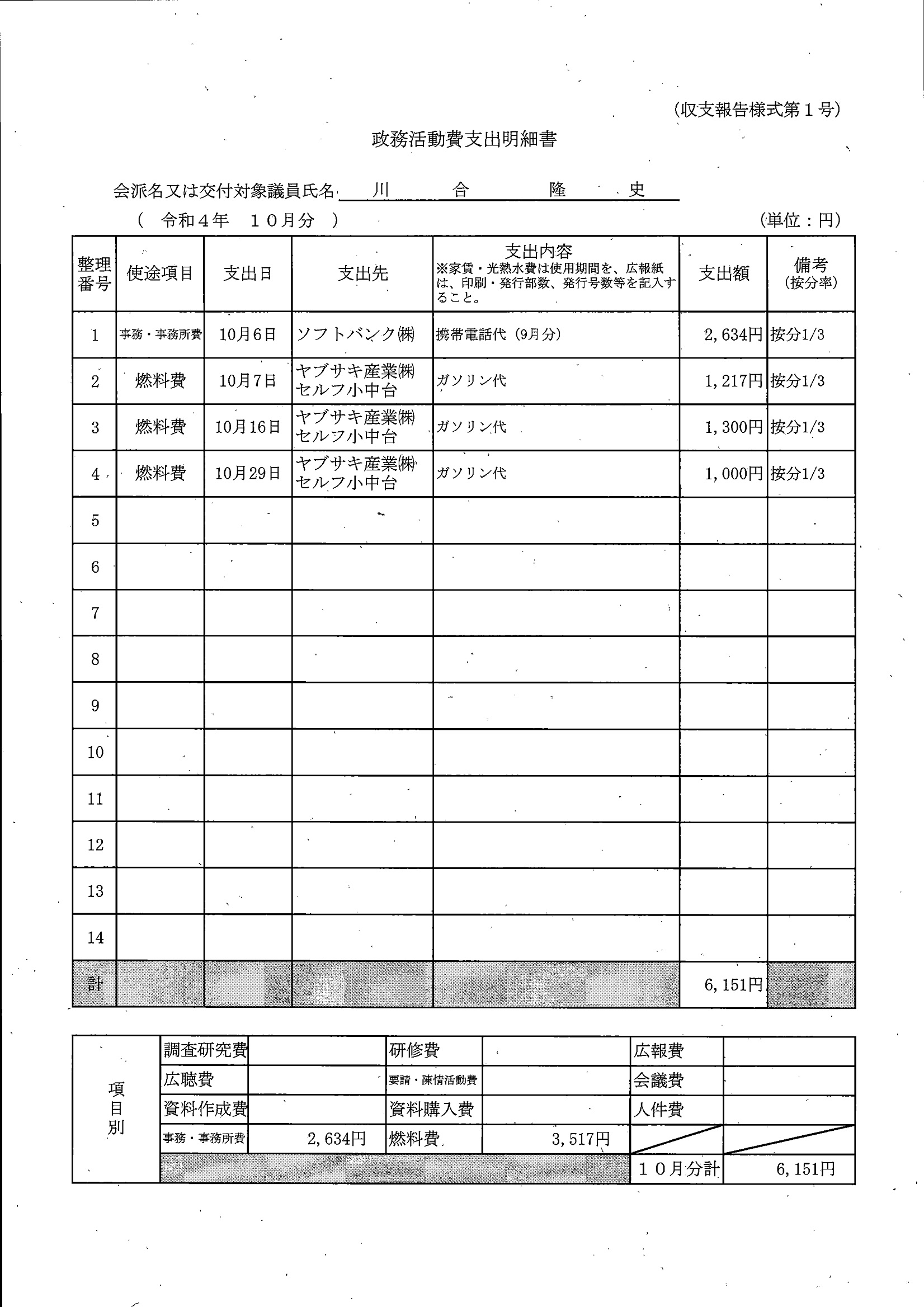 千葉市議会トップページ > 広報・情報公開 > 政務活動費 > 令和4年度交付分(政務活動費収支報告書)