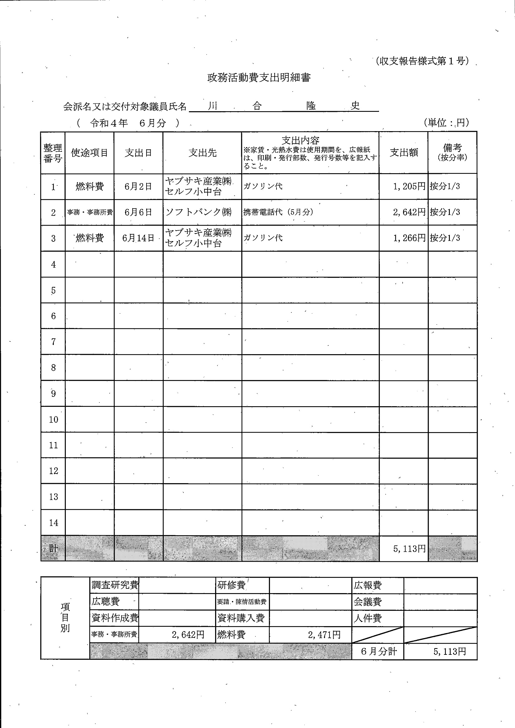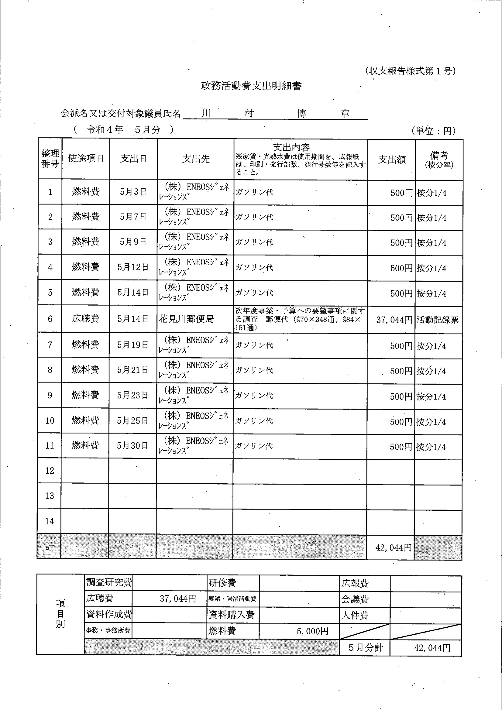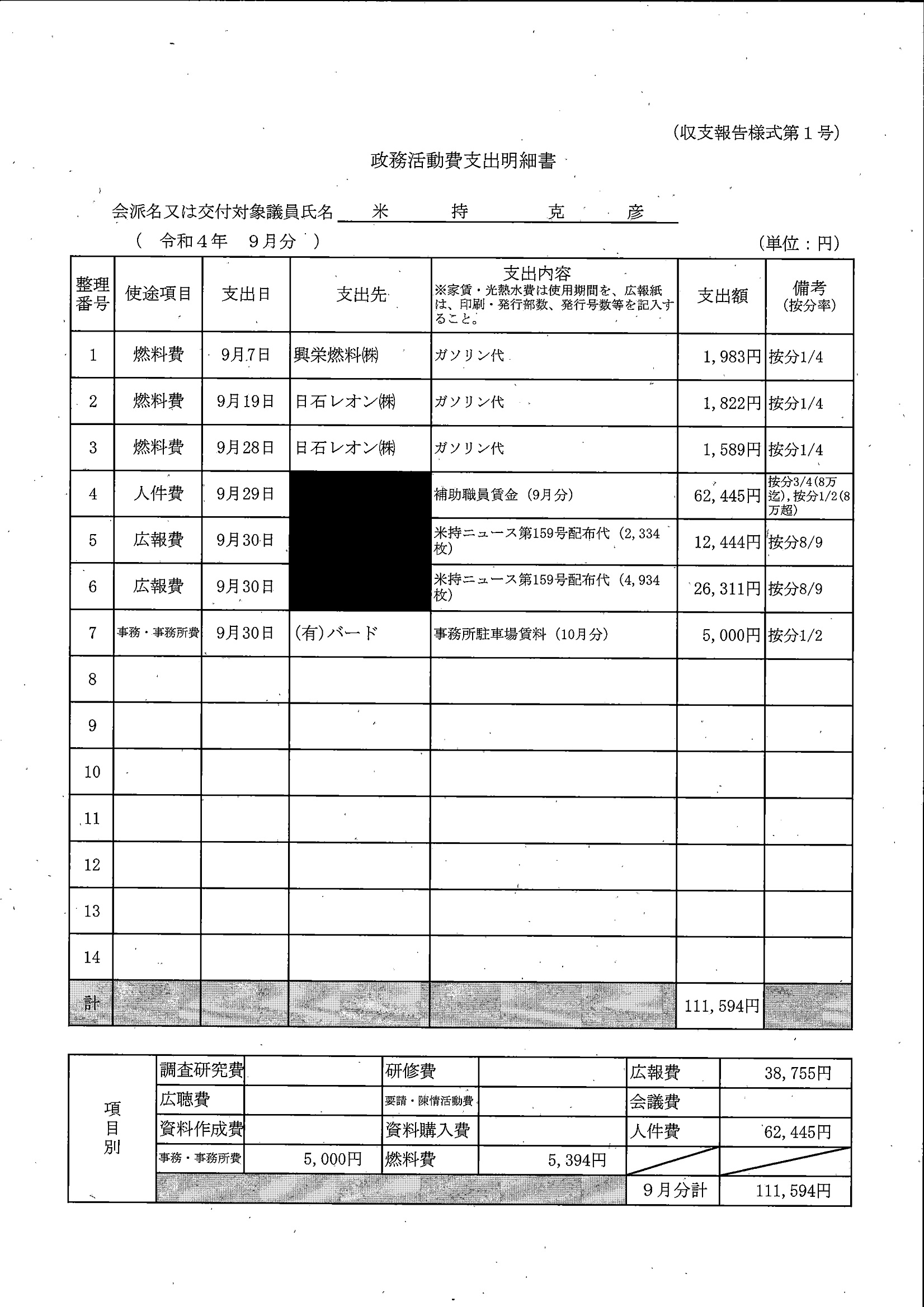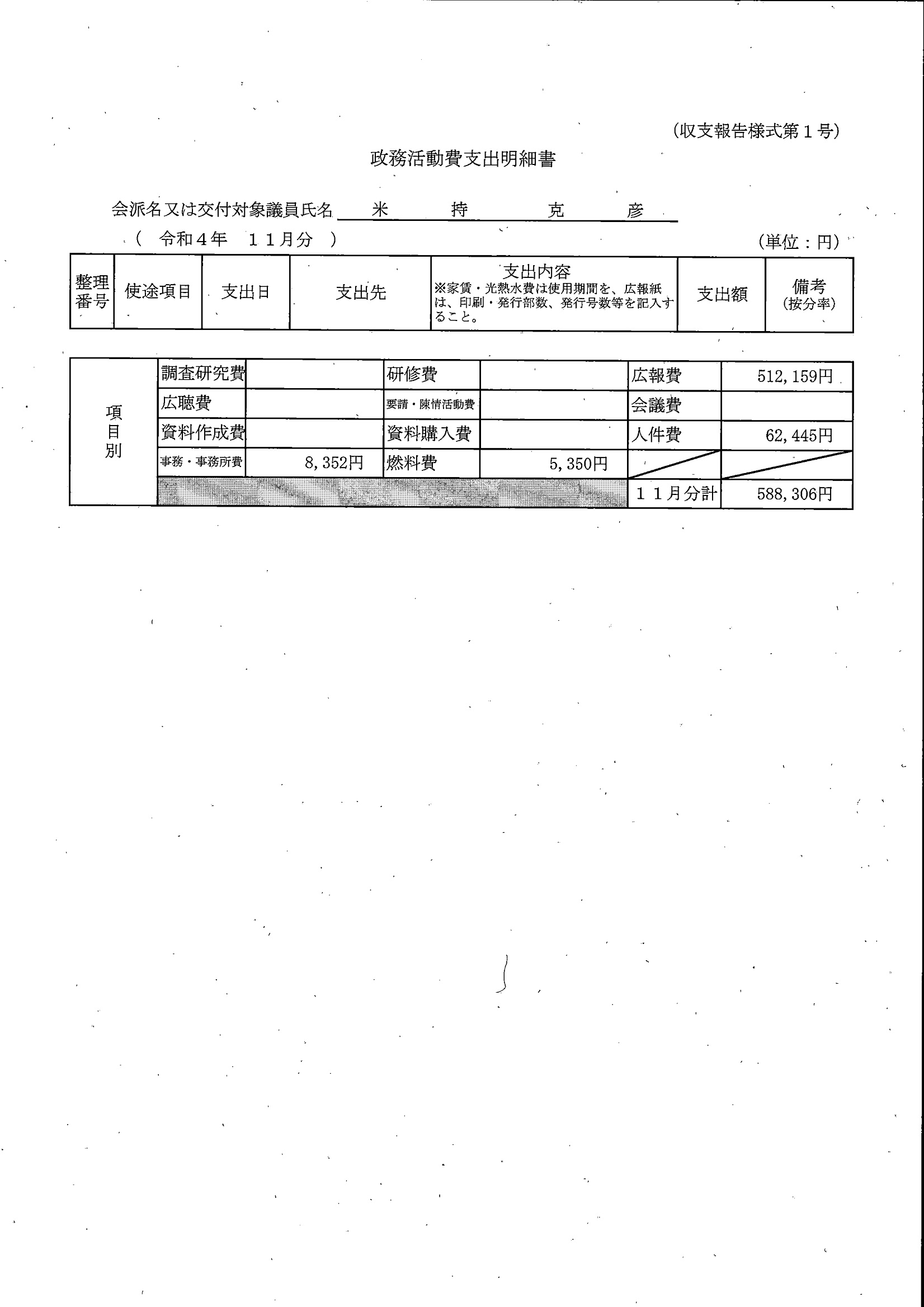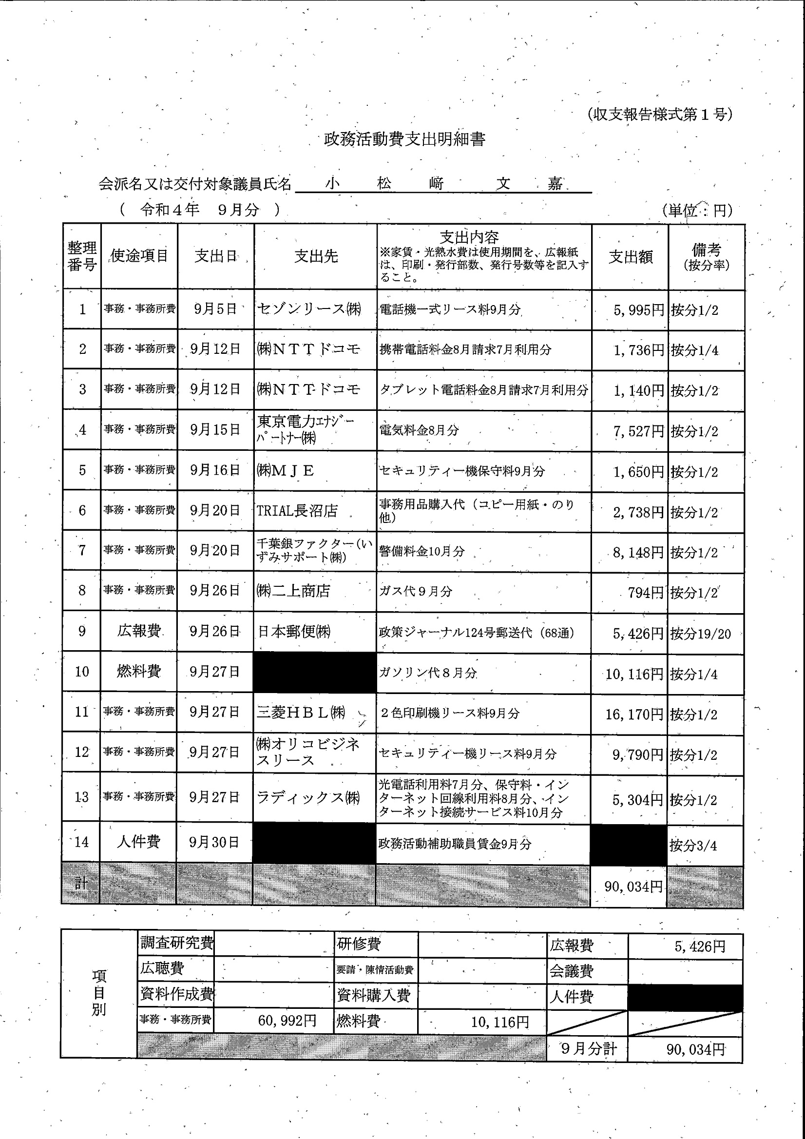 千葉市議会トップページ > 広報・情報公開 > 政務活動費 > 令和4年度交付分(政務活動費収支報告書)