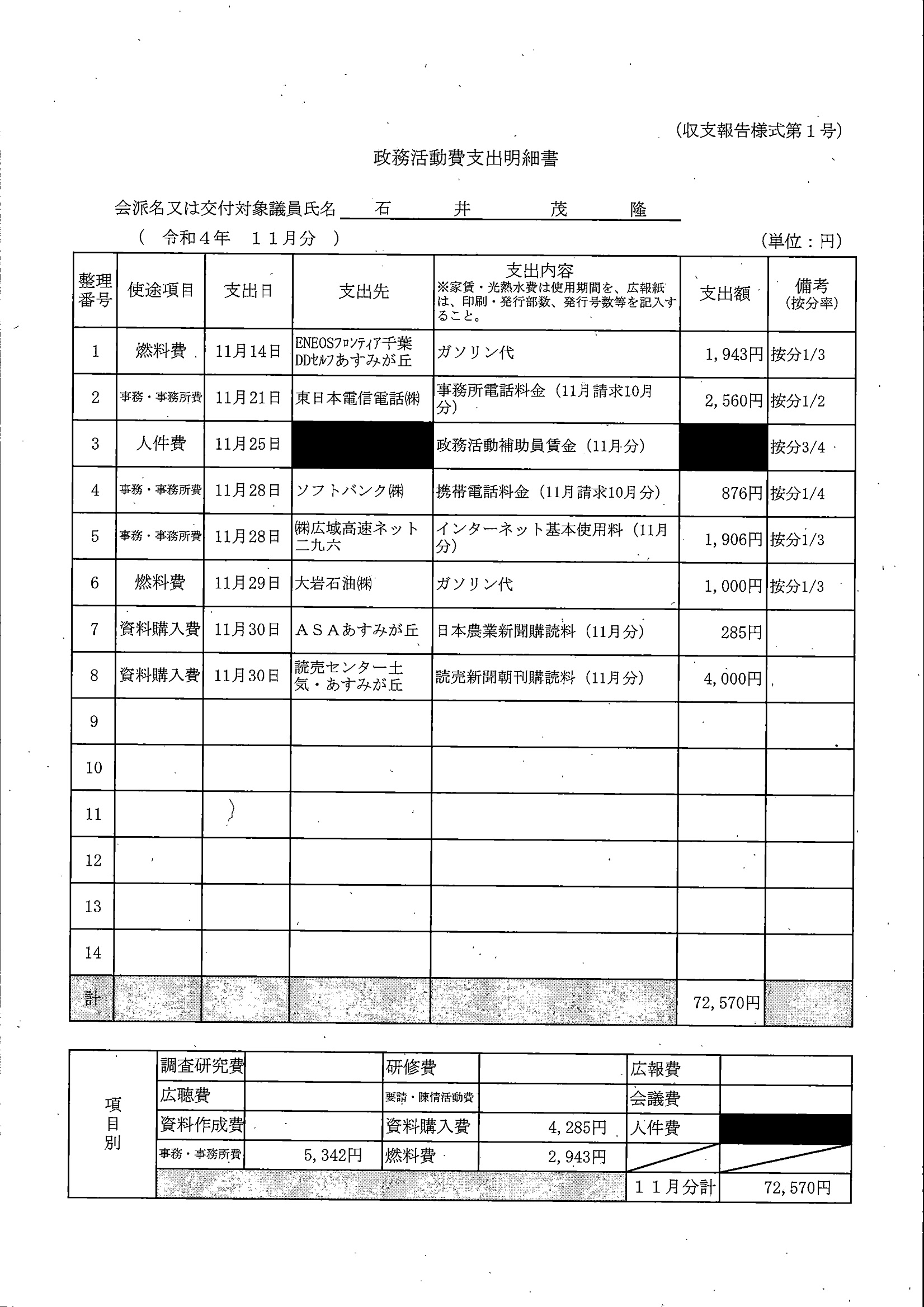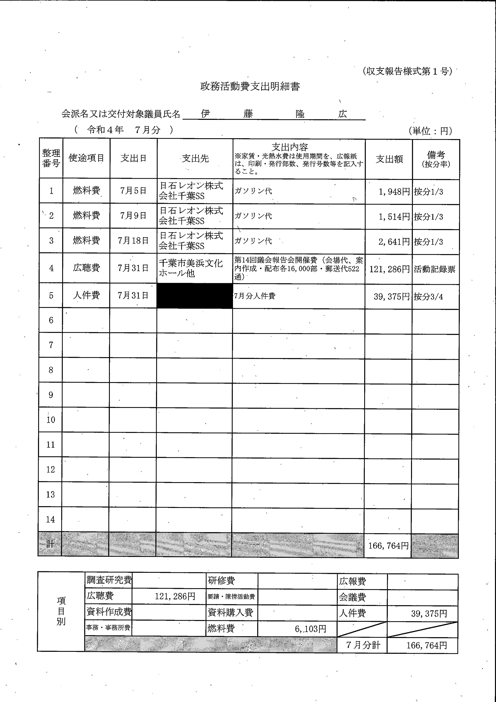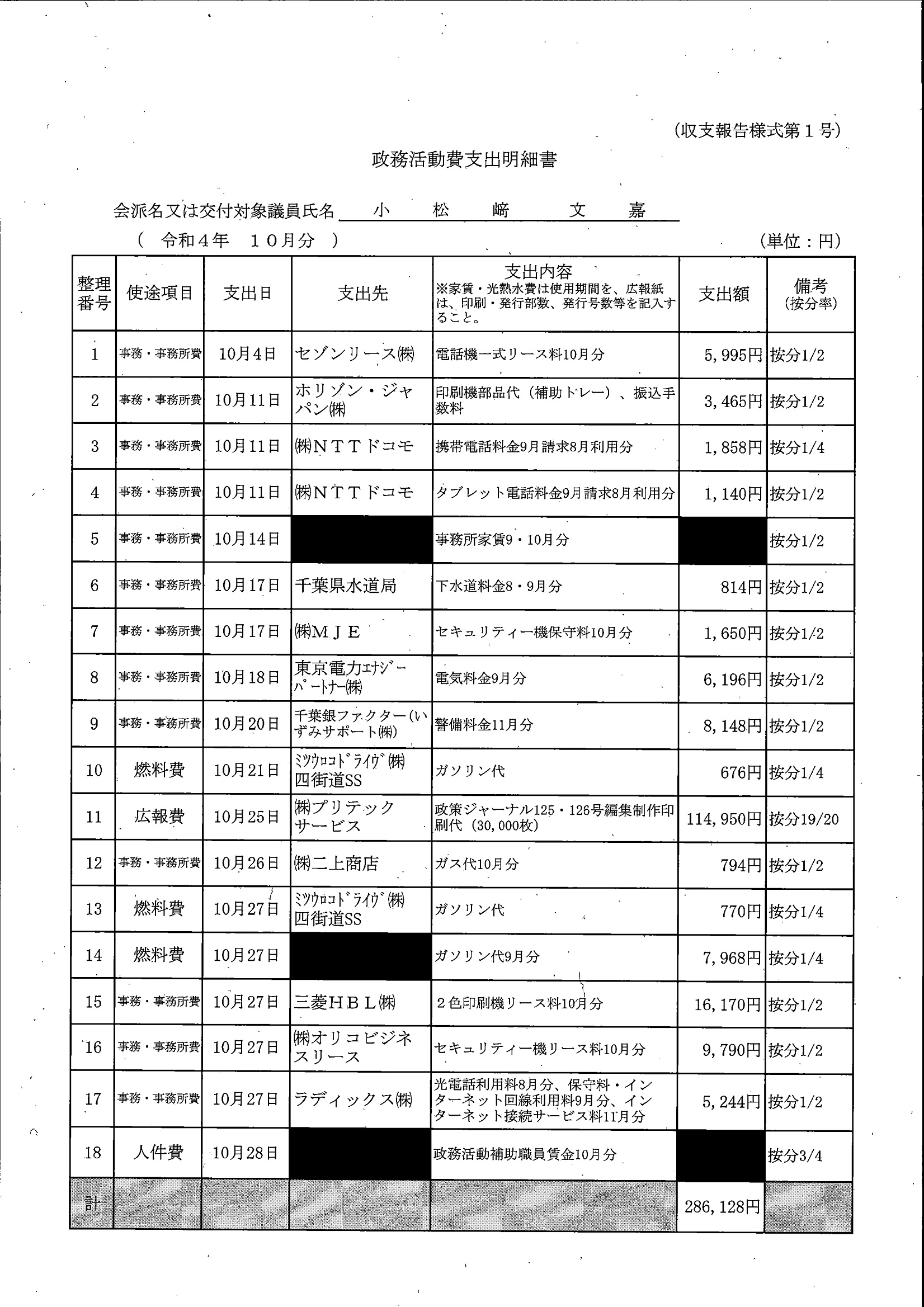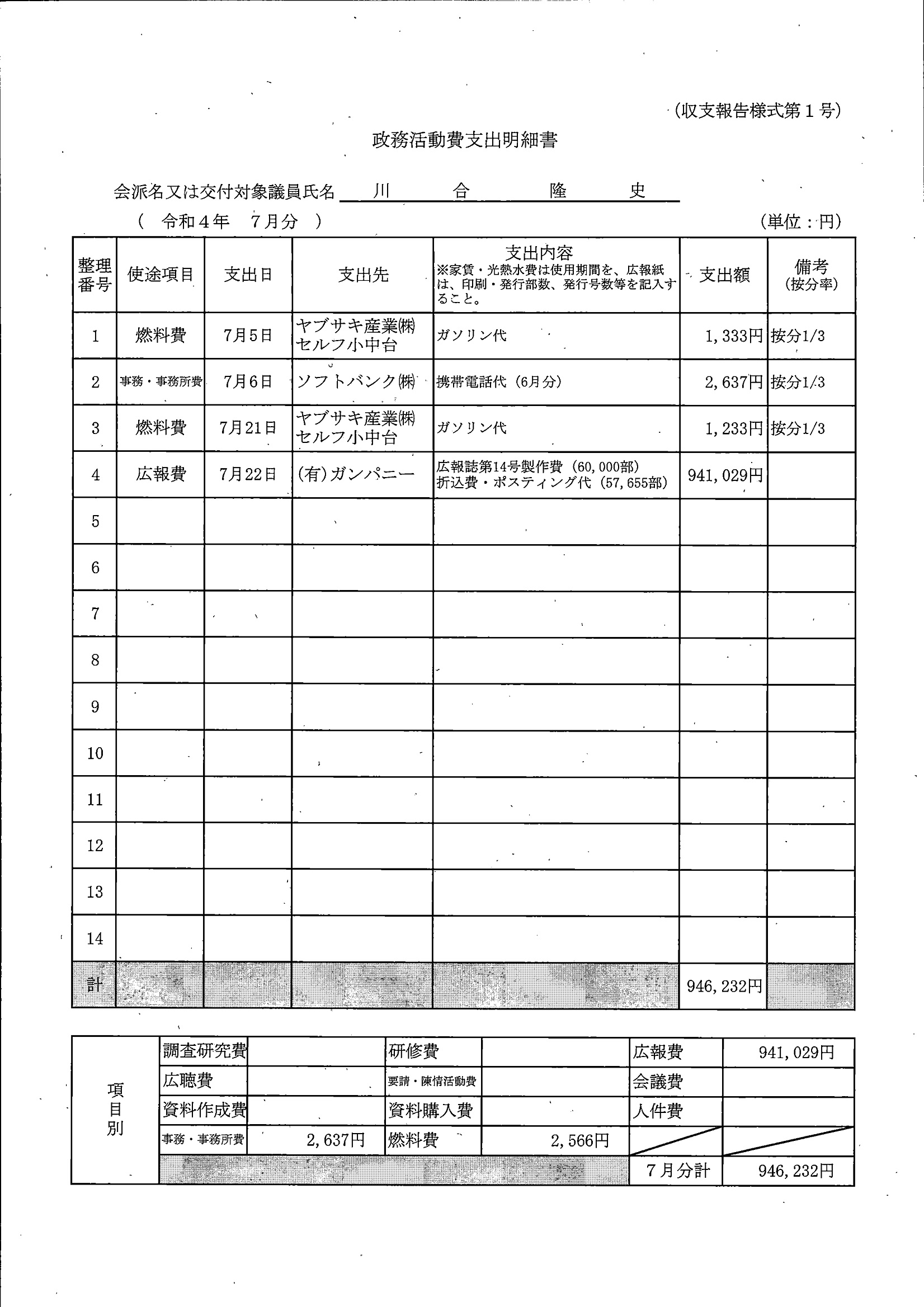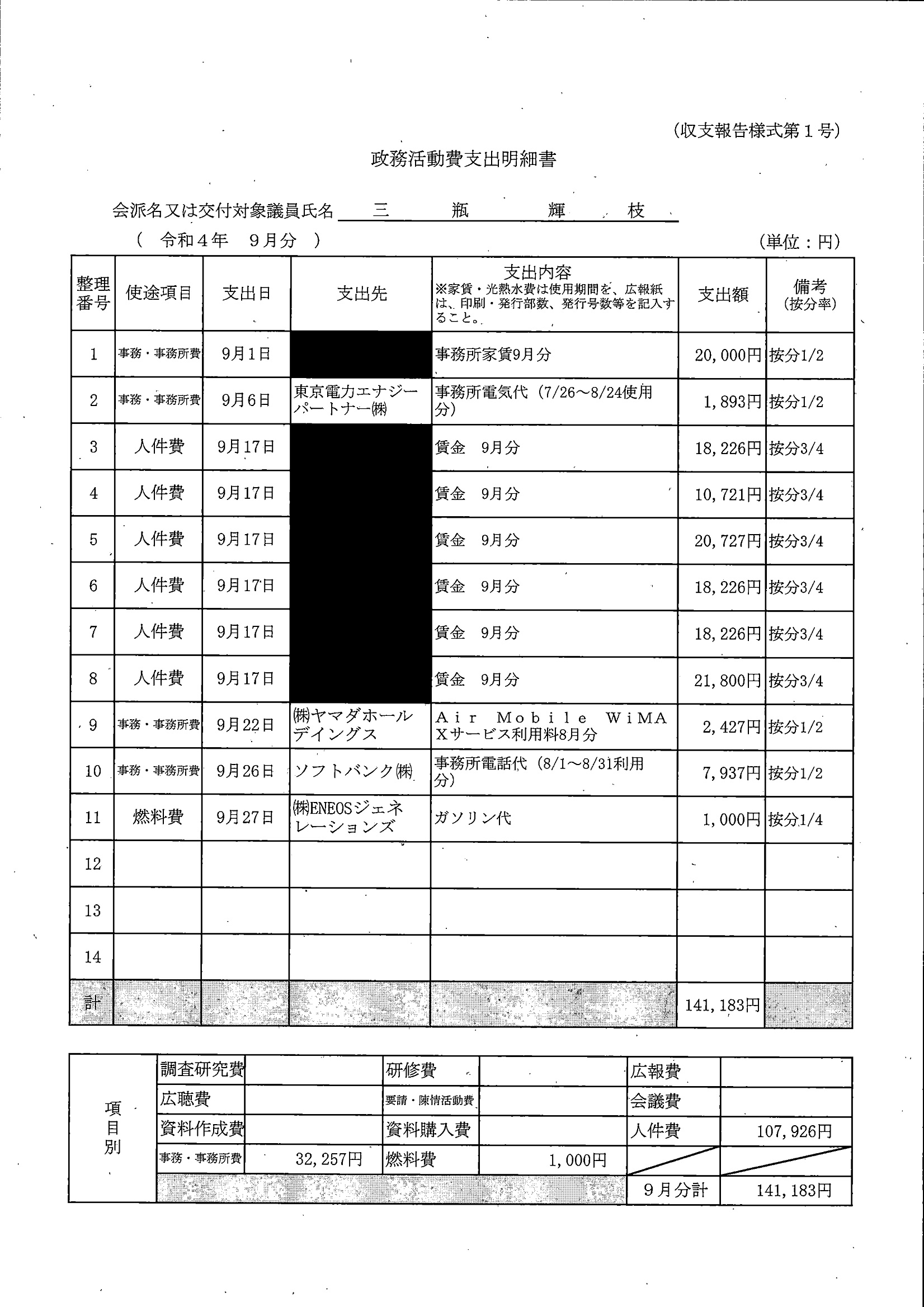 千葉市議会トップページ > 広報・情報公開 > 政務活動費 > 令和4年度交付分(政務活動費収支報告書)