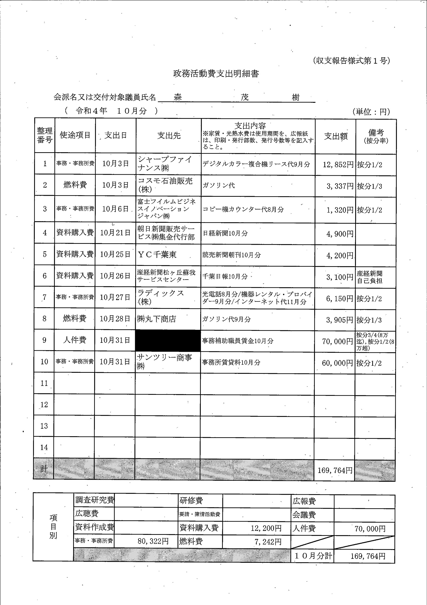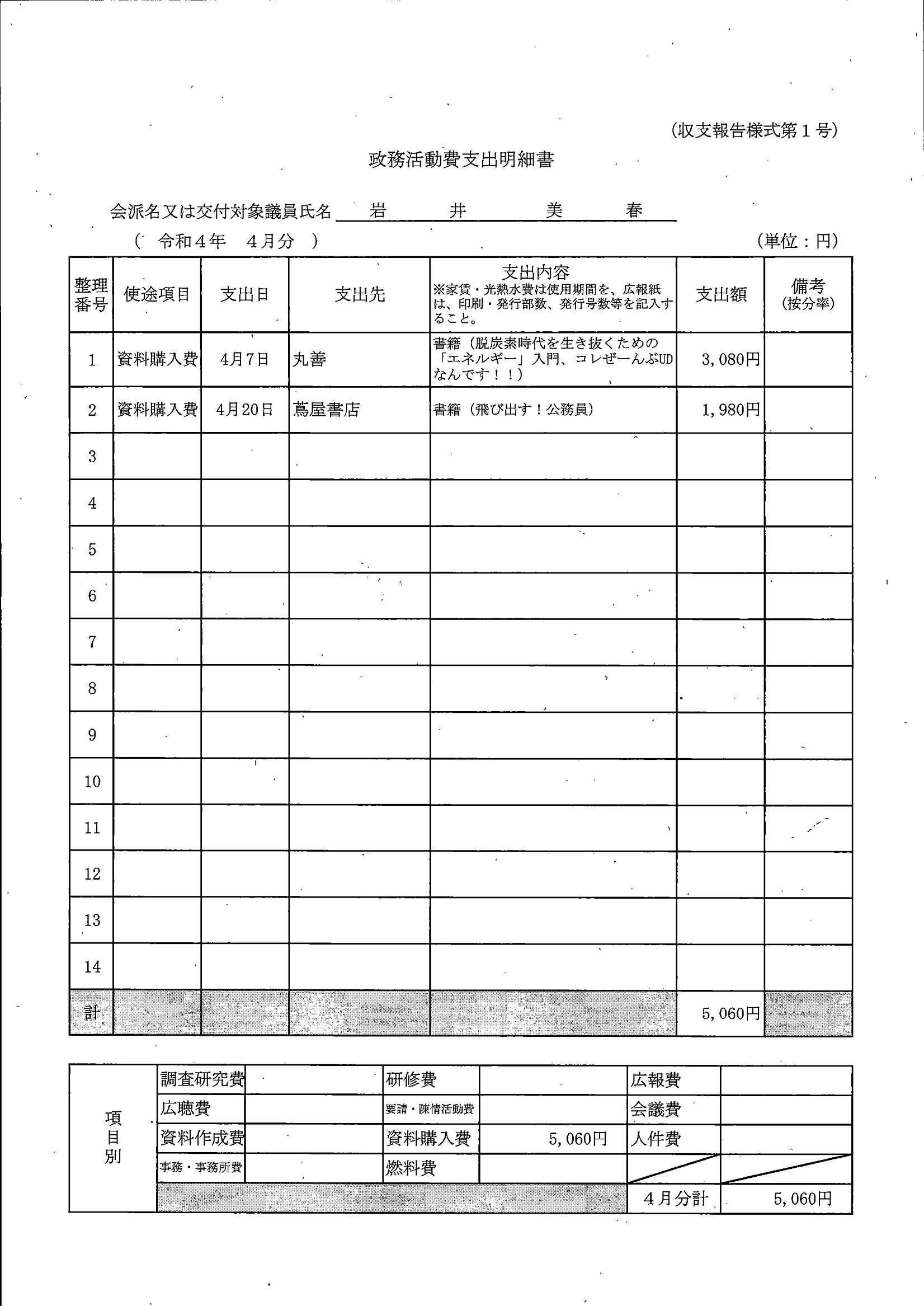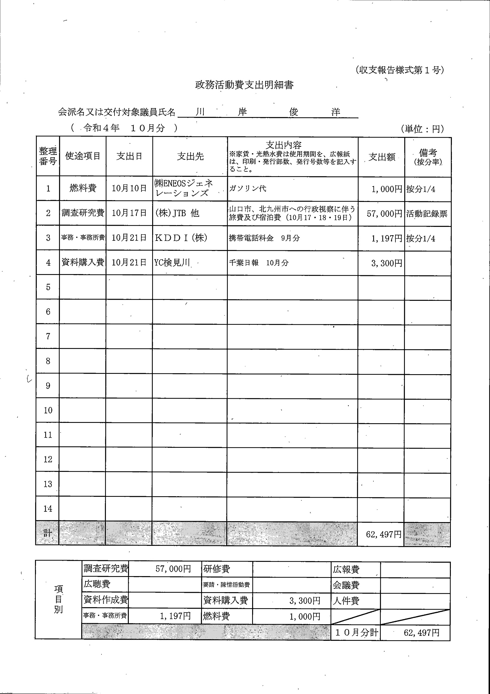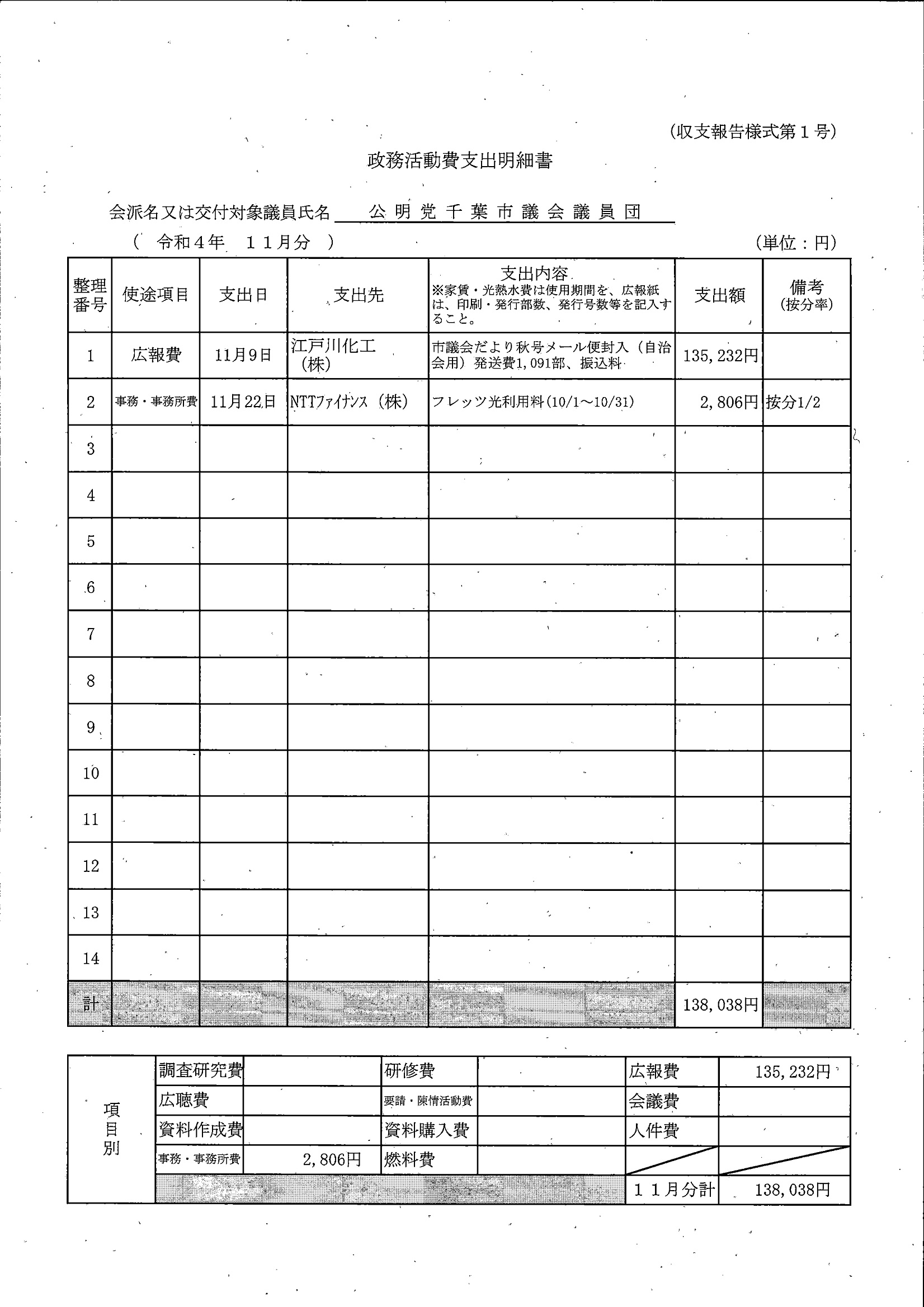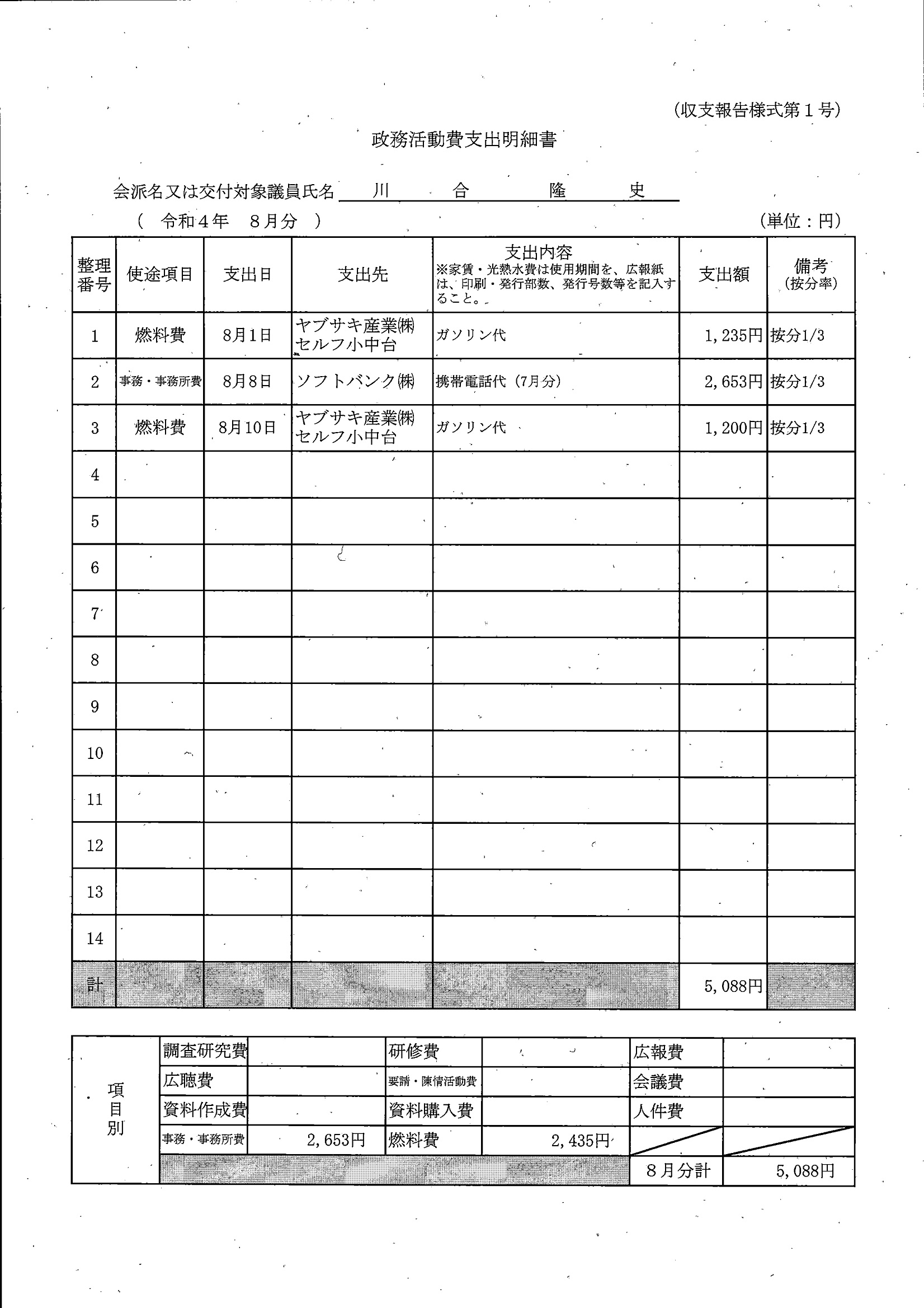 千葉市議会トップページ > 広報・情報公開 > 政務活動費 > 令和4年度交付分(政務活動費収支報告書)