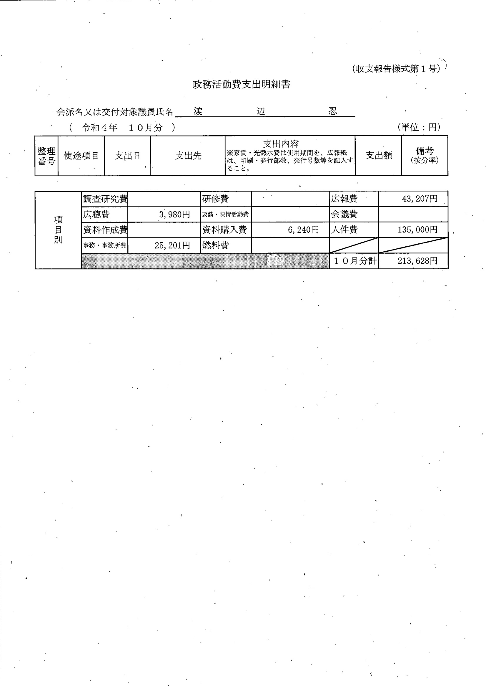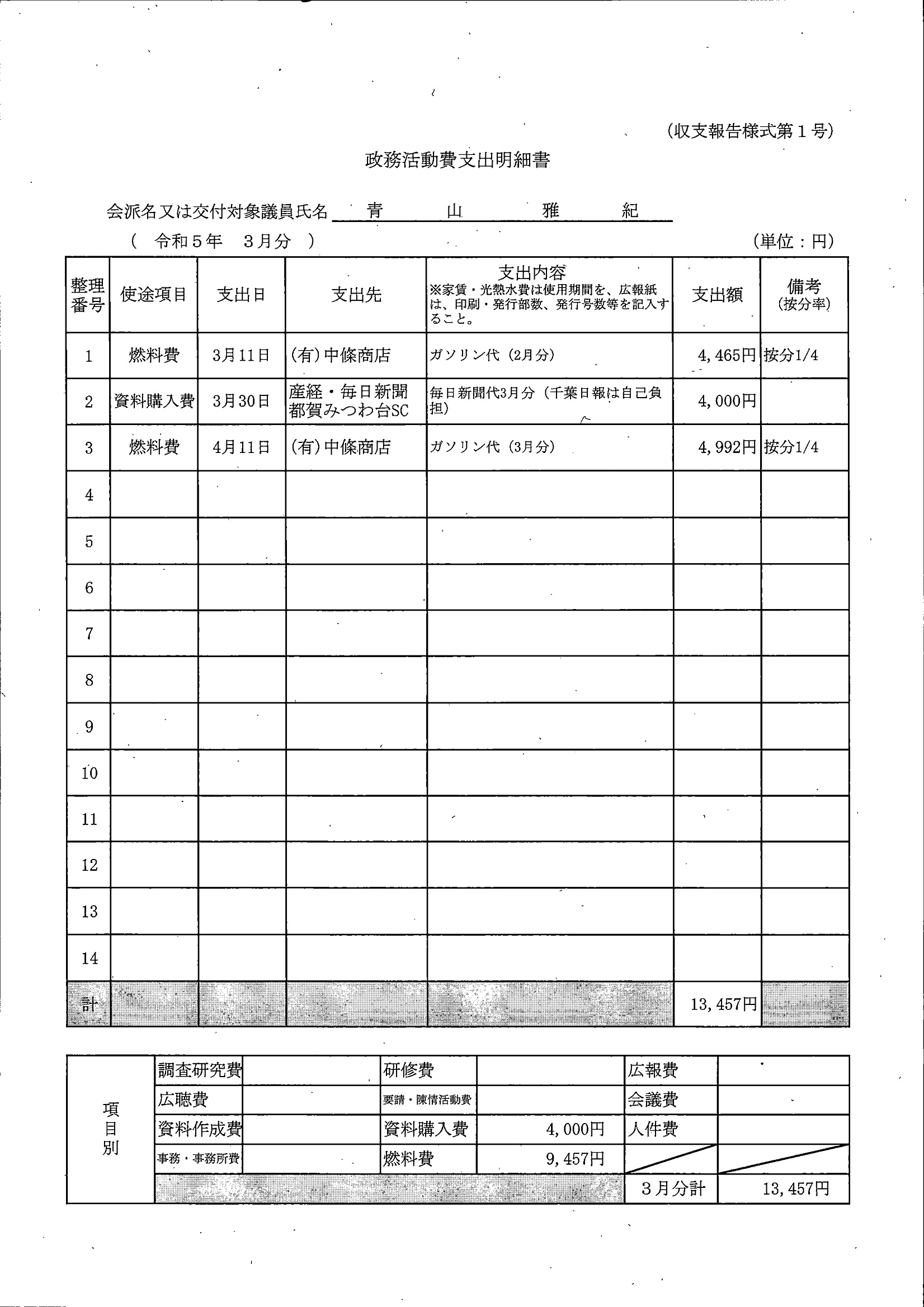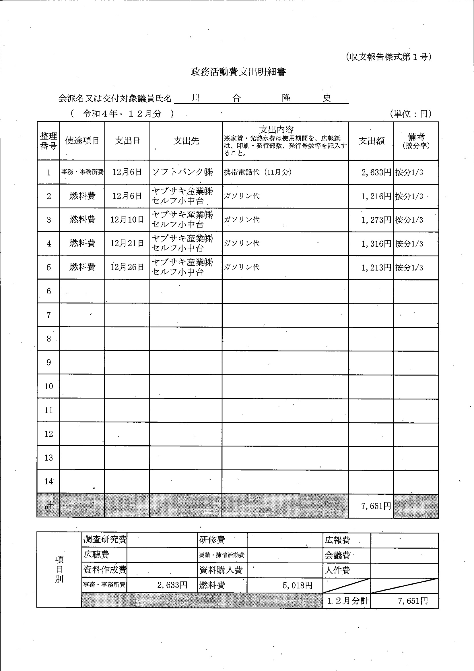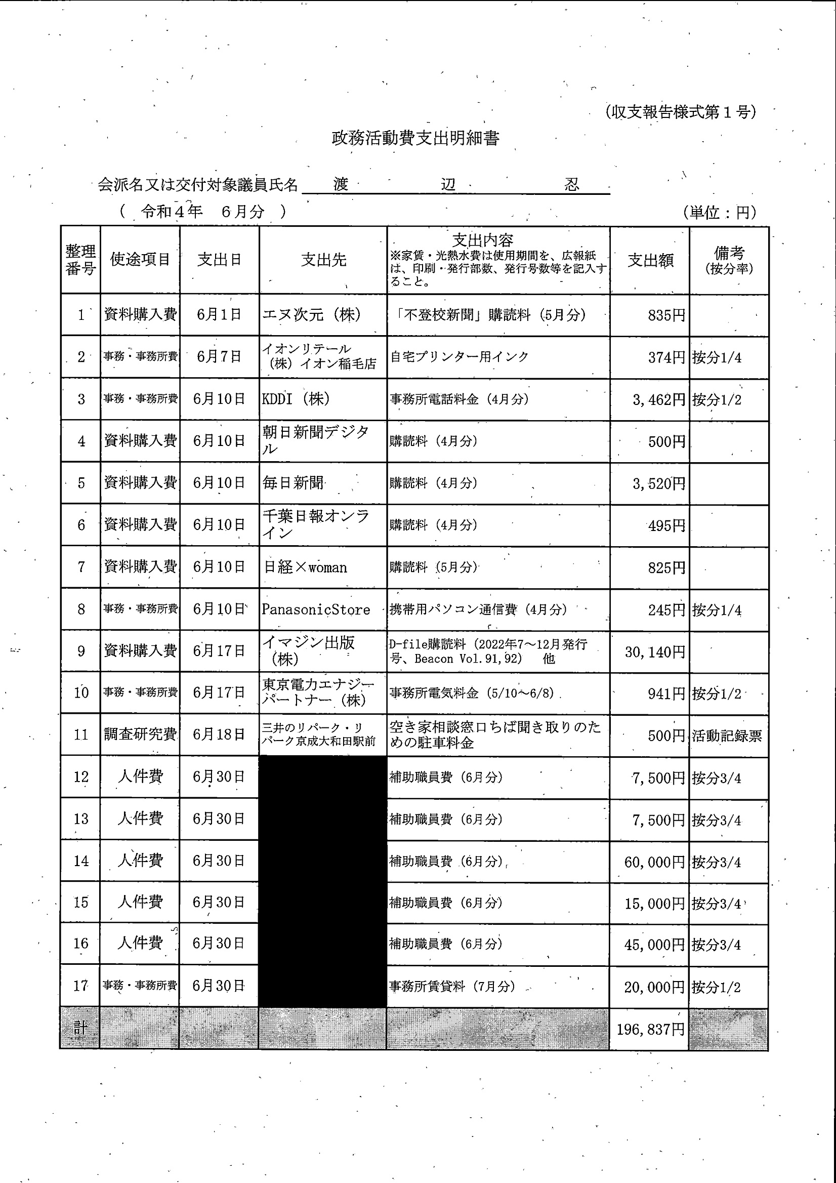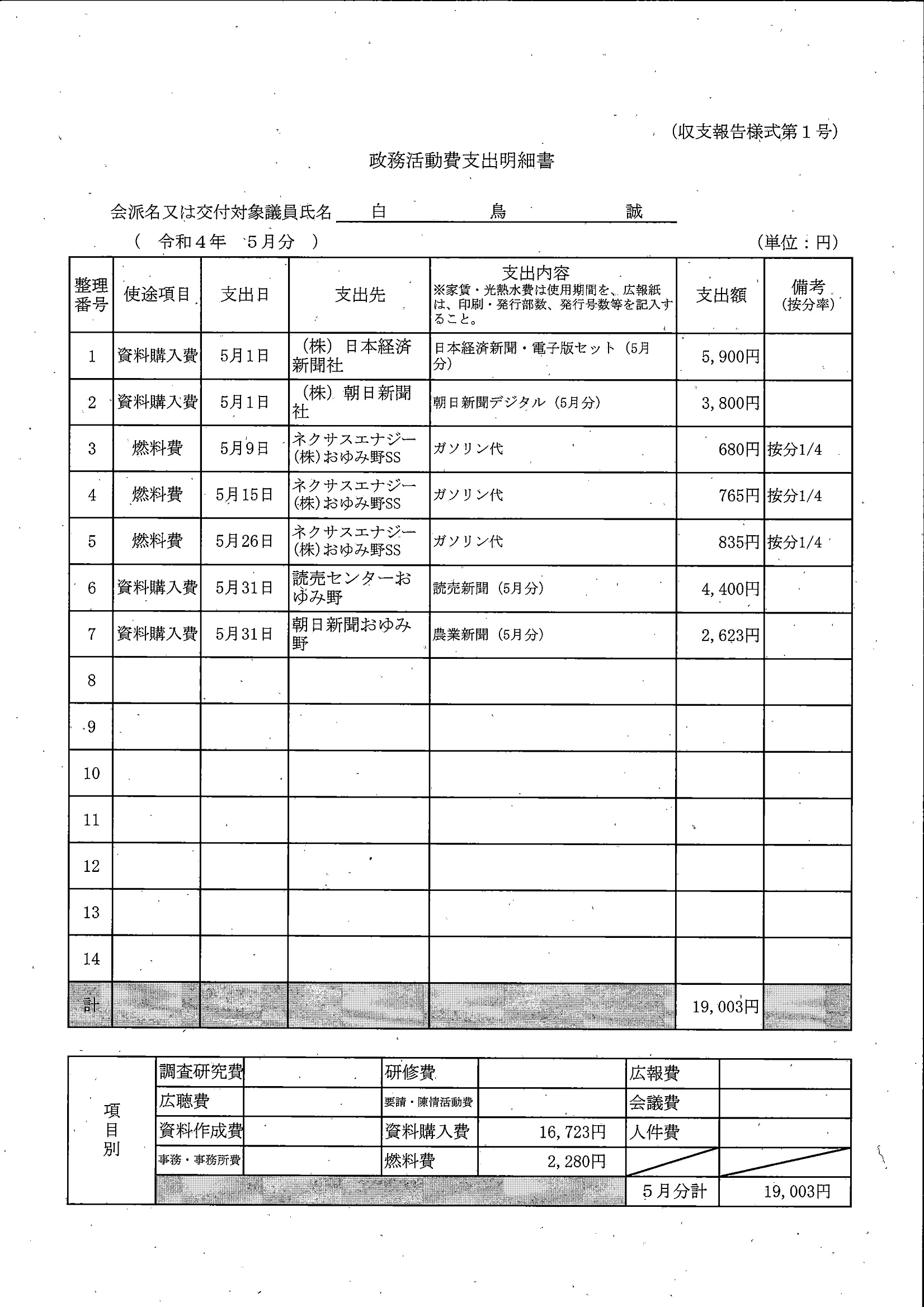 千葉市議会トップページ > 広報・情報公開 > 政務活動費 > 令和4年度交付分(政務活動費収支報告書)