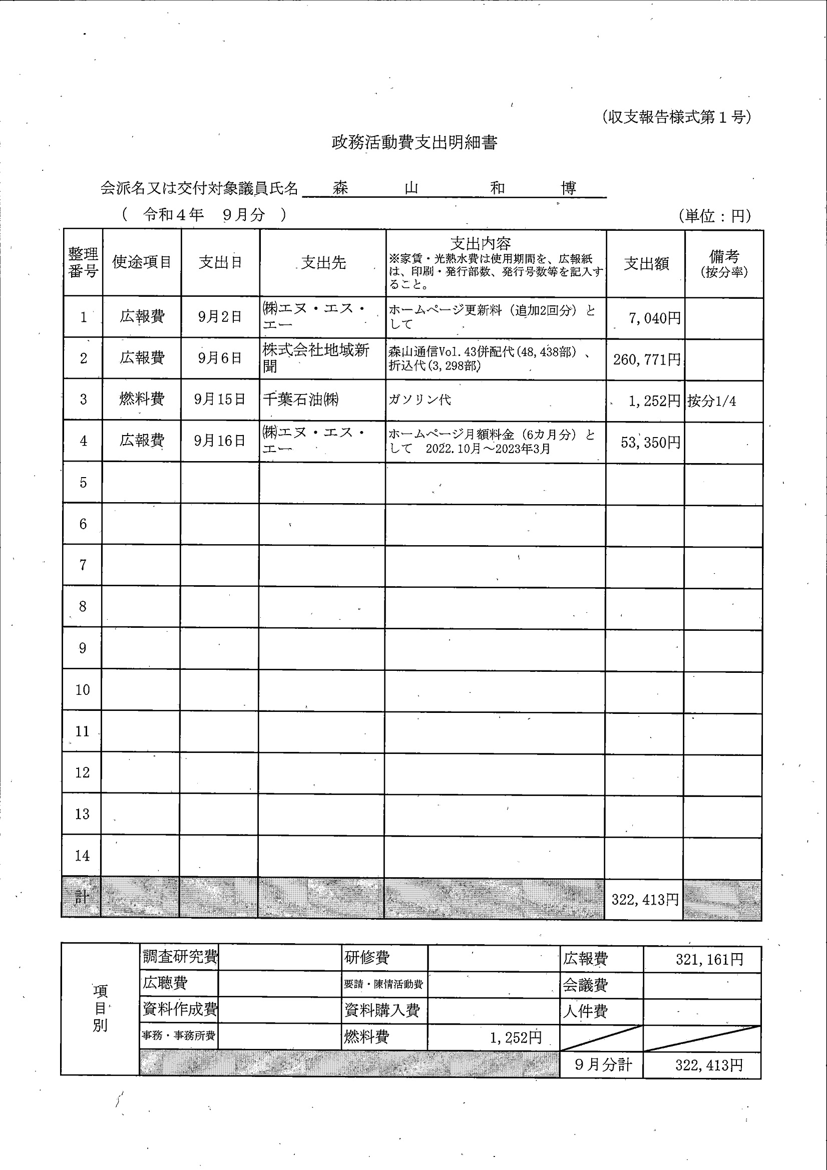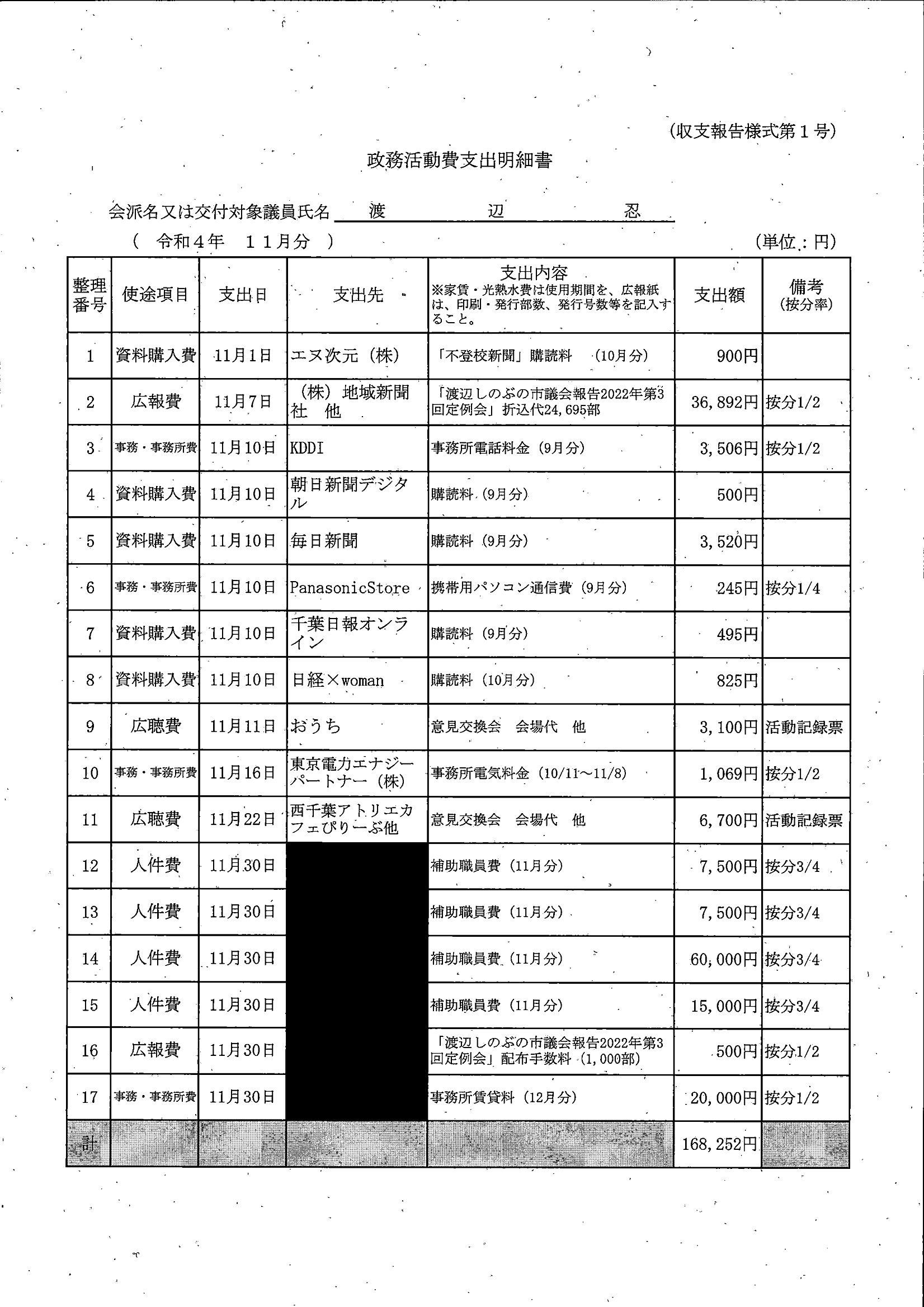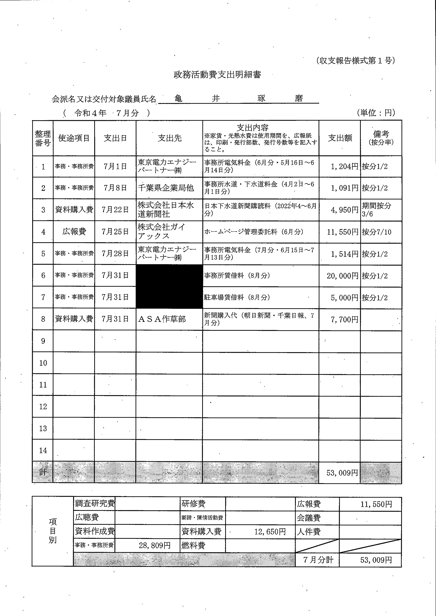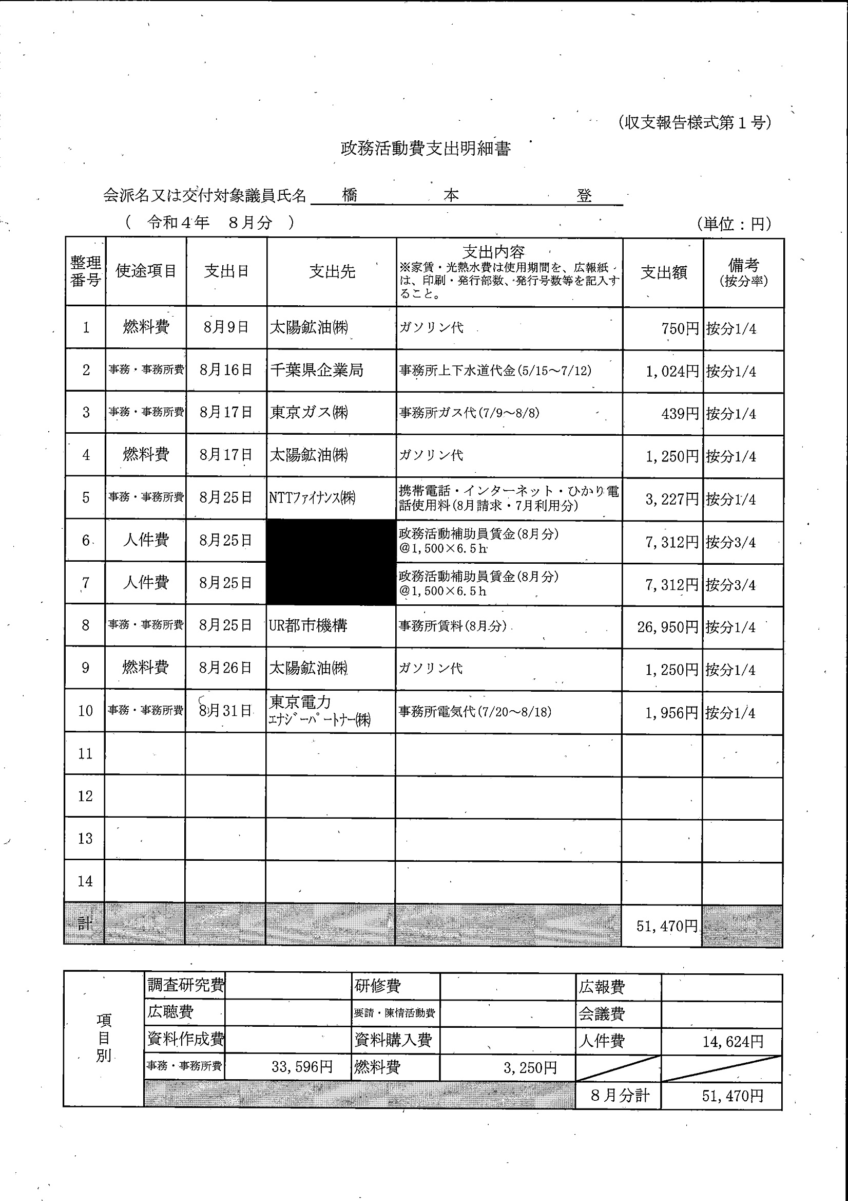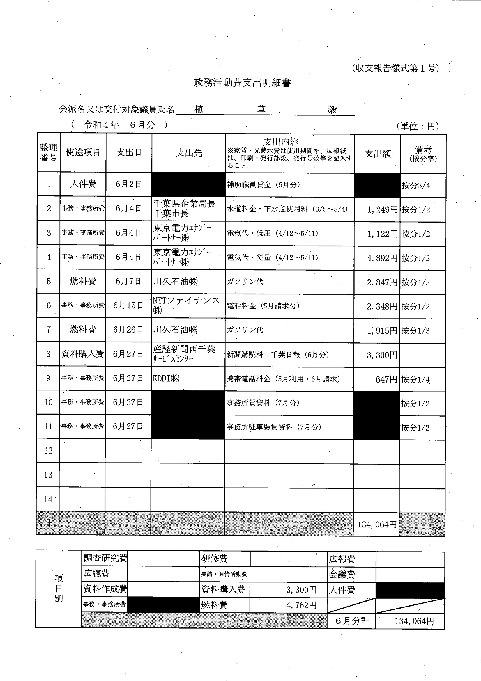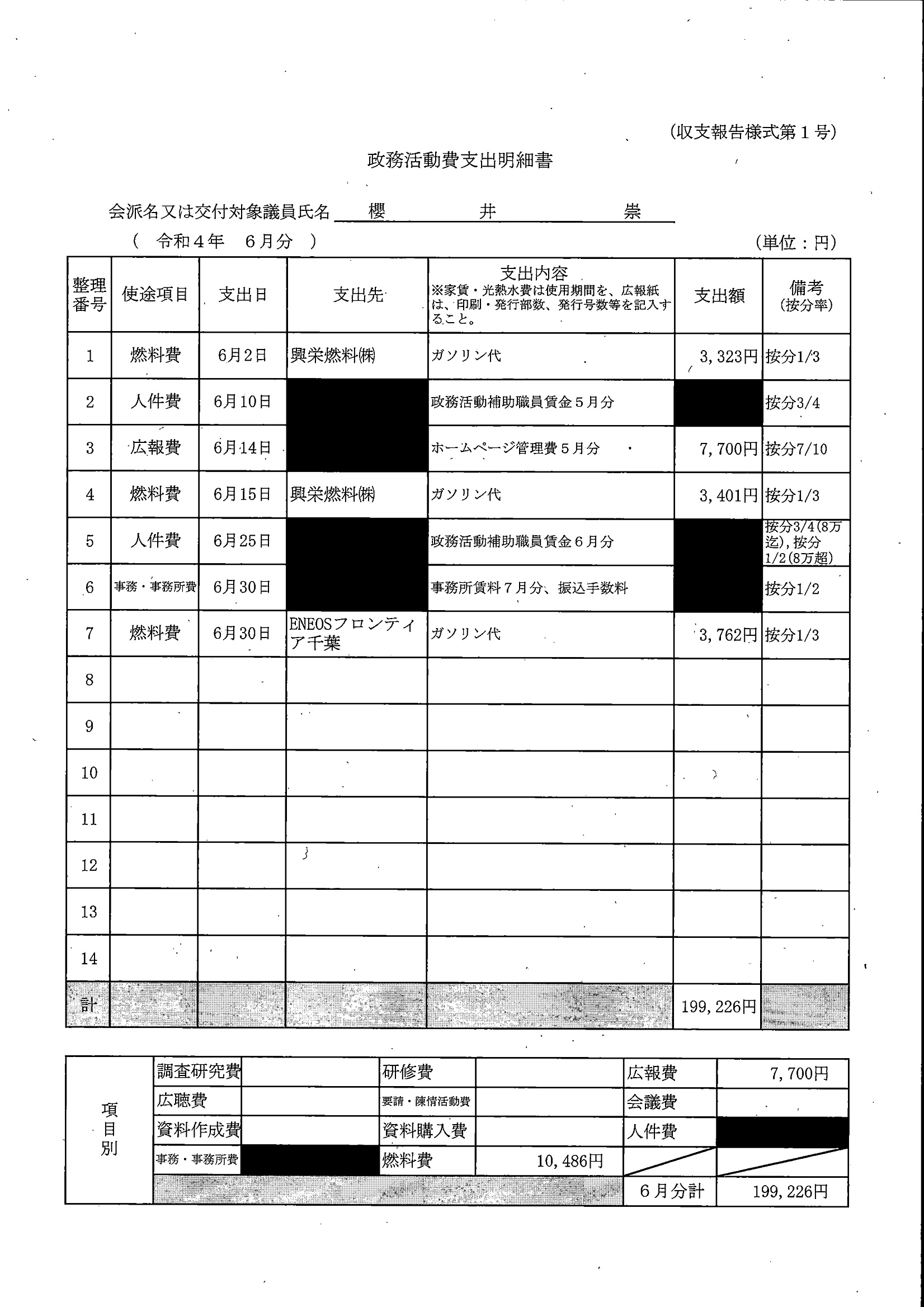 千葉市議会トップページ > 広報・情報公開 > 政務活動費 > 令和4年度交付分(政務活動費収支報告書)