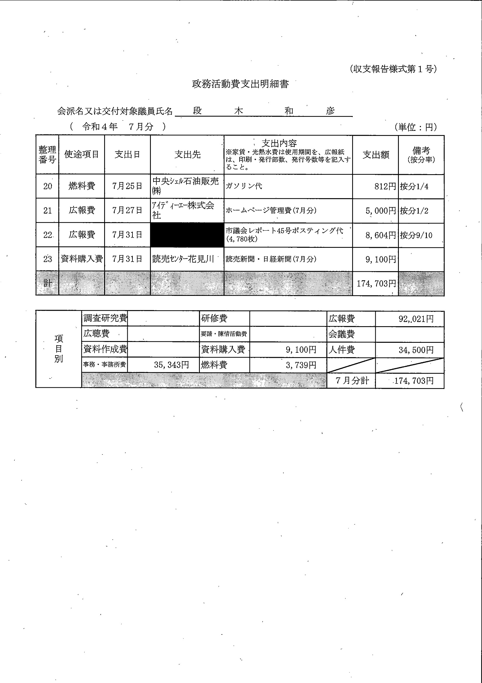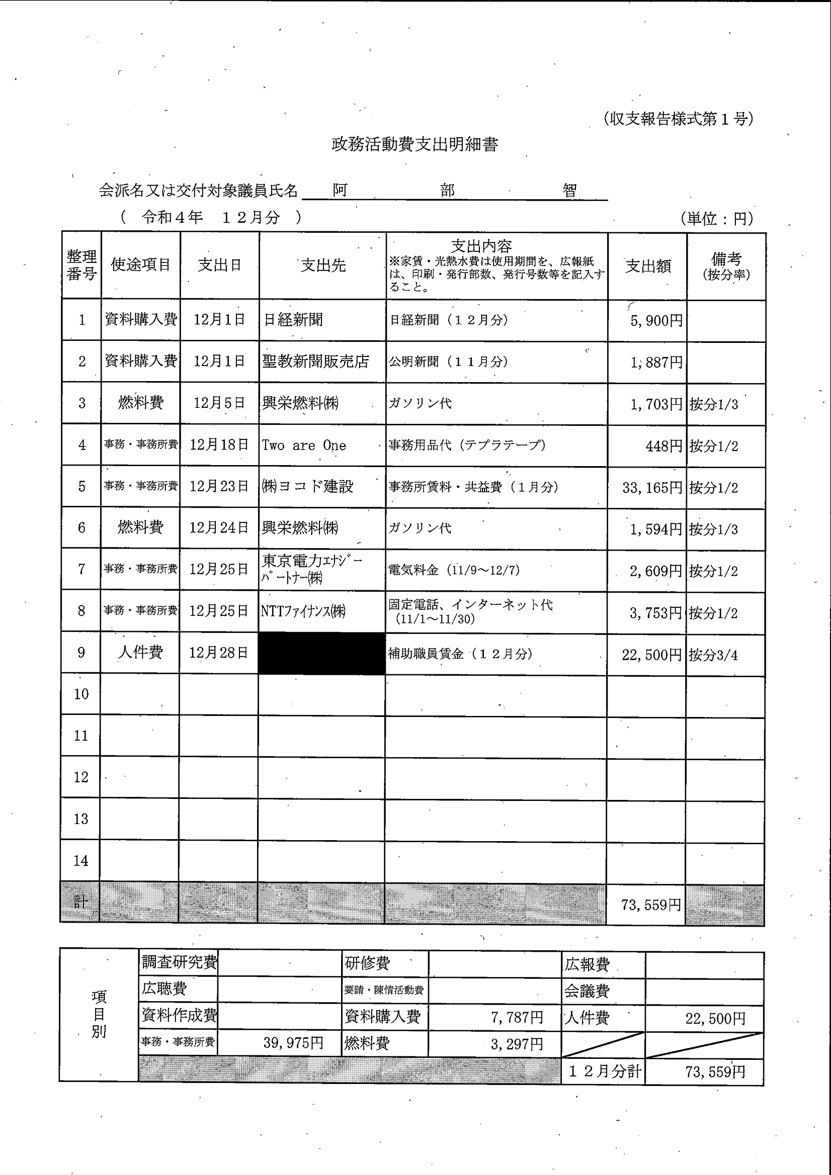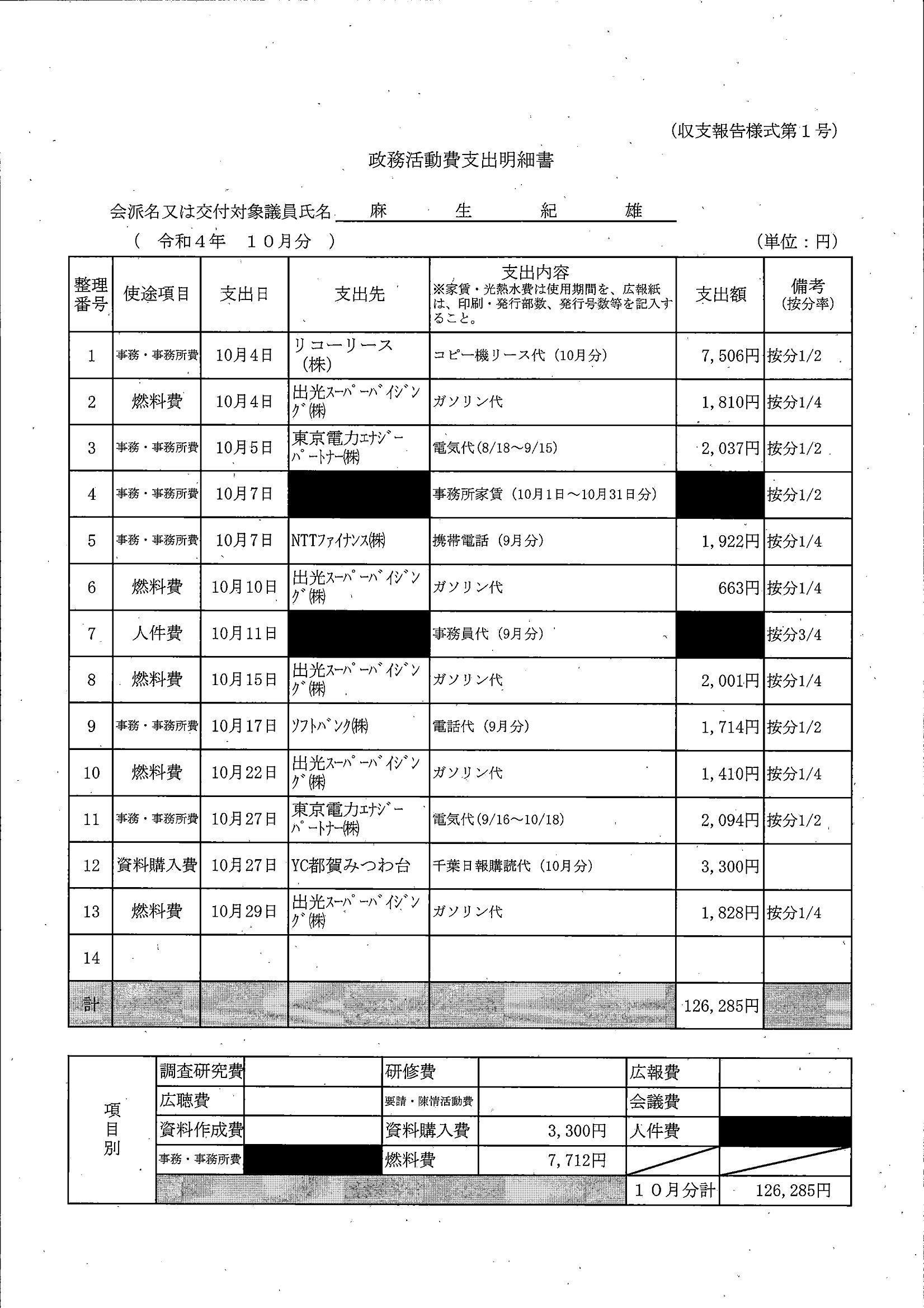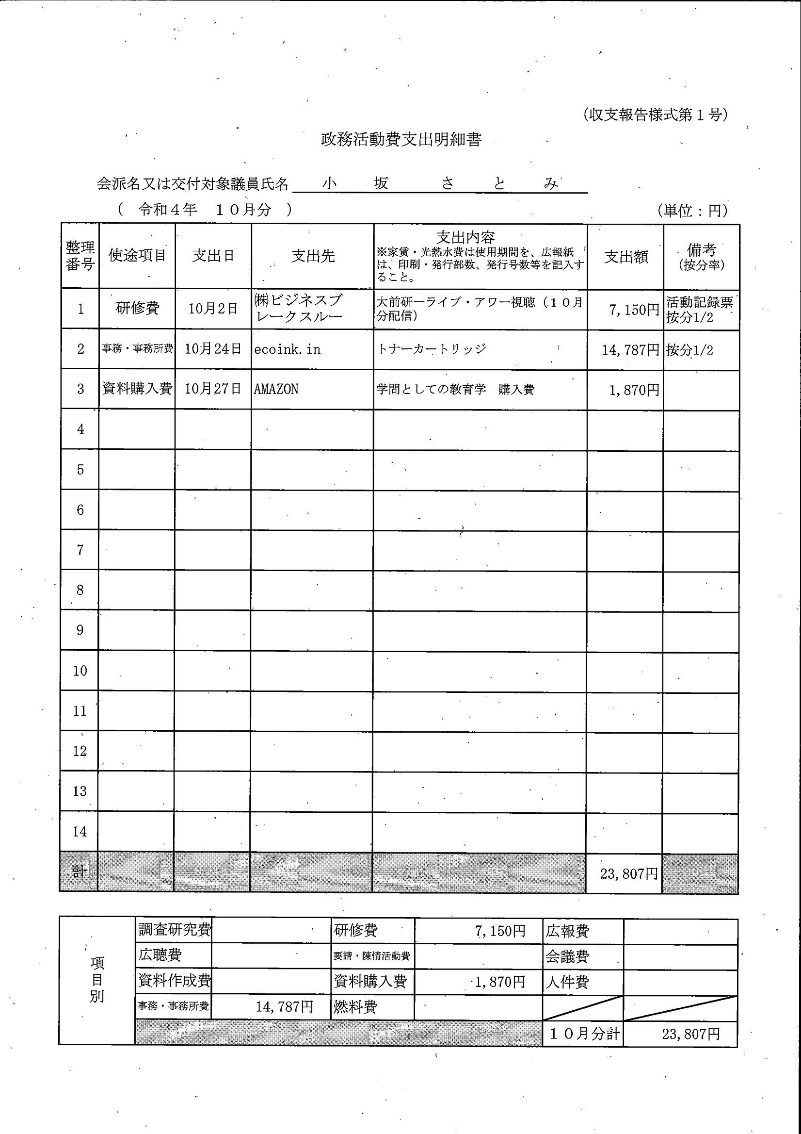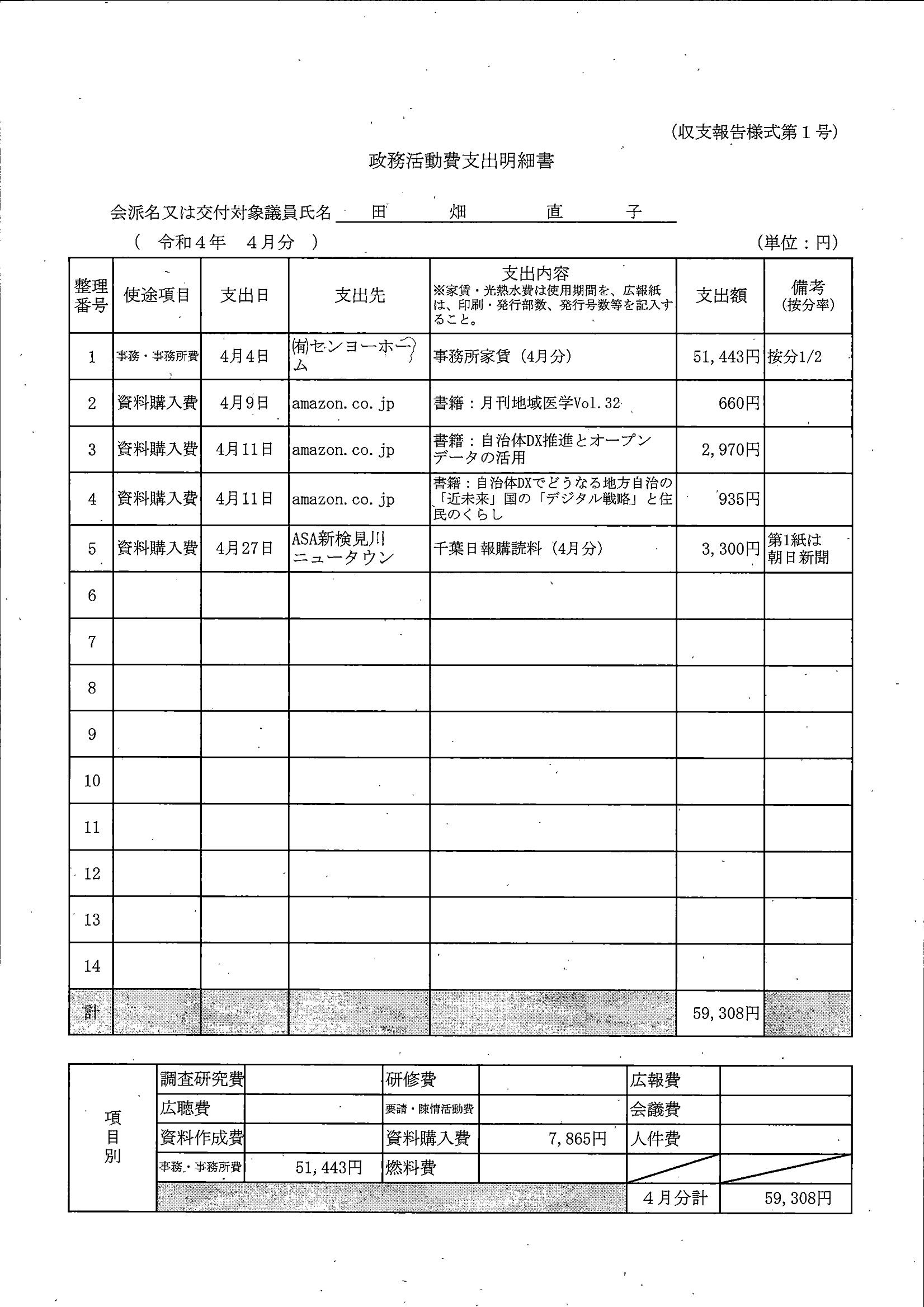 千葉市議会トップページ > 広報・情報公開 > 政務活動費 > 令和4年度交付分(政務活動費収支報告書)