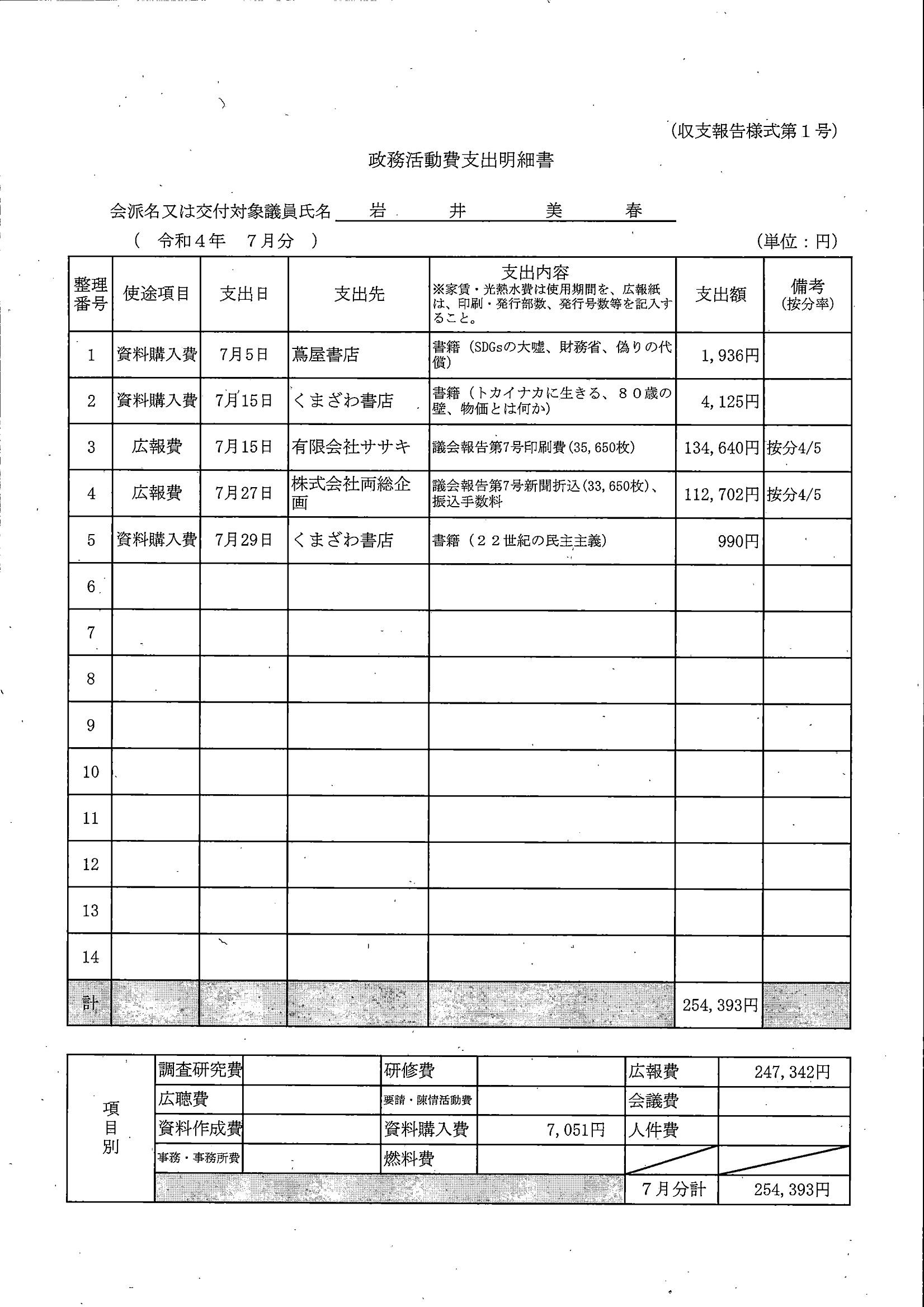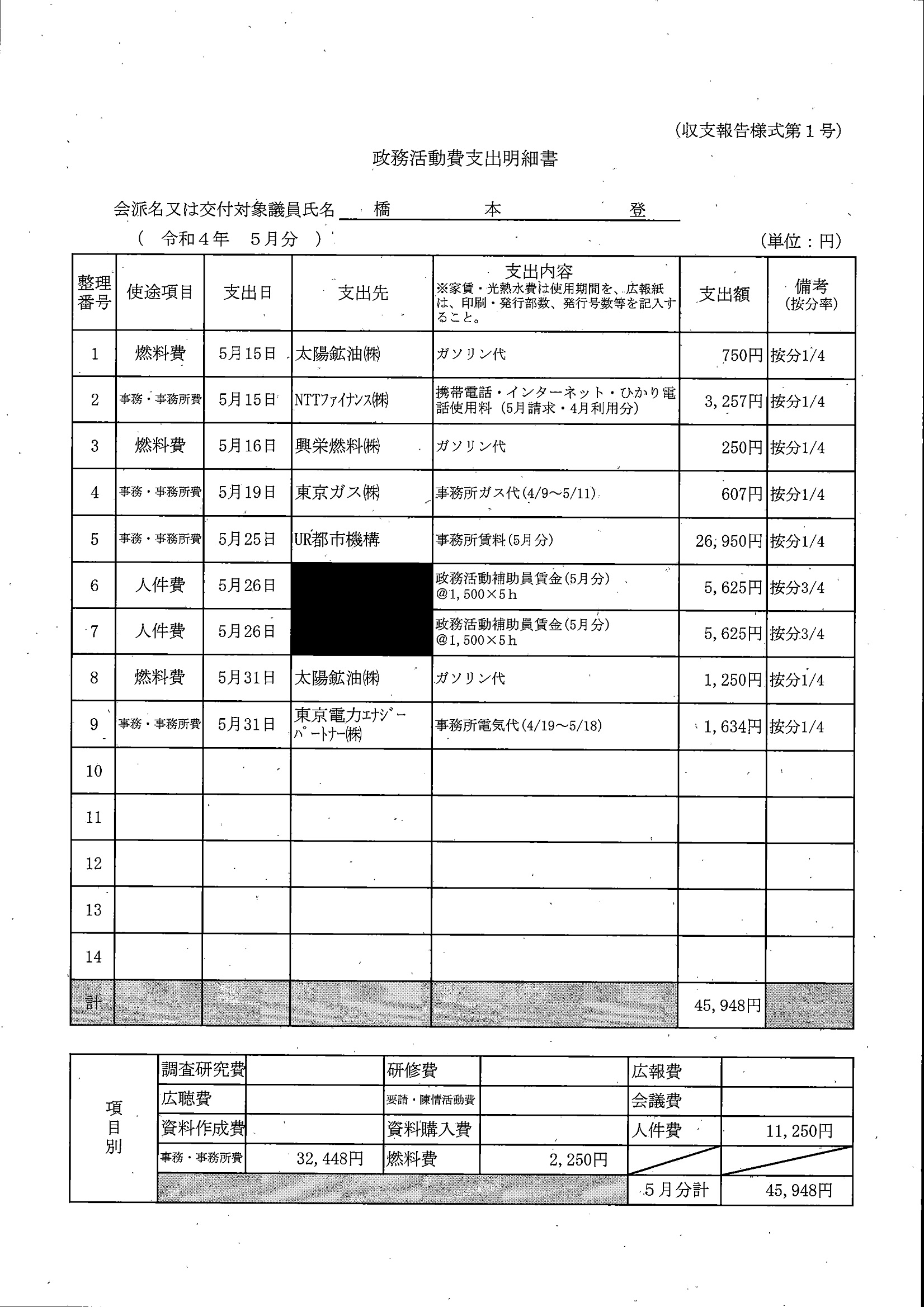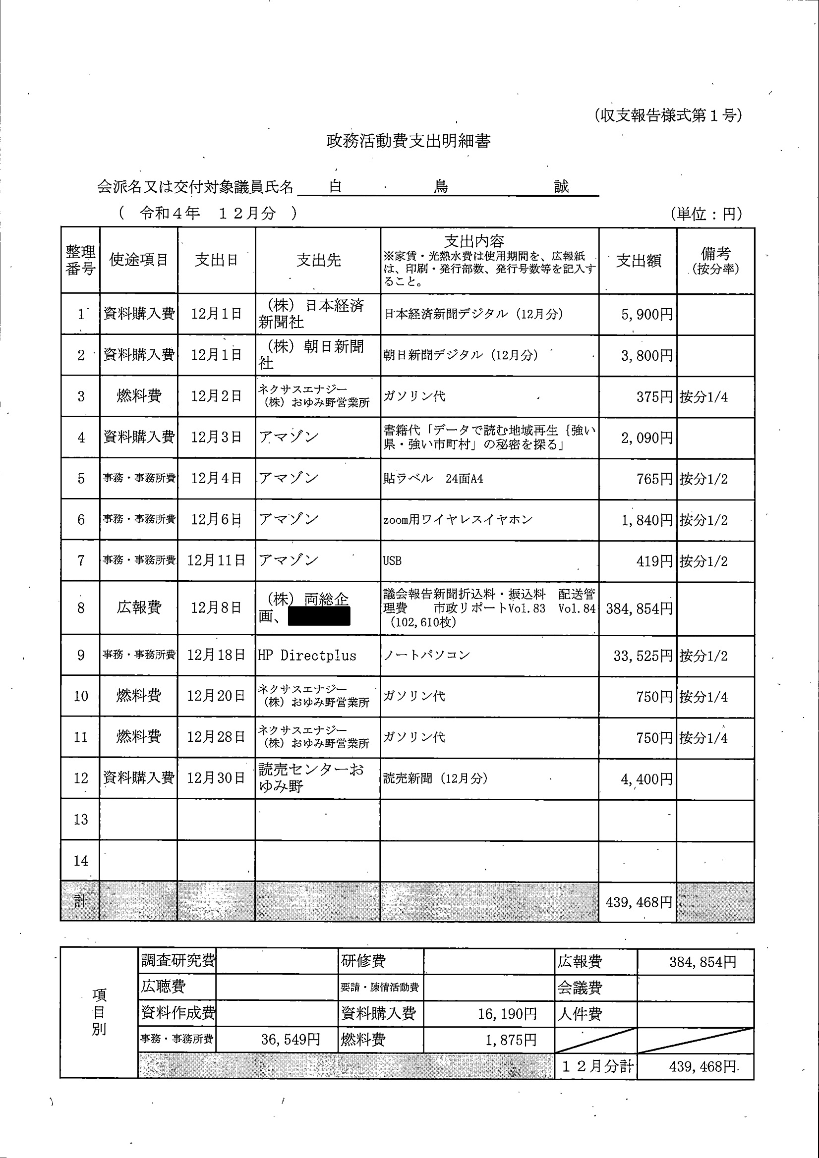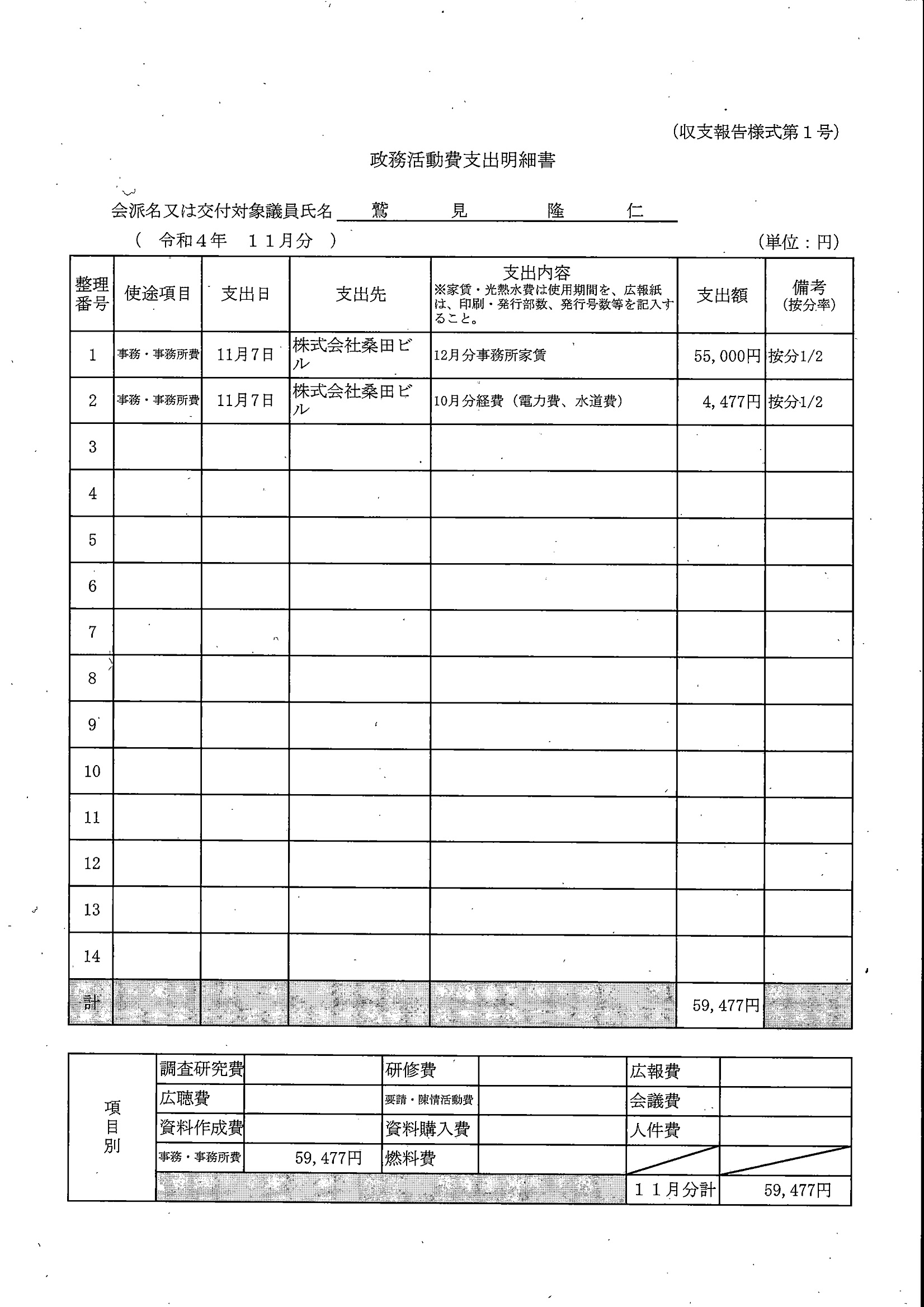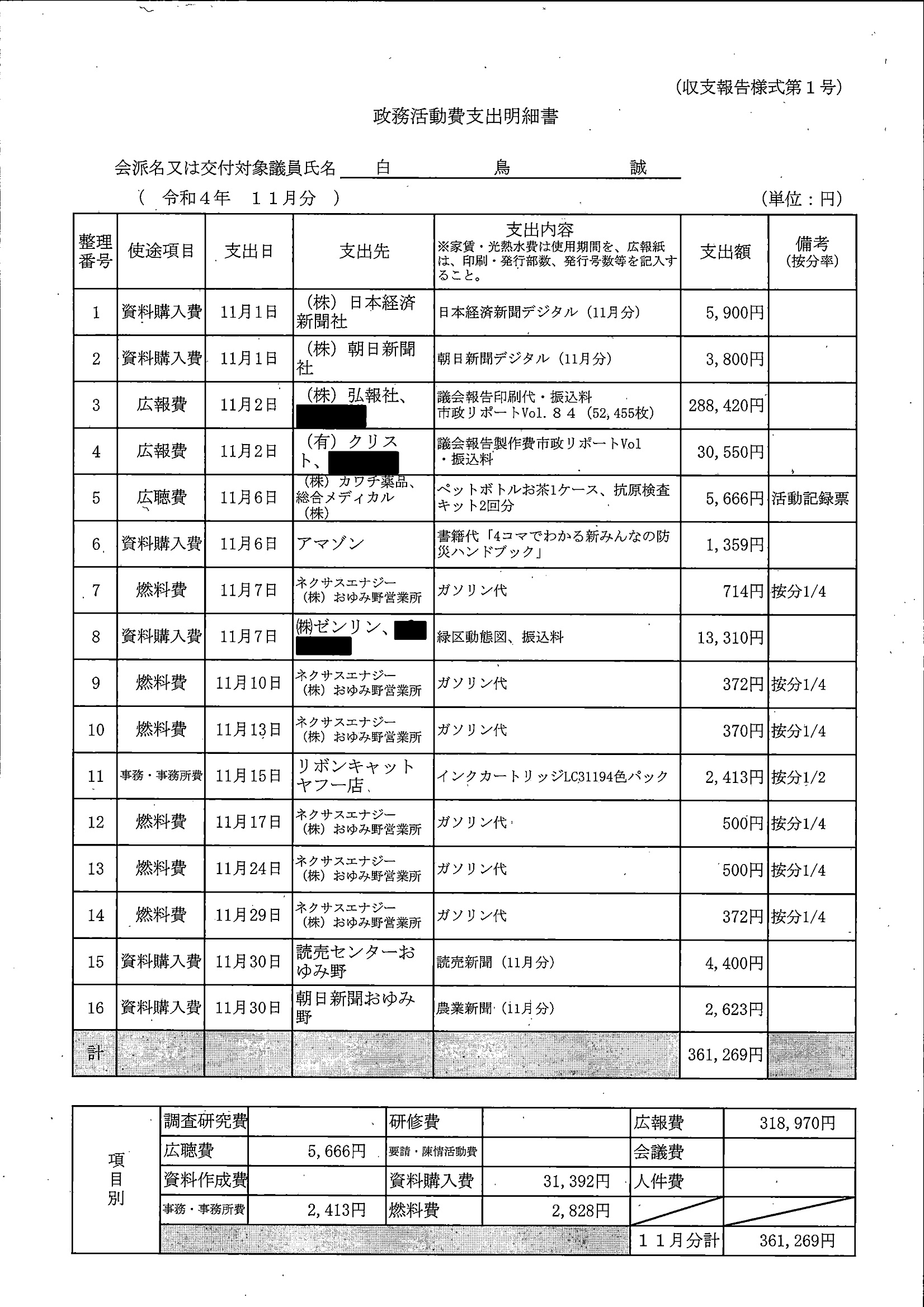 千葉市議会トップページ > 広報・情報公開 > 政務活動費 > 令和4年度交付分(政務活動費収支報告書)