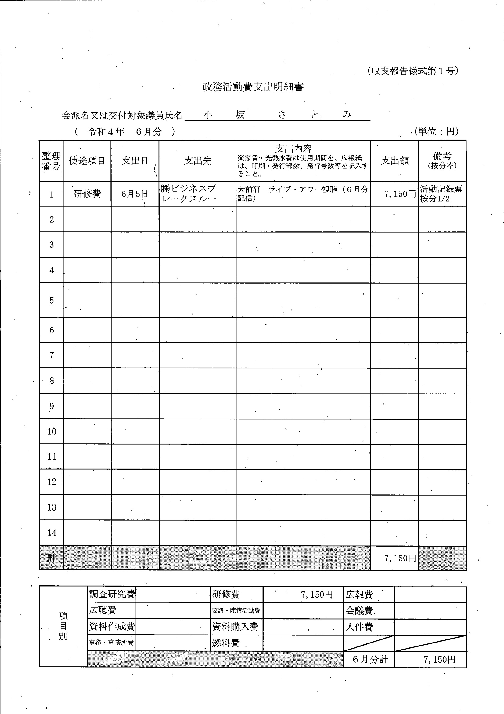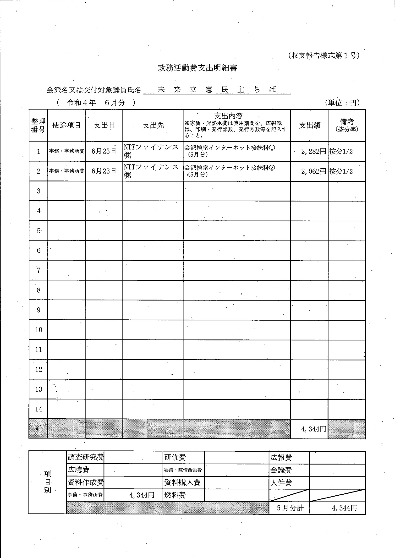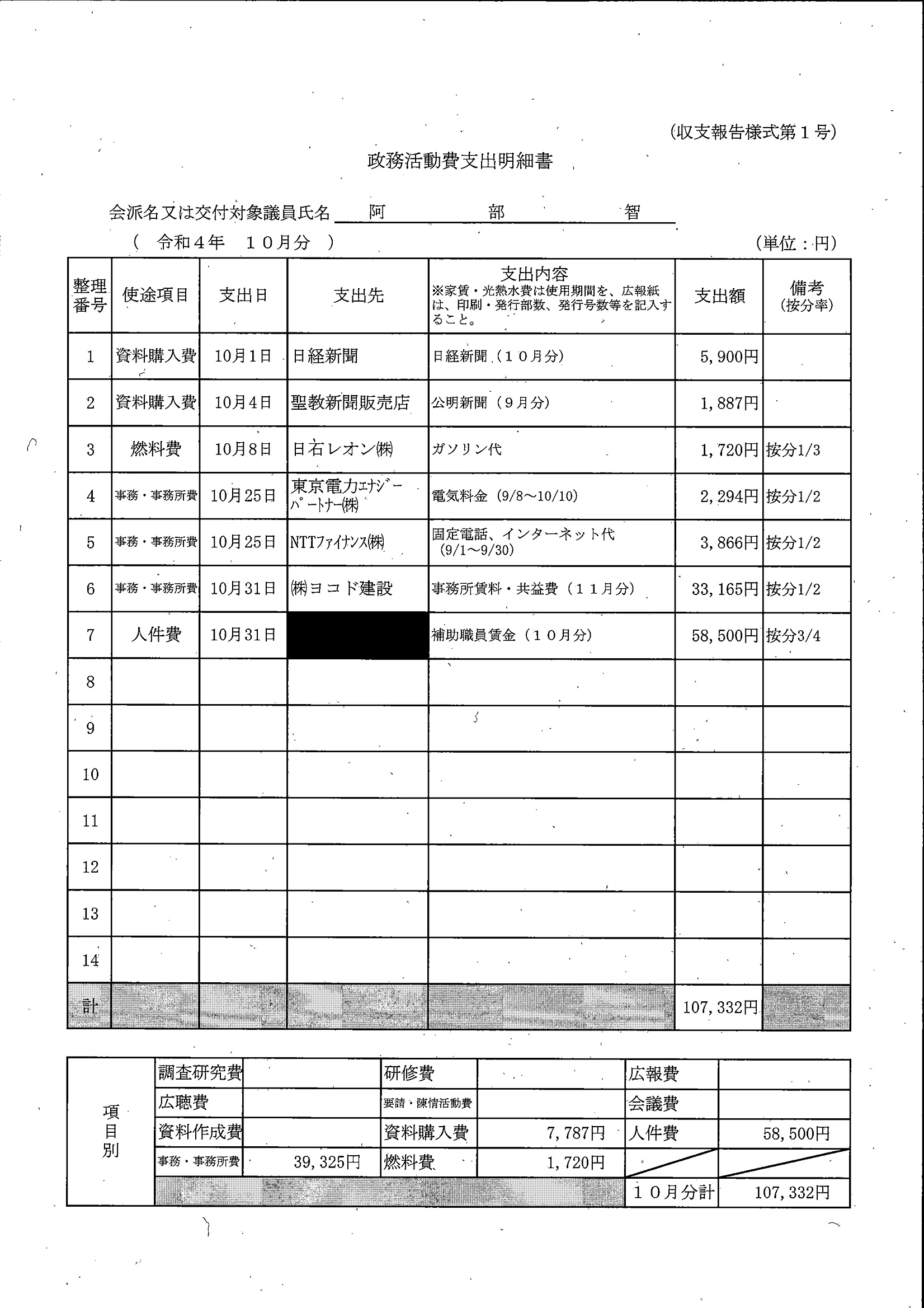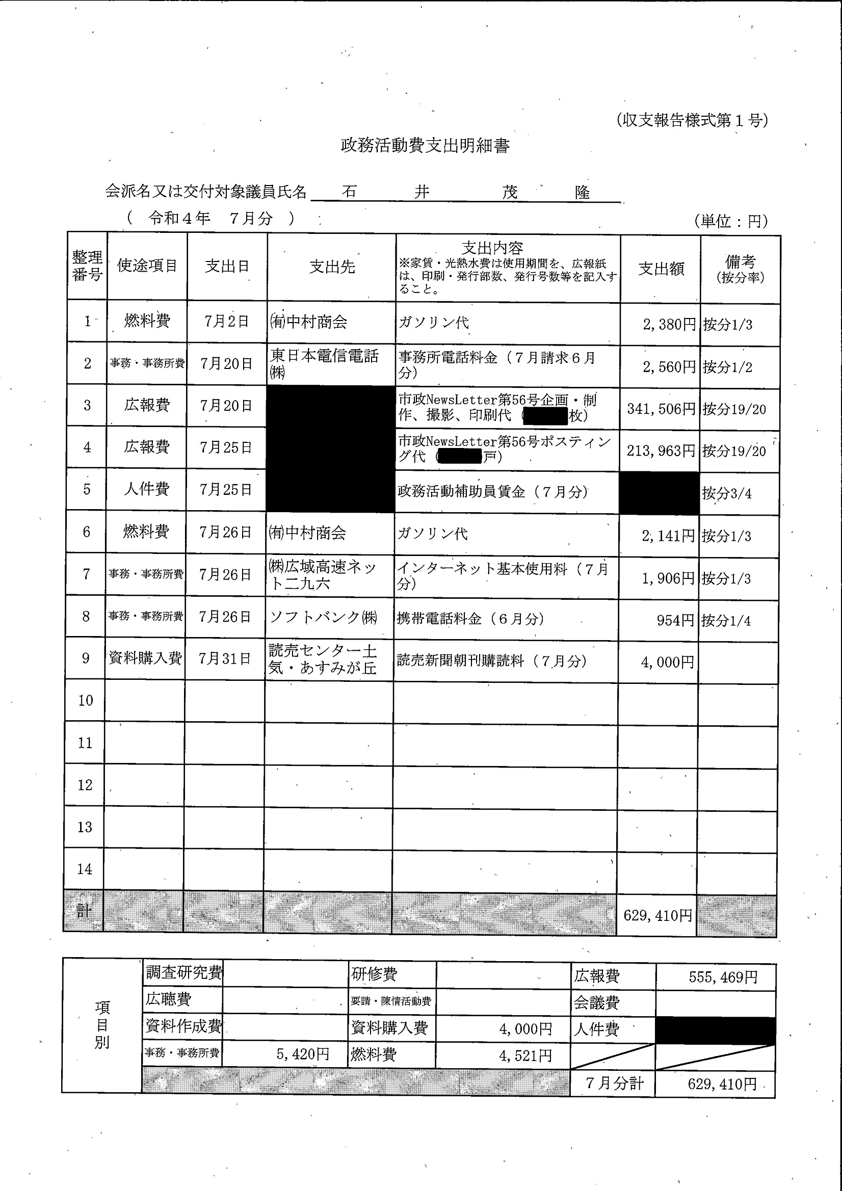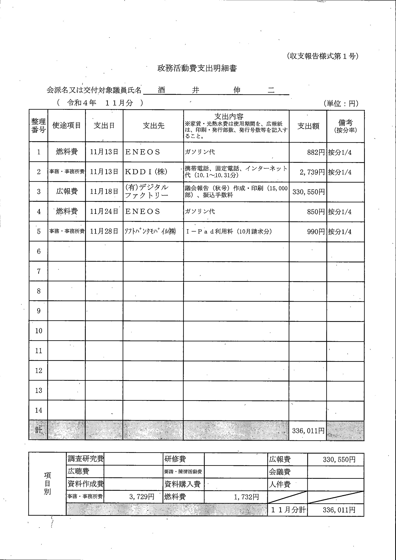 千葉市議会トップページ > 広報・情報公開 > 政務活動費 > 令和4年度交付分(政務活動費収支報告書)