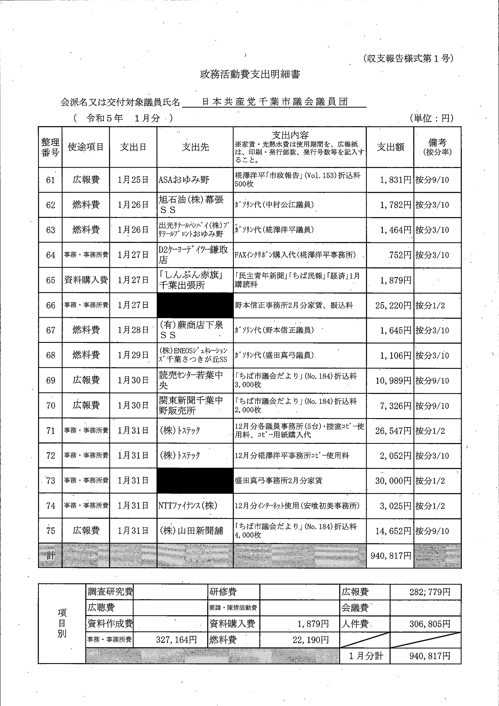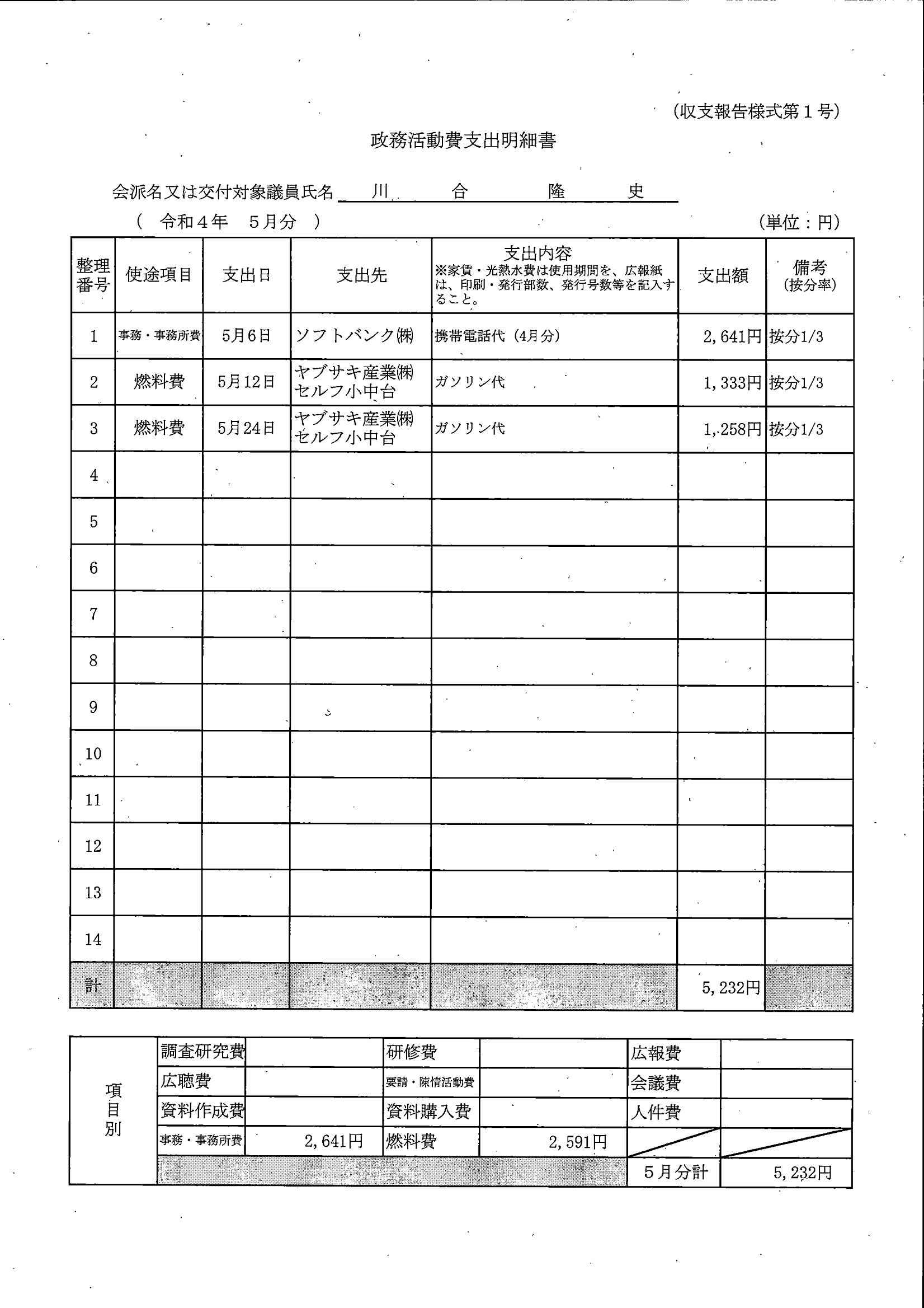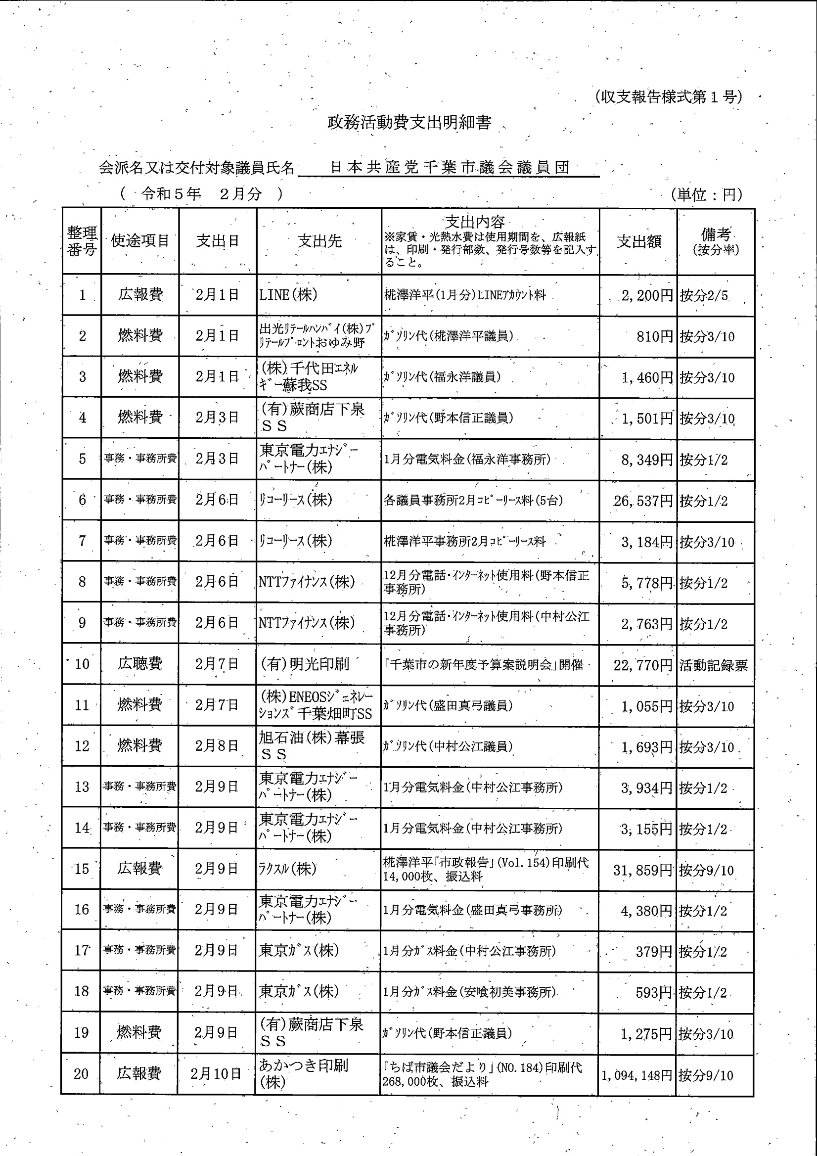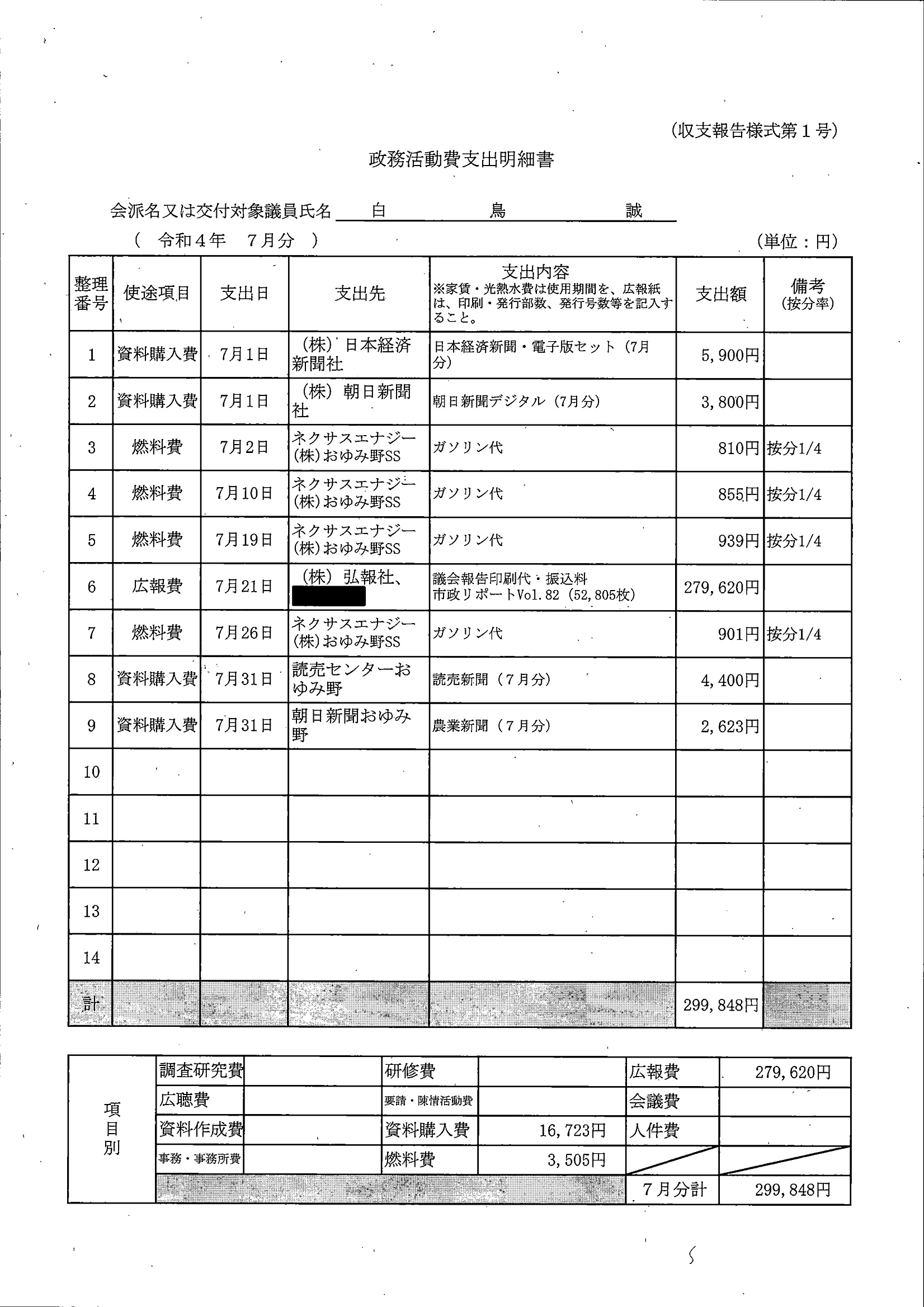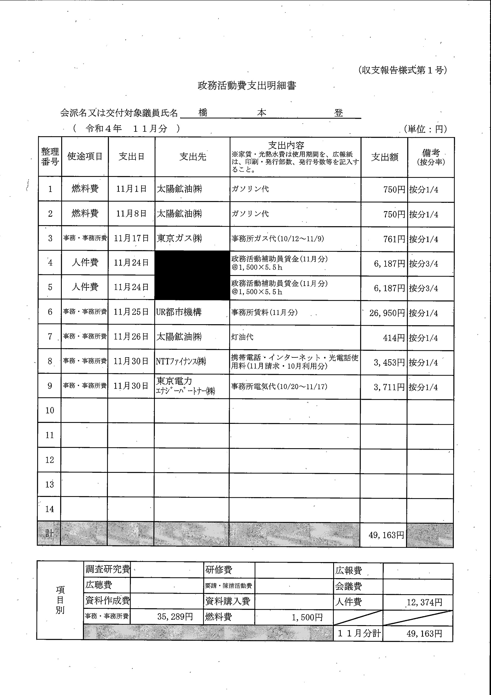 千葉市議会トップページ > 広報・情報公開 > 政務活動費 > 令和4年度交付分(政務活動費収支報告書)