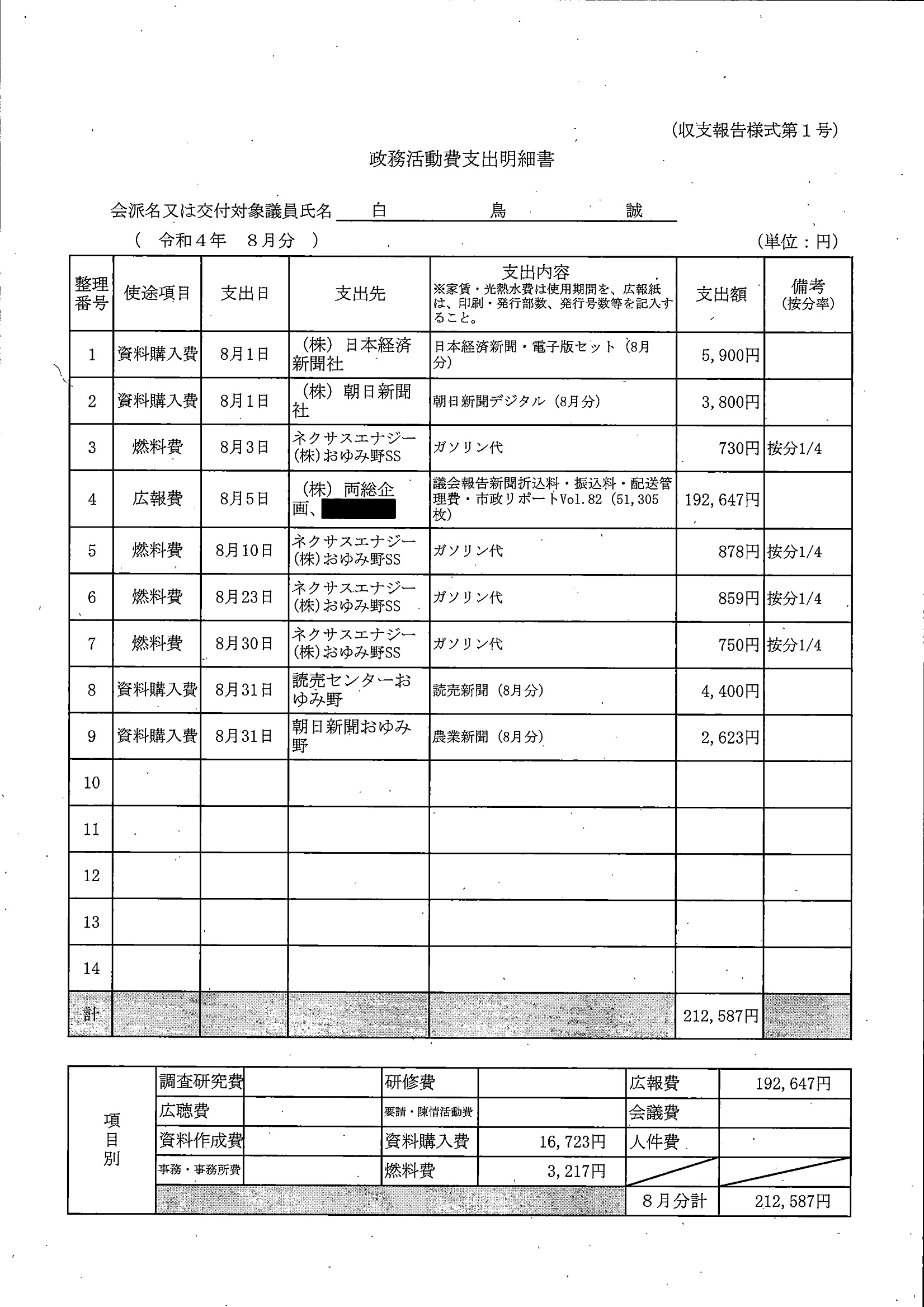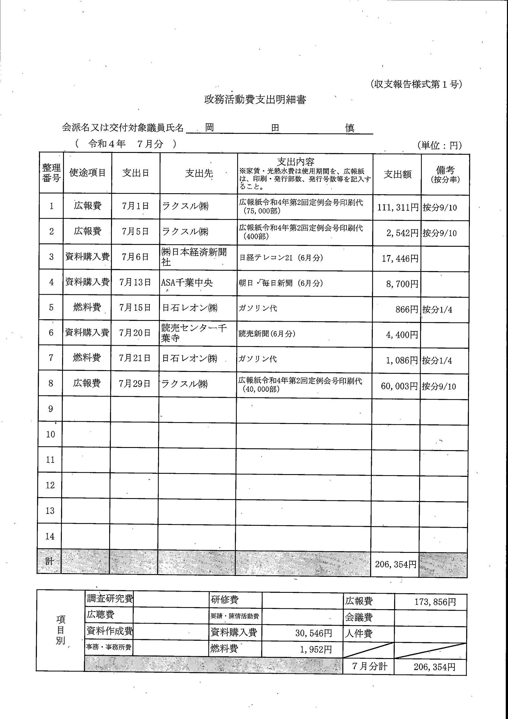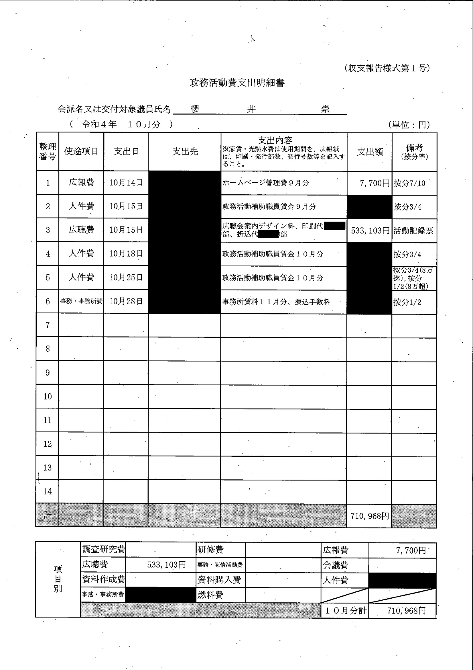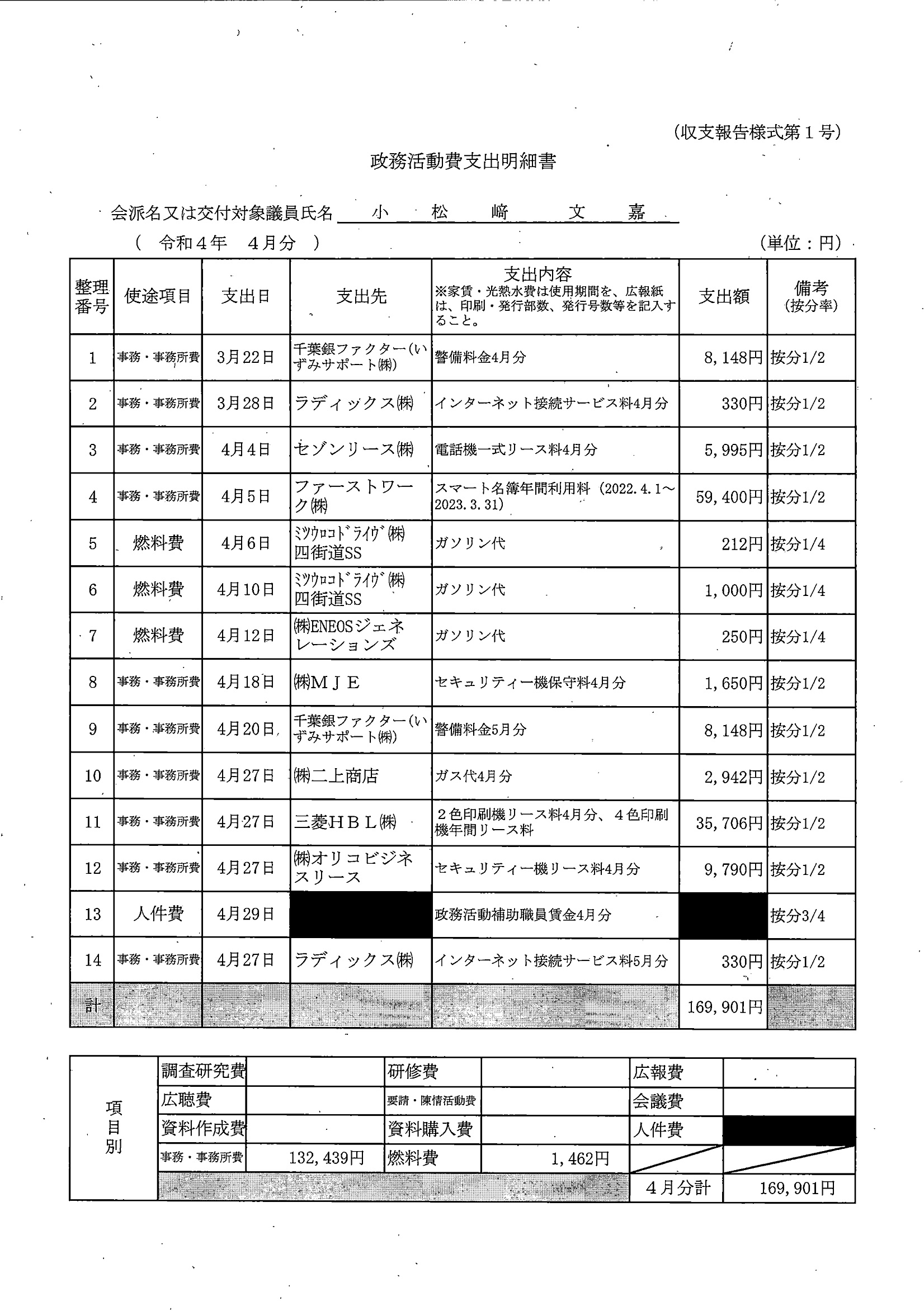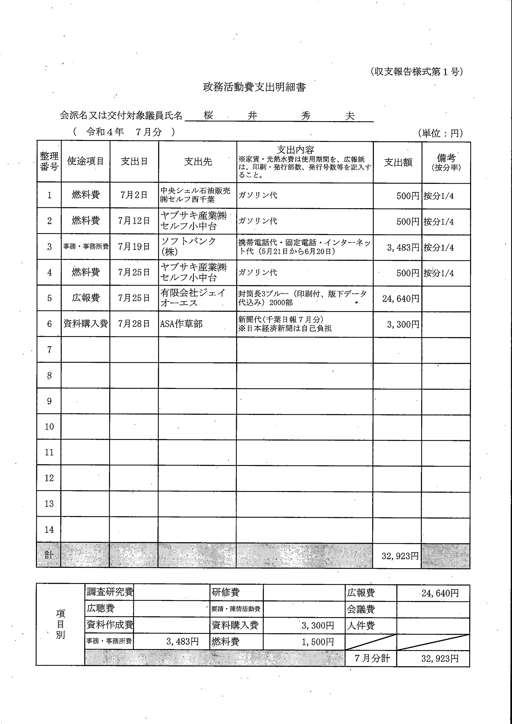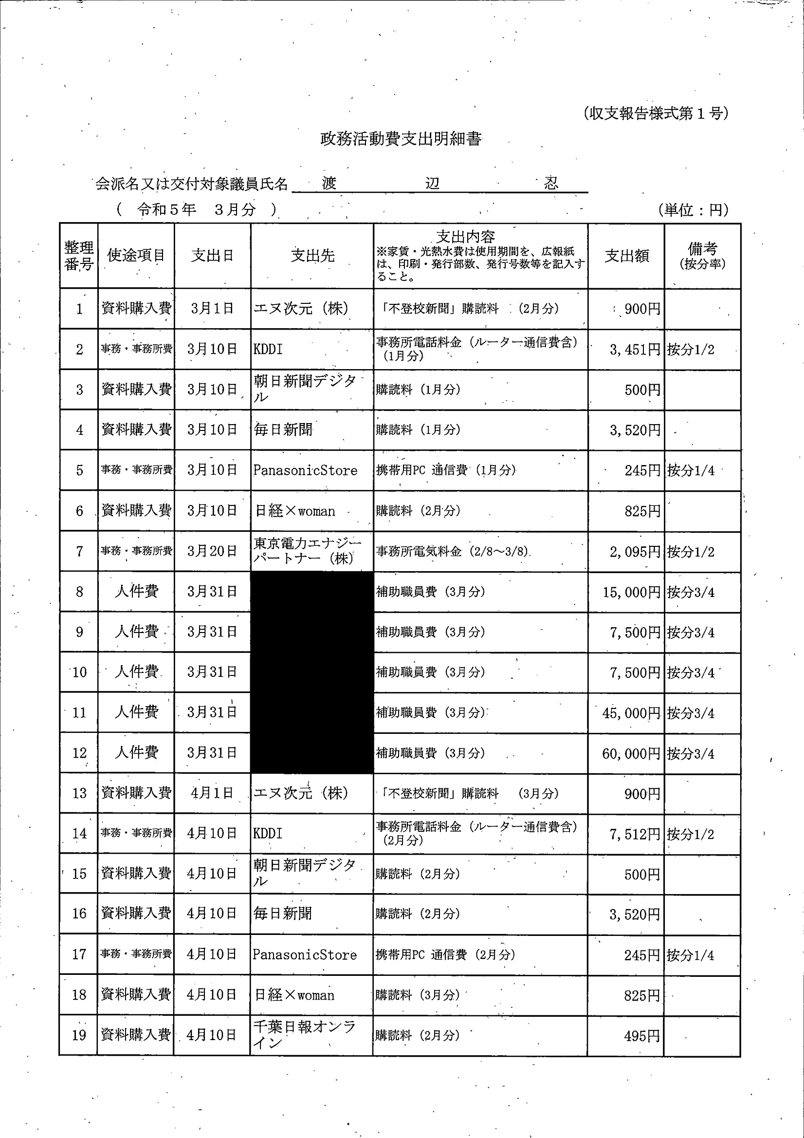 千葉市議会トップページ > 広報・情報公開 > 政務活動費 > 令和4年度交付分(政務活動費収支報告書)