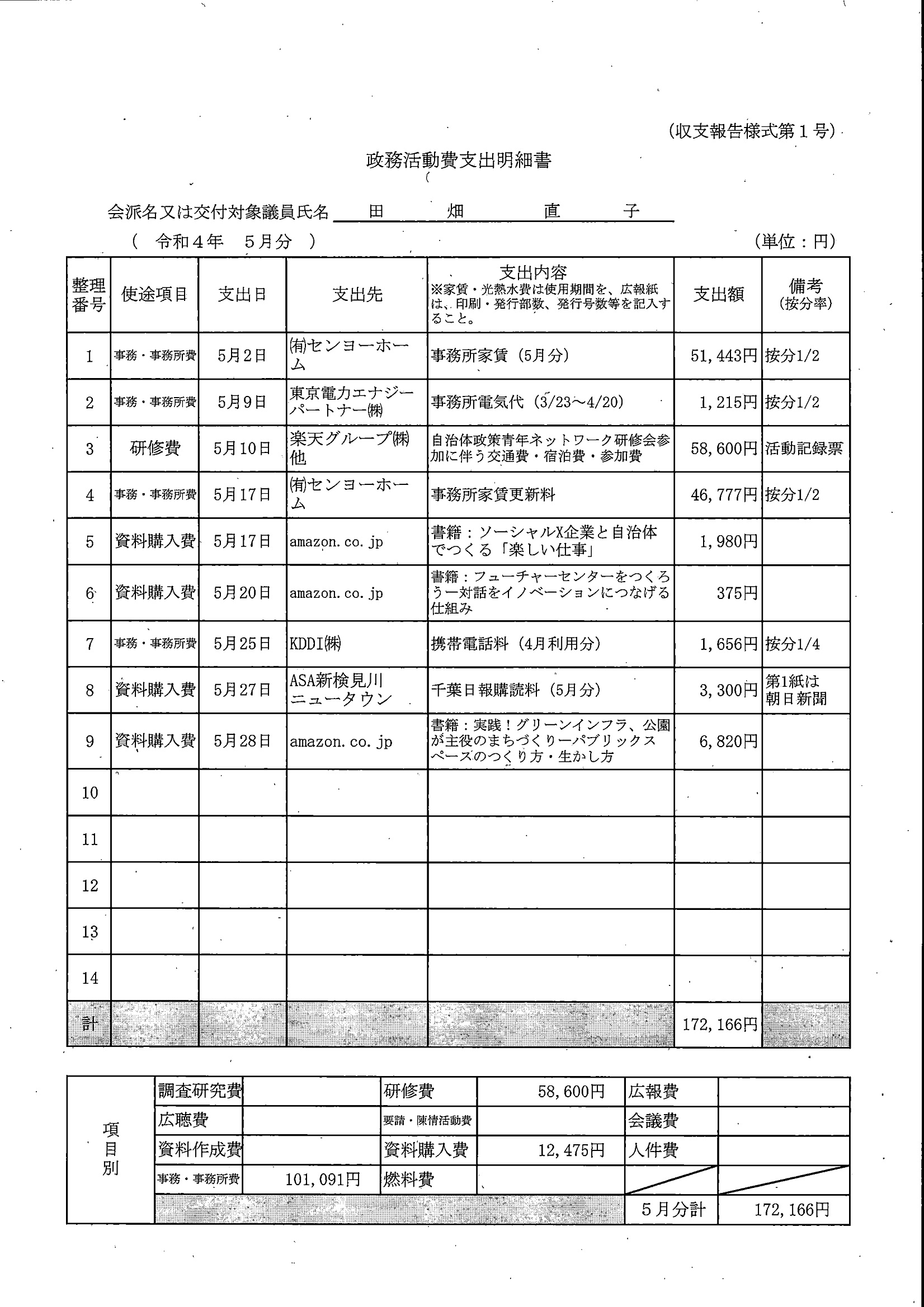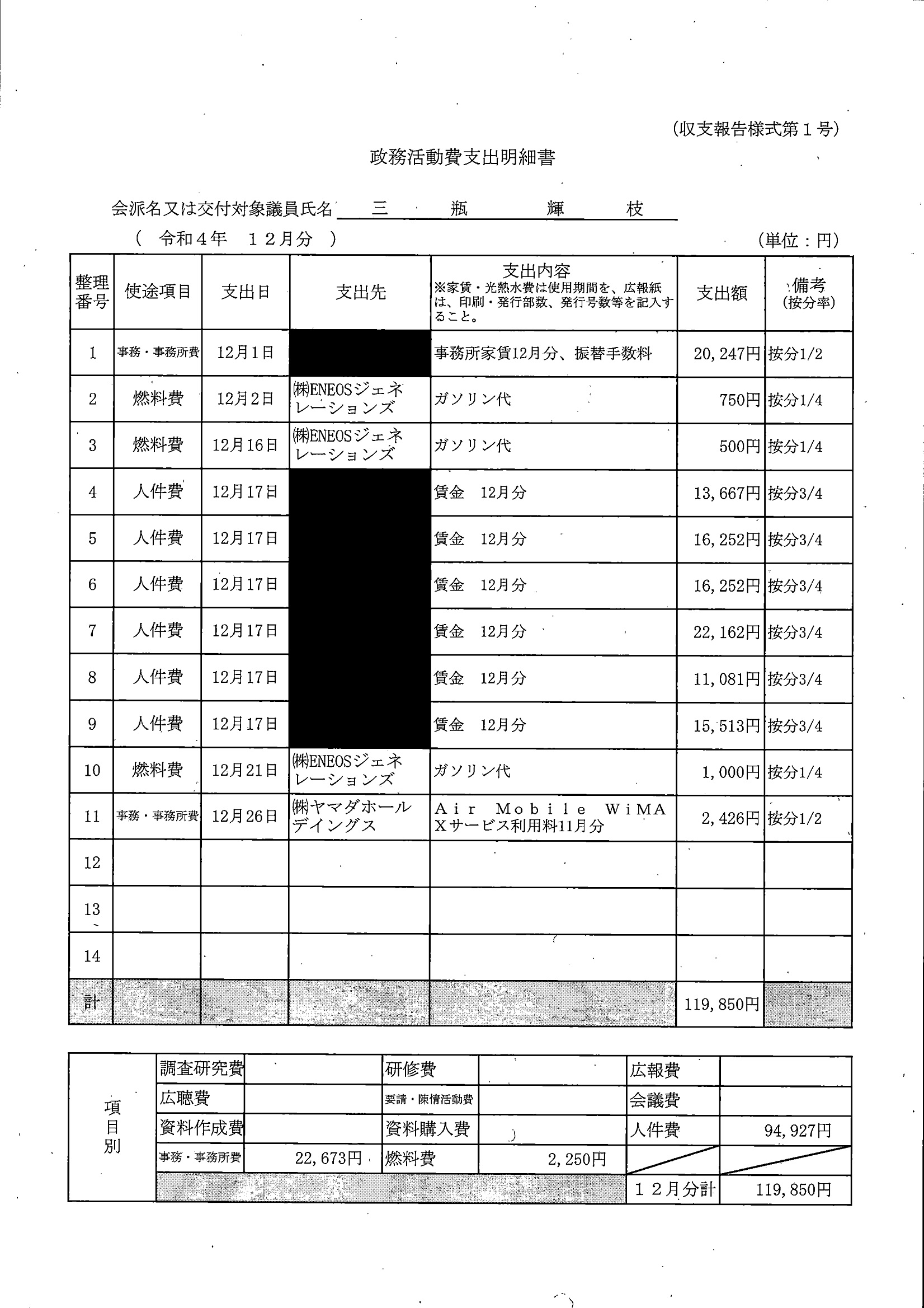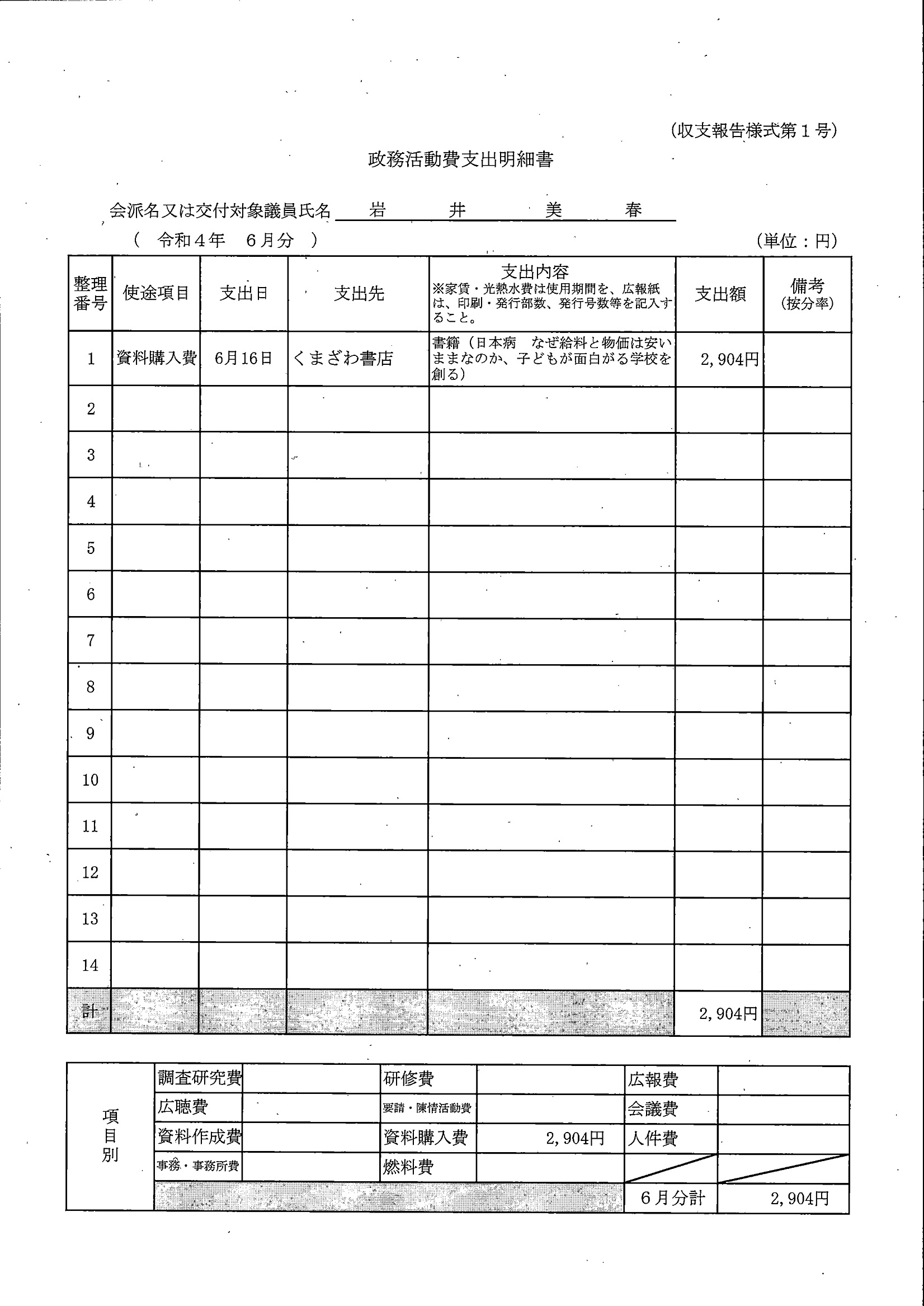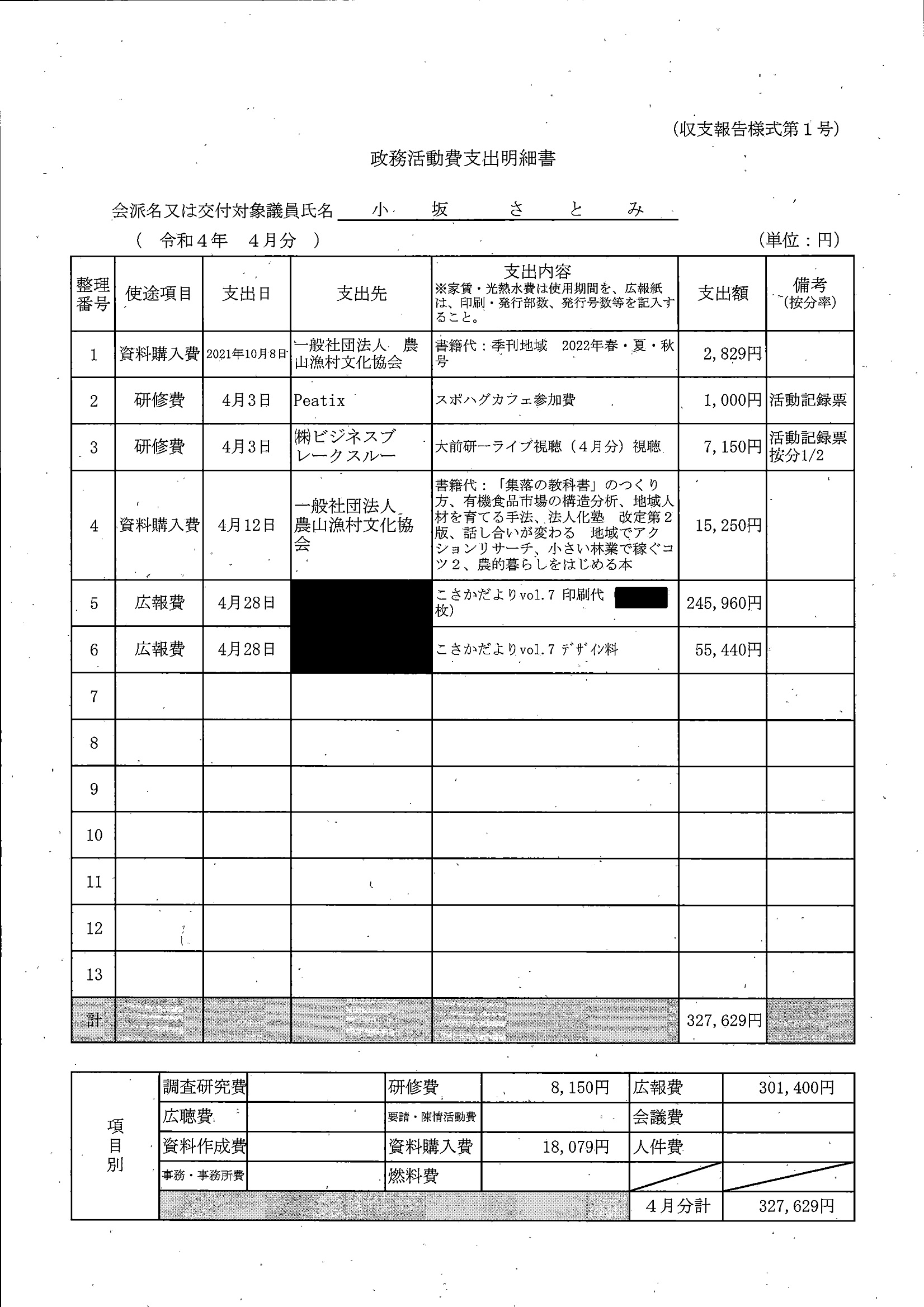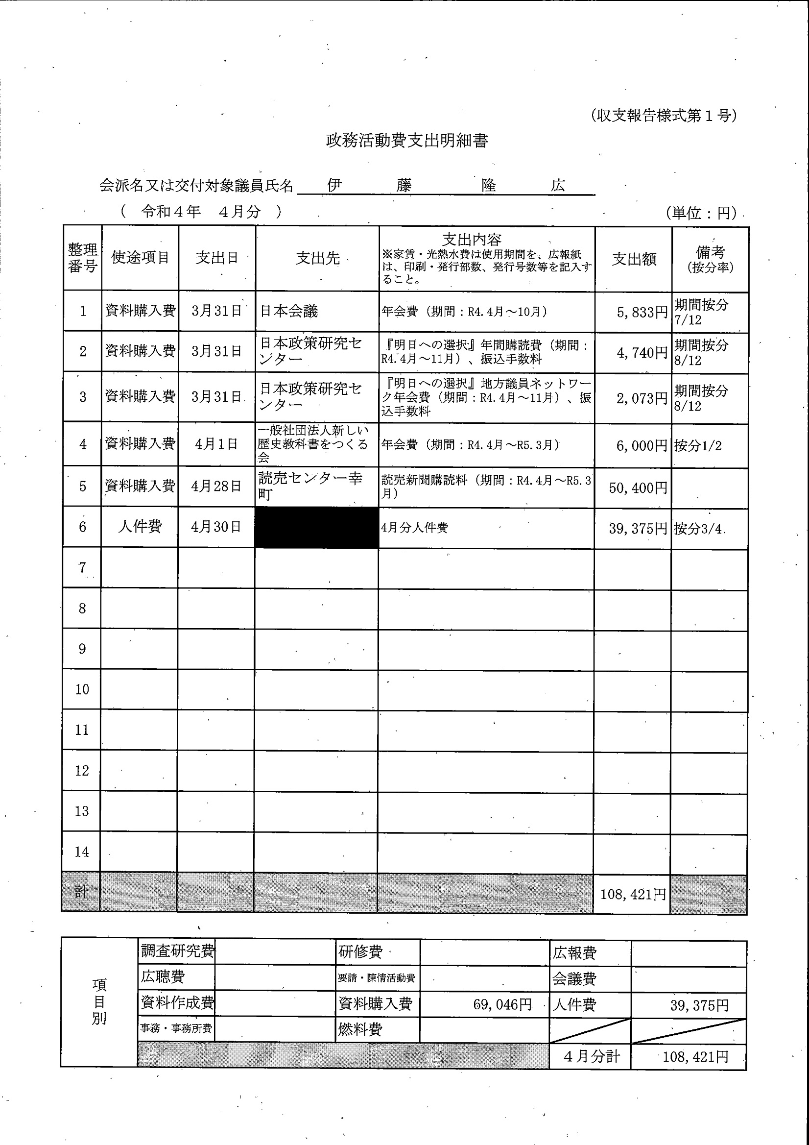 千葉市議会トップページ > 広報・情報公開 > 政務活動費 > 令和4年度交付分(政務活動費収支報告書)