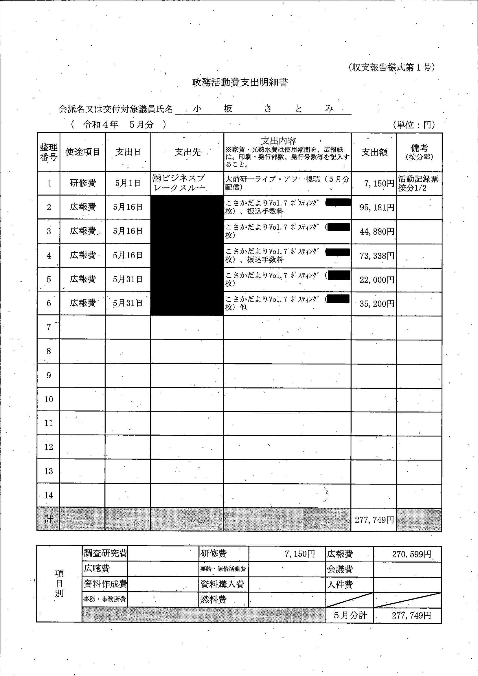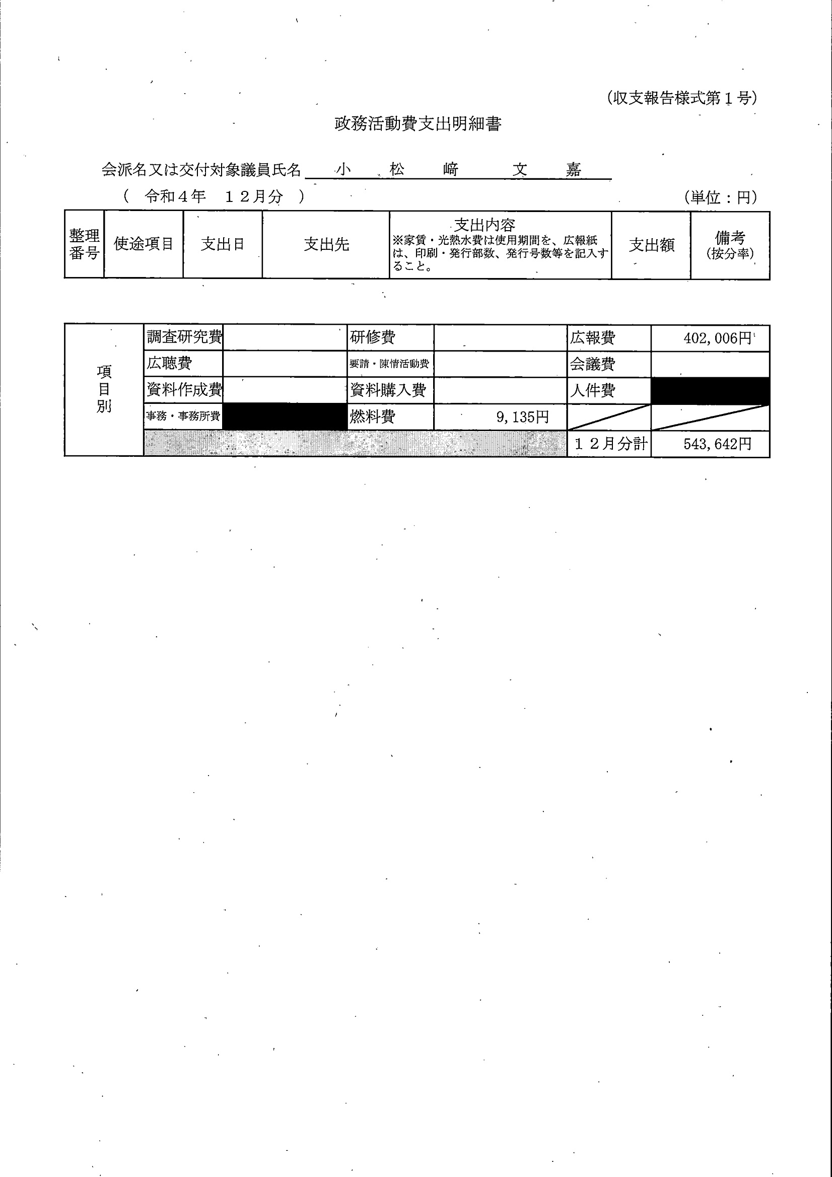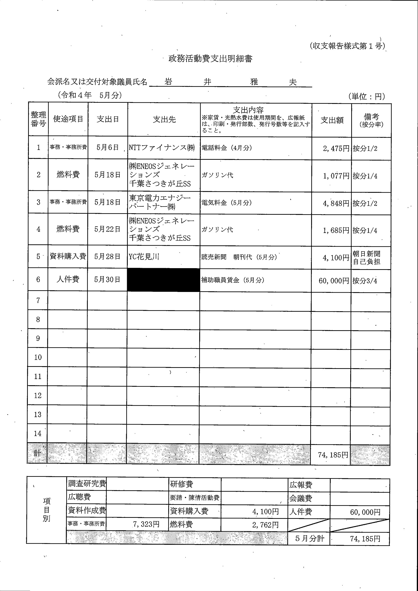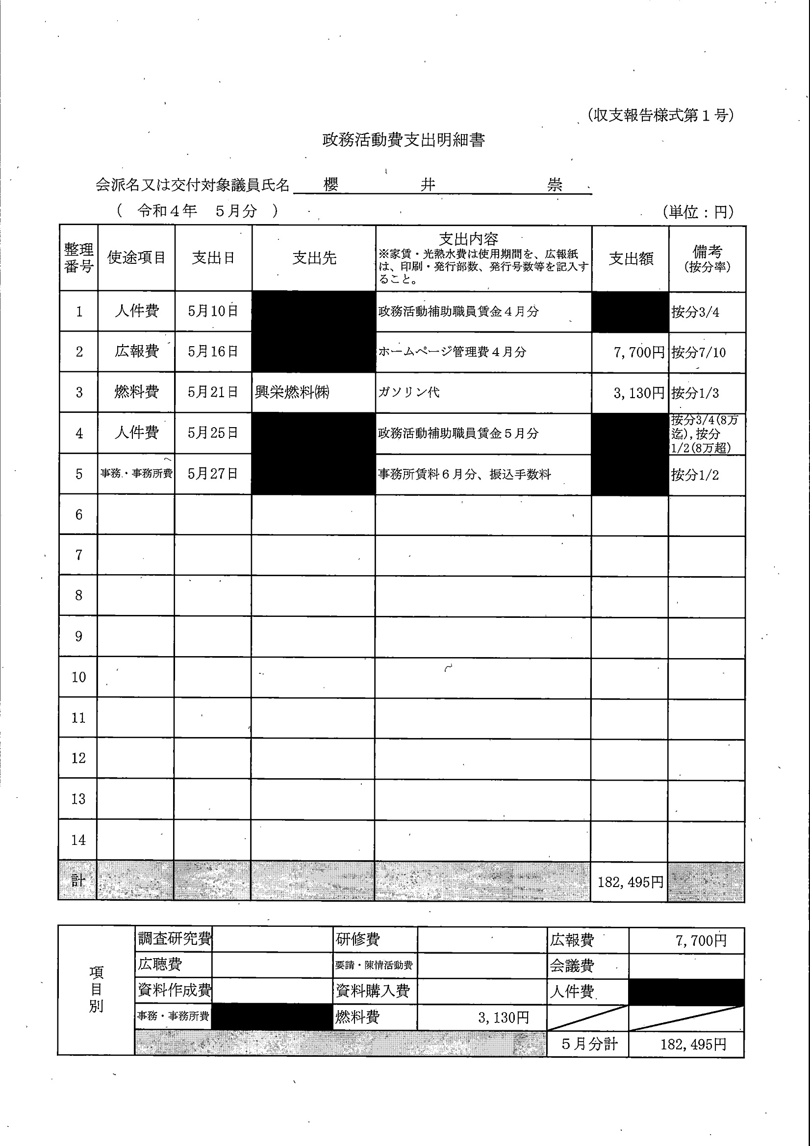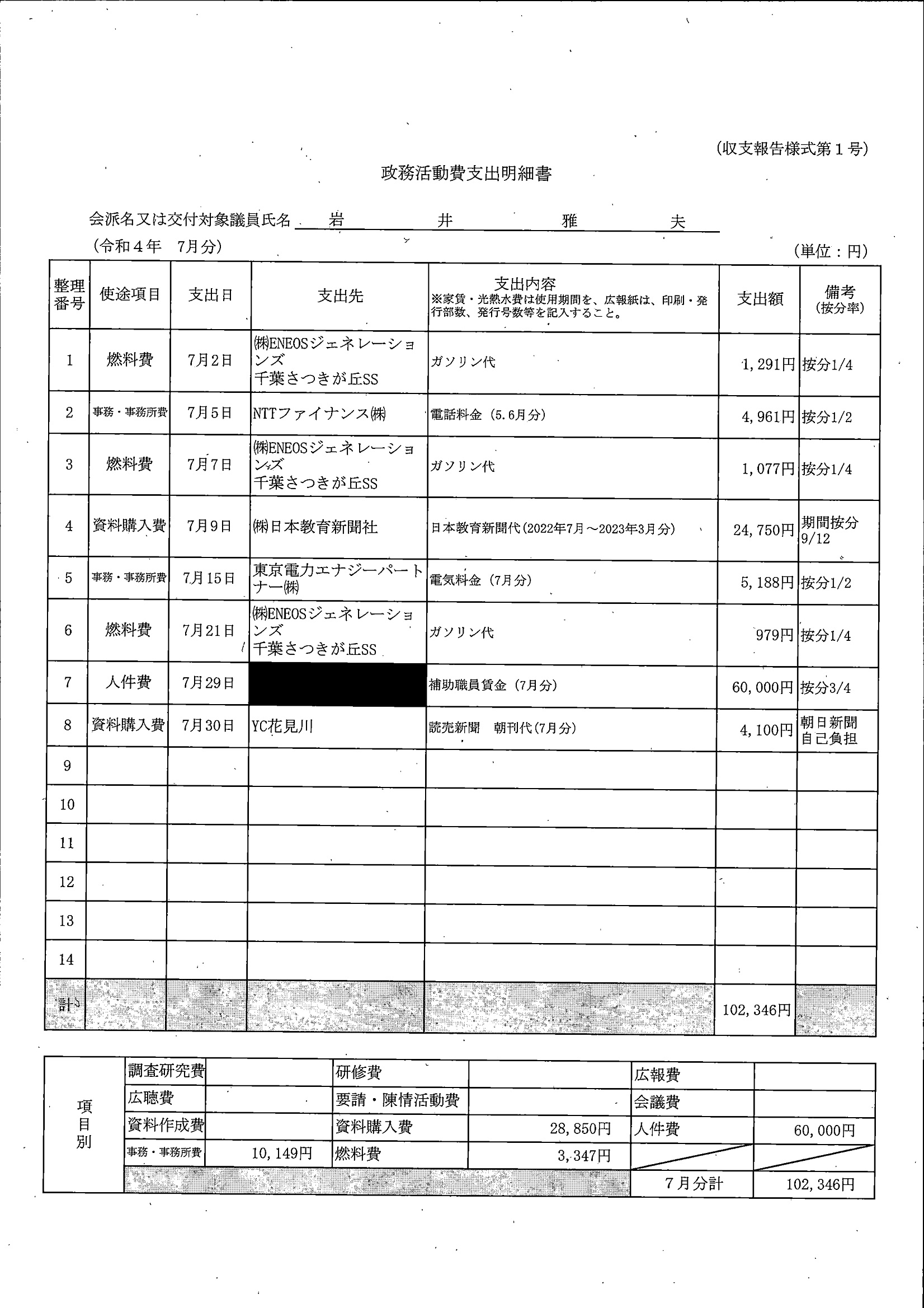 千葉市議会トップページ > 広報・情報公開 > 政務活動費 > 令和4年度交付分(政務活動費収支報告書)