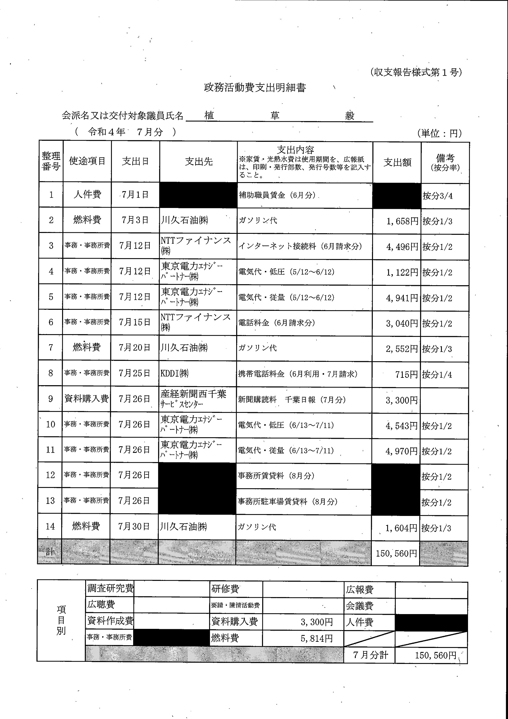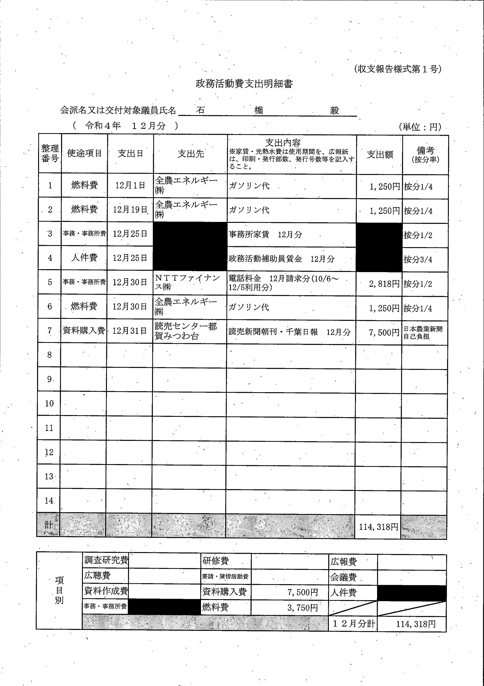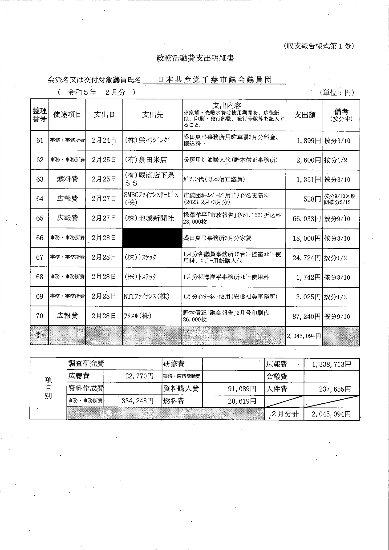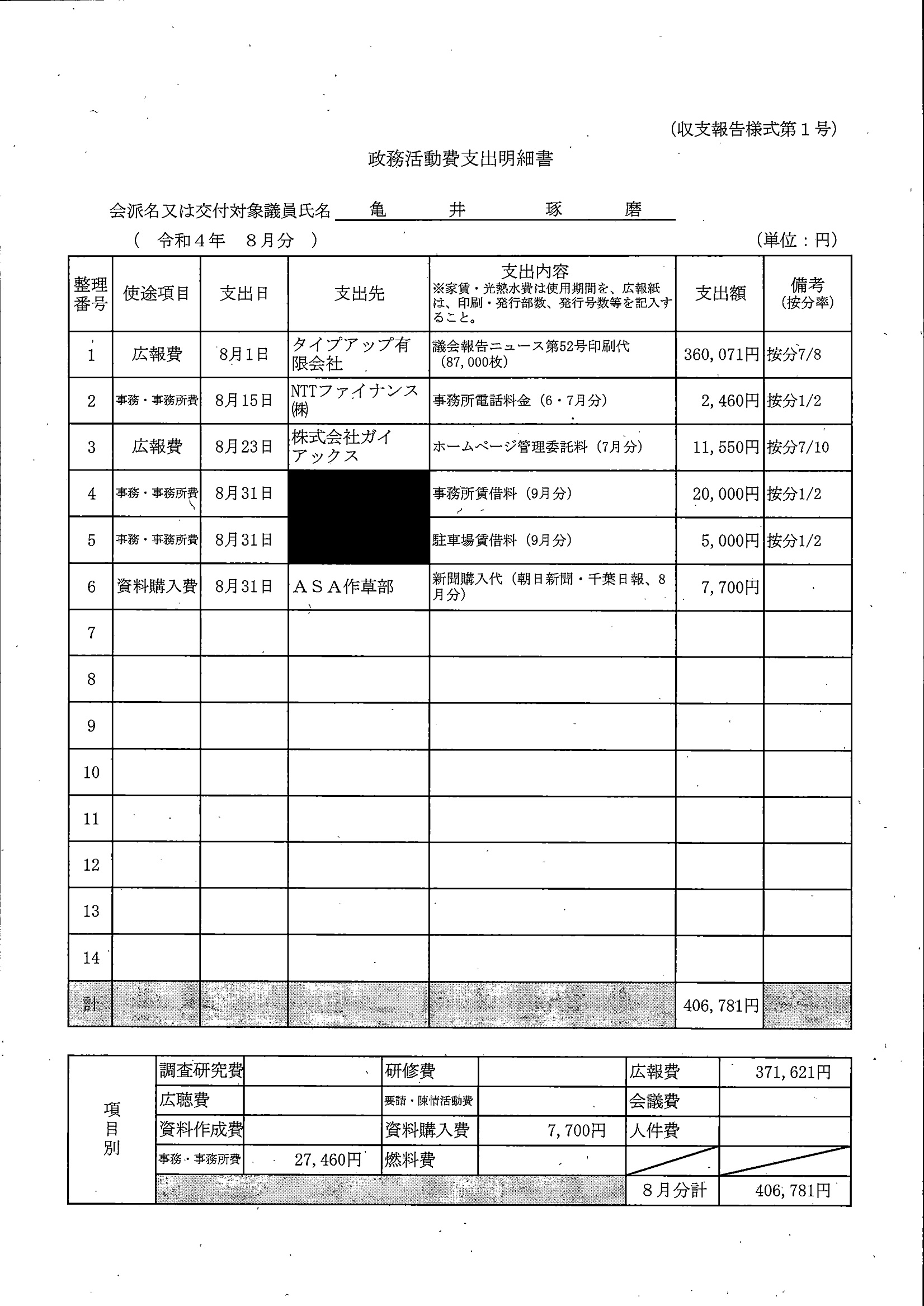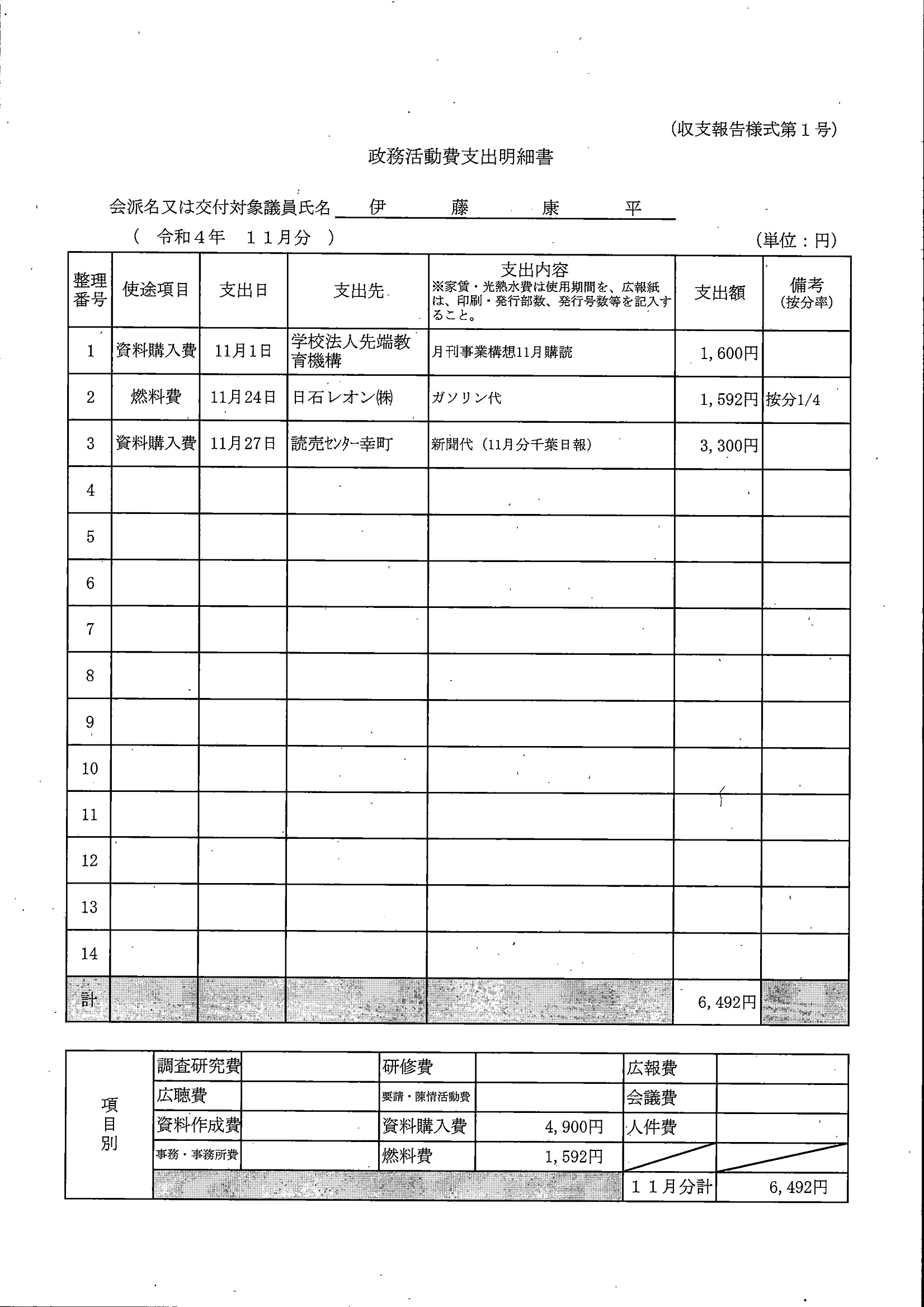 千葉市議会トップページ > 広報・情報公開 > 政務活動費 > 令和4年度交付分(政務活動費収支報告書)