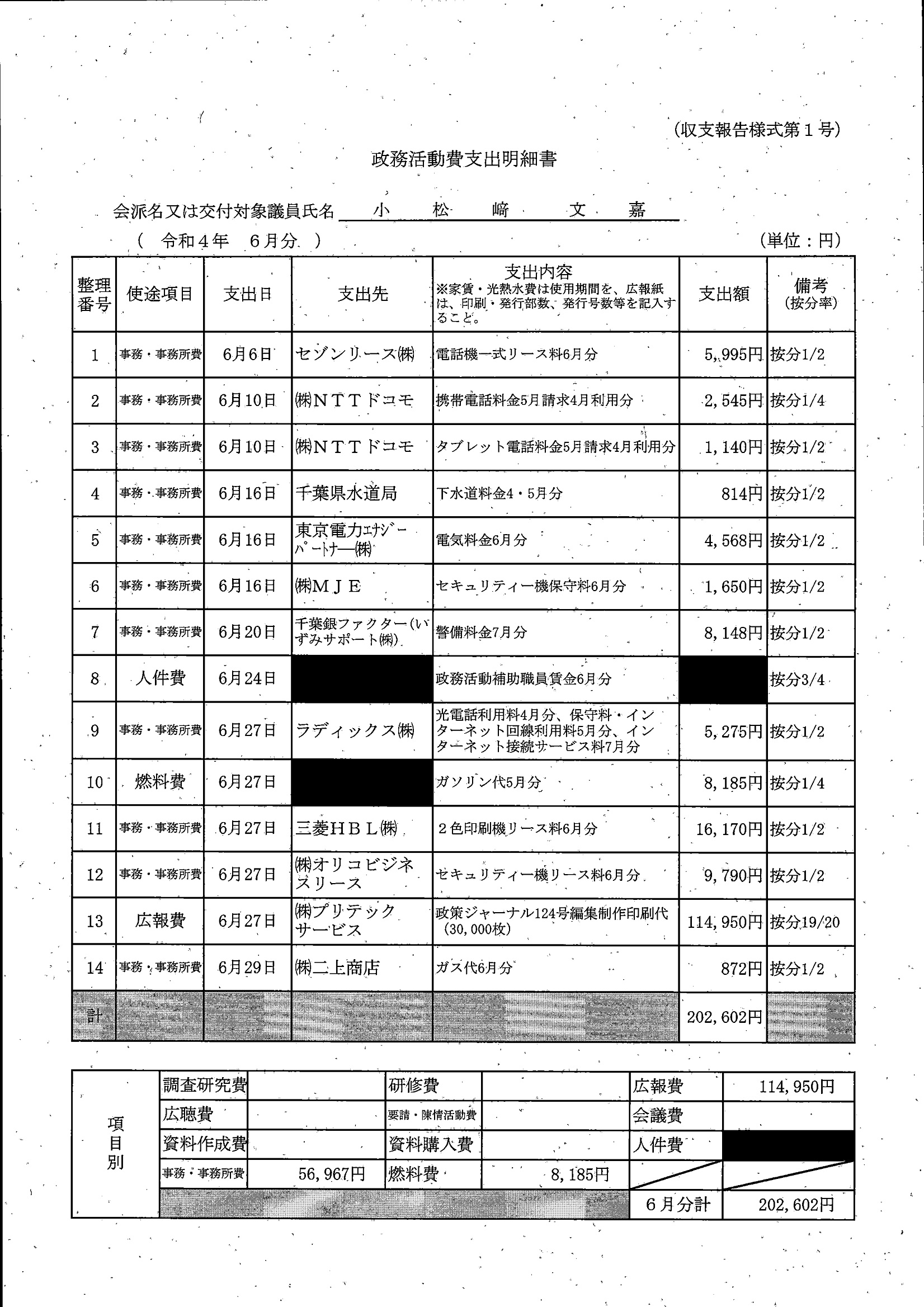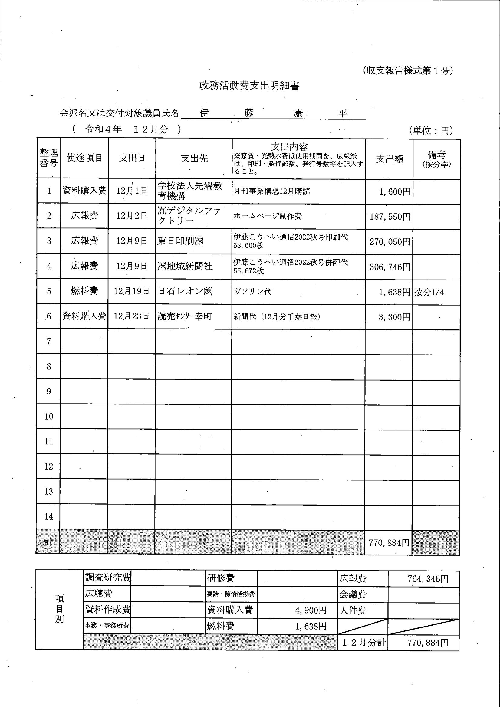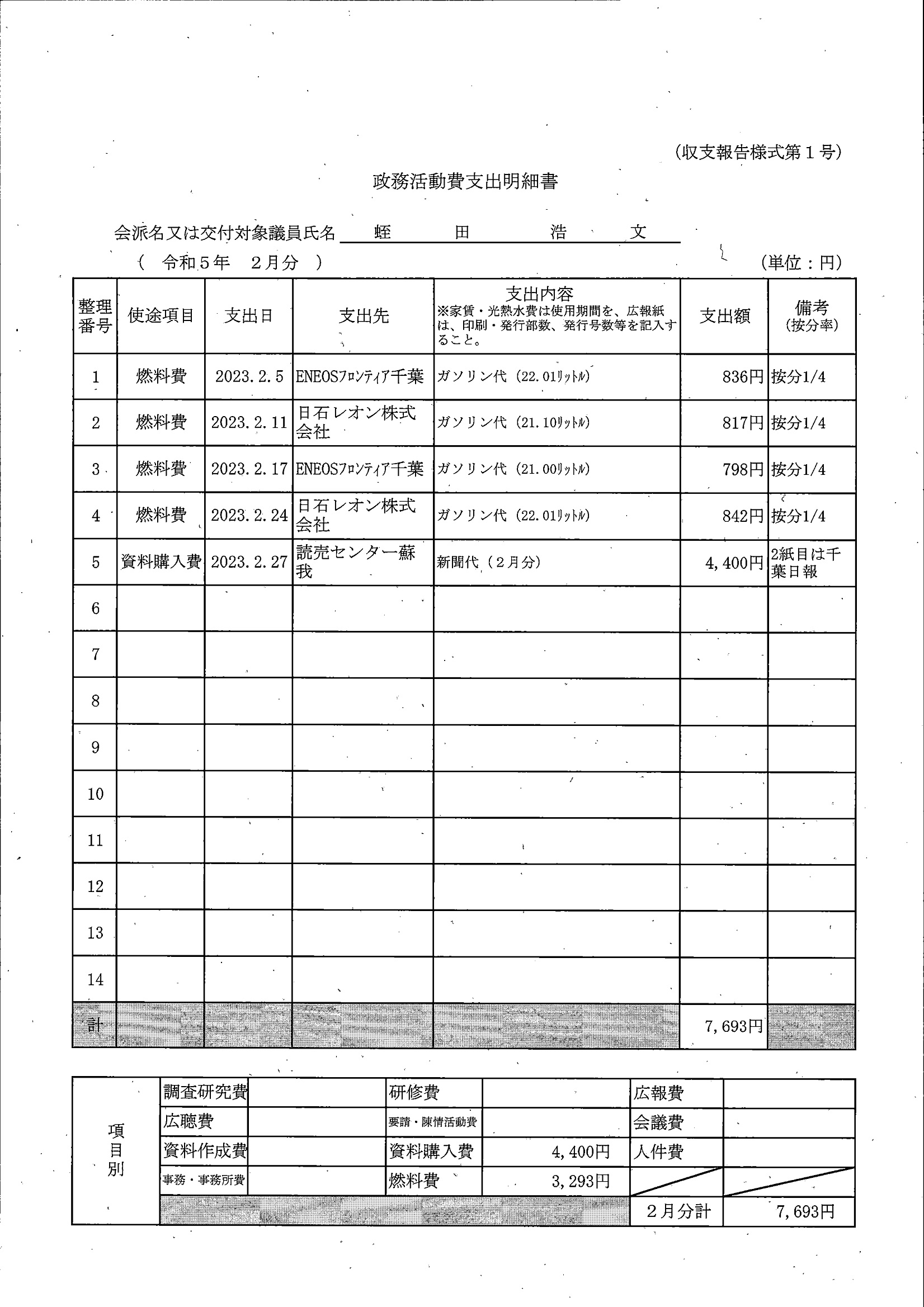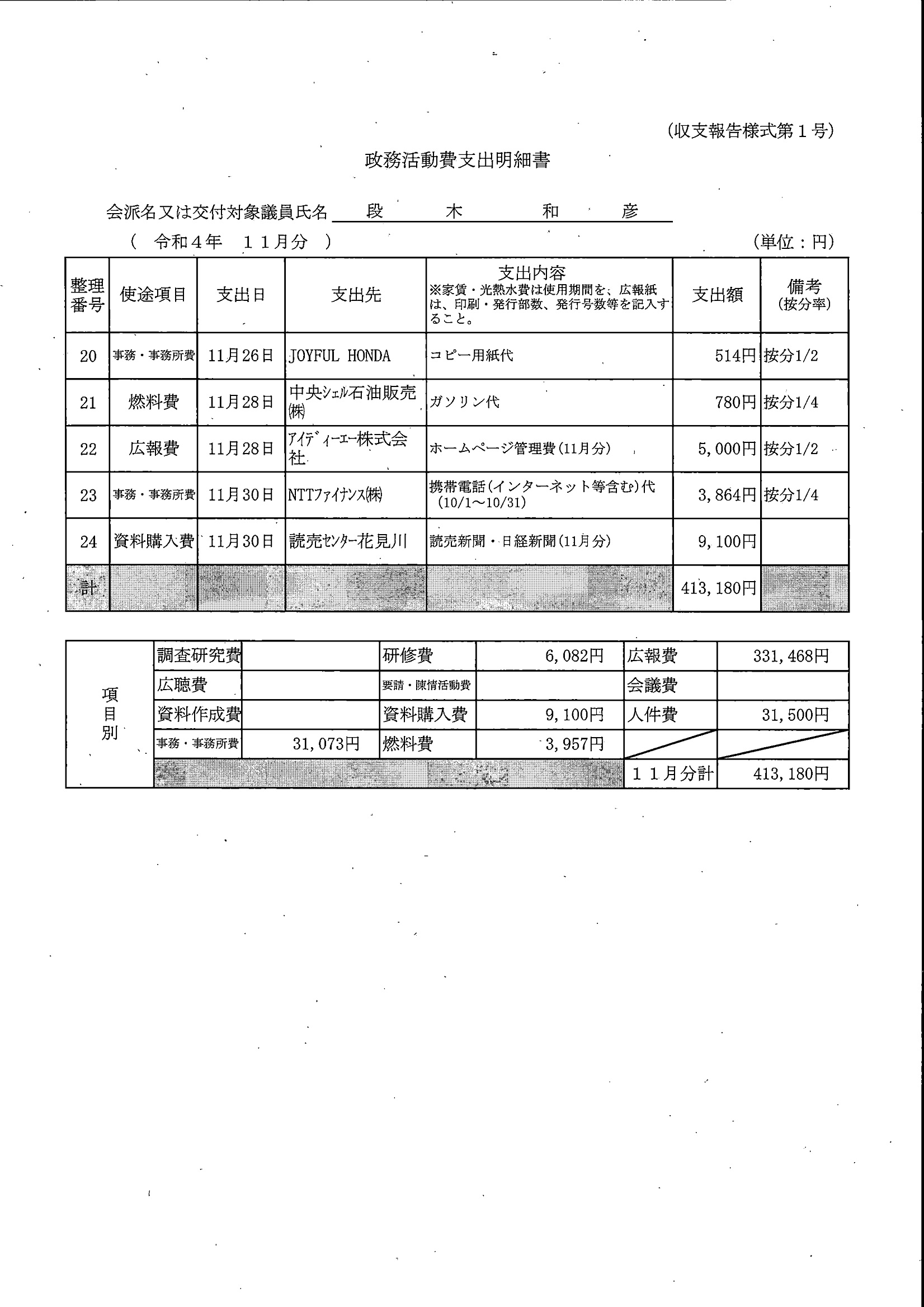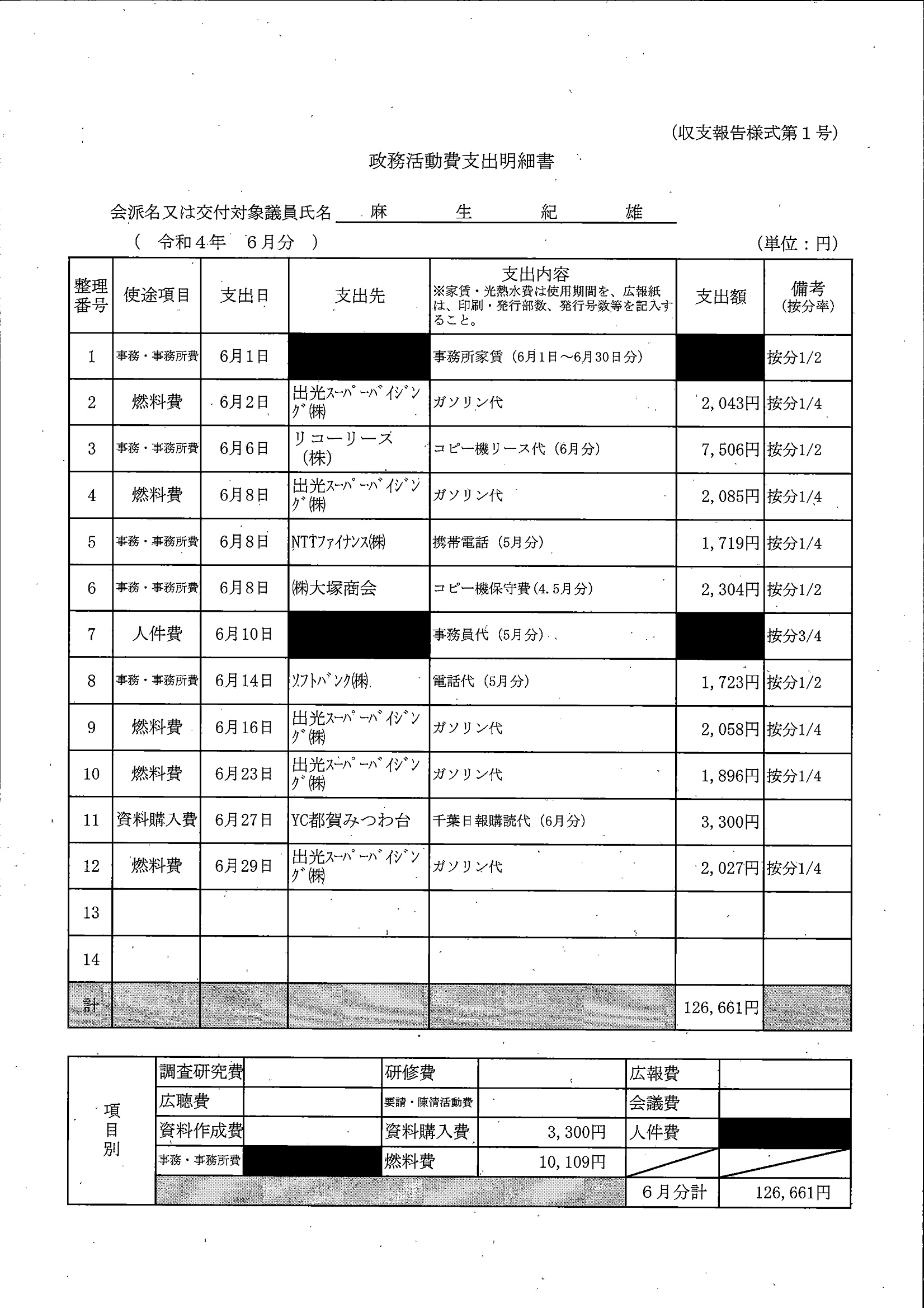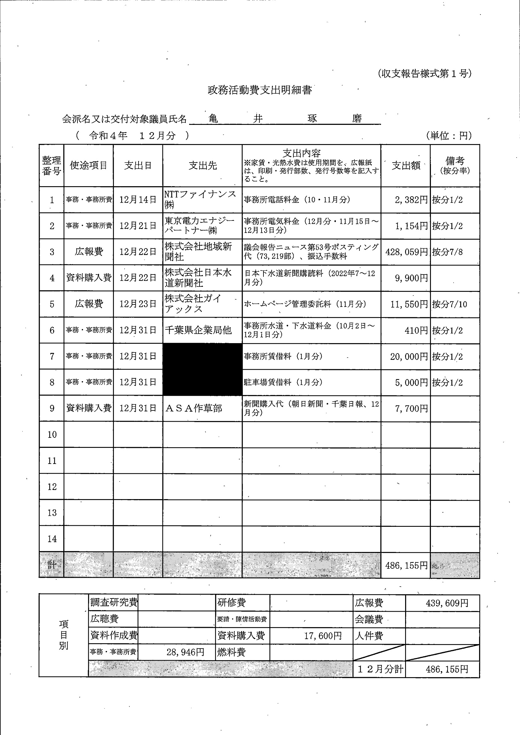 千葉市議会トップページ > 広報・情報公開 > 政務活動費 > 令和4年度交付分(政務活動費収支報告書)