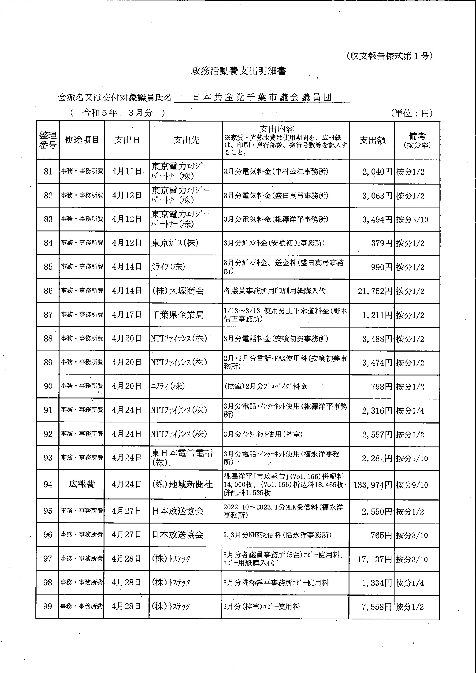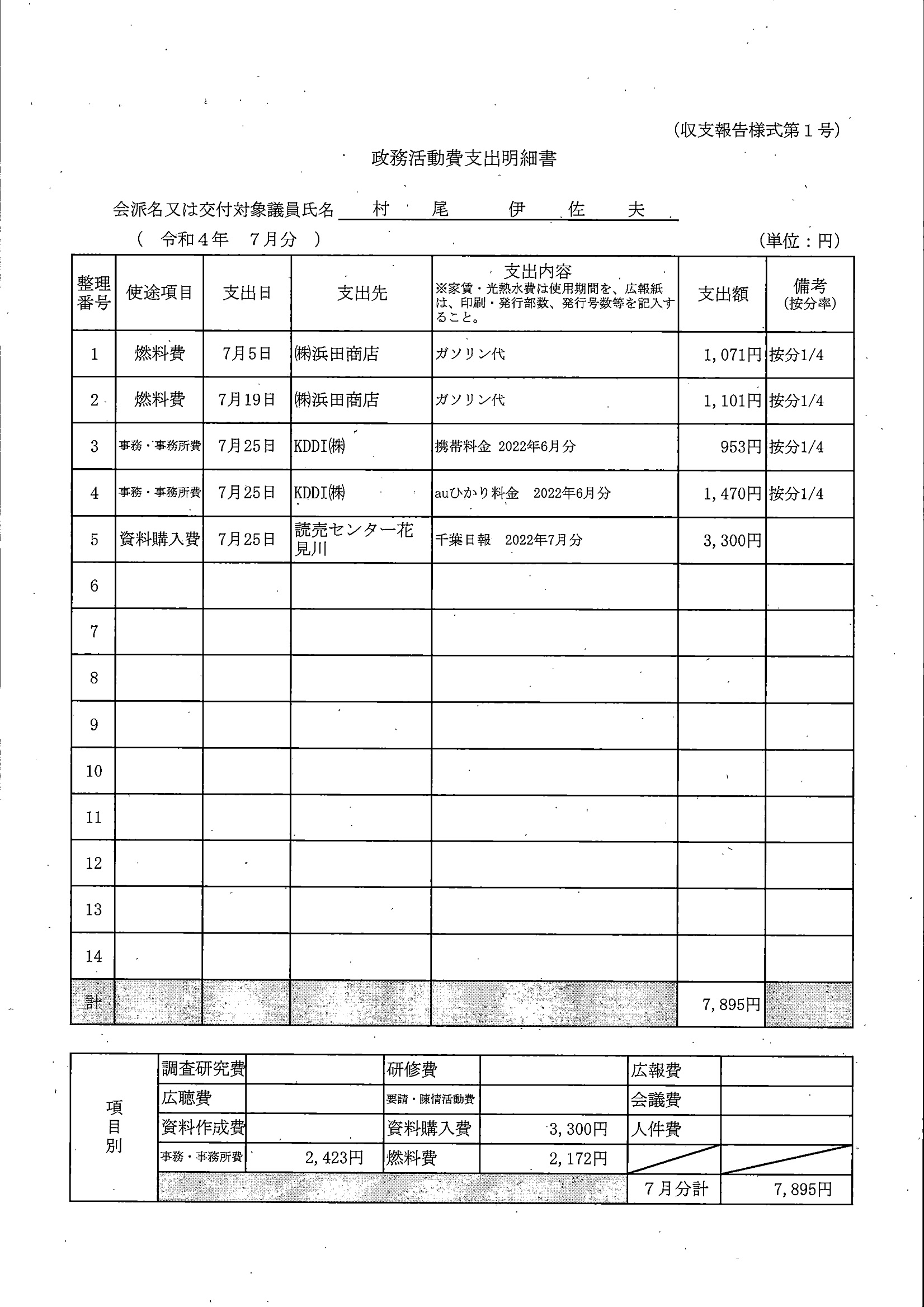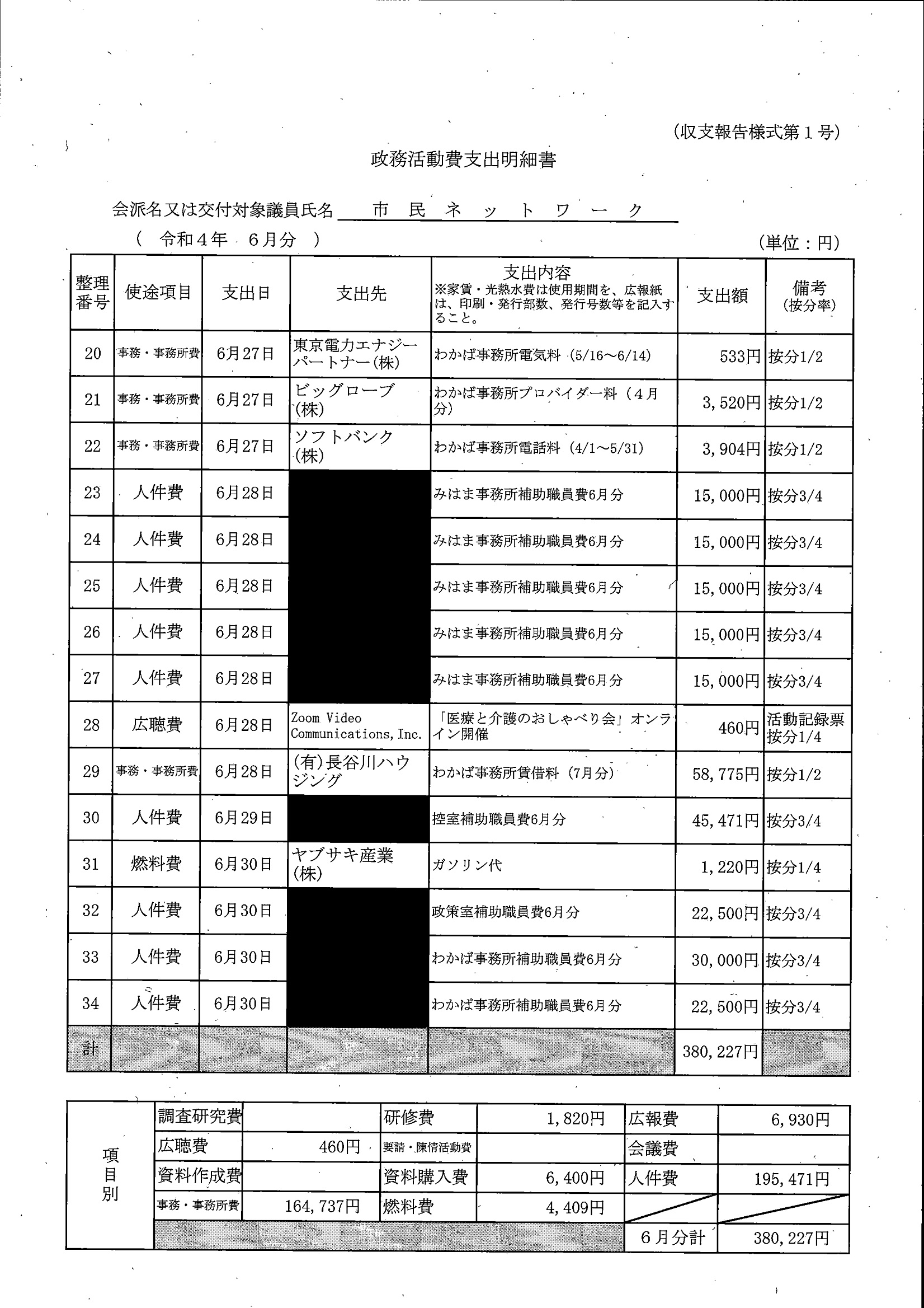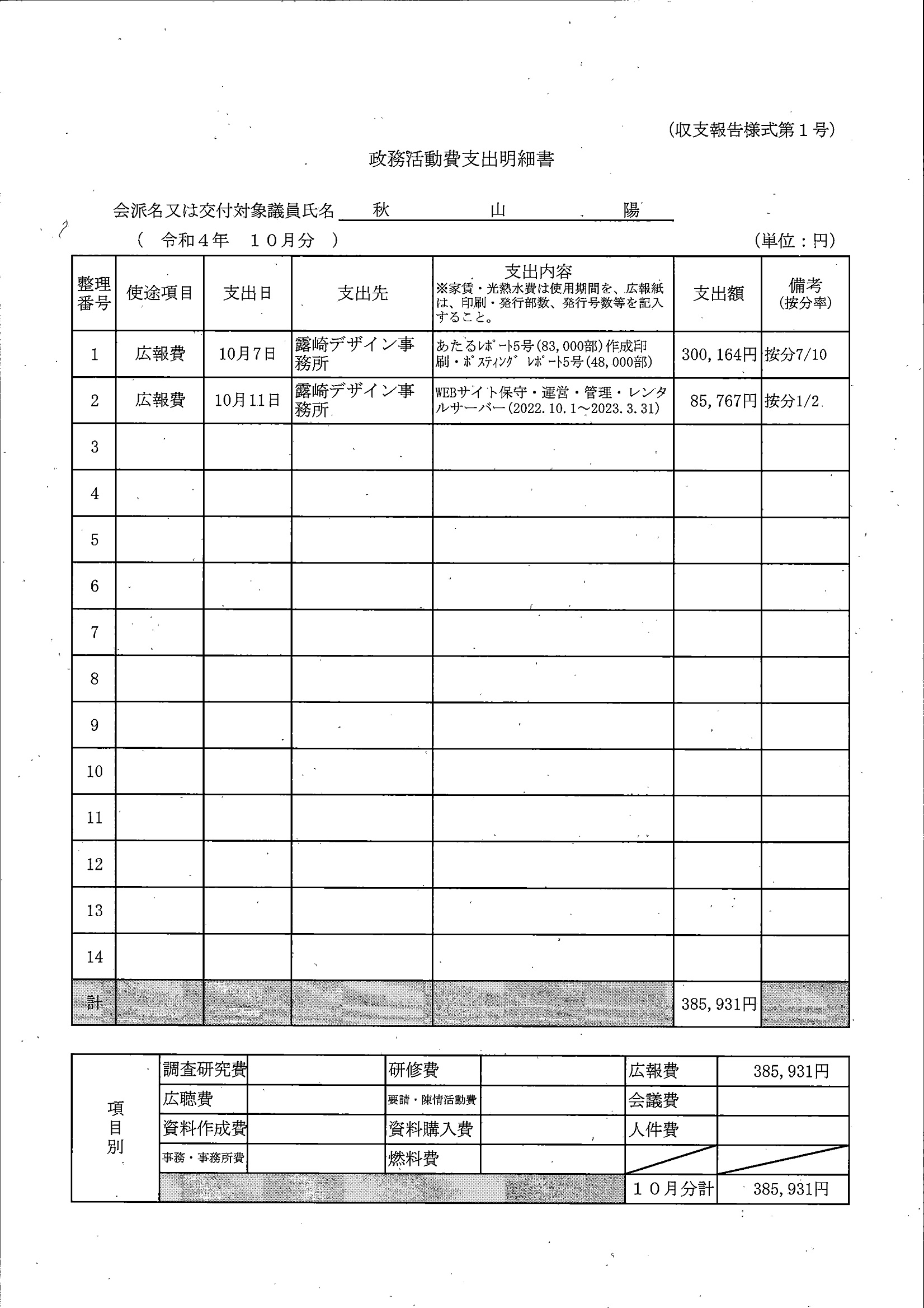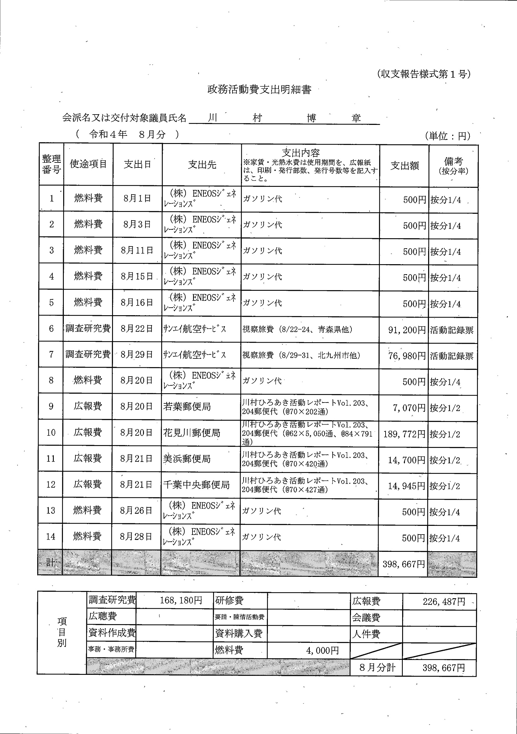 千葉市議会トップページ > 広報・情報公開 > 政務活動費 > 令和4年度交付分(政務活動費収支報告書)