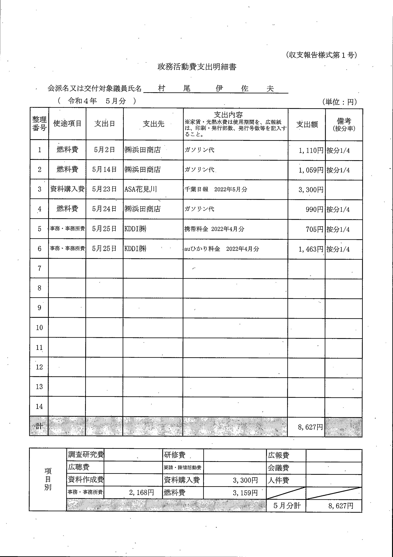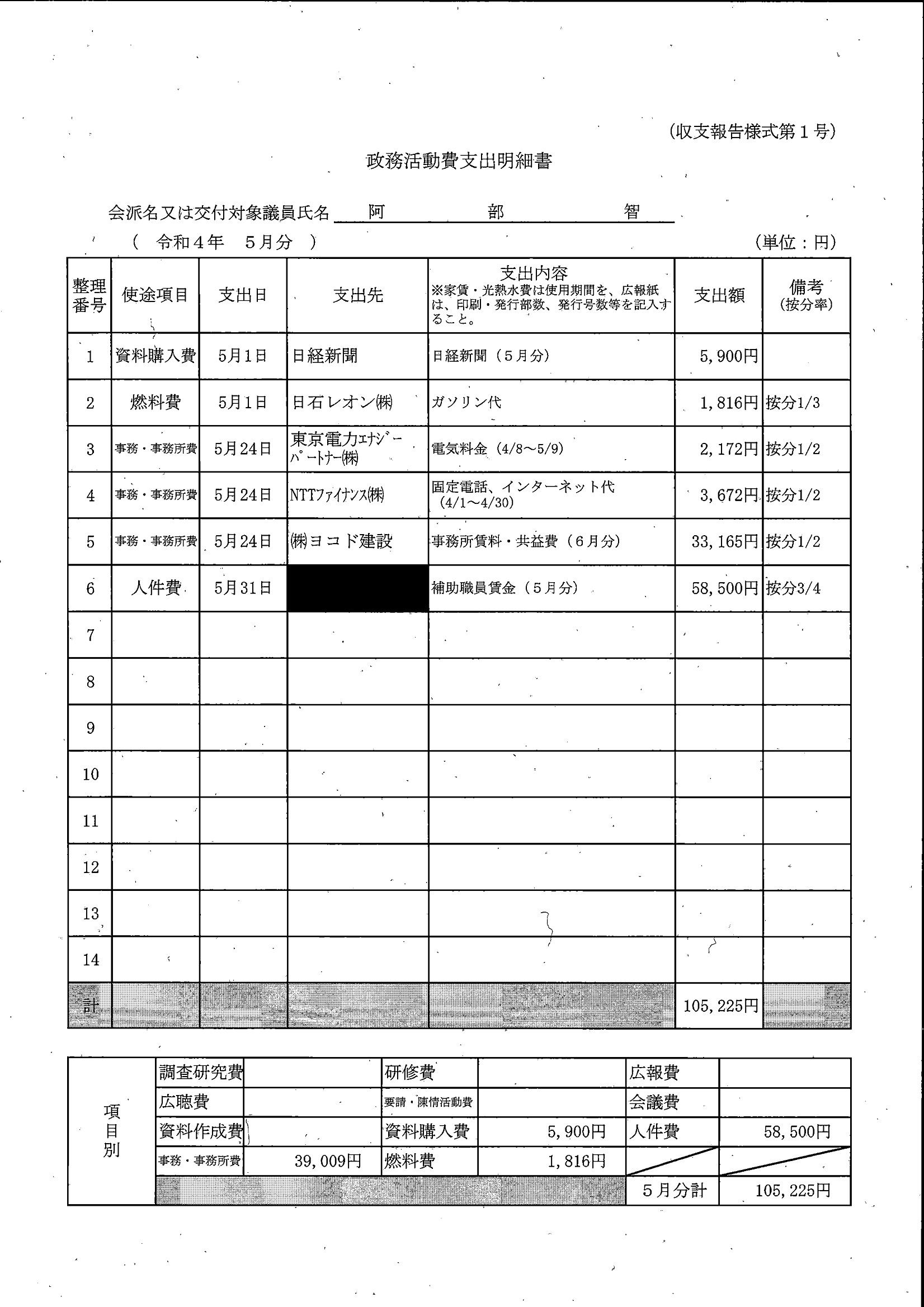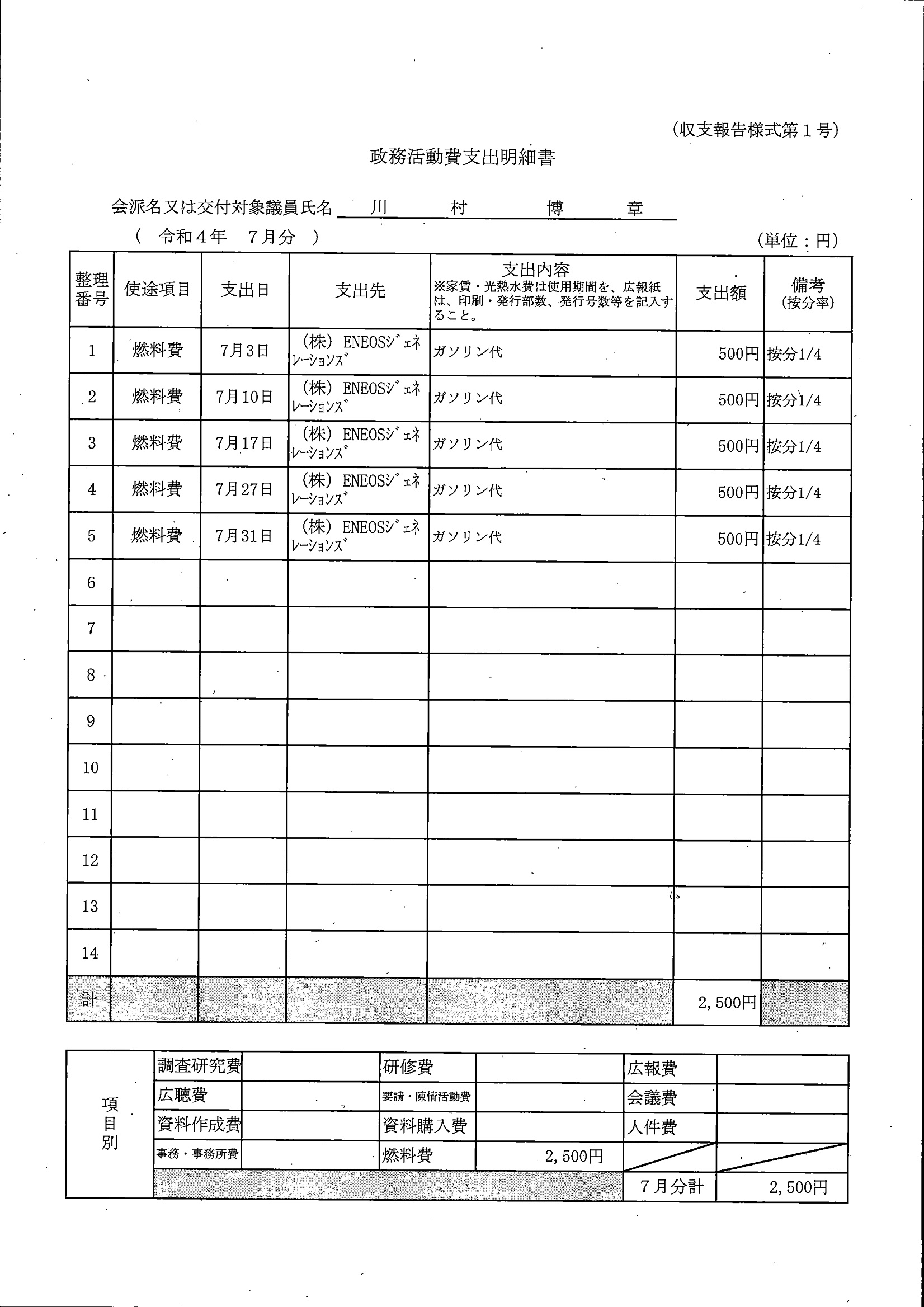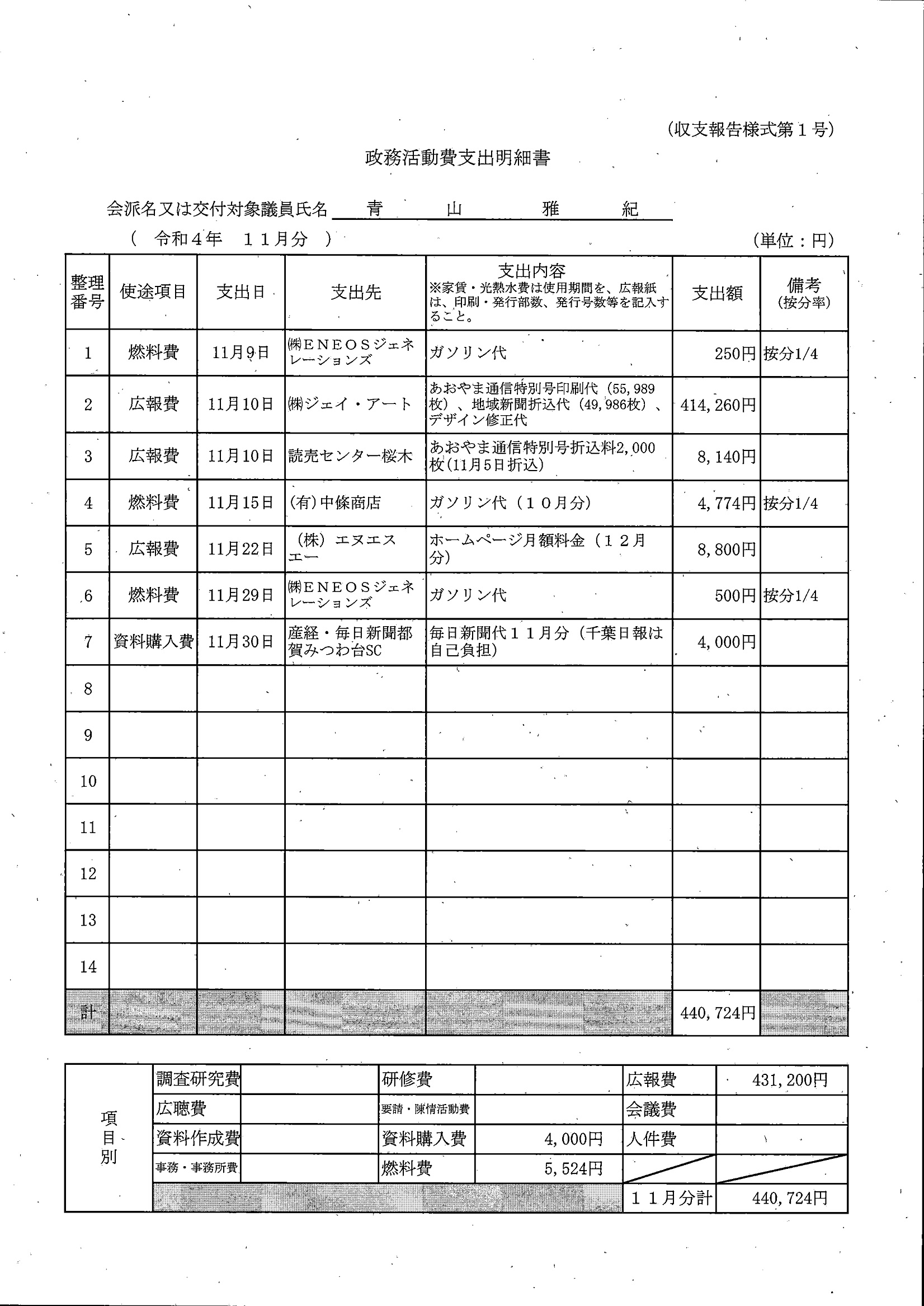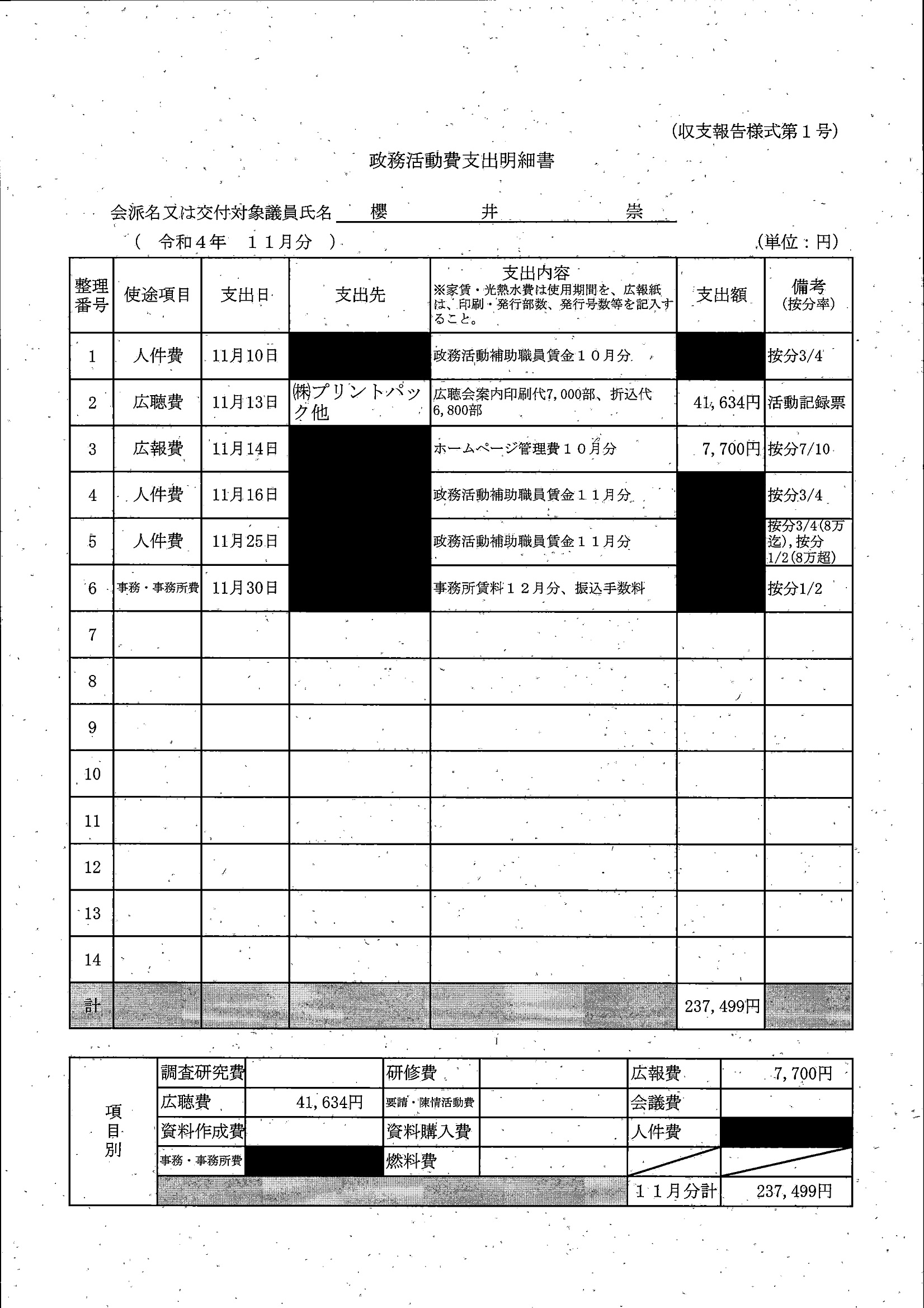千葉市議会トップページ > 広報・情報公開 > 政務活動費 > 令和4年度交付分(政務活動費収支報告書)