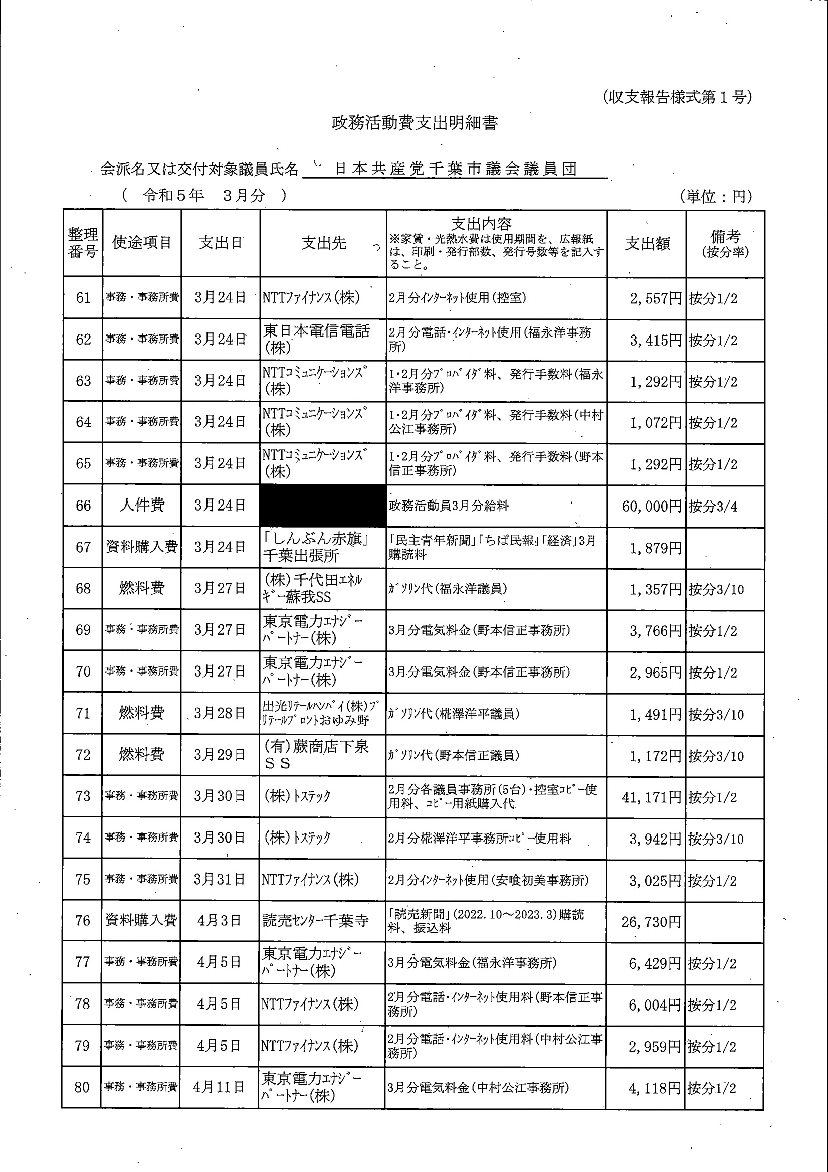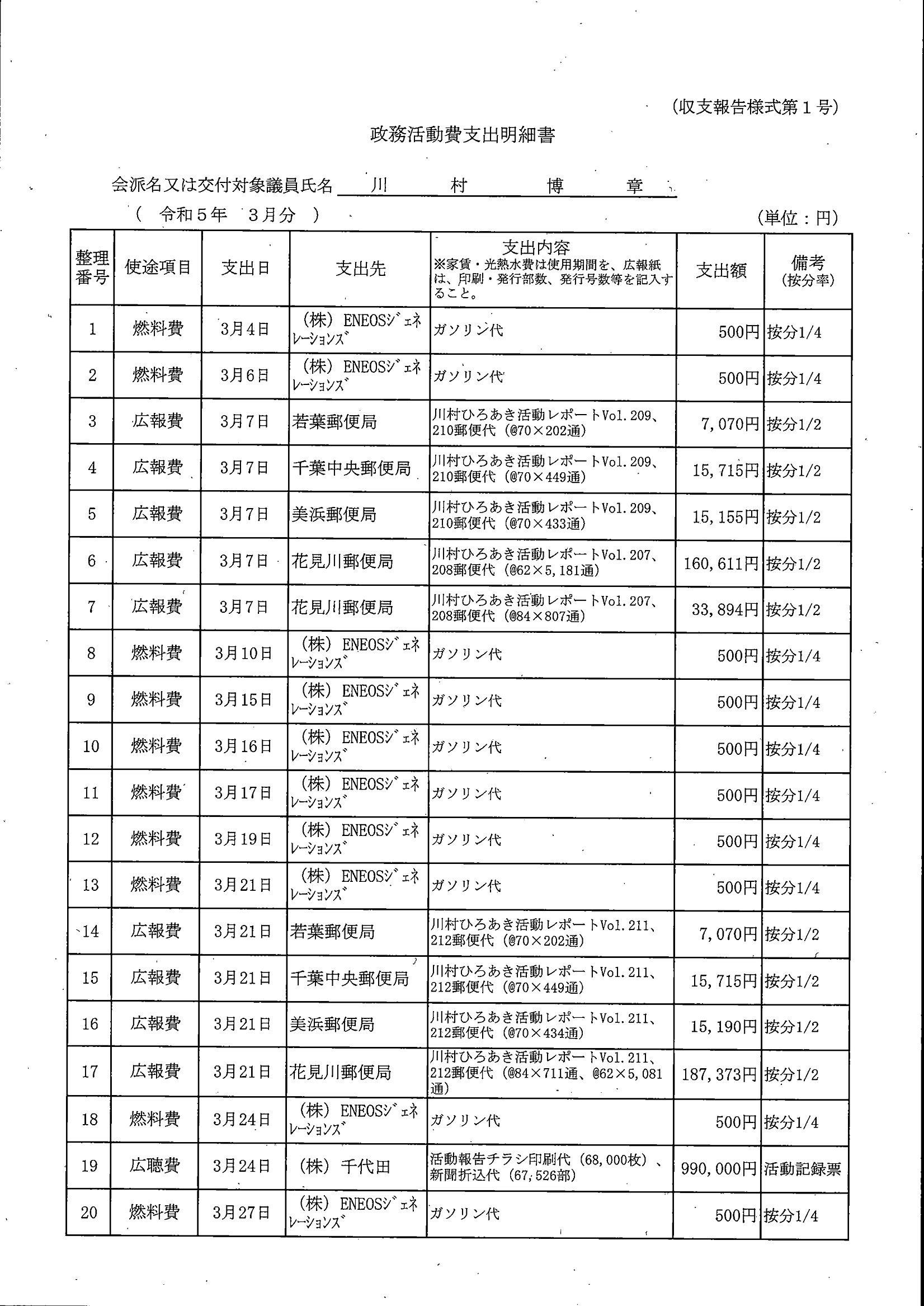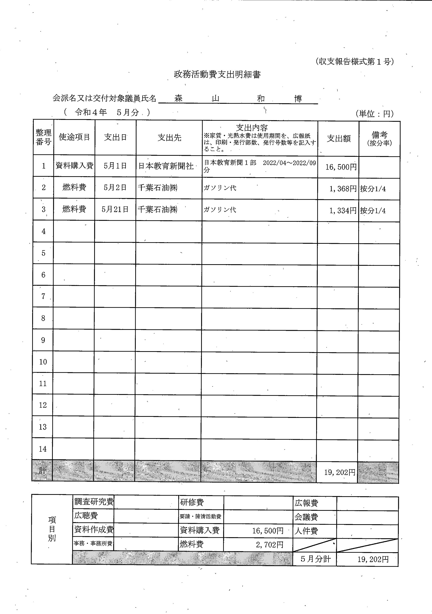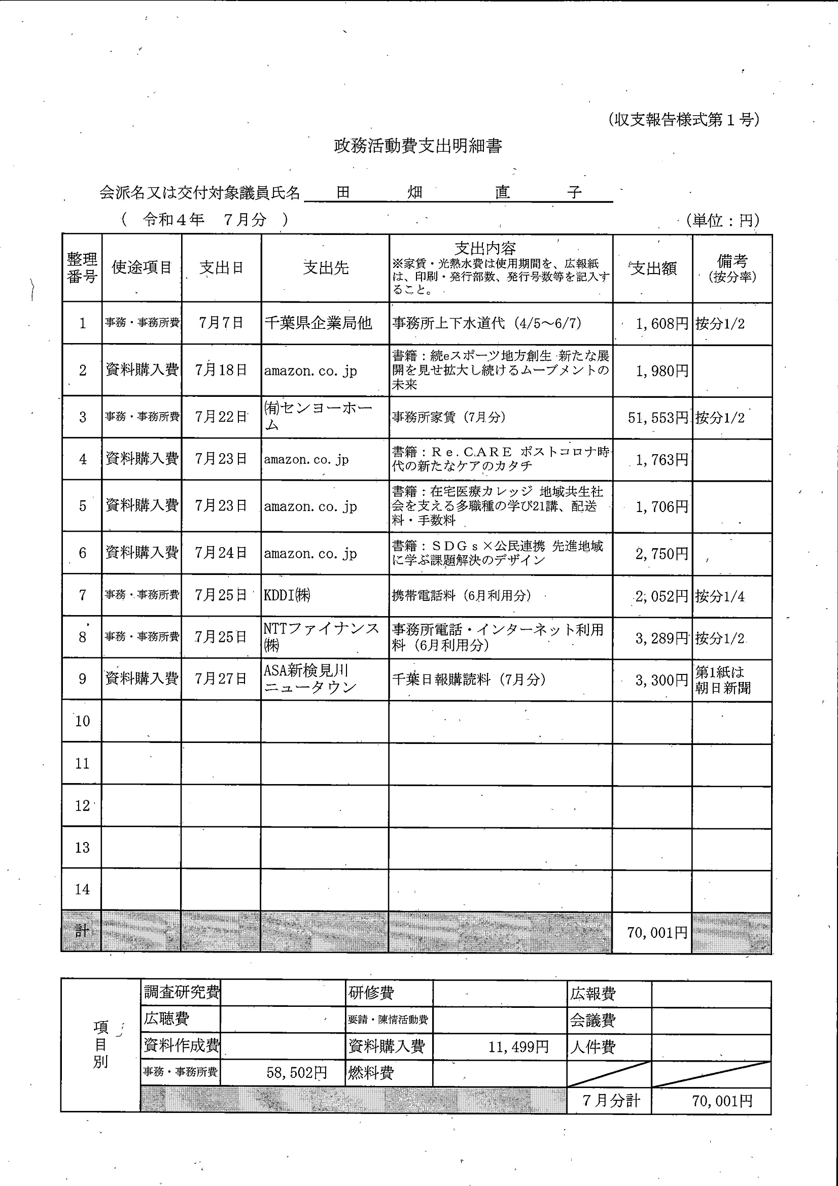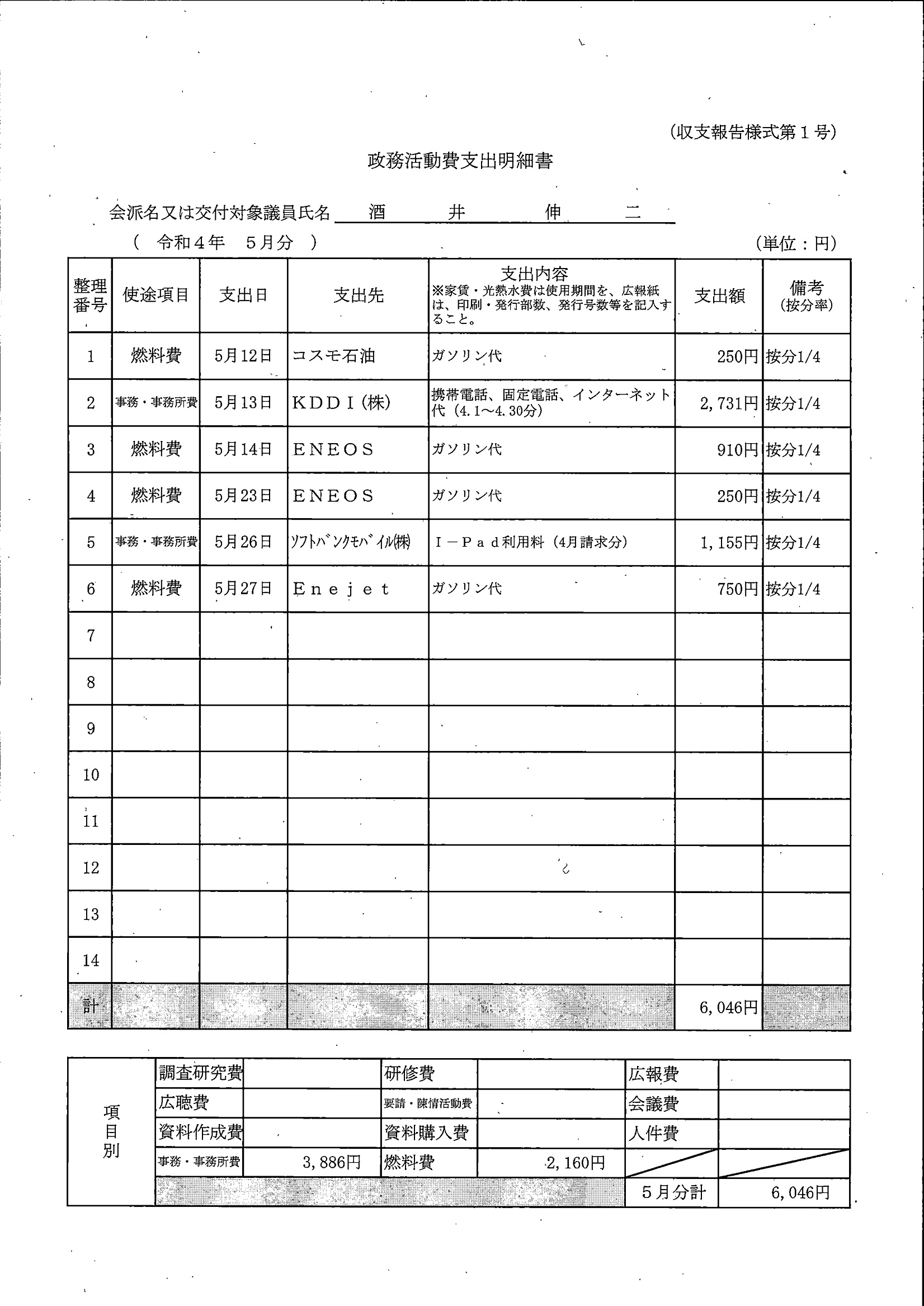 千葉市議会トップページ > 広報・情報公開 > 政務活動費 > 令和4年度交付分(政務活動費収支報告書)