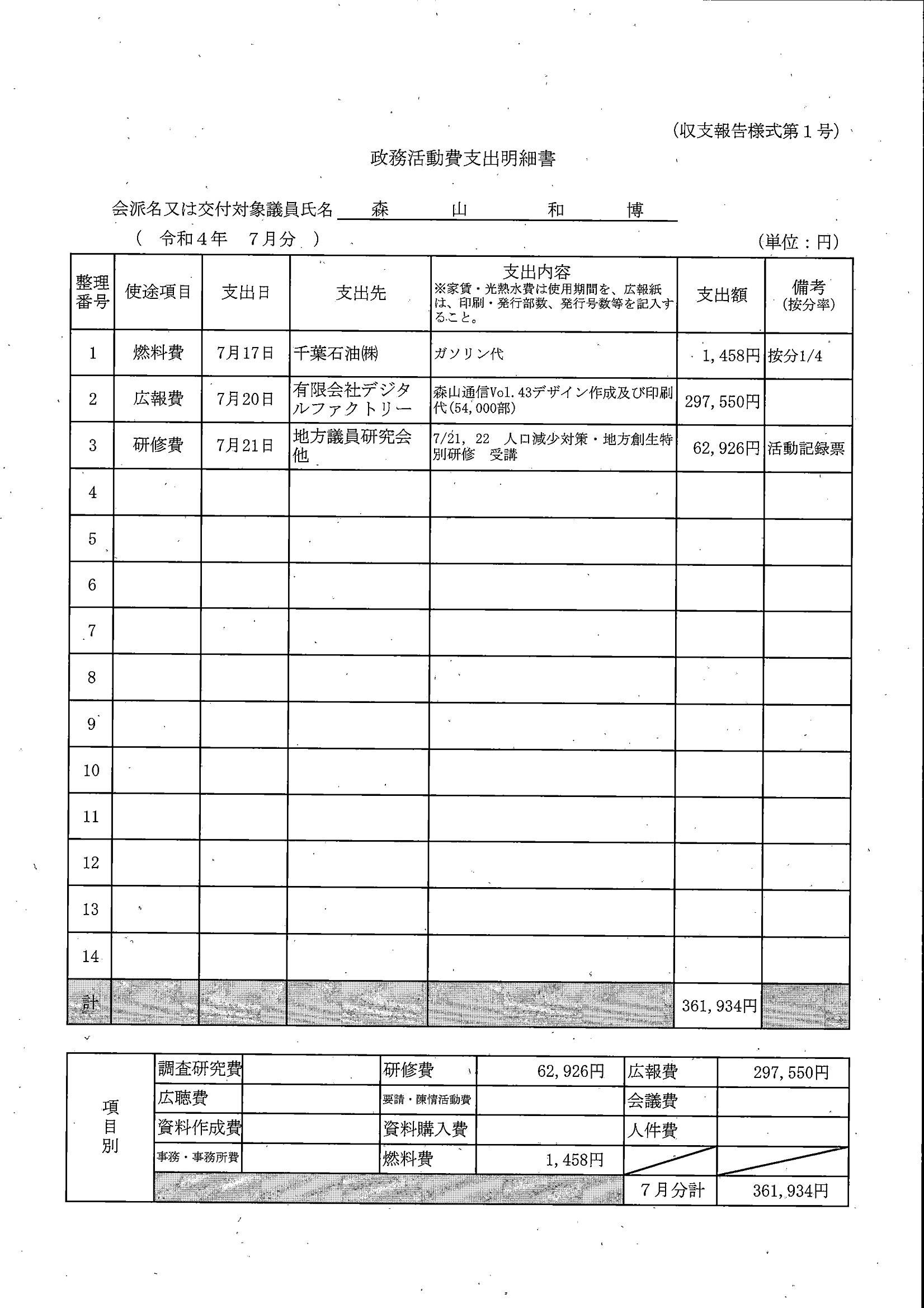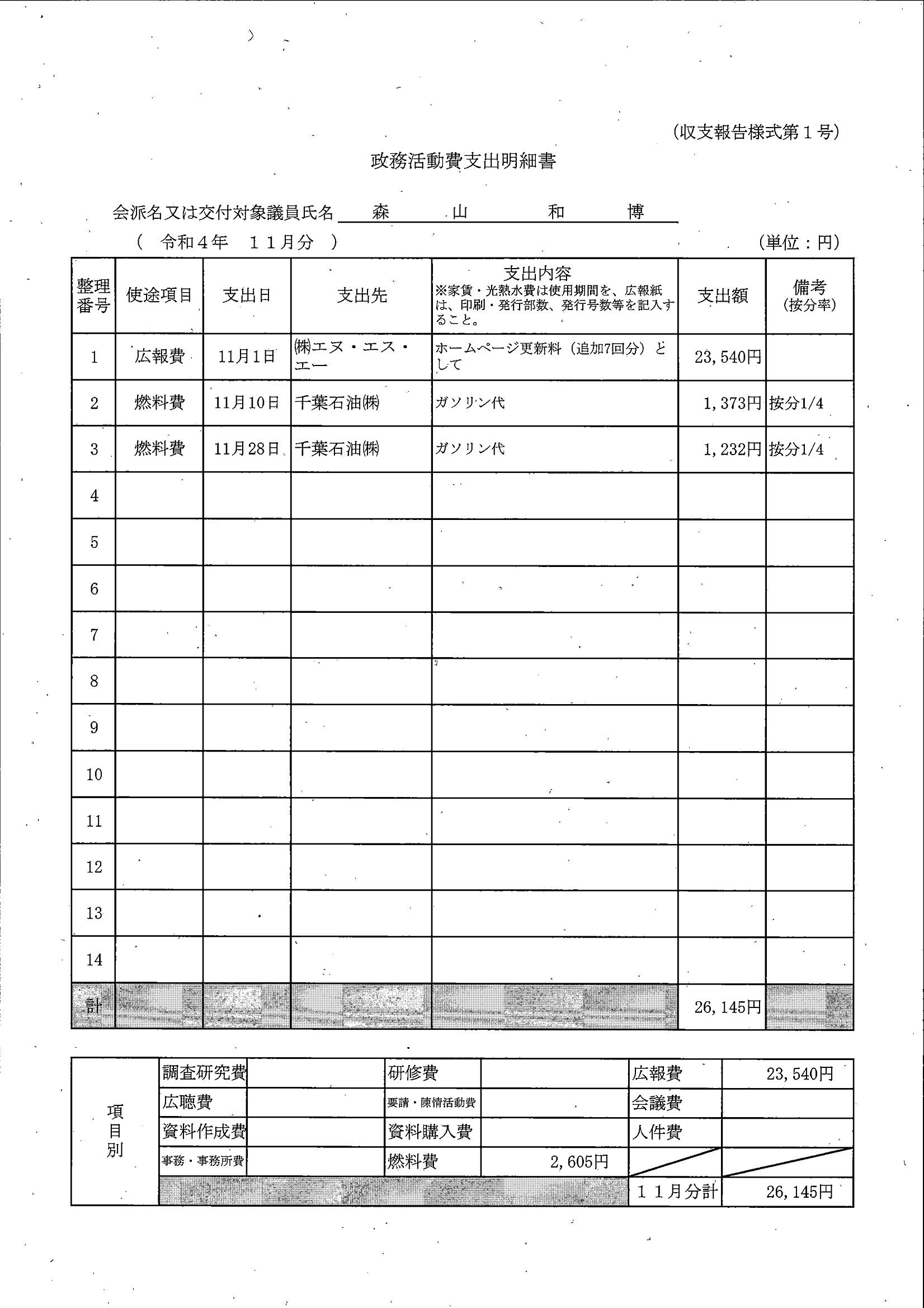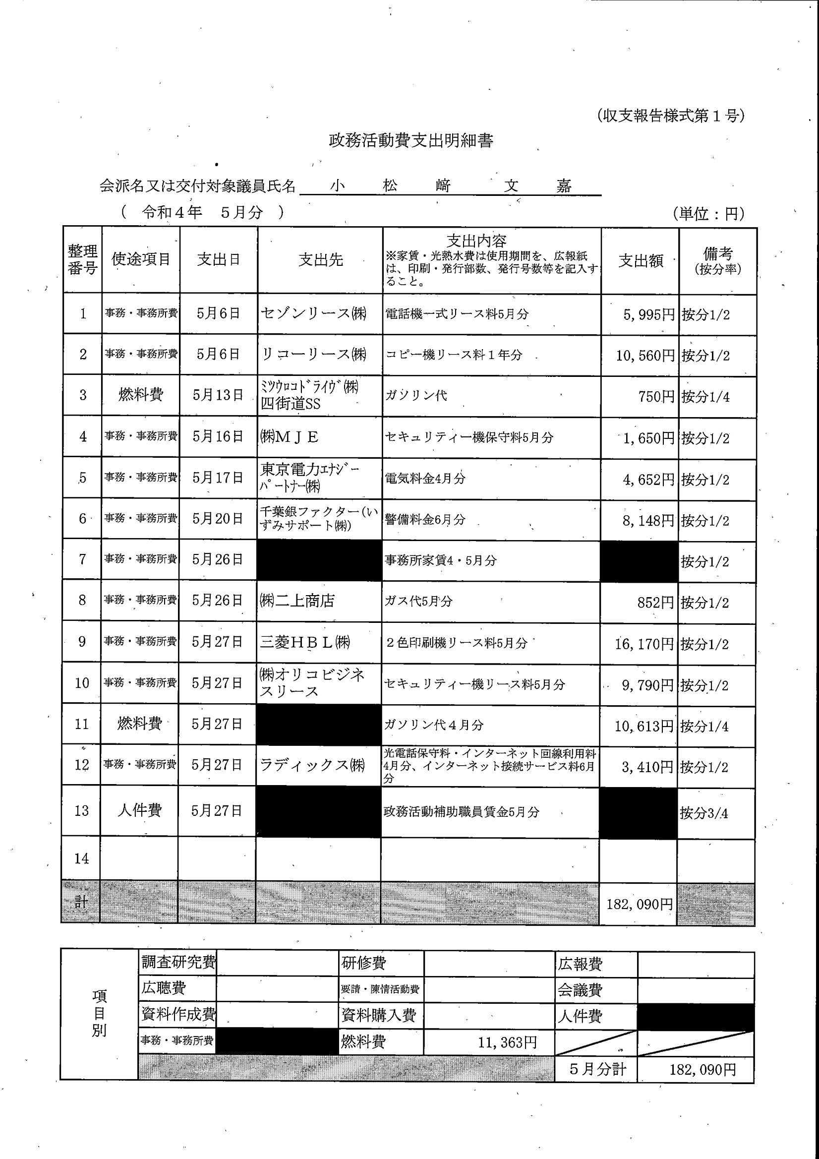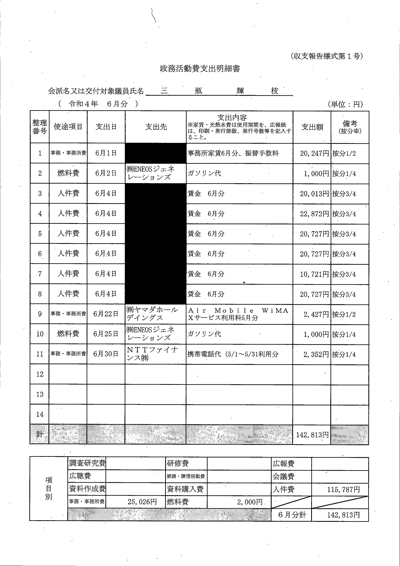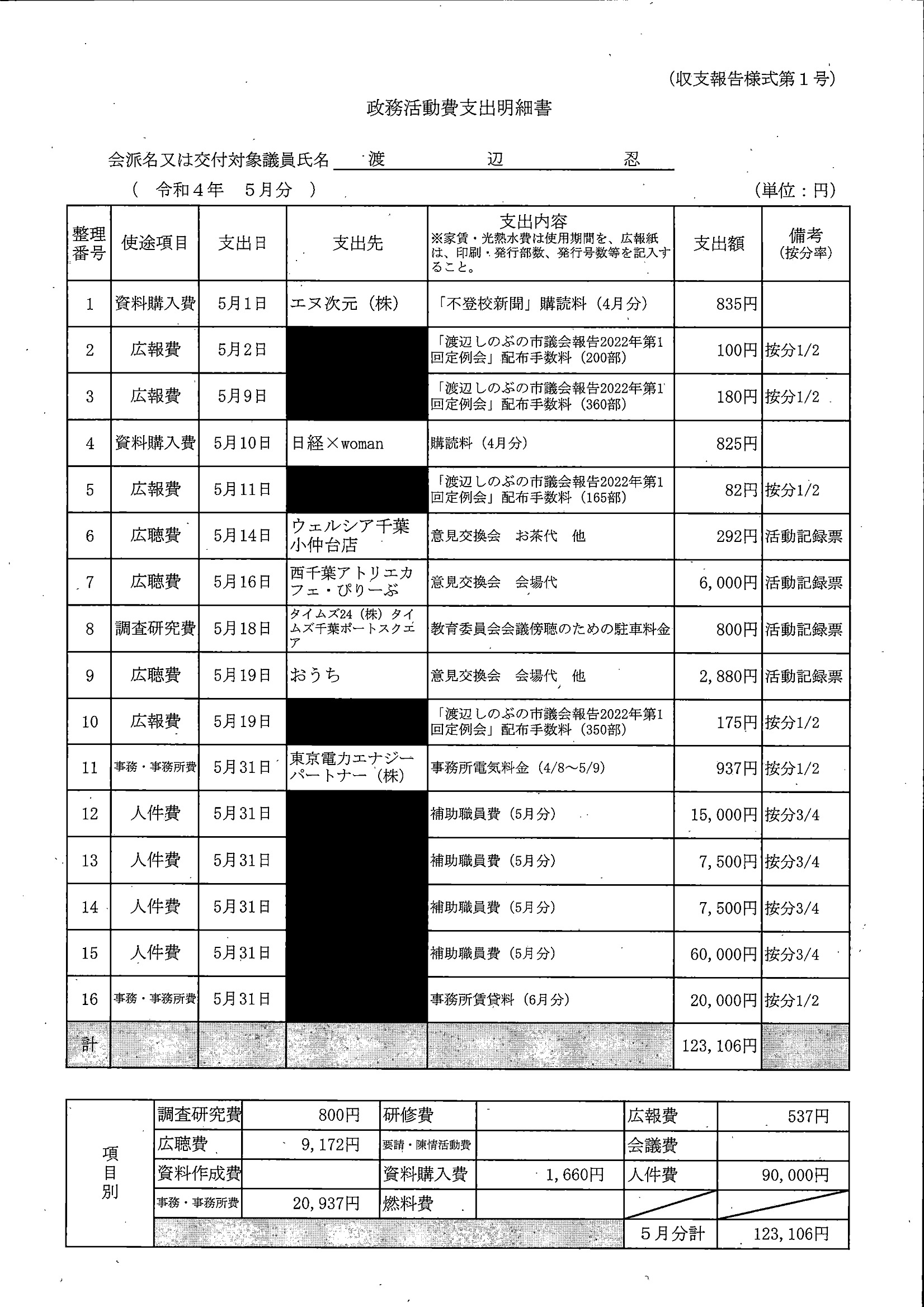 千葉市議会トップページ > 広報・情報公開 > 政務活動費 > 令和4年度交付分(政務活動費収支報告書)