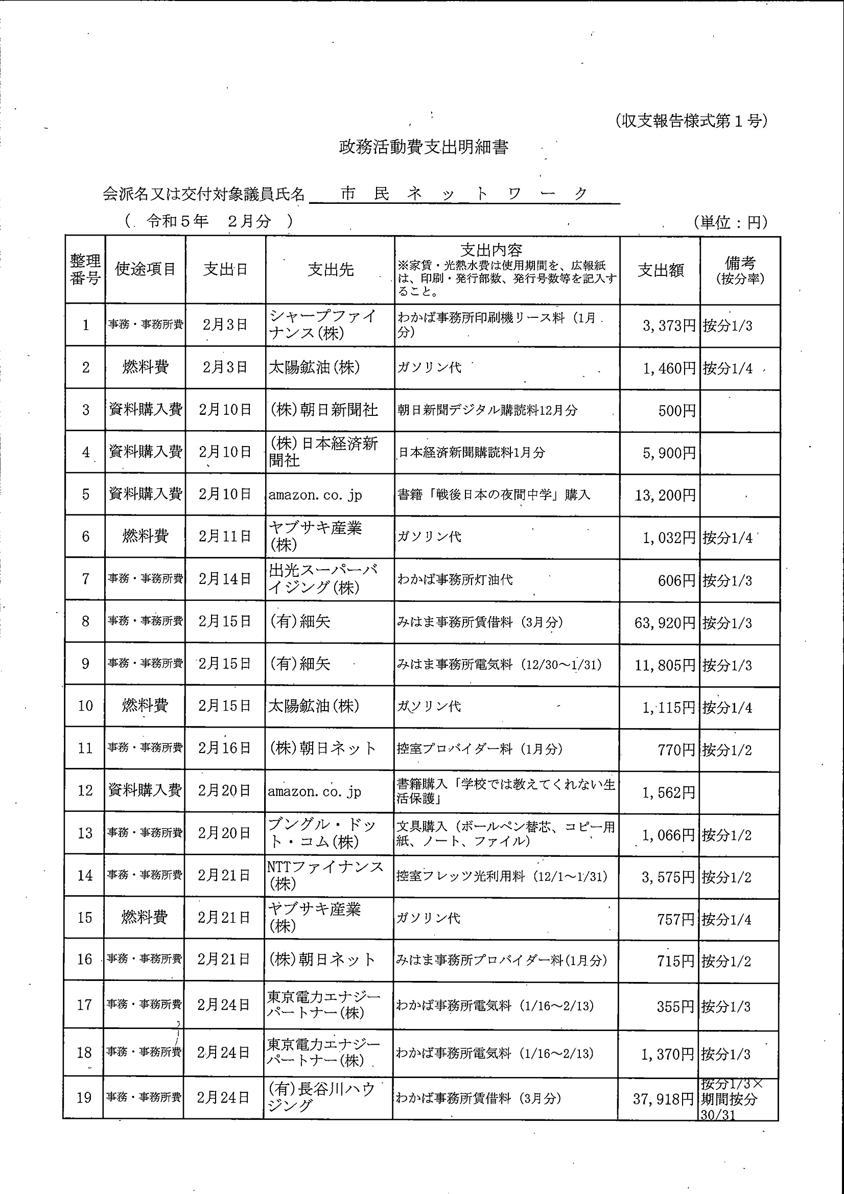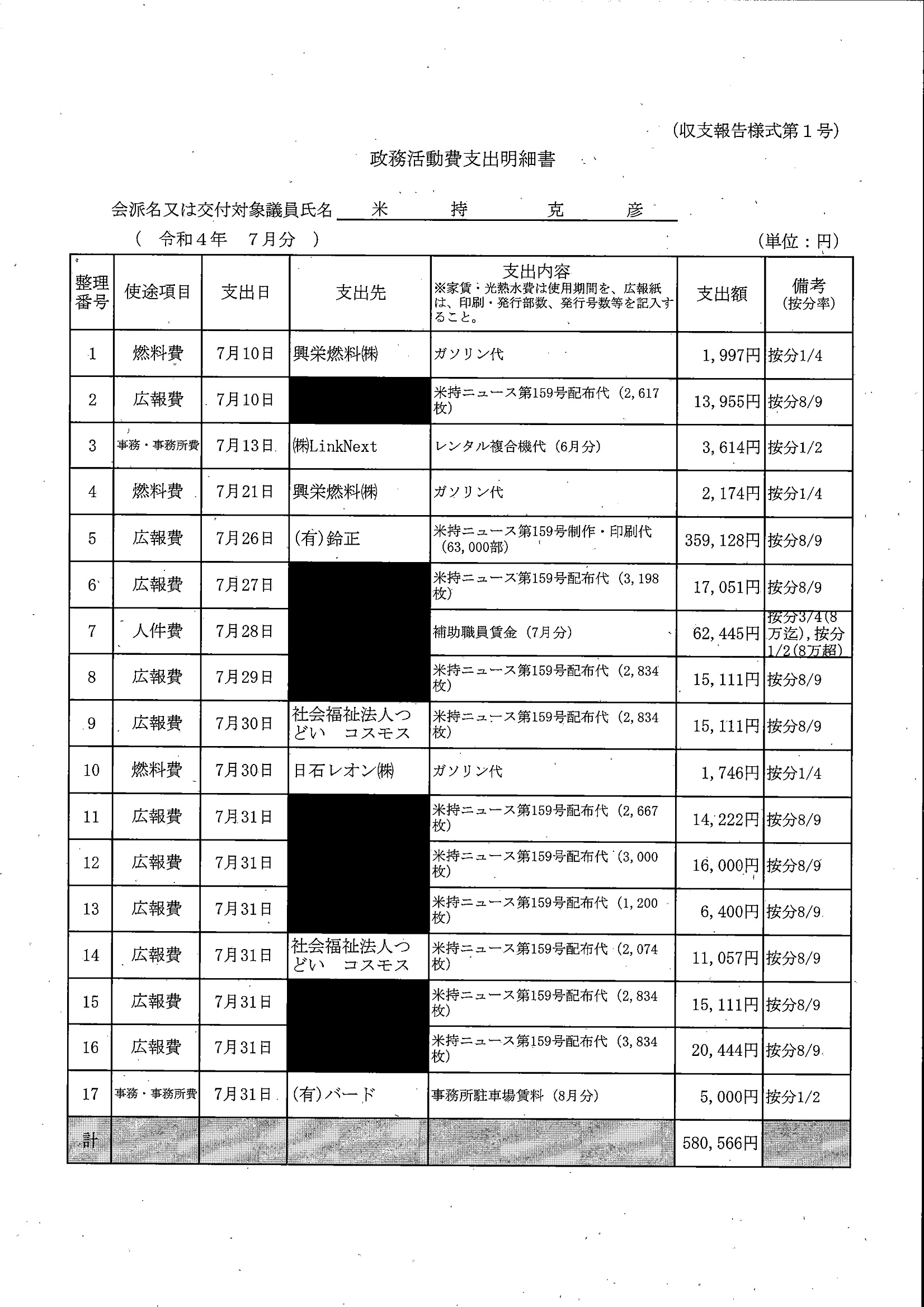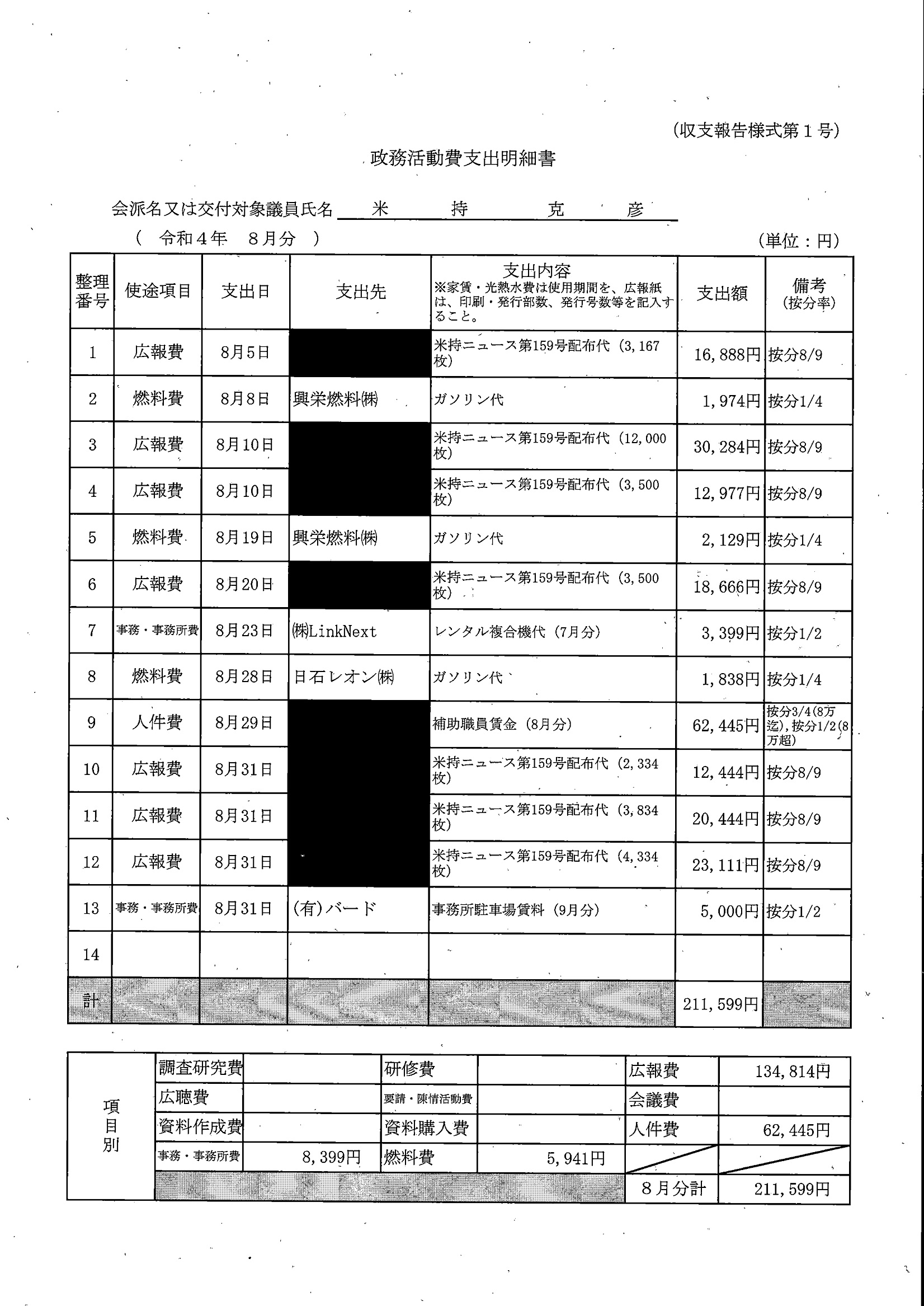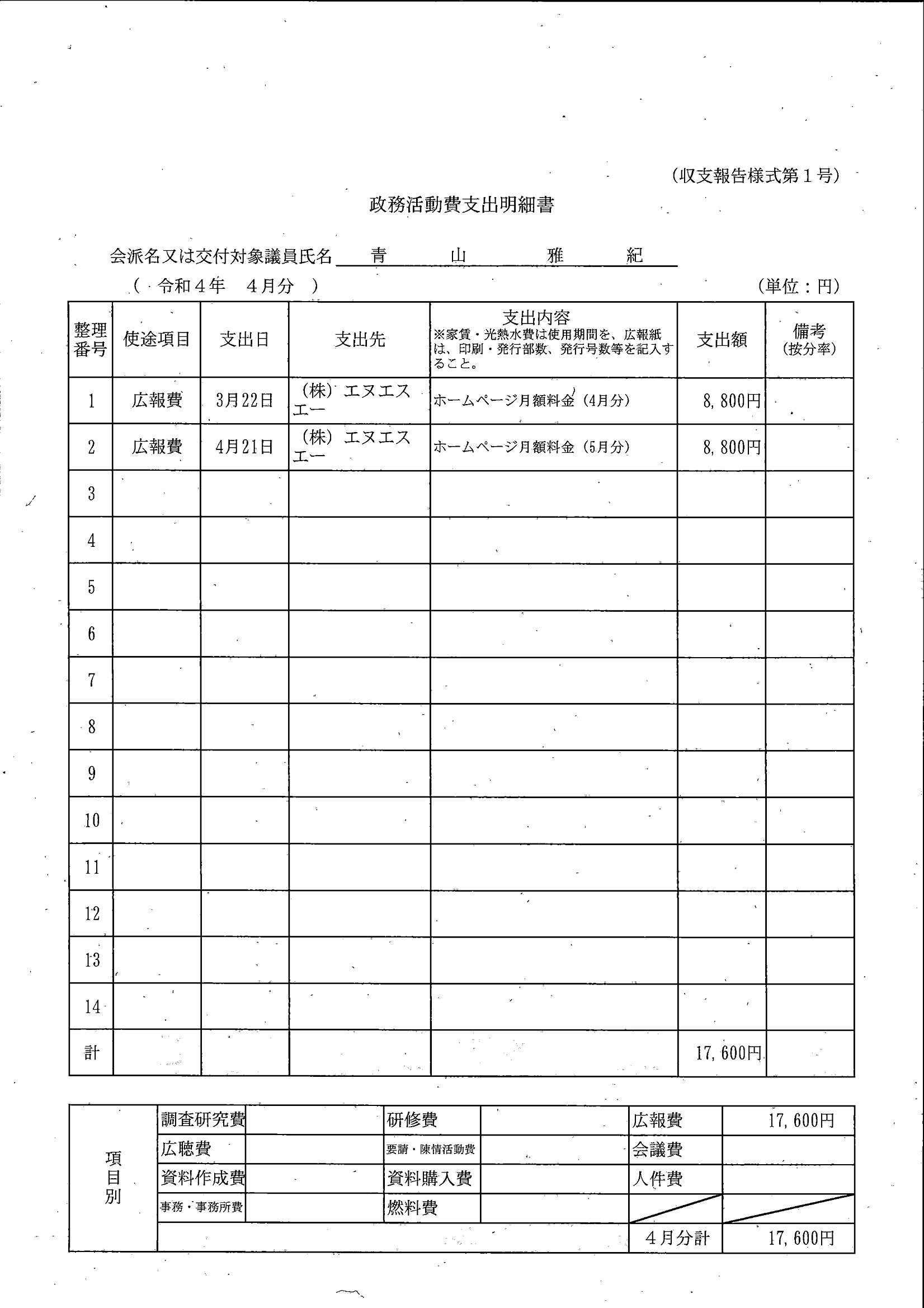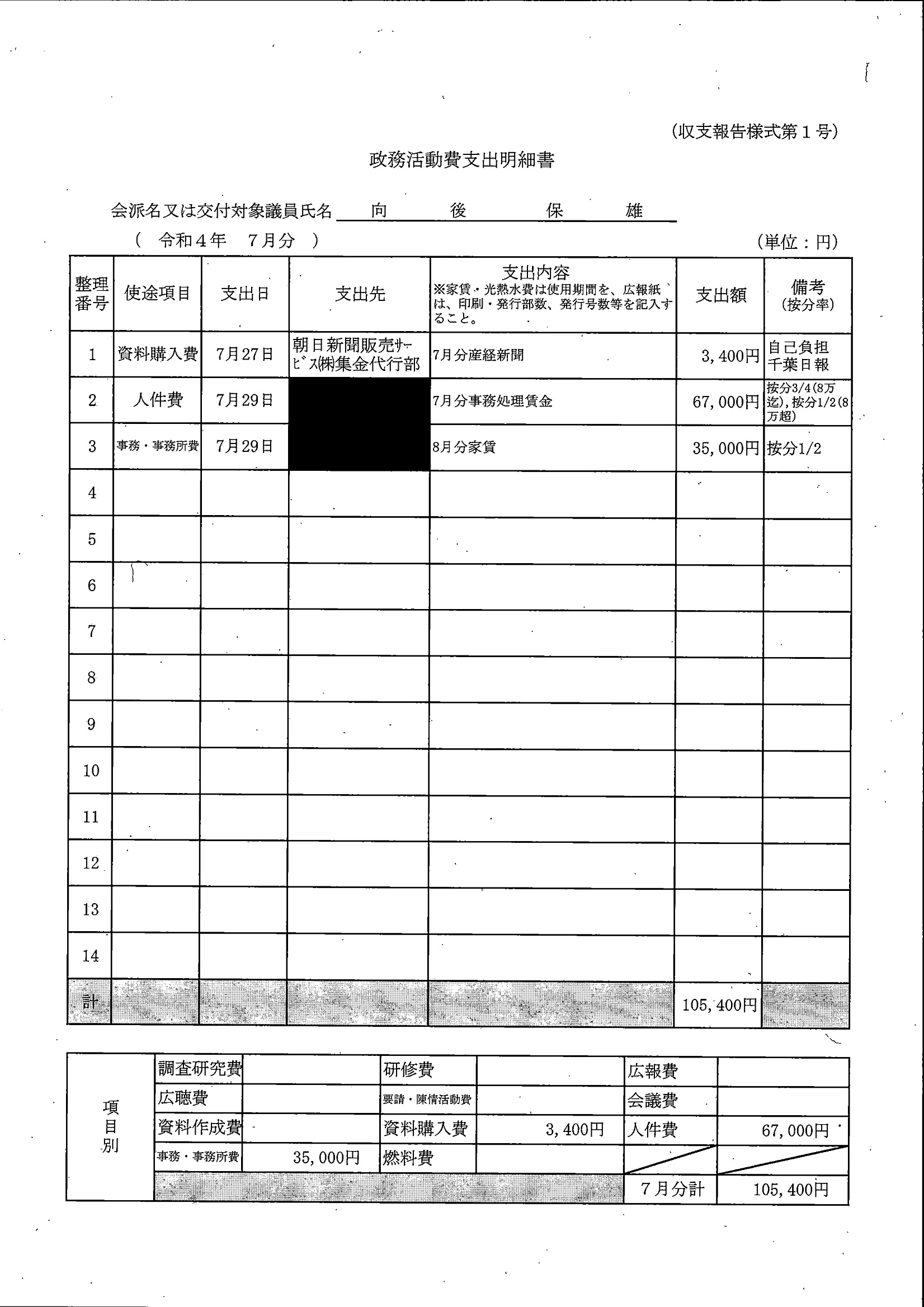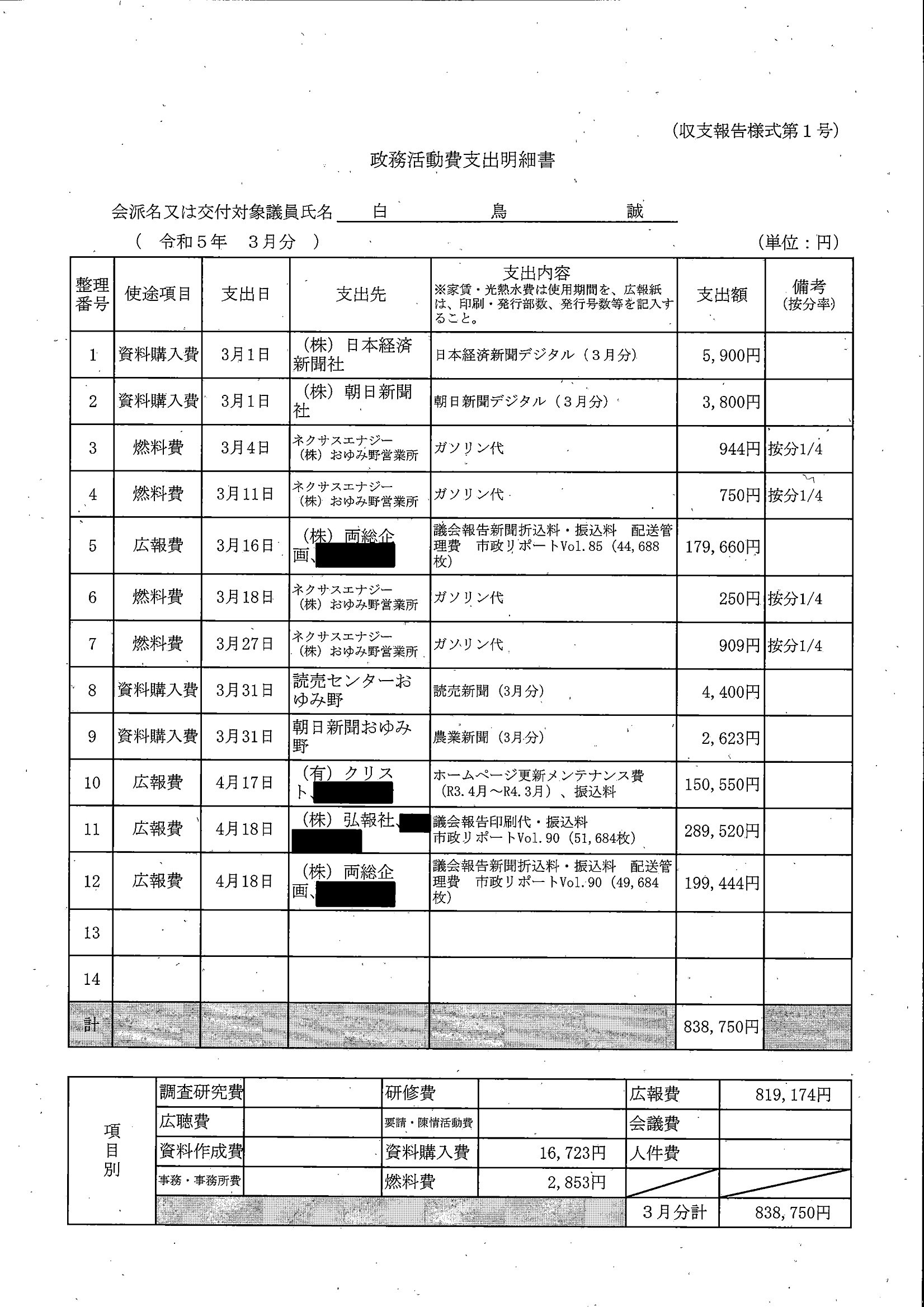 千葉市議会トップページ > 広報・情報公開 > 政務活動費 > 令和4年度交付分(政務活動費収支報告書)