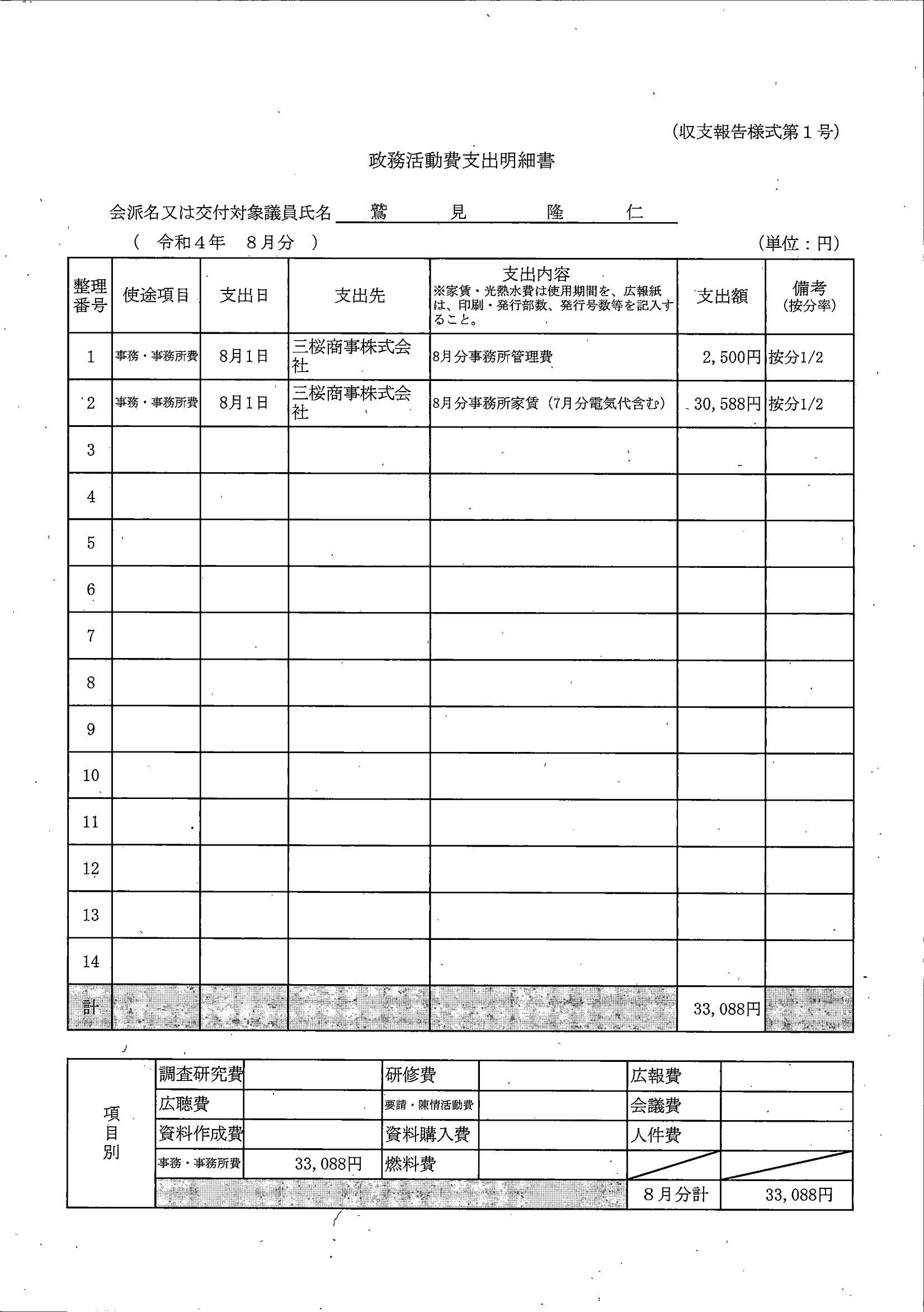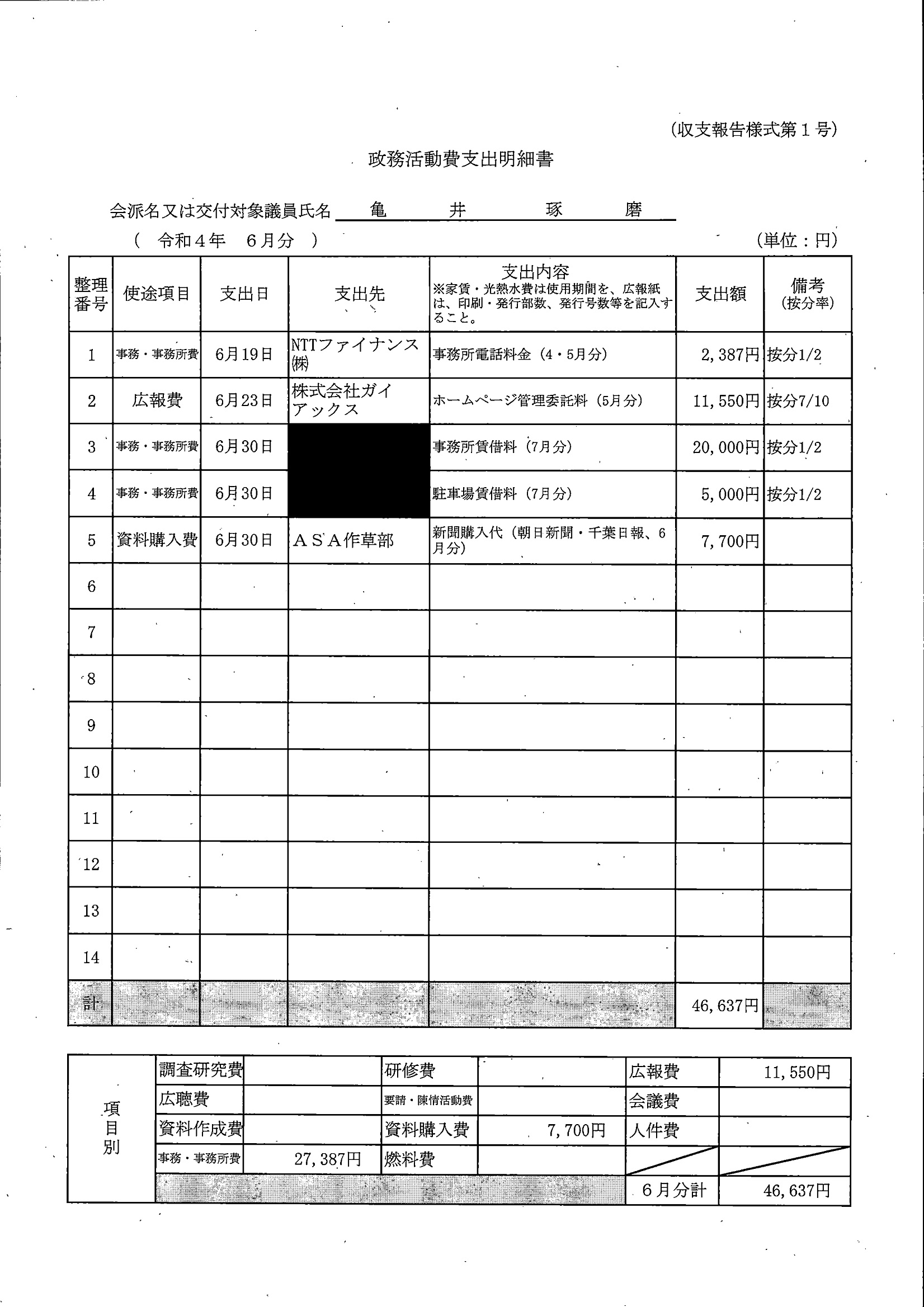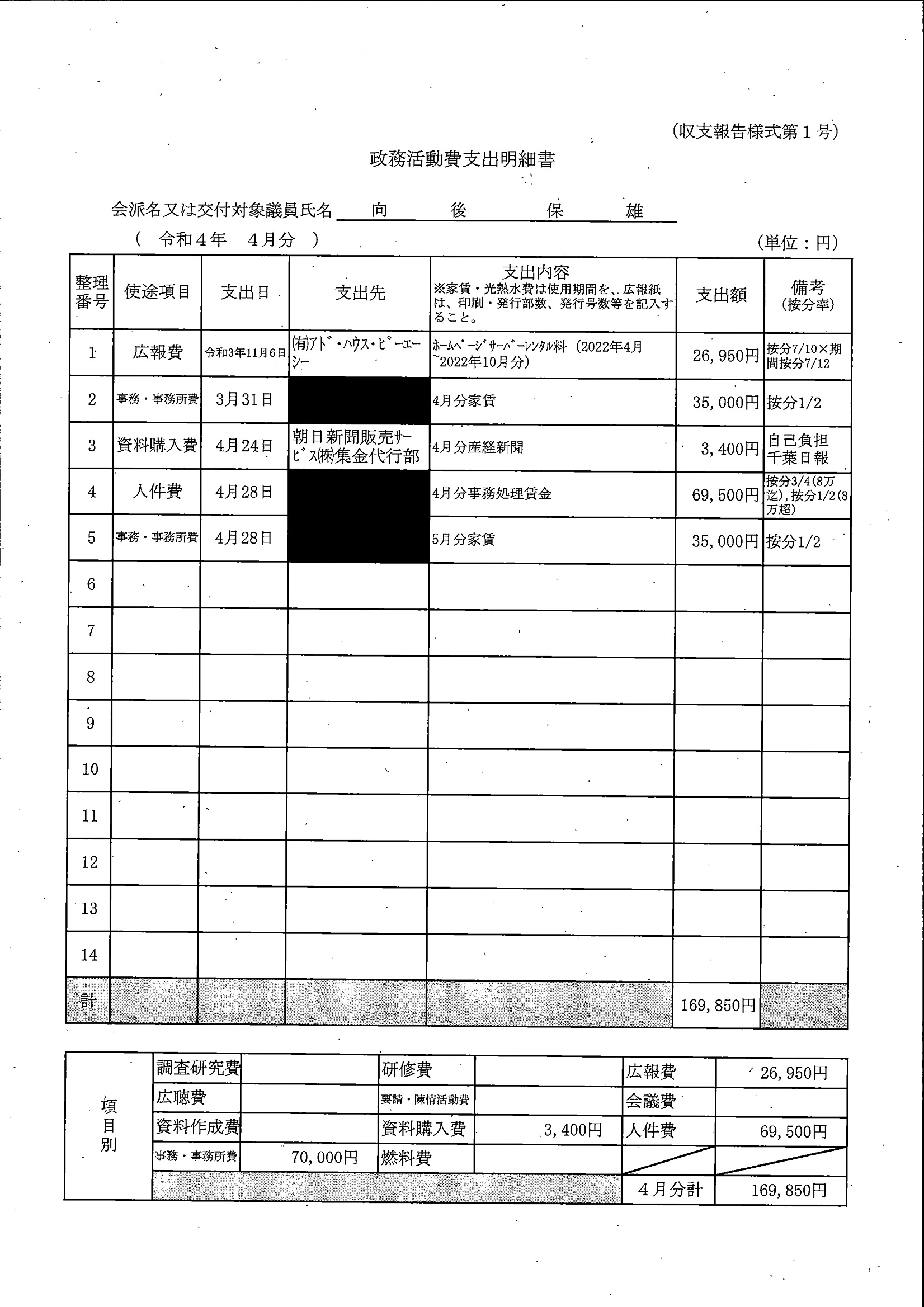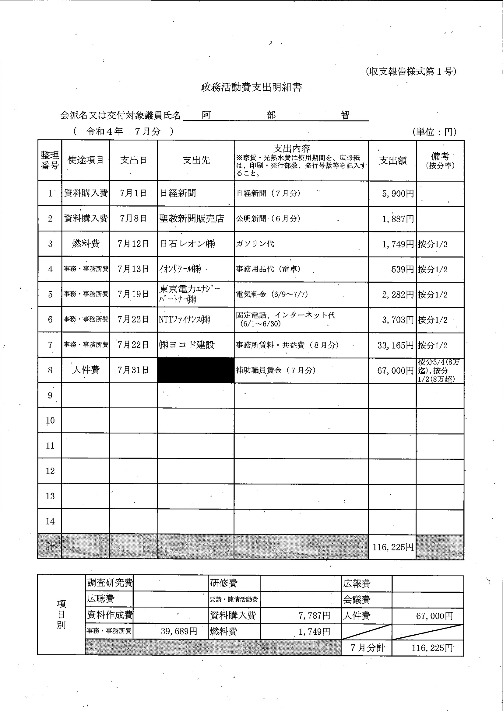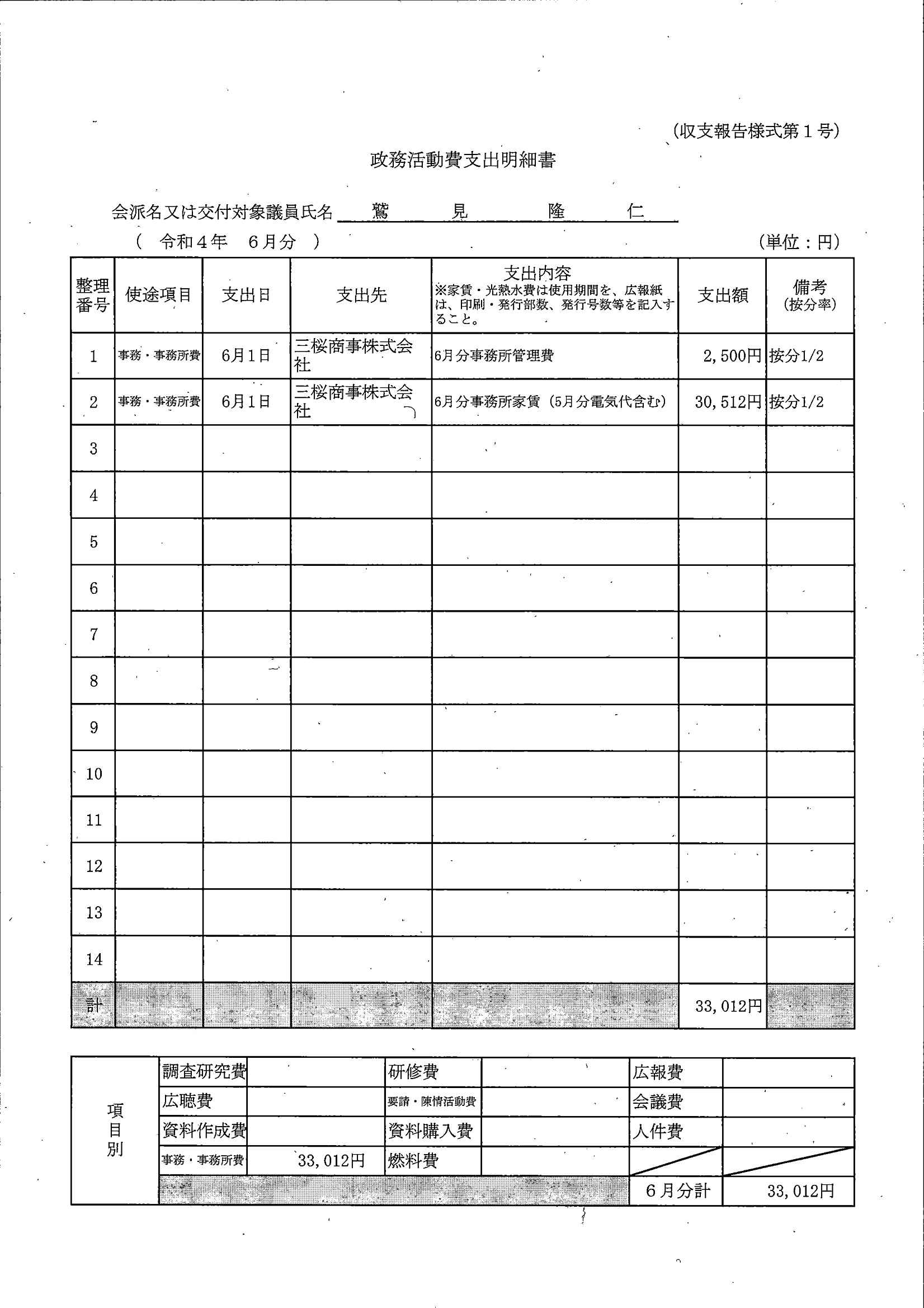 千葉市議会トップページ > 広報・情報公開 > 政務活動費 > 令和4年度交付分(政務活動費収支報告書)