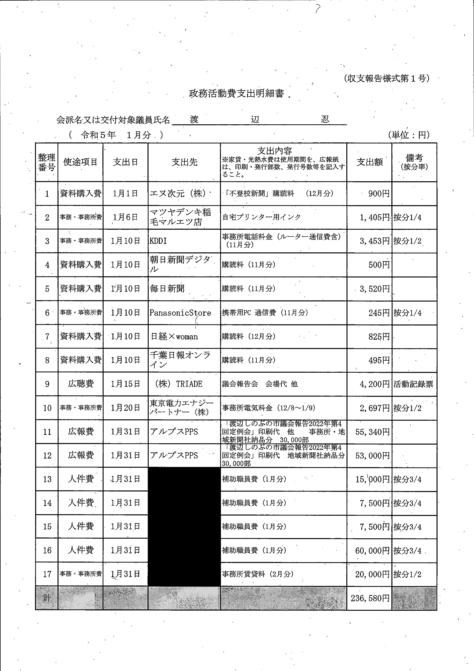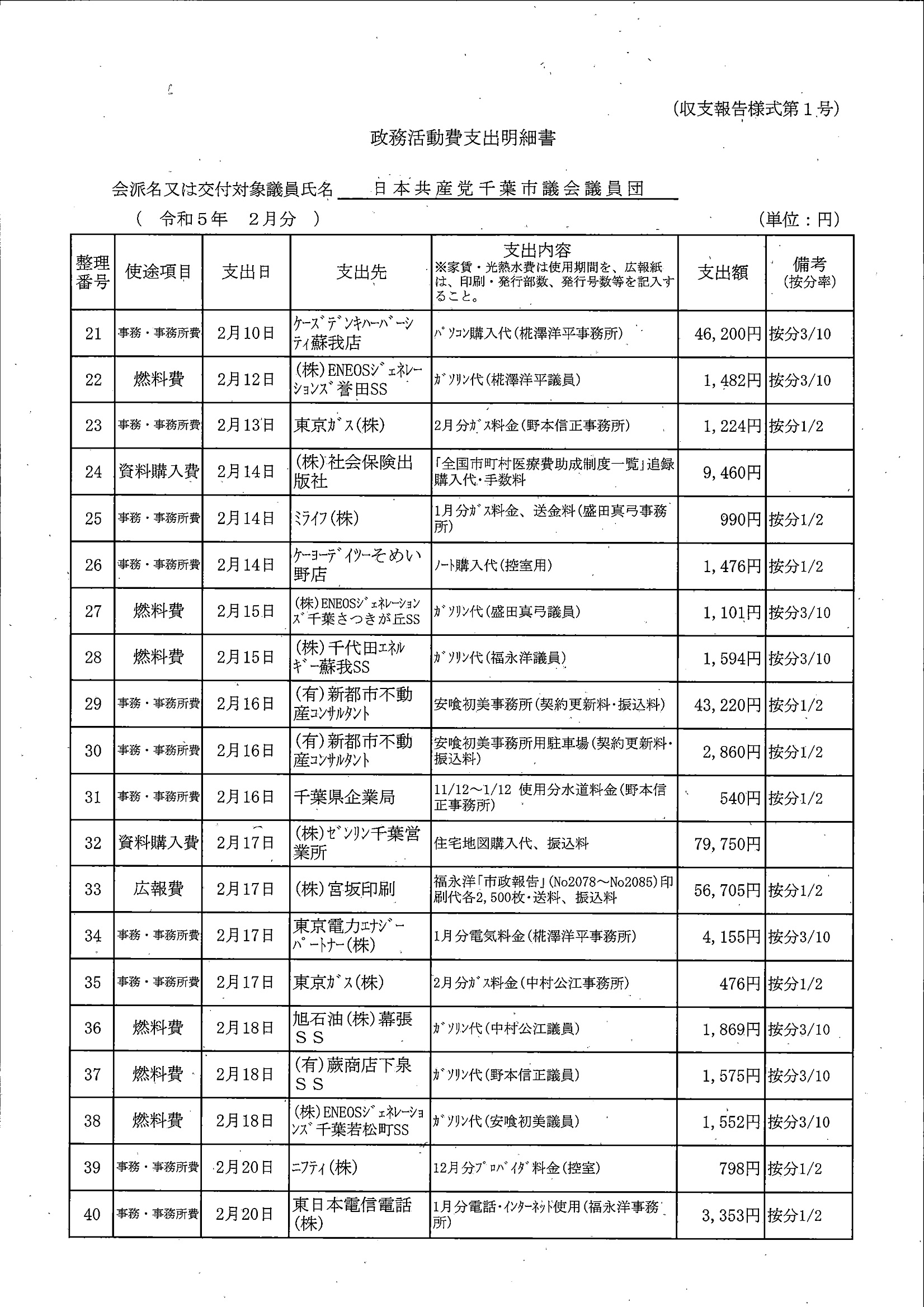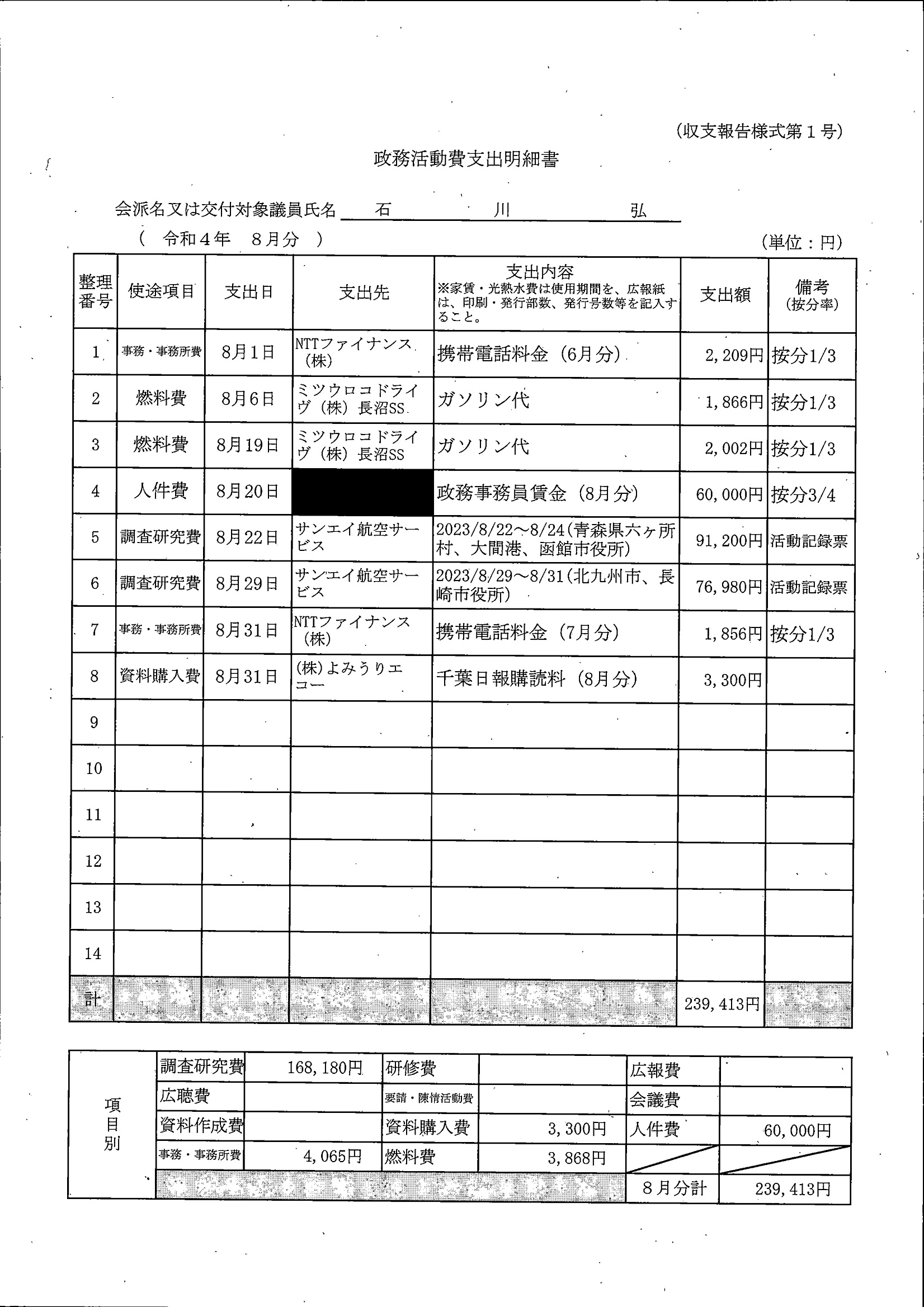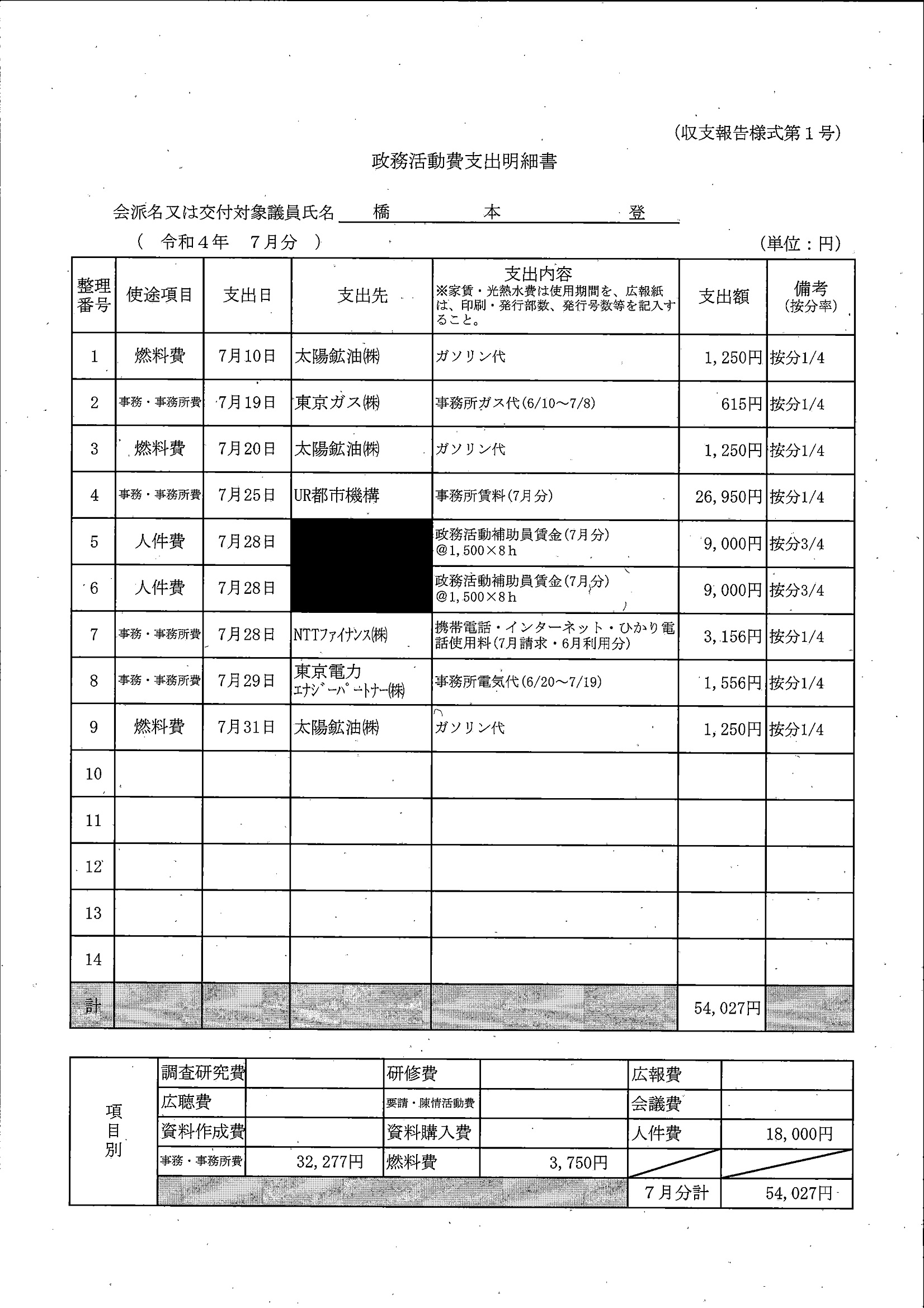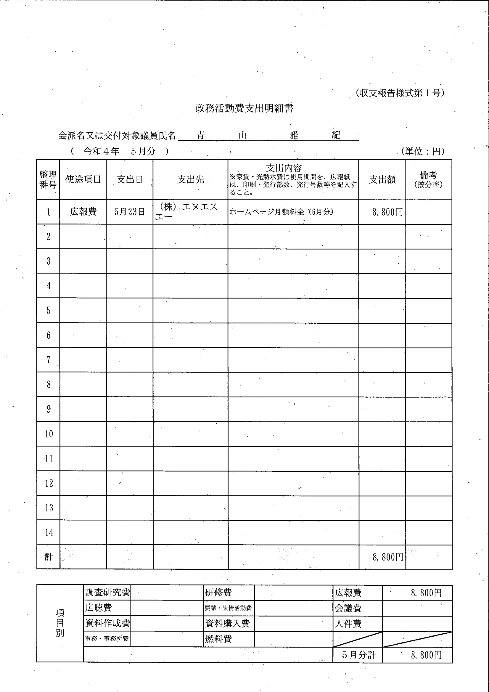 千葉市議会トップページ > 広報・情報公開 > 政務活動費 > 令和4年度交付分(政務活動費収支報告書)