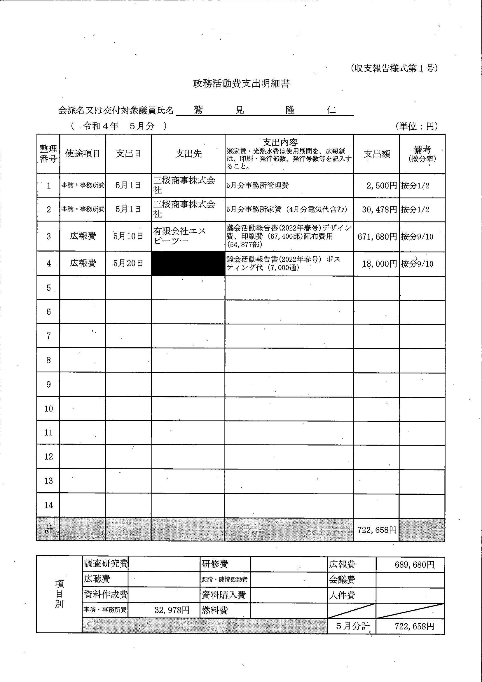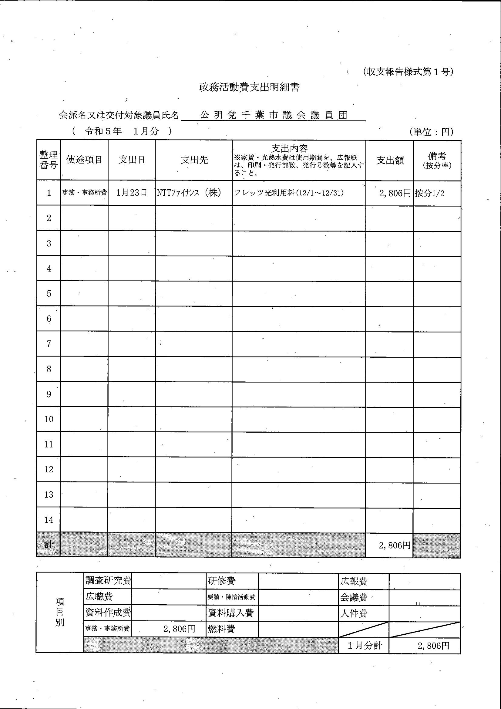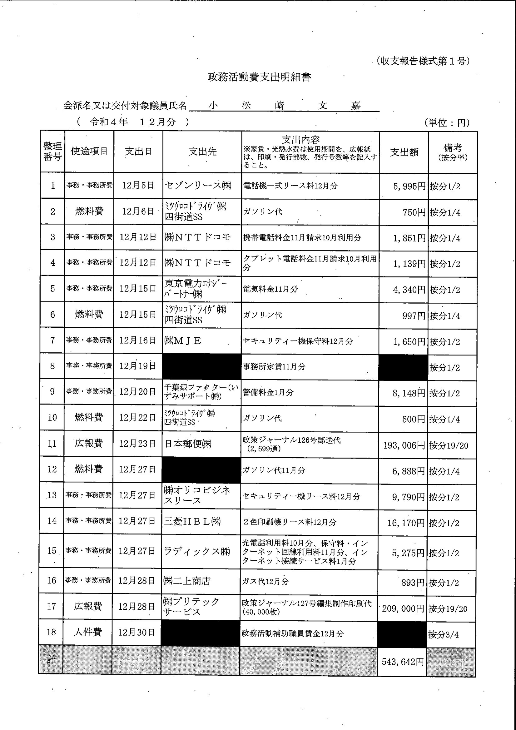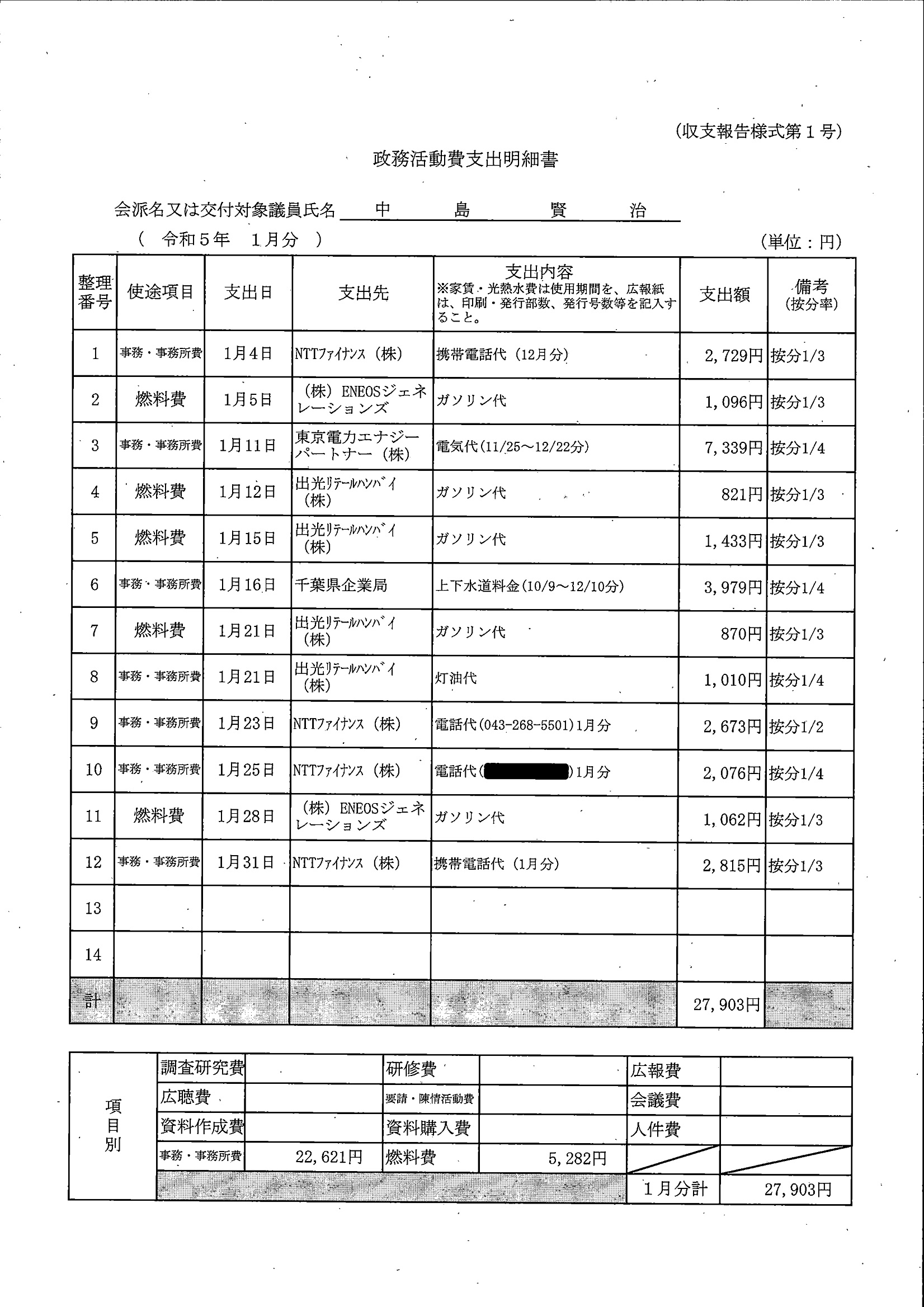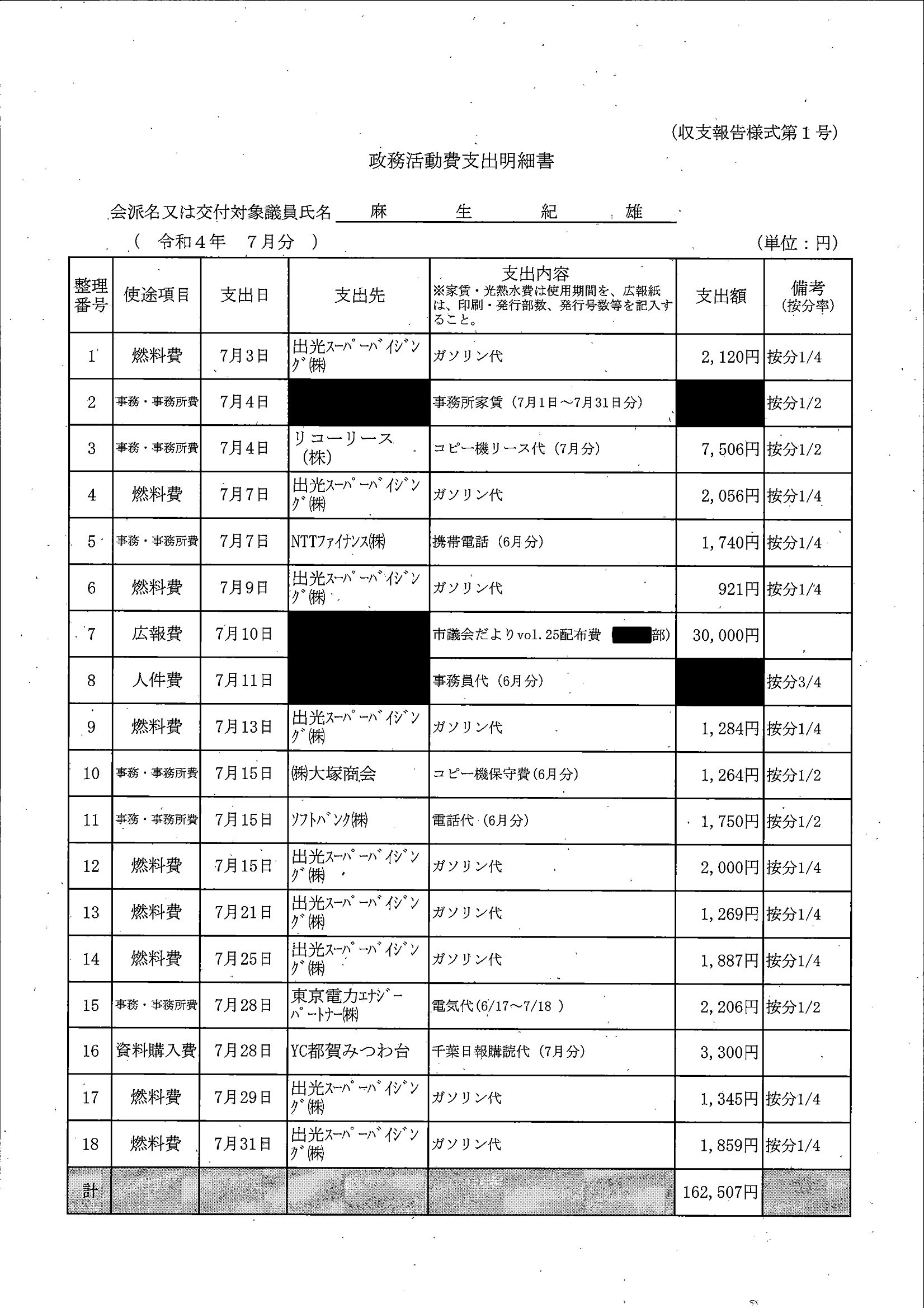 千葉市議会トップページ > 広報・情報公開 > 政務活動費 > 令和4年度交付分(政務活動費収支報告書)