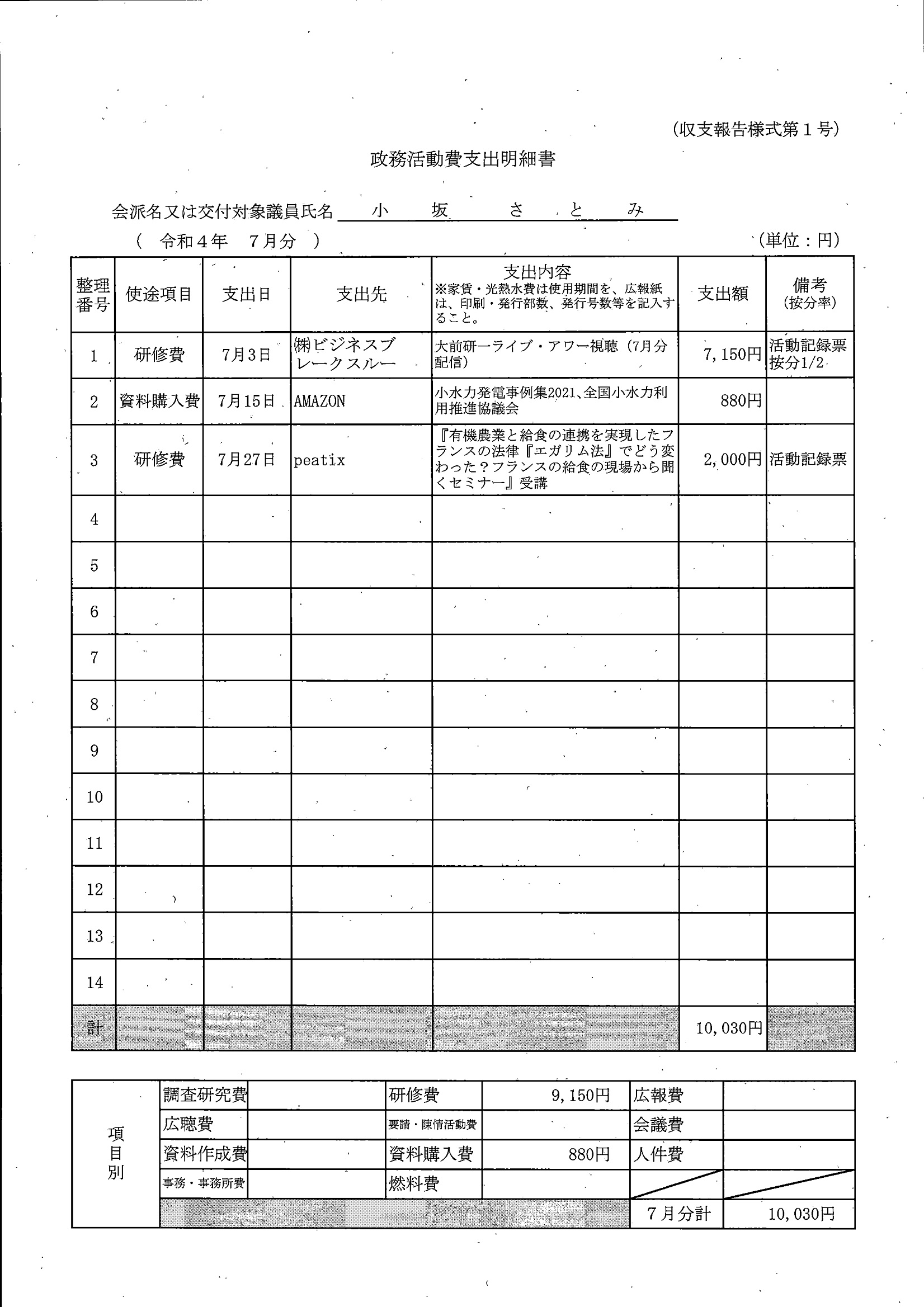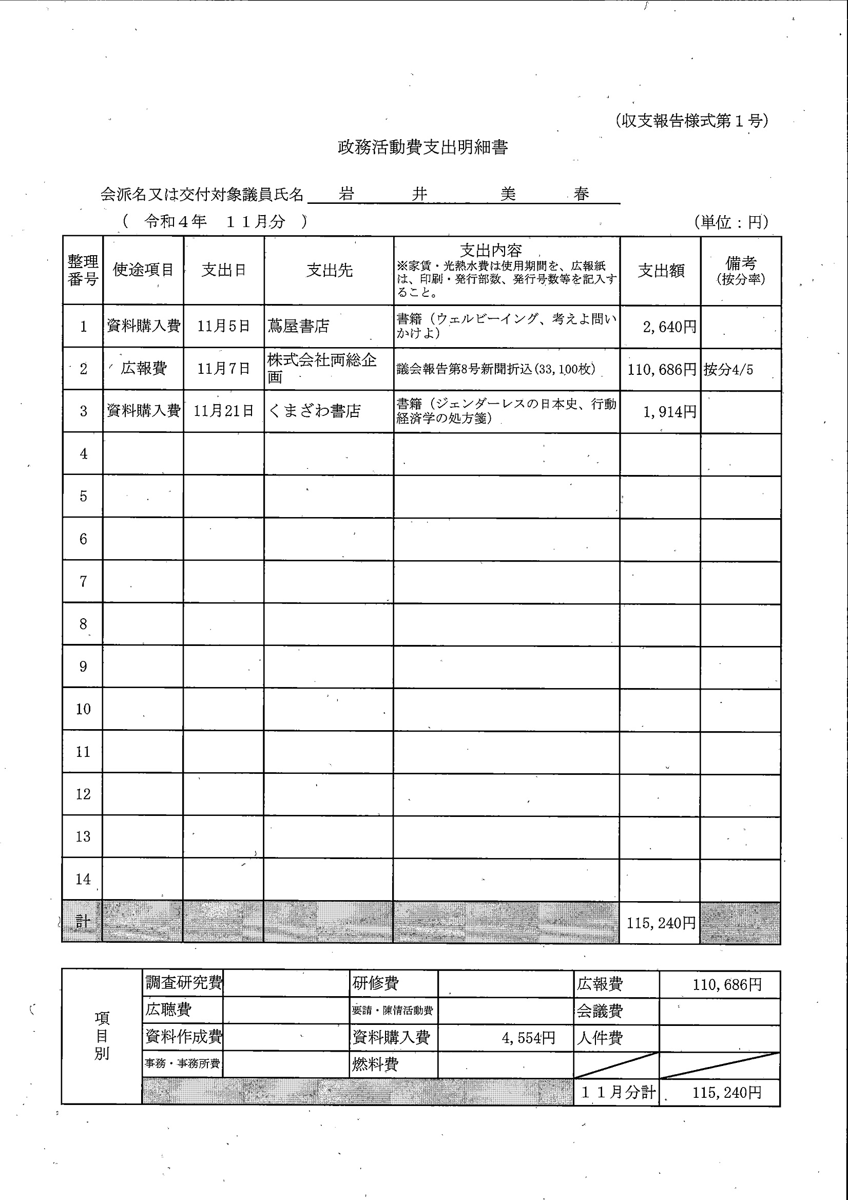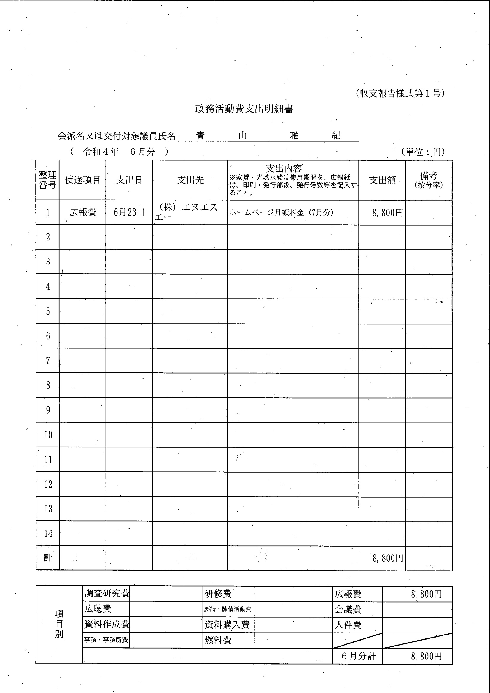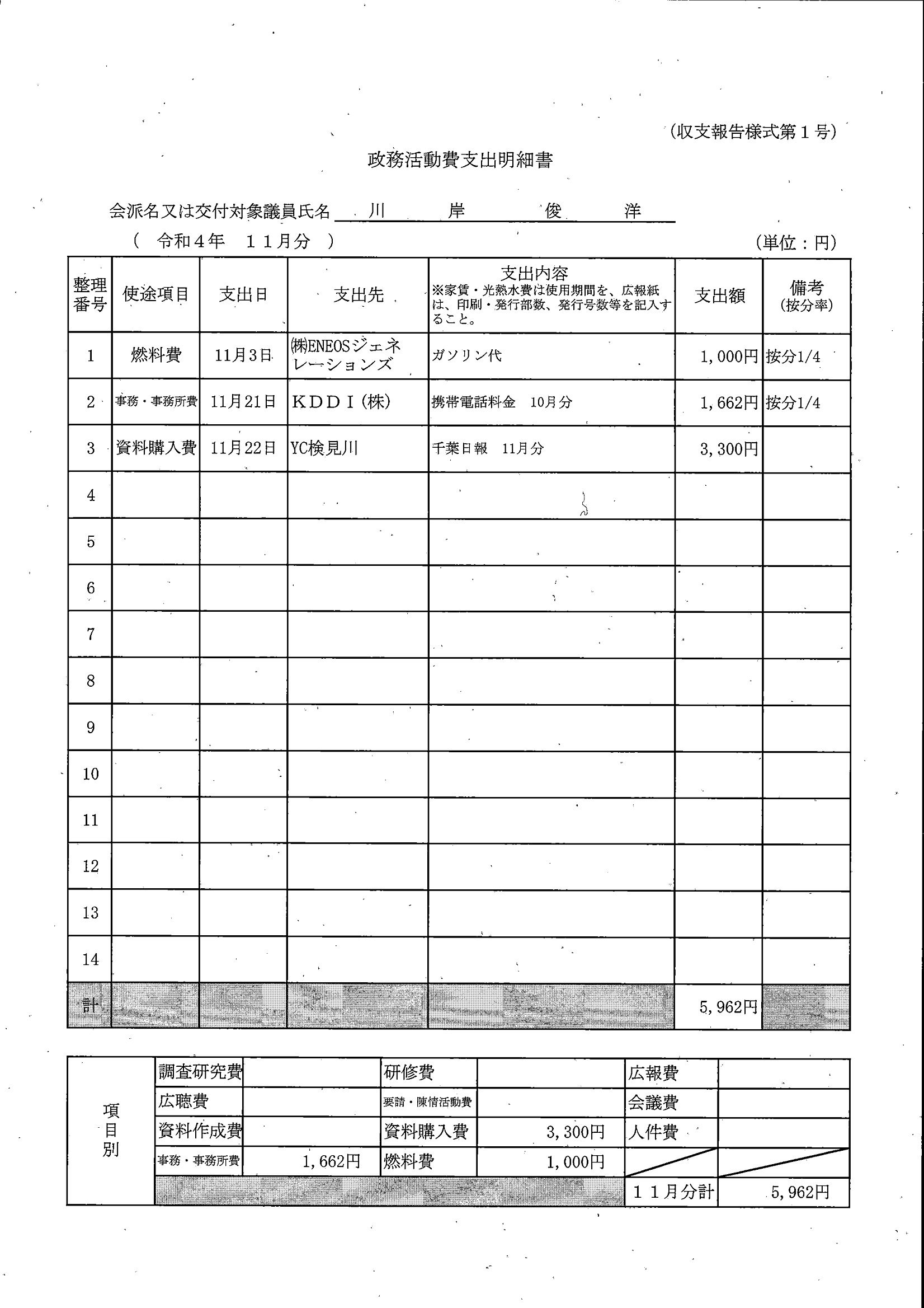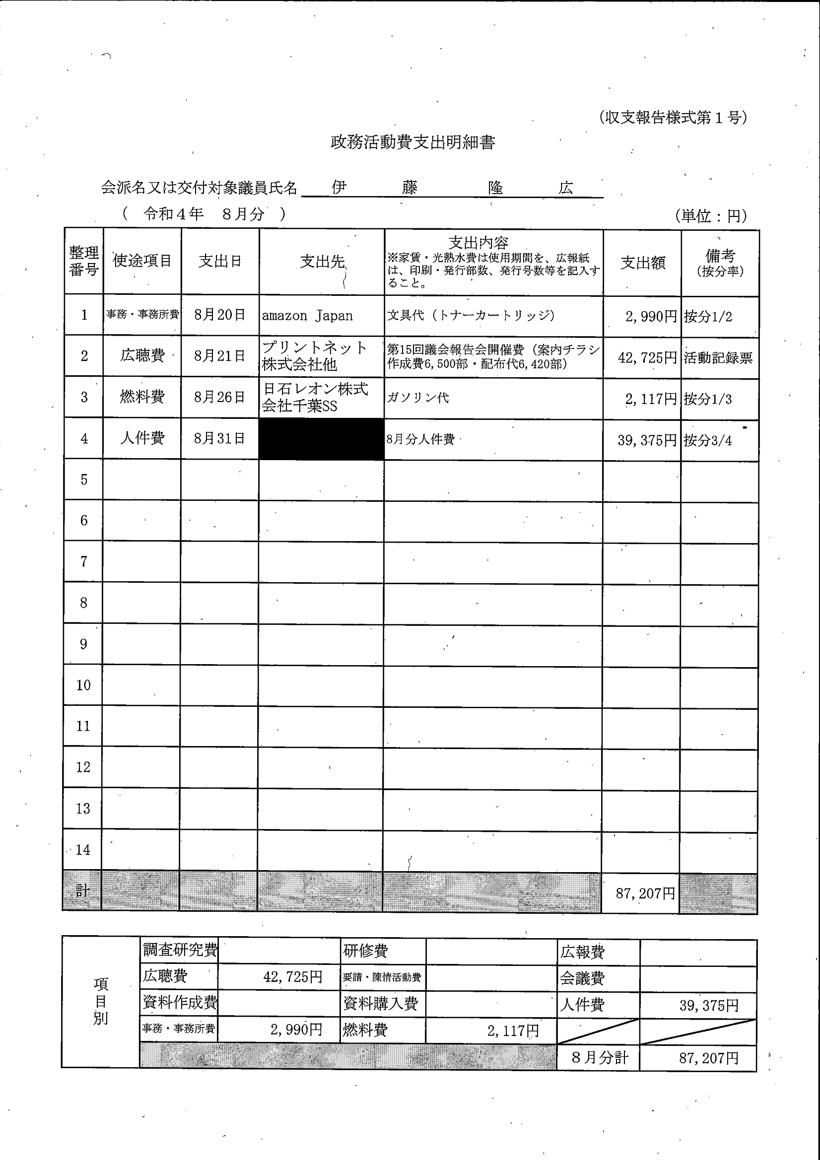 千葉市議会トップページ > 広報・情報公開 > 政務活動費 > 令和4年度交付分(政務活動費収支報告書)